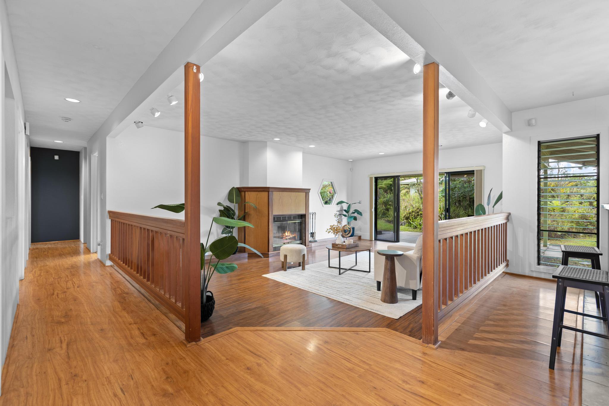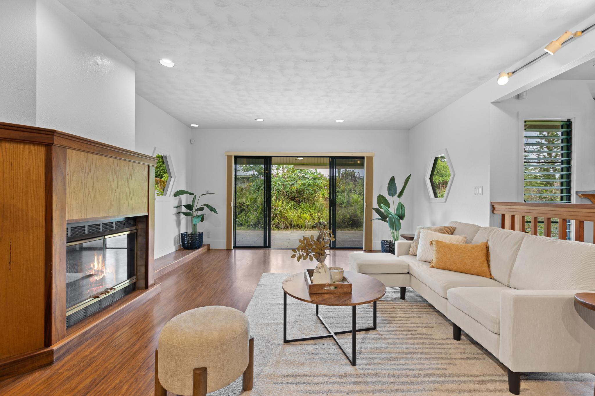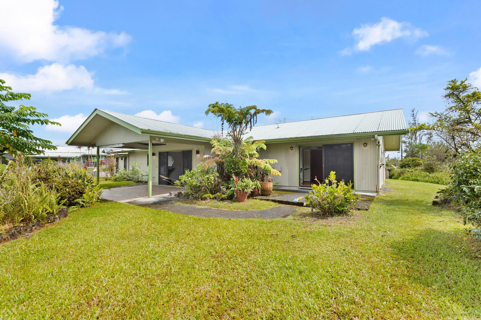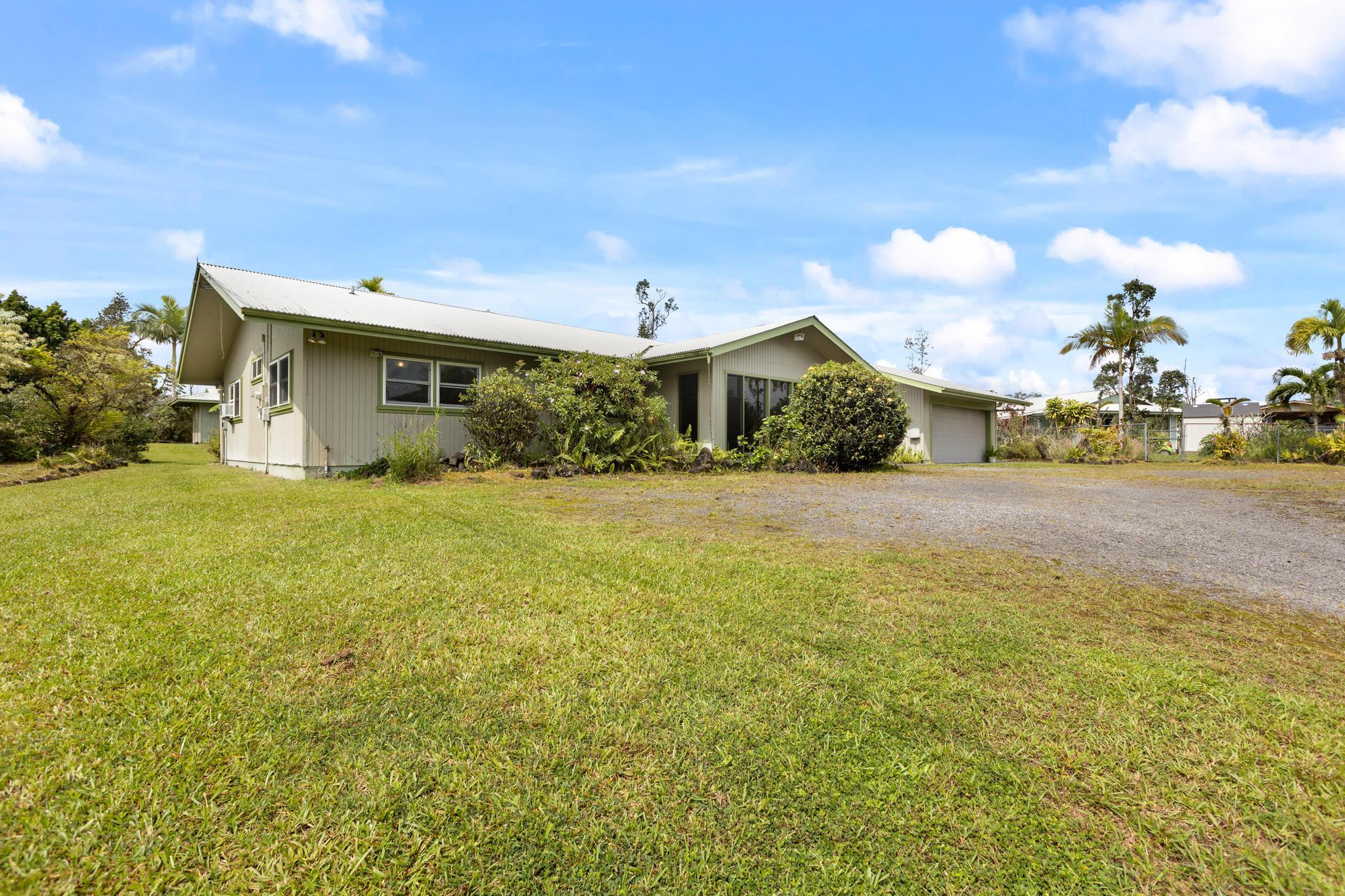 Don’t miss the chance to own this beautiful home in the highly sought-after Hawaiian Paradise Park Subdivision, ideally located between Kaloli and Shower Dr. This home is far from ordinary, featuring a unique layout that exudes charm and character. - **Spacious Interior**: - Open family room and formal dining area, ideal for daily living and entertaining - Kitchen overlooks the inviting living room with a cozy fireplace and ample closet storage - 4 bedrooms and 3 bathrooms for ample space - Fourth room, perfect for an office, den, or guest space, located near the third bathroom and garage - **Private Outdoor Living**: - Large private lanais connected to both the living room and the primary bedroom - Star gazing deck with preparation land for an above ground pool surrounded by beautifully landscaped gardens - Yard features a variety of fruit-bearing trees: mountain apple, star fruit, pineapple, lilikoi, citrus, and guava - Air filled with the delightful fragrances of golden gardenia, puakenikeni, and night-blooming jasmine - **Generous Garage & Storage**: - 600-square-foot garage with high ceilings, offering endless possibilities (workshop, studio, or extra storage) - Oversized attached garage providing even more space and additional storage with a full bathroom - **Eco-Friendly Features**: - Fully owned, Net Metered photovoltaic (PV) system - New solar hot water panels, UV water filtration, and a large electric backup water heater - **Security & Privacy**: - Camera security system for added peace of mind - Electric/solar gate and chain-link fencing around the property This home perfectly combines mid-century living with the serenity of island life–don’t miss out!