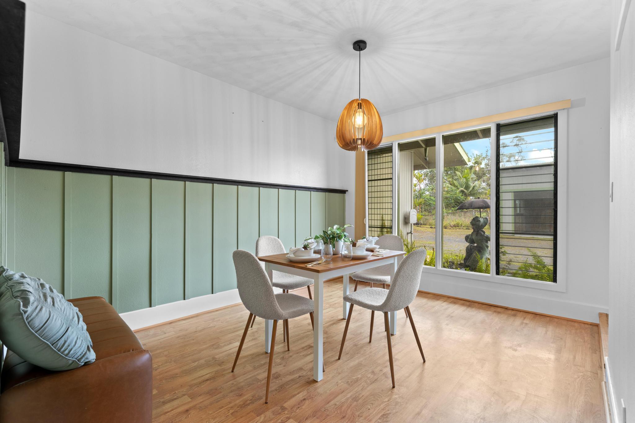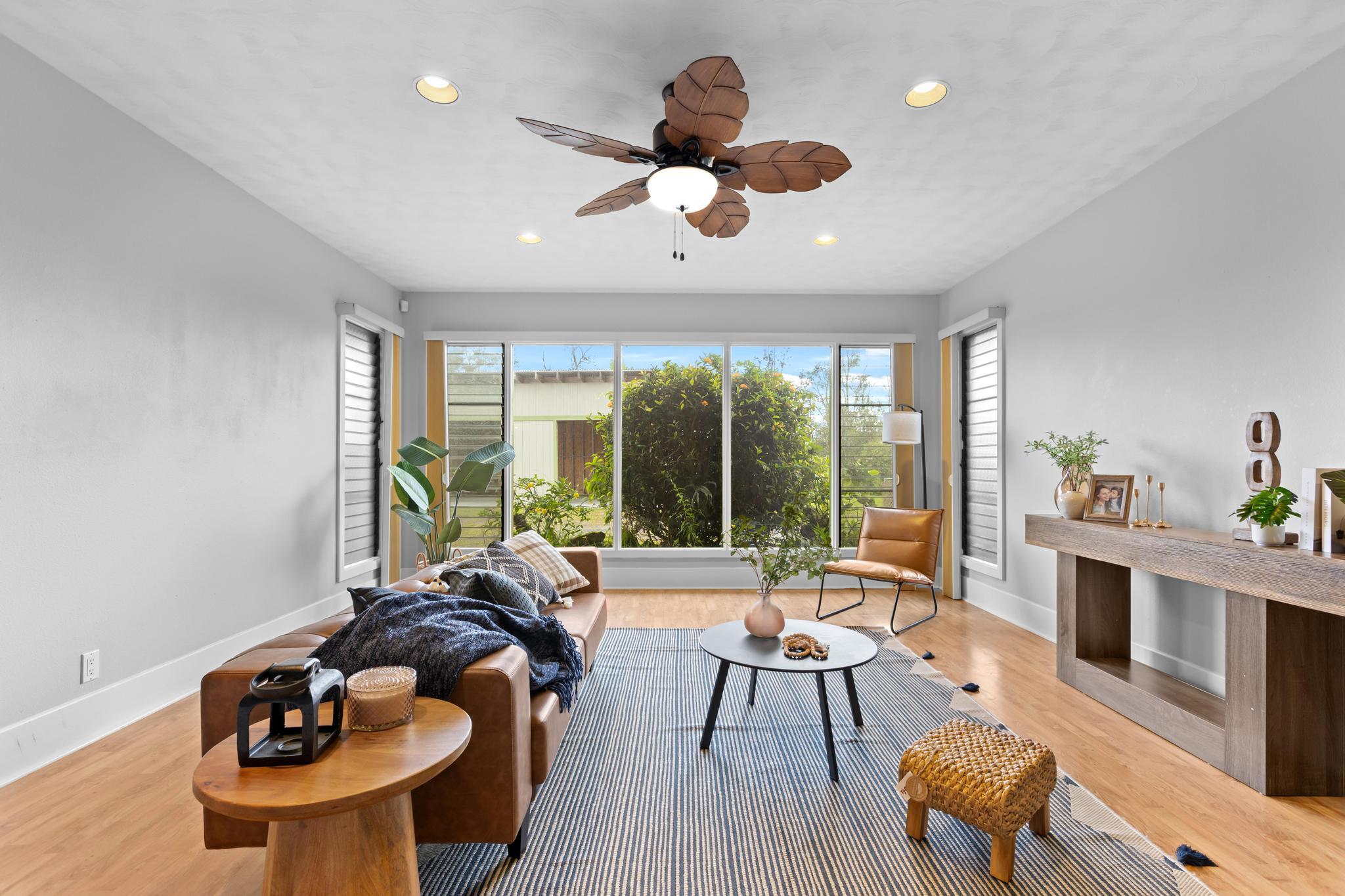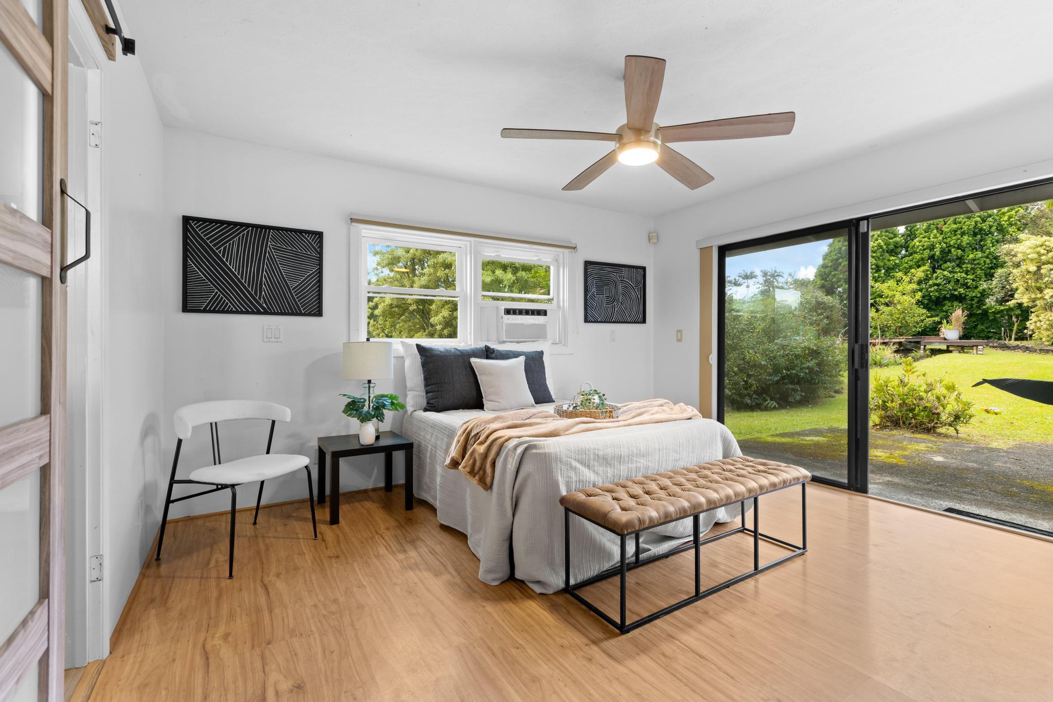 Don’t miss the chance to own this beautiful home in the highly sought-after Hawaiian Paradise Park Subdivision, ideally located between Kaloli and Shower Dr. This home is far from ordinary, featuring a unique layout that exudes charm and character. - **Spacious Interior**: - Open family room and formal dining area, ideal for daily living and entertaining - Kitchen overlooks the inviting living room with a cozy fireplace and ample closet storage - 4 bedrooms and 3 bathrooms for ample space - Fourth room, perfect for an office, den, or guest space, located near the third bathroom and garage - **Private Outdoor Living**: - Large private lanais connected to both the living room and the primary bedroom - Star gazing deck with preparation land for an above ground pool surrounded by beautifully landscaped gardens - Yard features a variety of fruit-bearing trees: mountain apple, star fruit, pineapple, lilikoi, citrus, and guava - Air filled with the delightful fragrances of golden gardenia, puakenikeni, and night-blooming jasmine - **Generous Garage & Storage**: - 600-square-foot garage with high ceilings, offering endless possibilities (workshop, studio, or extra storage) - Oversized attached garage providing even more space and additional storage with a full bathroom - **Eco-Friendly Features**: - Fully owned, Net Metered photovoltaic (PV) system - New solar hot water panels, UV water filtration, and a large electric backup water heater - **Security & Privacy**: - Camera security system for added peace of mind - Electric/solar gate and chain-link fencing around the property This home perfectly combines mid-century living with the serenity of island life–don’t miss out!