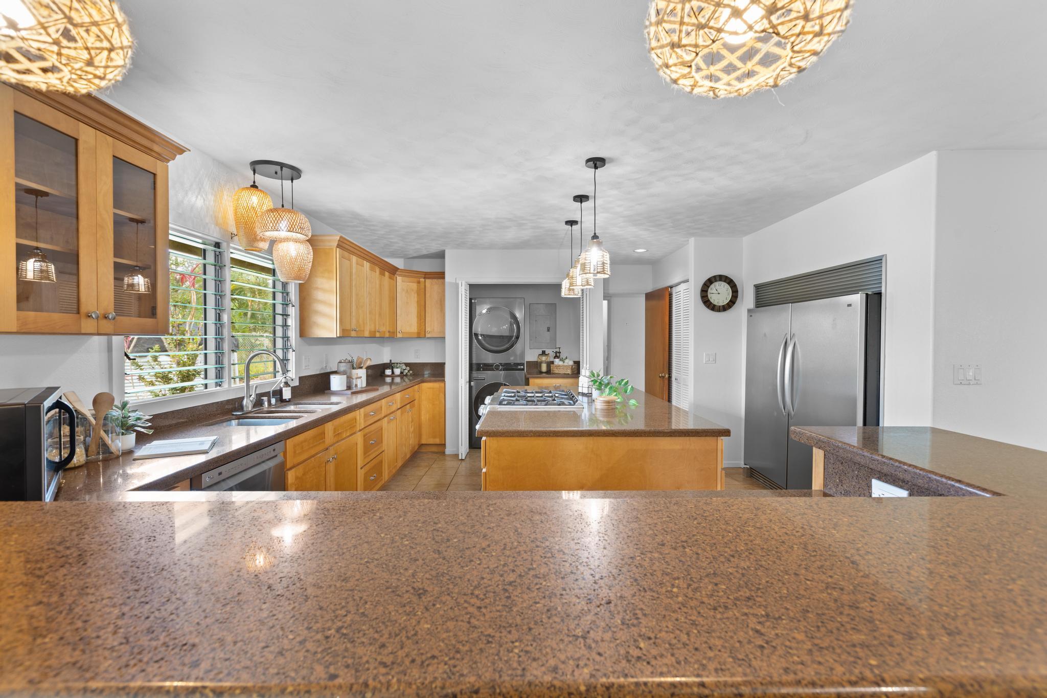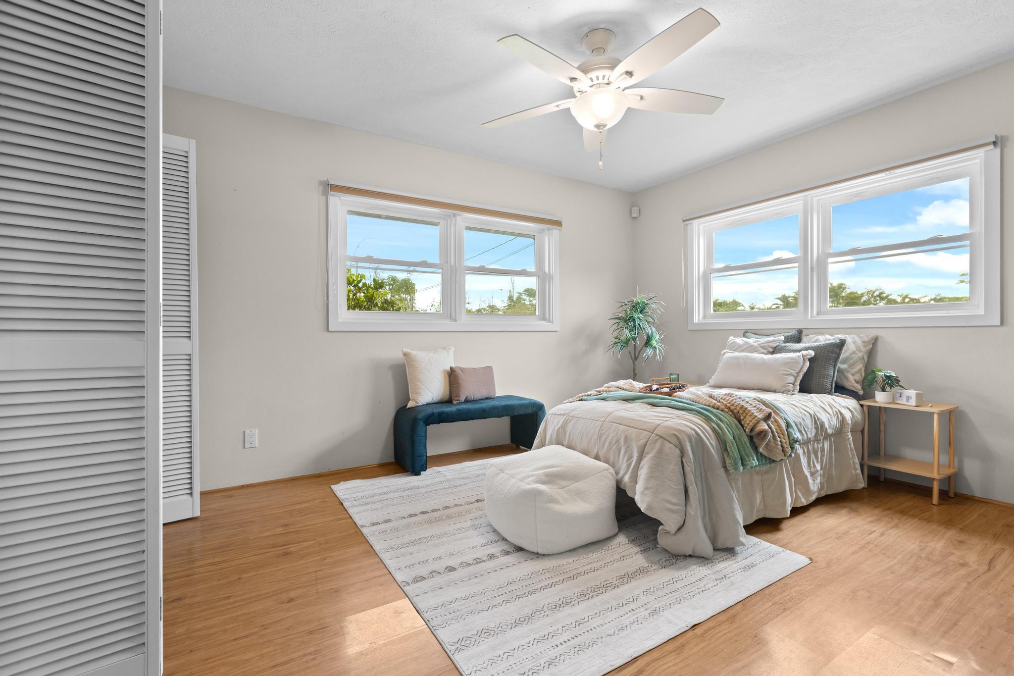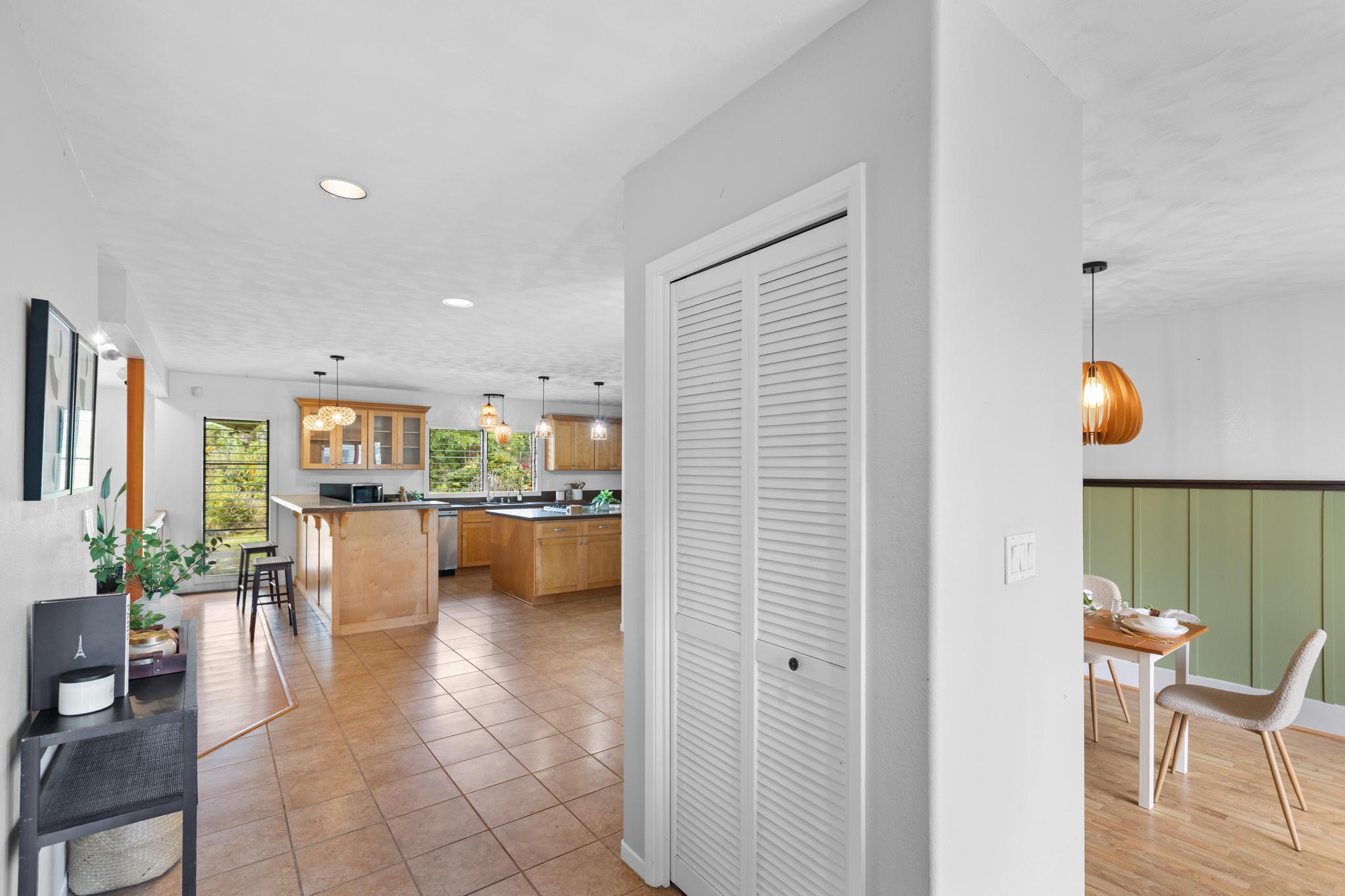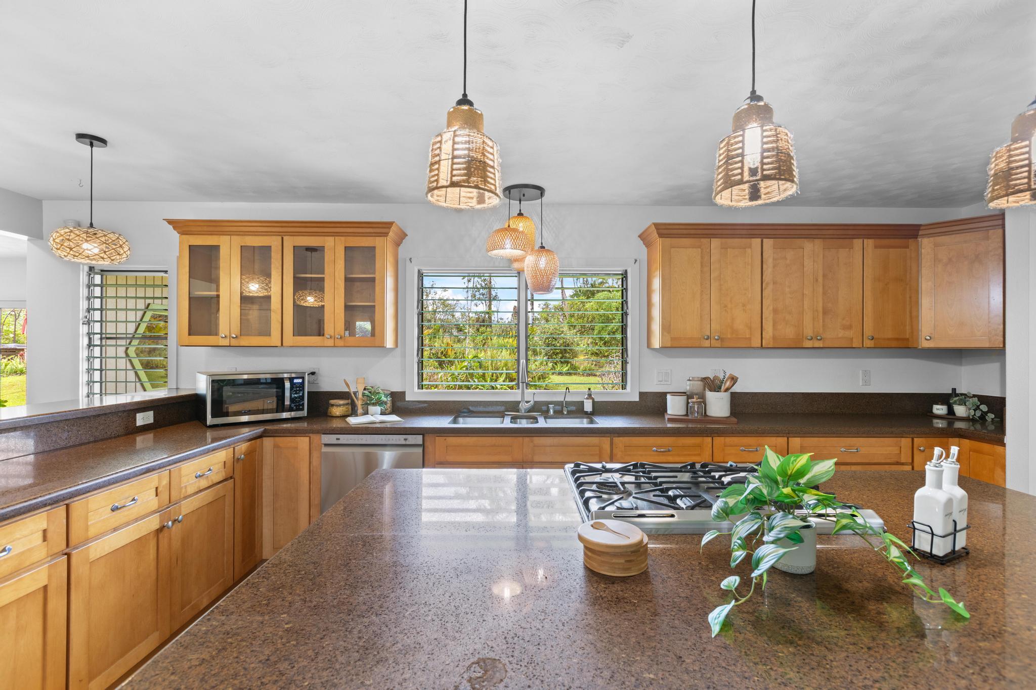 Don’t miss the chance to own this beautiful home in the highly sought-after Hawaiian Paradise Park Subdivision, ideally located between Kaloli and Shower Dr. This home is far from ordinary, featuring a unique layout that exudes charm and character. - **Spacious Interior**: - Open family room and formal dining area, ideal for daily living and entertaining - Kitchen overlooks the inviting living room with a cozy fireplace and ample closet storage - 4 bedrooms and 3 bathrooms for ample space - Fourth room, perfect for an office, den, or guest space, located near the third bathroom and garage - **Private Outdoor Living**: - Large private lanais connected to both the living room and the primary bedroom - Star gazing deck with preparation land for an above ground pool surrounded by beautifully landscaped gardens - Yard features a variety of fruit-bearing trees: mountain apple, star fruit, pineapple, lilikoi, citrus, and guava - Air filled with the delightful fragrances of golden gardenia, puakenikeni, and night-blooming jasmine - **Generous Garage & Storage**: - 600-square-foot garage with high ceilings, offering endless possibilities (workshop, studio, or extra storage) - Oversized attached garage providing even more space and additional storage with a full bathroom - **Eco-Friendly Features**: - Fully owned, Net Metered photovoltaic (PV) system - New solar hot water panels, UV water filtration, and a large electric backup water heater - **Security & Privacy**: - Camera security system for added peace of mind - Electric/solar gate and chain-link fencing around the property This home perfectly combines mid-century living with the serenity of island life–don’t miss out!