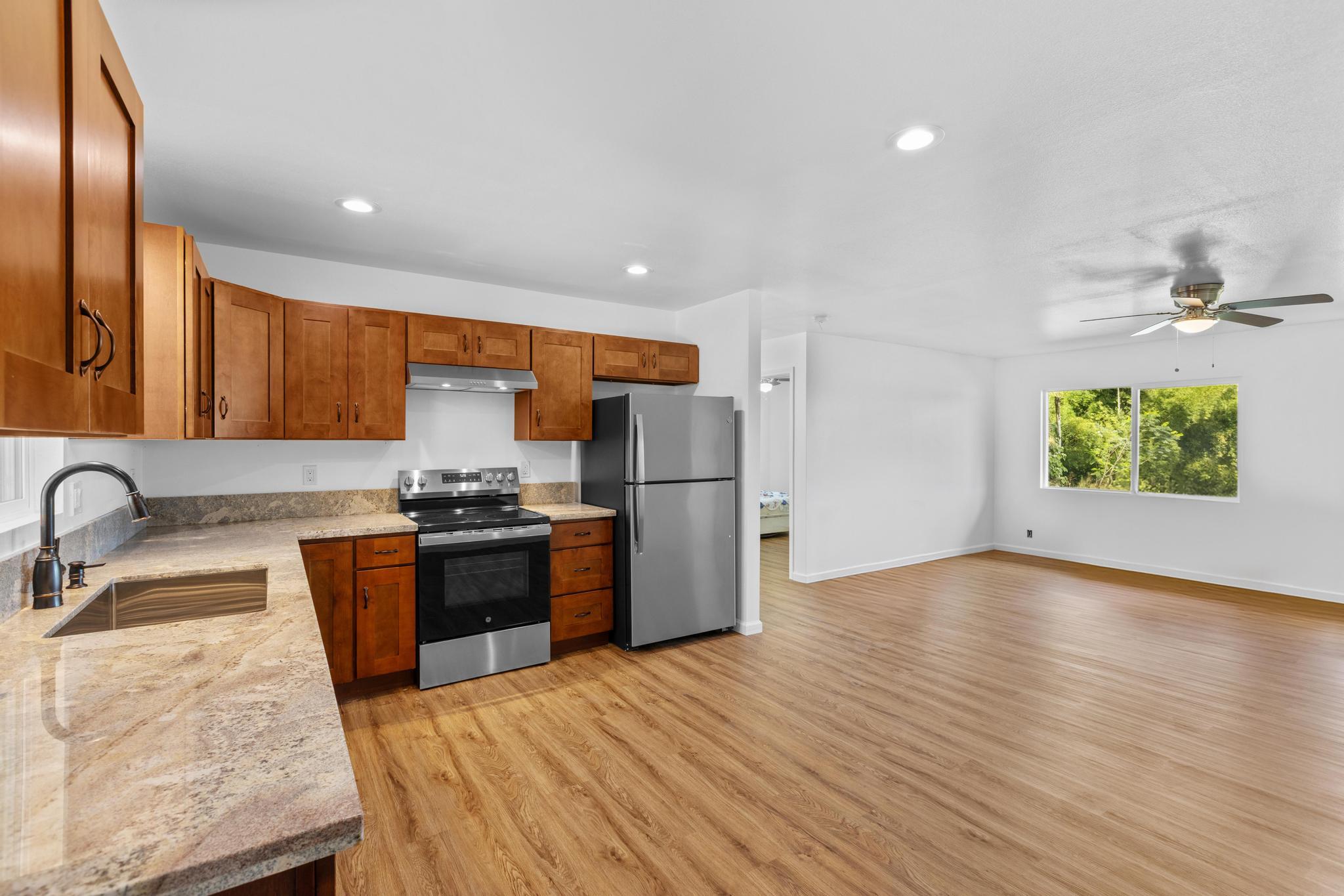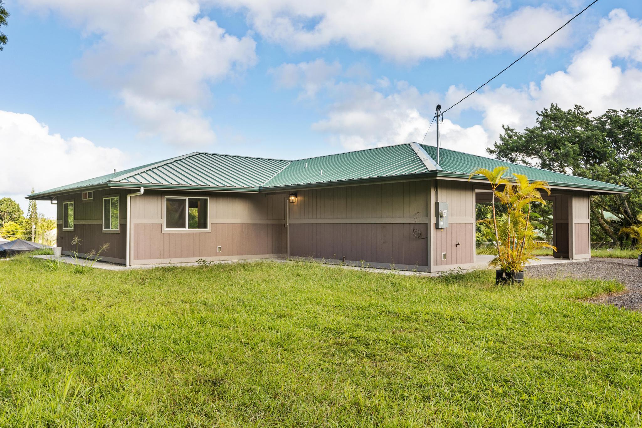 Brand-new 3-bedroom, 2-bath home located on a paved road in Hawaiian Paradise Park, just off Kaloli Drive. Minutes to Keaau and an easy commute to Hilo. This thoughtfully designed home offers 1 acre of land providing both usability and privacy.
