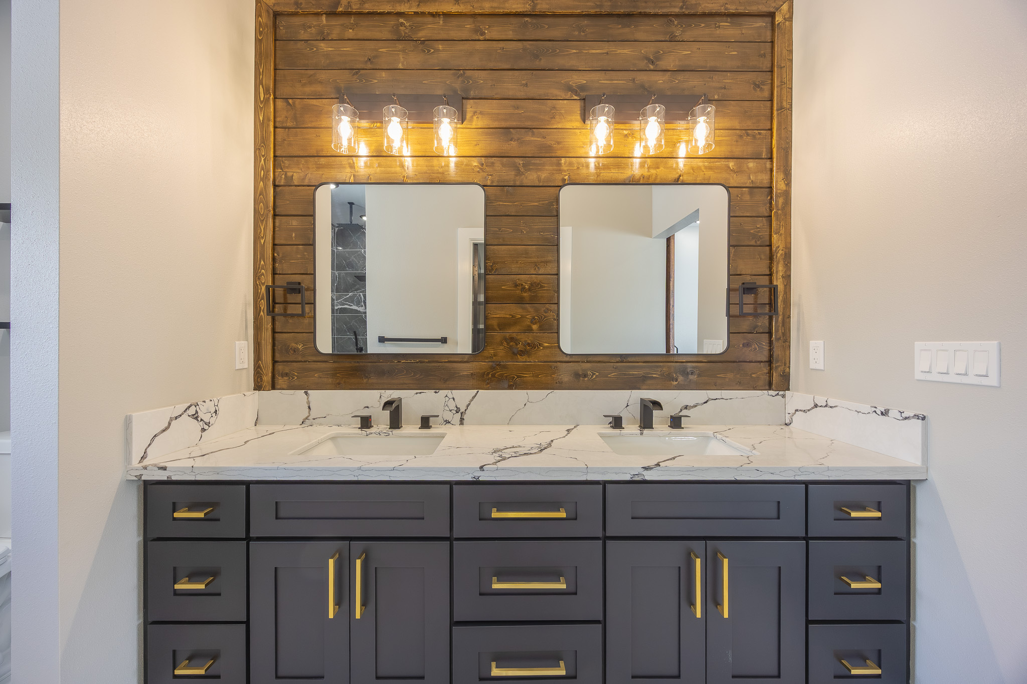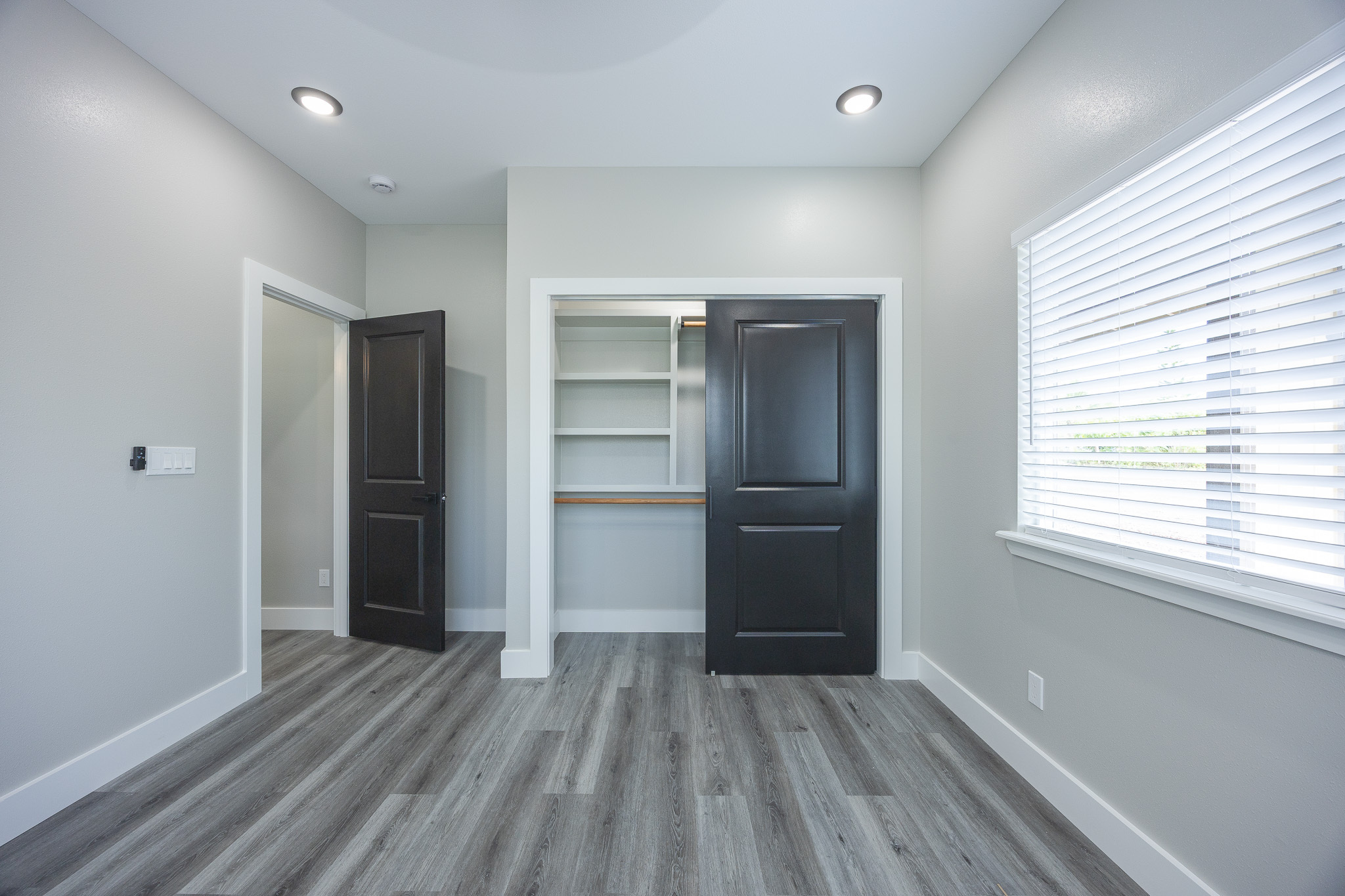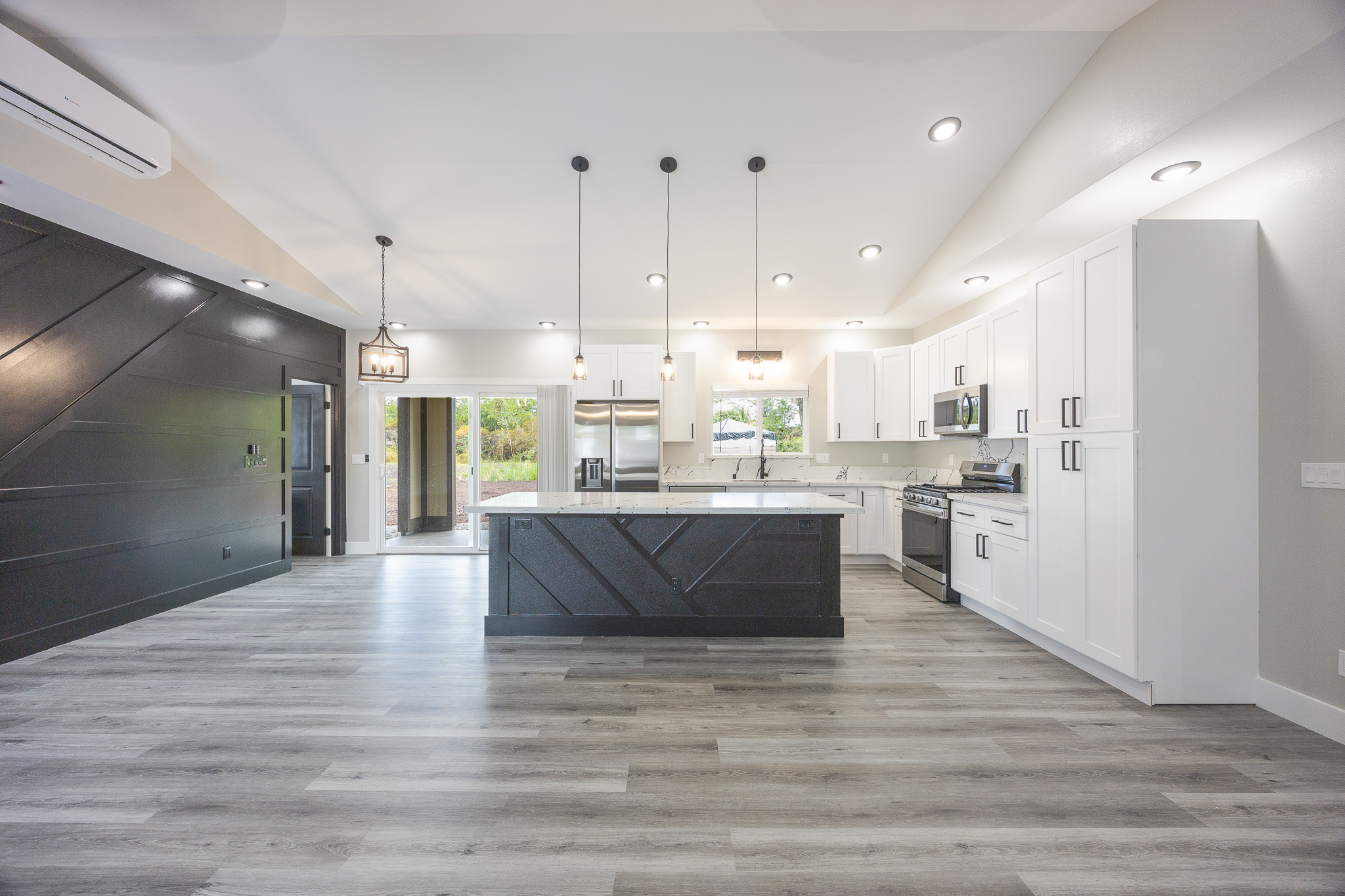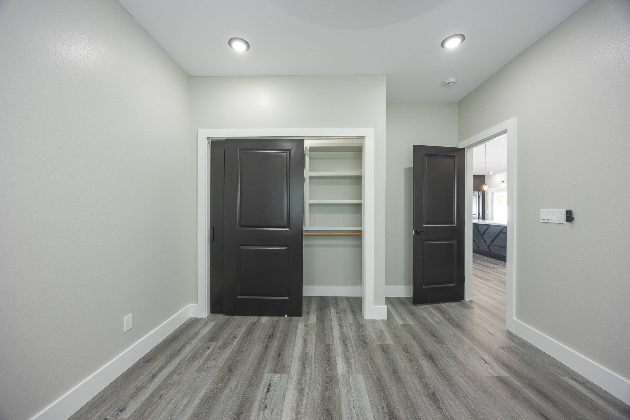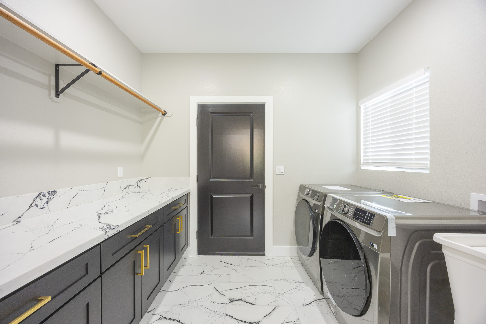 The home showcases " Black meets Gold" cabinet hardware, the perfect blend of bold and timeless. Stained pine barn doors, a dramatic black accent wall, and classy black interior doors. Includes all appliances, built-in shelves in all closets, laundry room, blinds throughout, and landscaped with cinder for easy care.