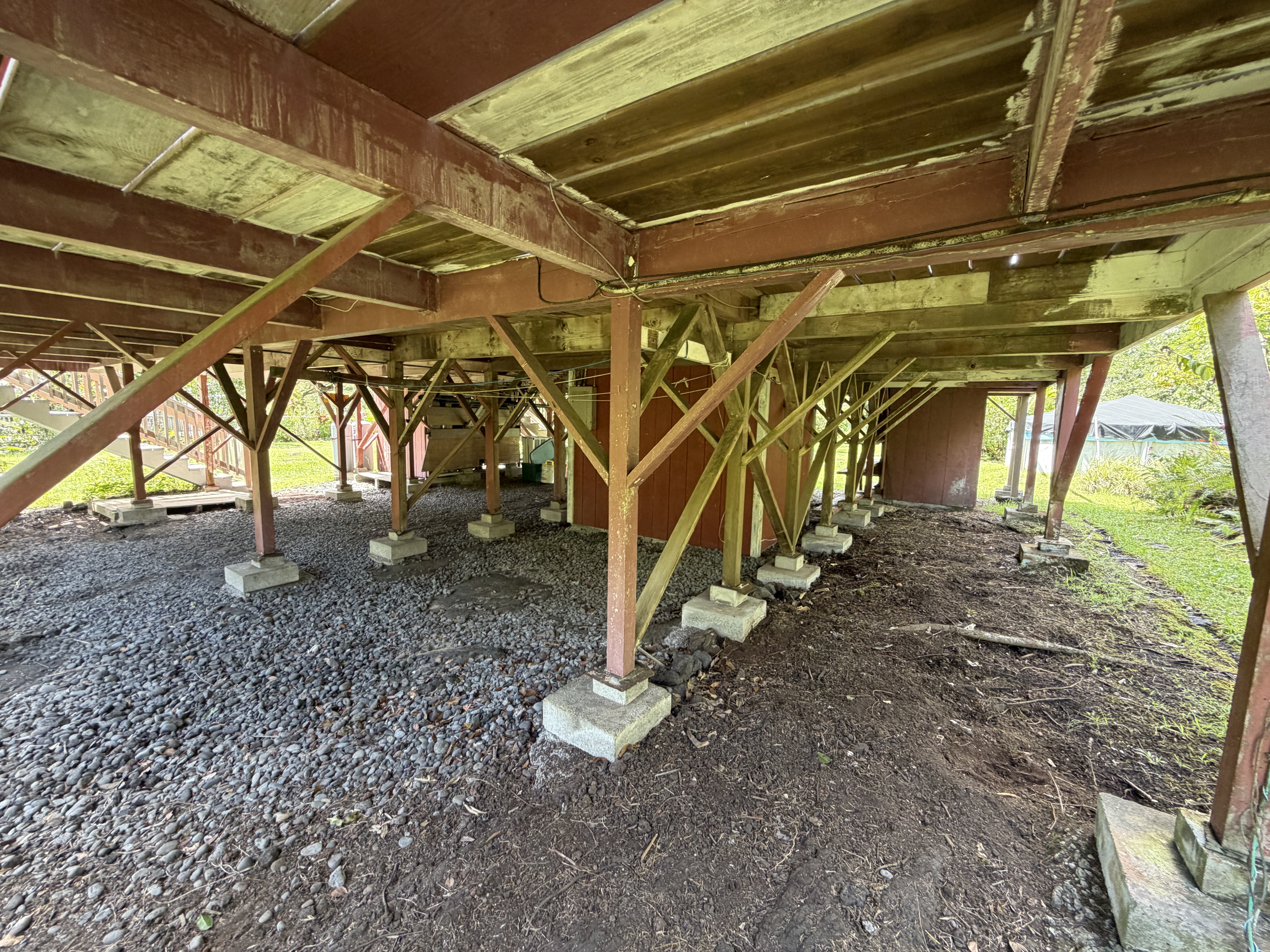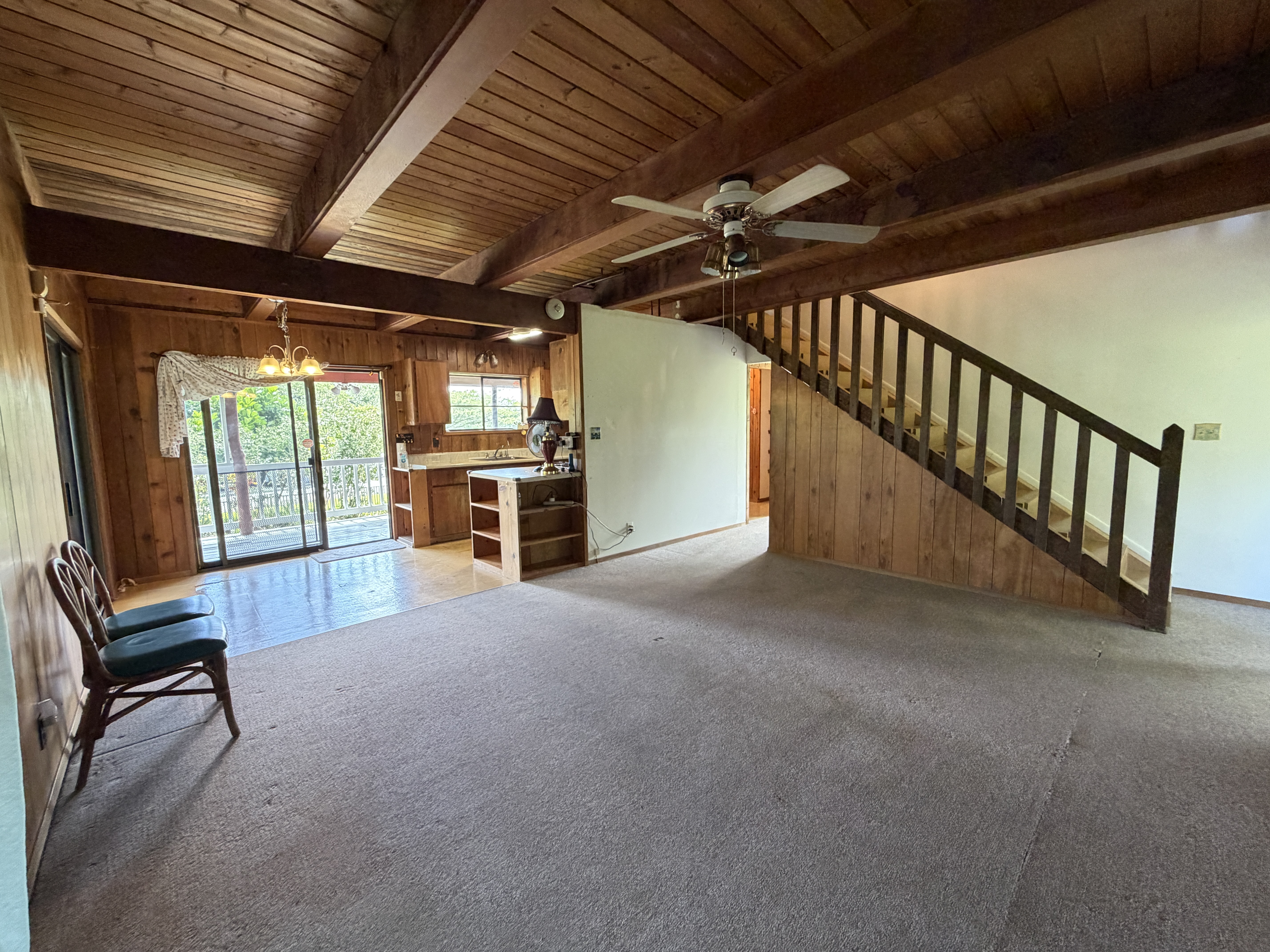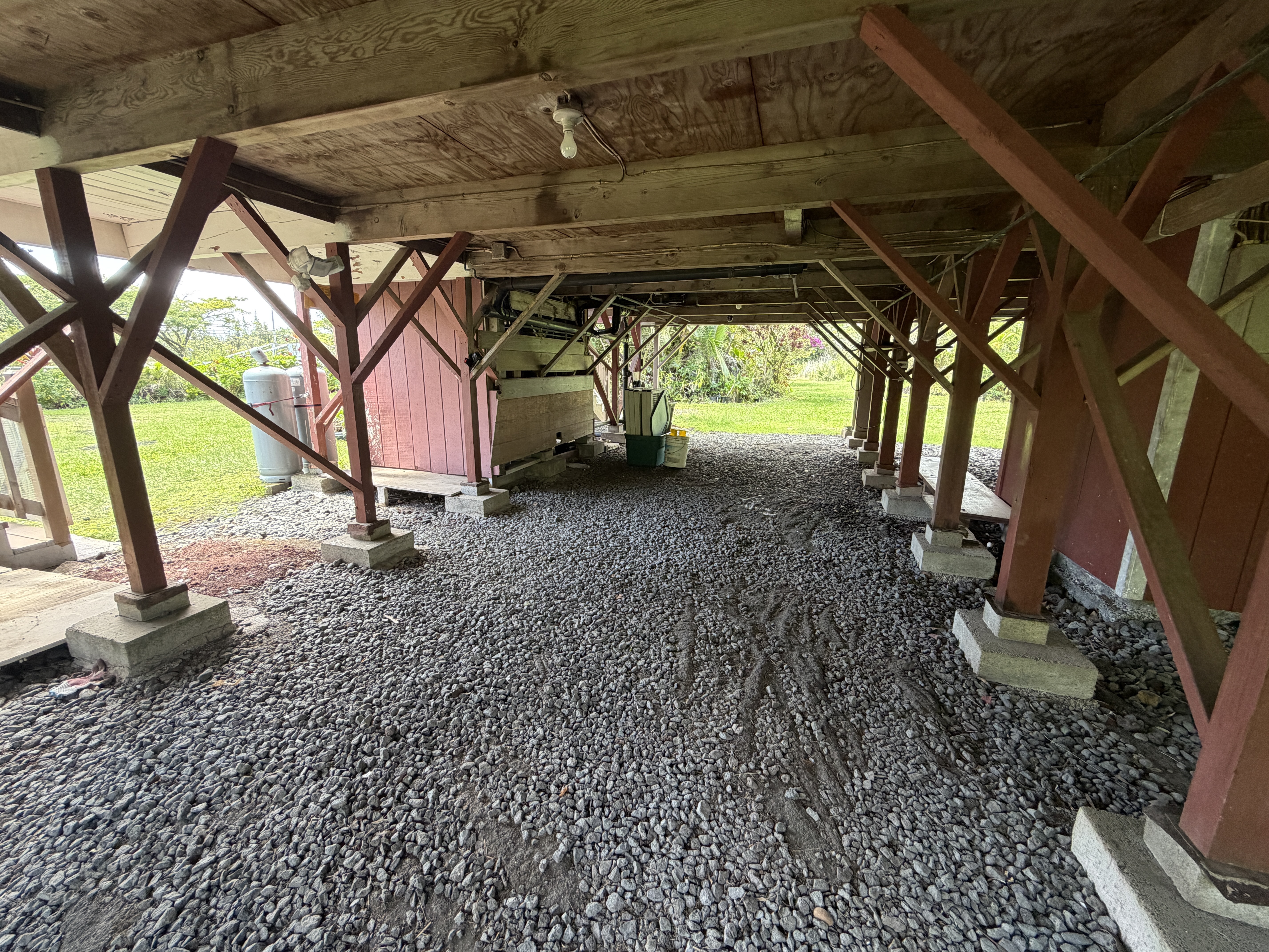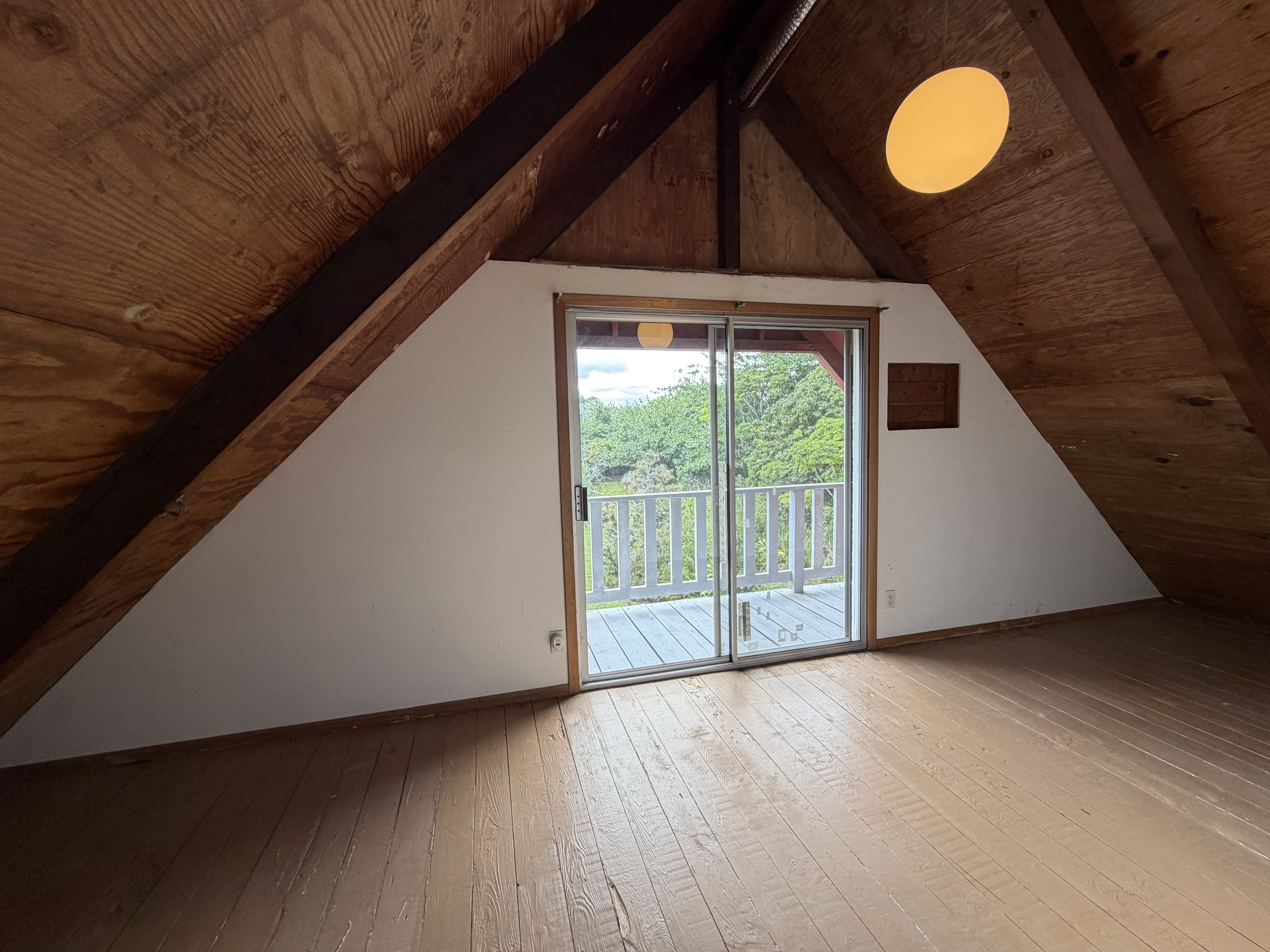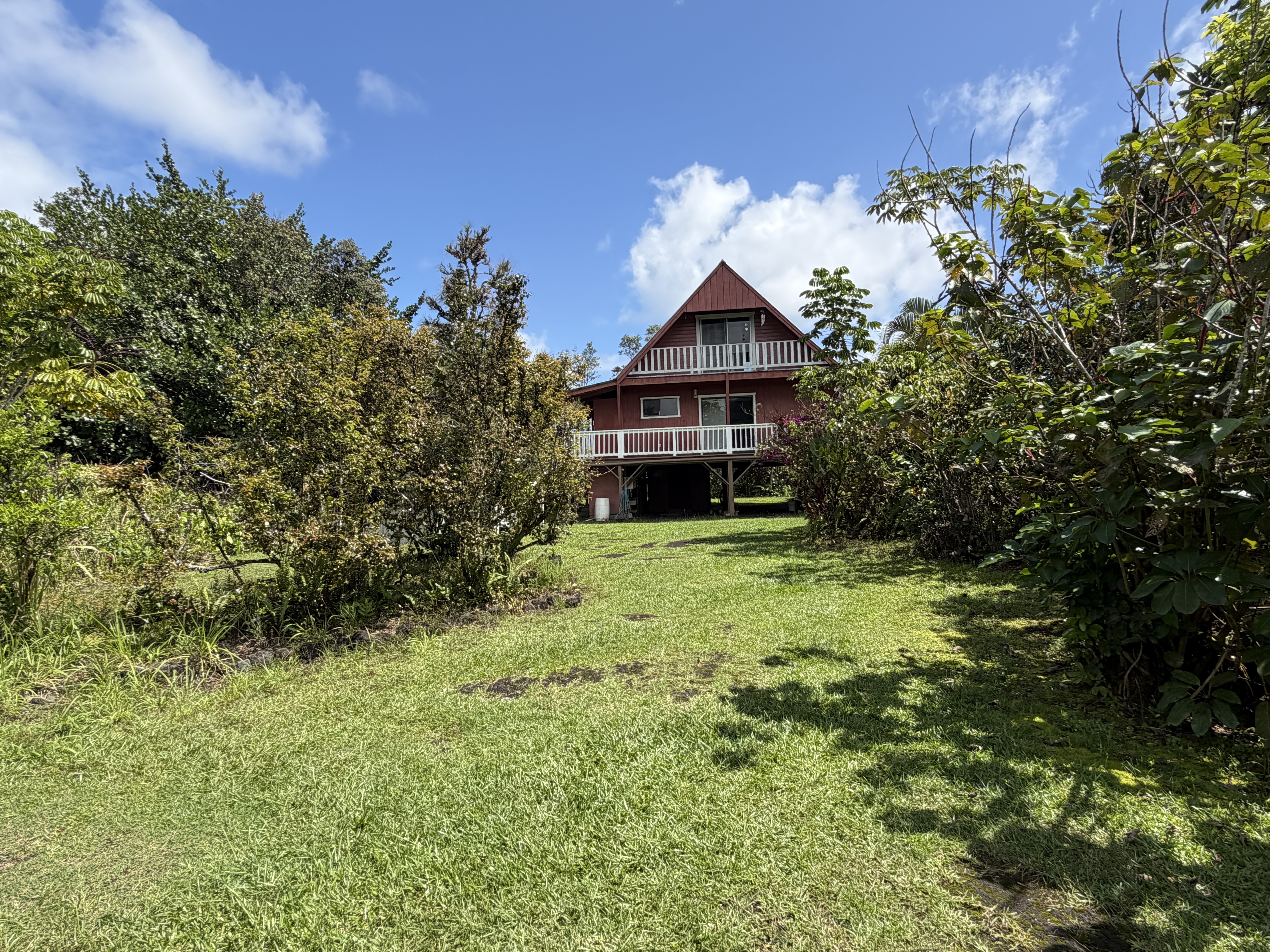 Tucked away off Kaloli Drive on desirable 4th Avenue, this charming adorable A-frame style home provides the prefect blend of character, comfort, and island living. Set on a full acre of lush land, the property is surrounded by mature trees, creating a peaceful private setting with a true old Hawaii feel. This home features 2 bedrooms, and 1.5 bathrooms. with a solid built craftsmanship. The iconic A-frame design brings in natural lighting and adds a cozy yet open ambiance throughout the home. Enjoy indoor-outdoor living with a spacious wrap around deck, perfect for relaxing, entertaining, or simply taking in the surrounding greenery and gentle island breezes. Additional highlights: * Generous storage spaces for all your needs *Mature landscaping with established trees and plantings *Plenty of room to expand, garden, or create your own outdoor oasis *Convenient location within Hawaiian Paradise Park, with short drive to Keaau or Hilo town A rare opportunity to own a unique and charming home!