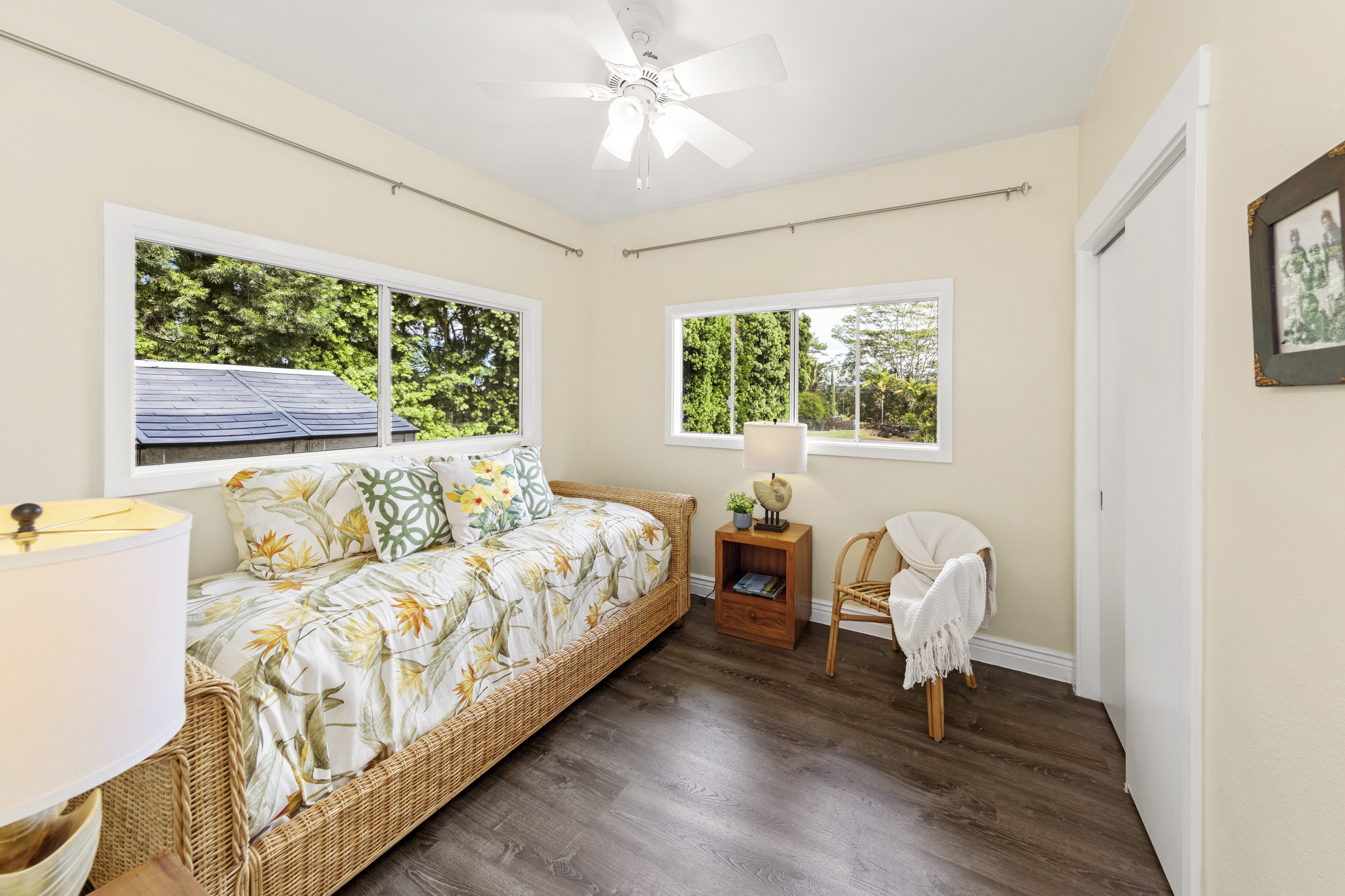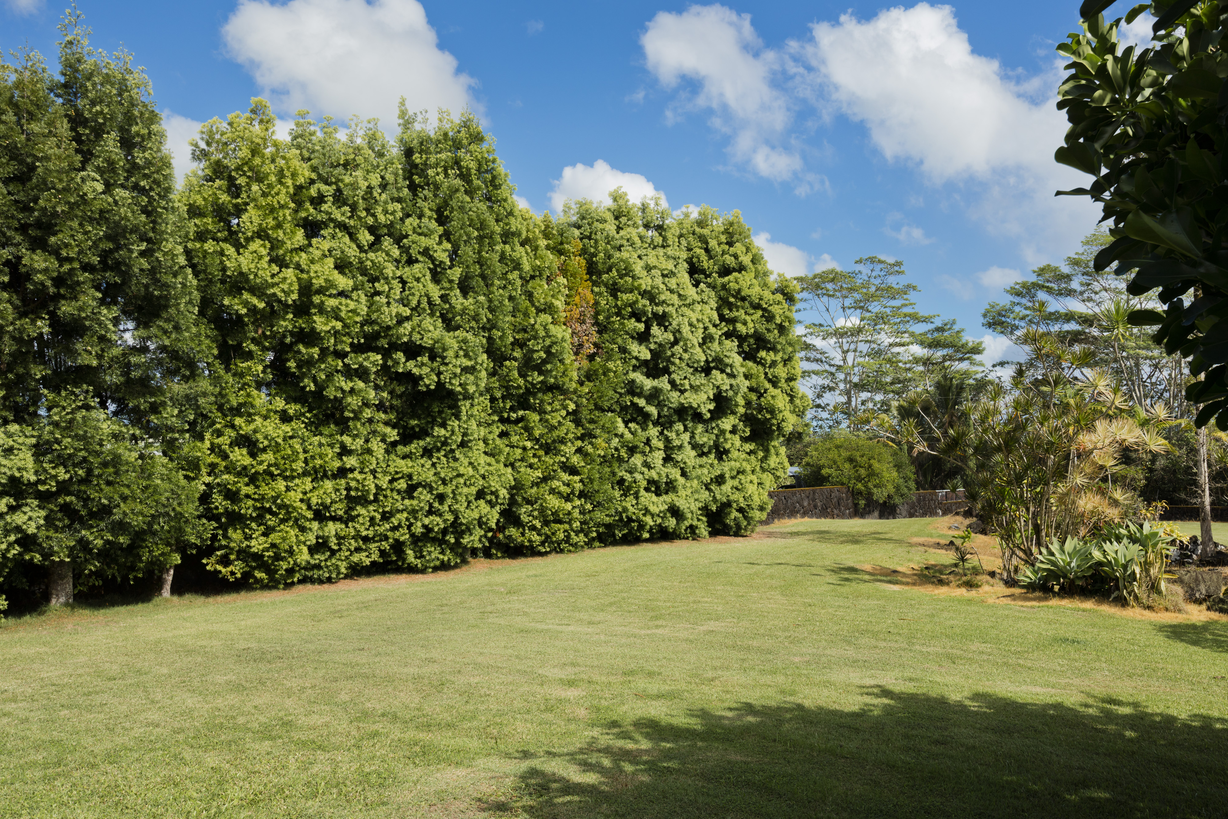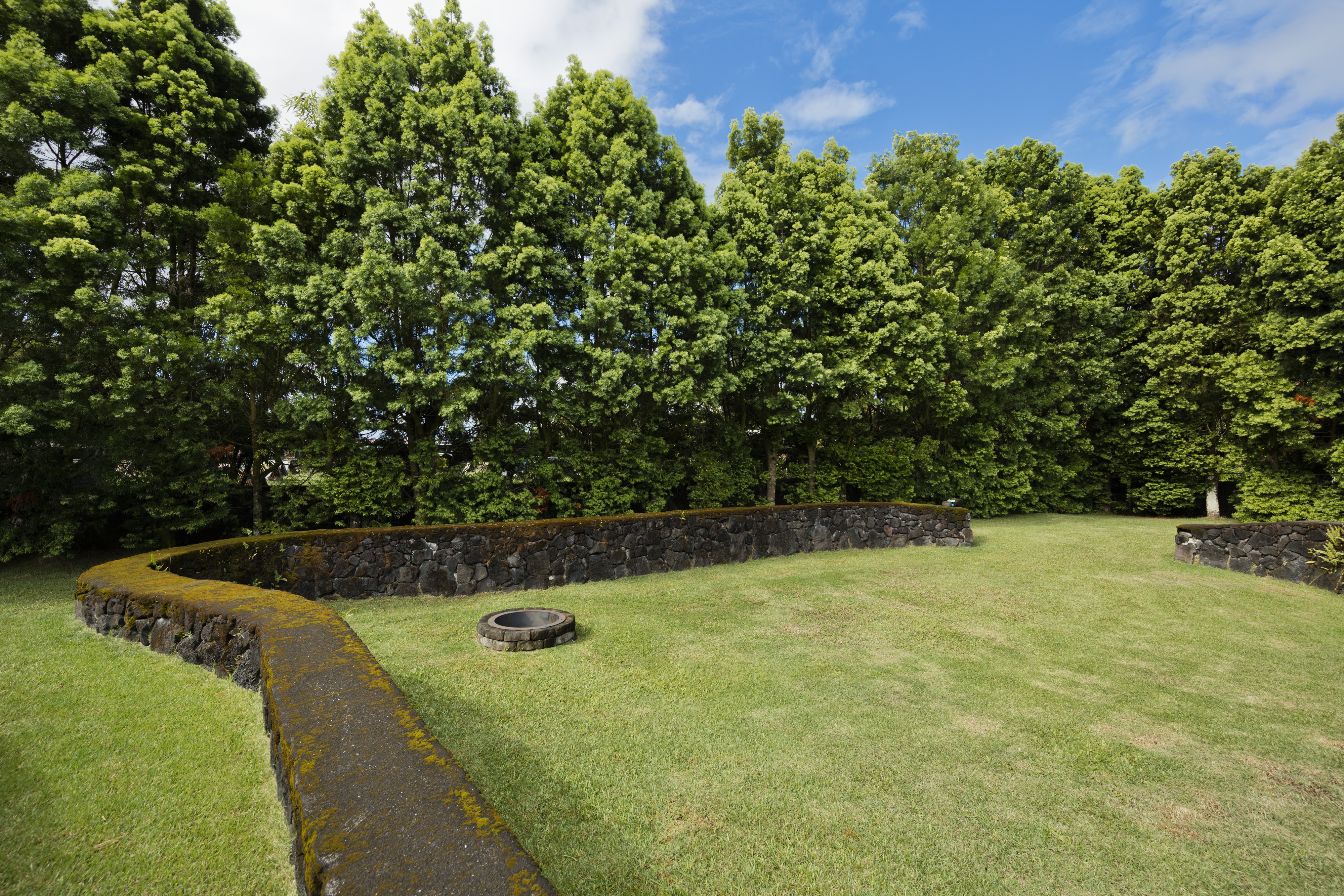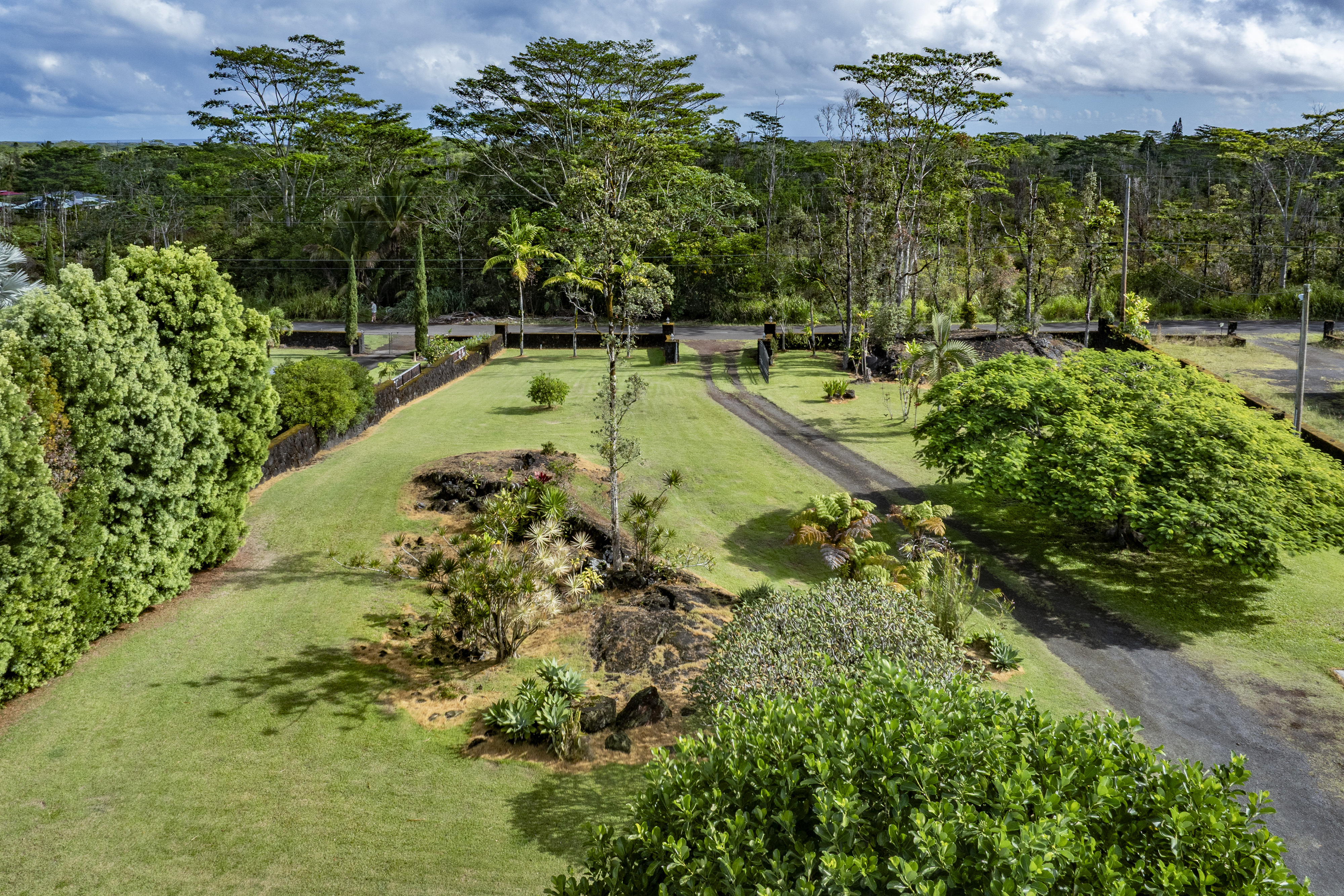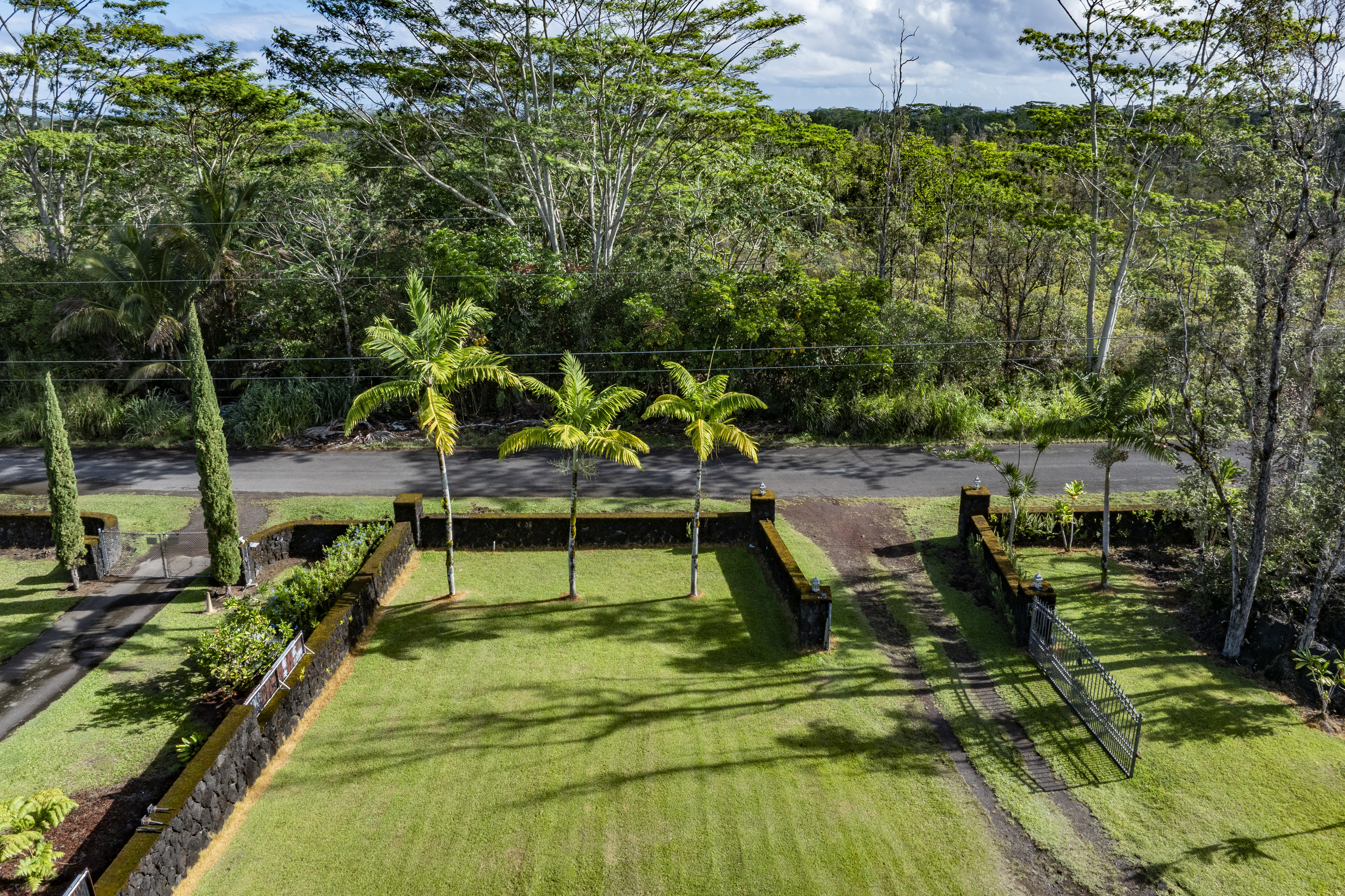 Nestled behind an impressive lava rock wall with secure gated entry, this 1-acre residence invites you to craft your private sanctuary, with space for an accessory dwelling, expansions, or a free-form pool within the lava rock enclosure. The manicured grounds are a tropical masterpiece, showcasing exotic palms, native Ohia trees, fragrant plumeria and puakenikeni trees. Towering podocarpus trees ensure privacy, while hapu’u ferns with orchids create a paradise. Underground utilities preserve the beauty of this oasis, anchored by a grand monkey pod tree as the centerpiece.
