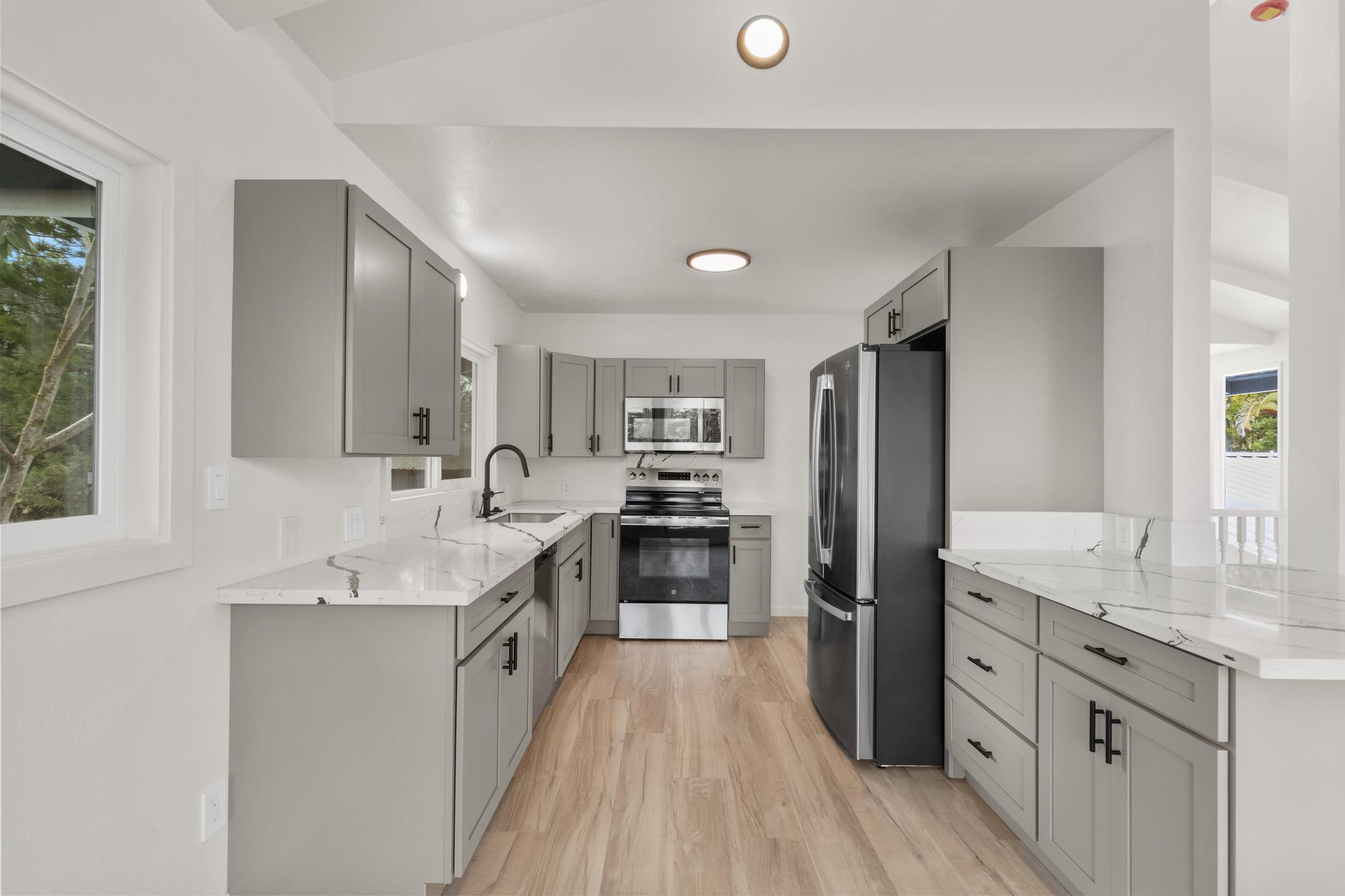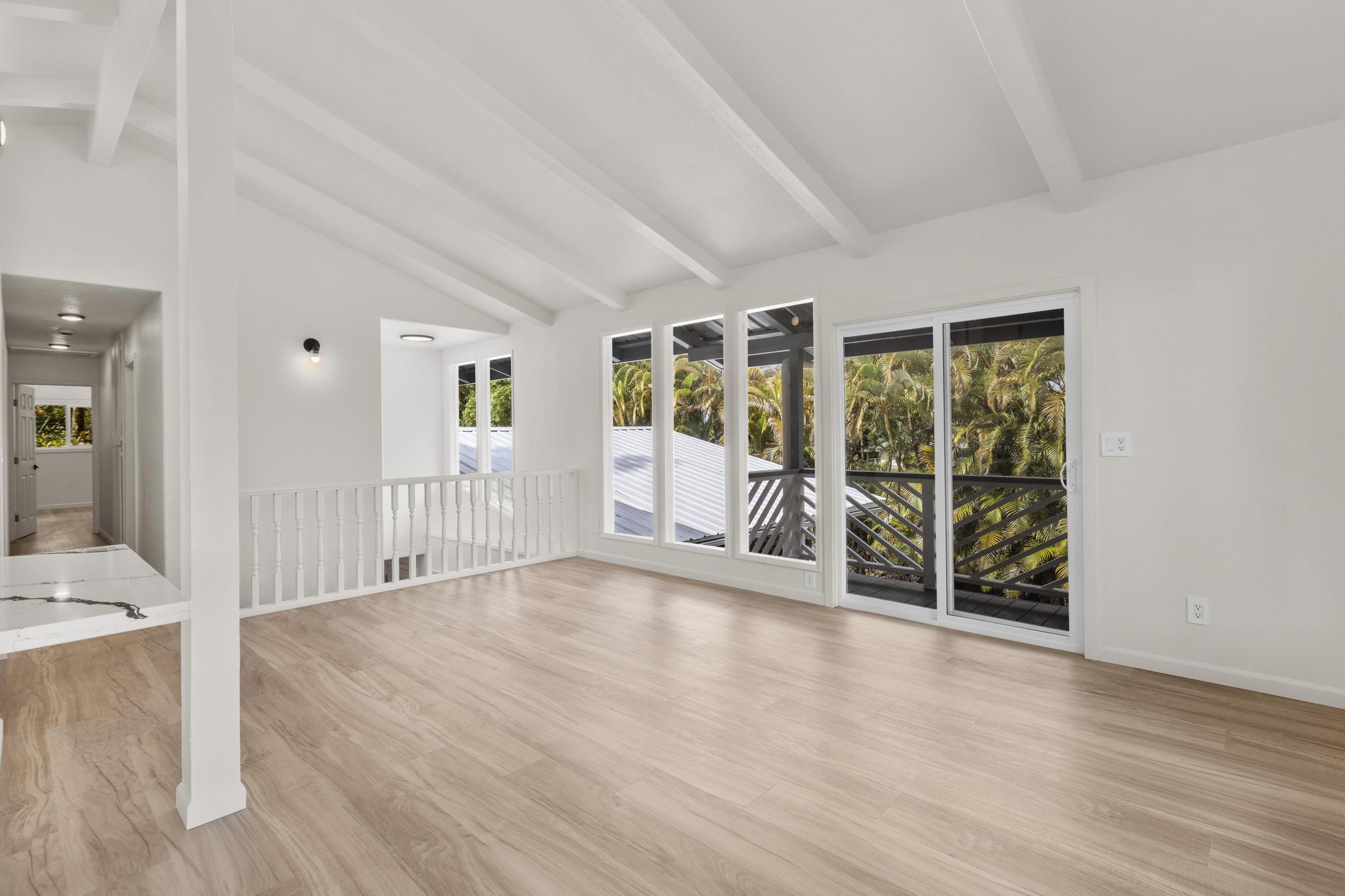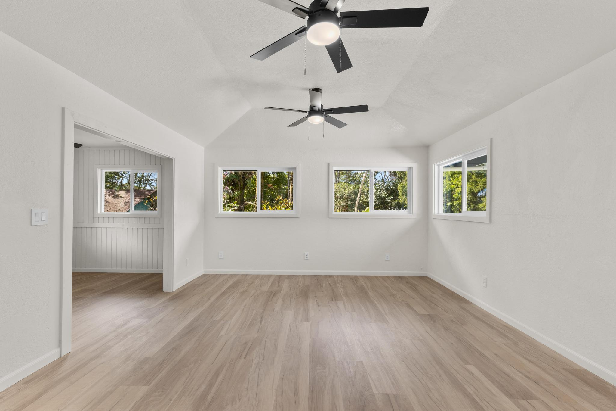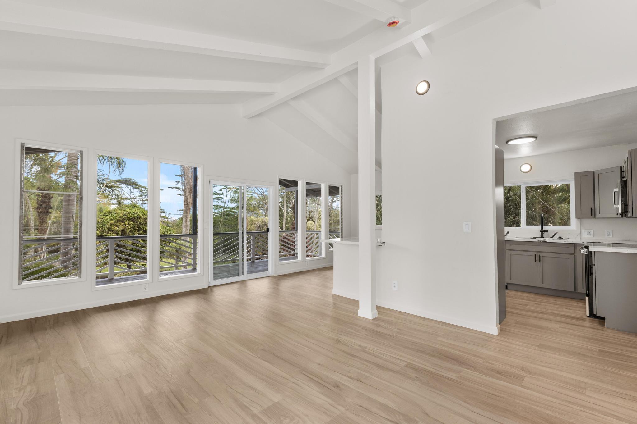 Whether you're looking to be a homeowner or investor, this property offers lucrative potential. With large living spaces and multiple units, you can have several income streams on one parcel. This property is huge! With approximately 2,500 sq ft under the main roof, plus a detached 1bed/1bath unit, this property totals 2,830 sq ft. The layout includes: - Upstairs Unit: 3 bed / 2 bath main residence - Downstairs Unit A: 2 bed / 1 bath - Downstairs Unit B: 1 bed / 1 bath - Downstairs Laundry/Utility Room - Detached ADU: 1 bed / 1 bath *Each unit has its own separate access The main living unit is upstairs – a bright 3-bedroom, 2-bath home with approximately 1,350 sq ft of living space. Big living room windows bring in steady natural light, and a wrap-around lanai with custom herringbone railing extends the living area outdoors. The primary suite could function as a separate apartment, with its own exterior entrance, walk-in closet, sitting room, and ensuite bath. The kitchen has been transformed with new cabinetry, stone countertops, and stainless steel appliances. Both bathrooms have also been completely renovated with new vanities, lights, flooring, fixtures, and toilets. Other renovations include: - Updated electrical and plumbing connections - New lighting, switches, and receptacles throughout - New interior doors, trim, and baseboards - Extensive drywall repair and full interior repaint - Structural repairs, including framing and exterior wood restoration - Roof cleaned, treated, and coated - Exterior siding repaired and repainted **The property is served by a new covered 20,000-gallon catchment system, which is big enough to provide an ample water supply to all units on the property. This property is perfect for any investor seeking multiple income streams. With four rentable units and renovation work already completed, you just need to focus on occupancy and cash flow!