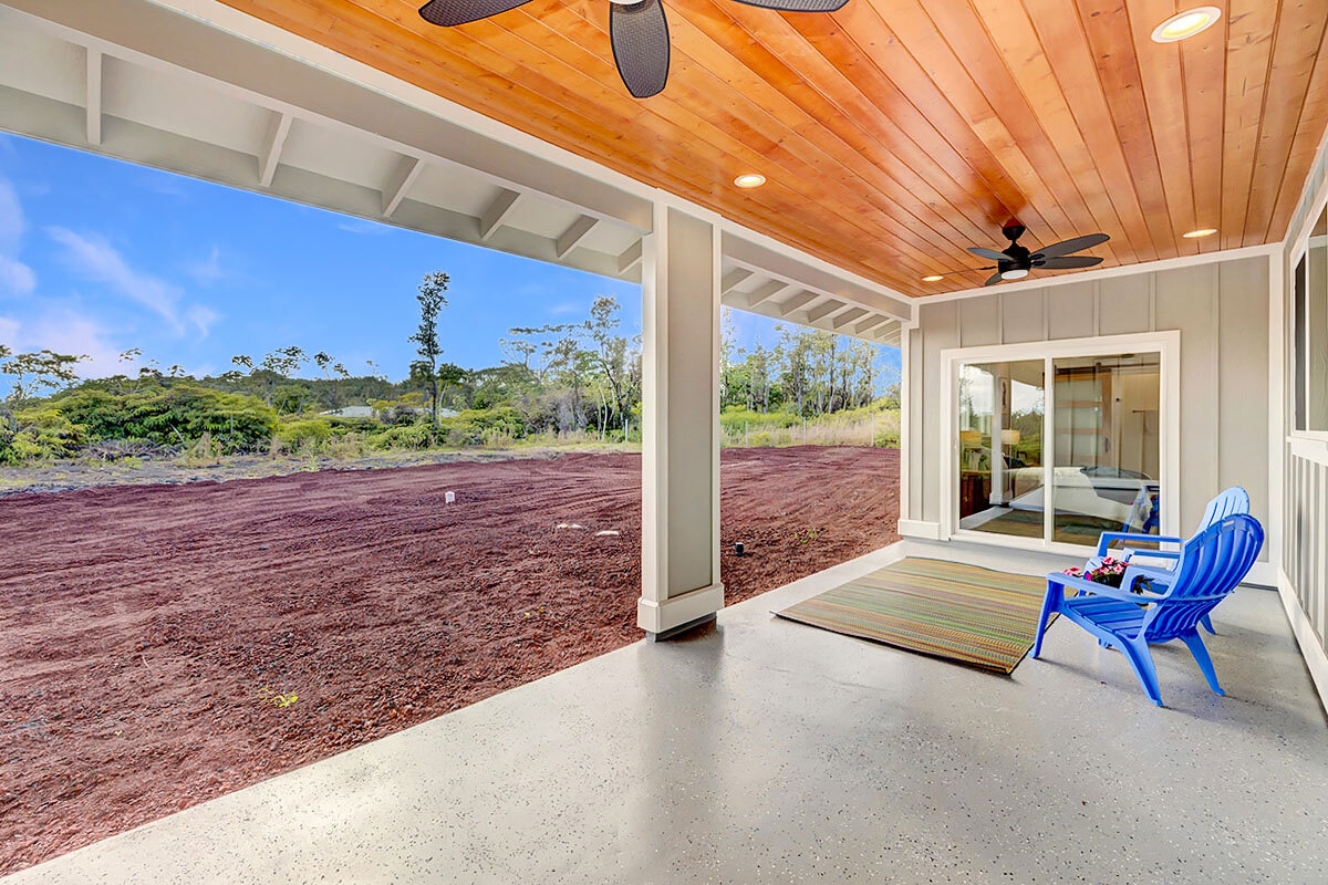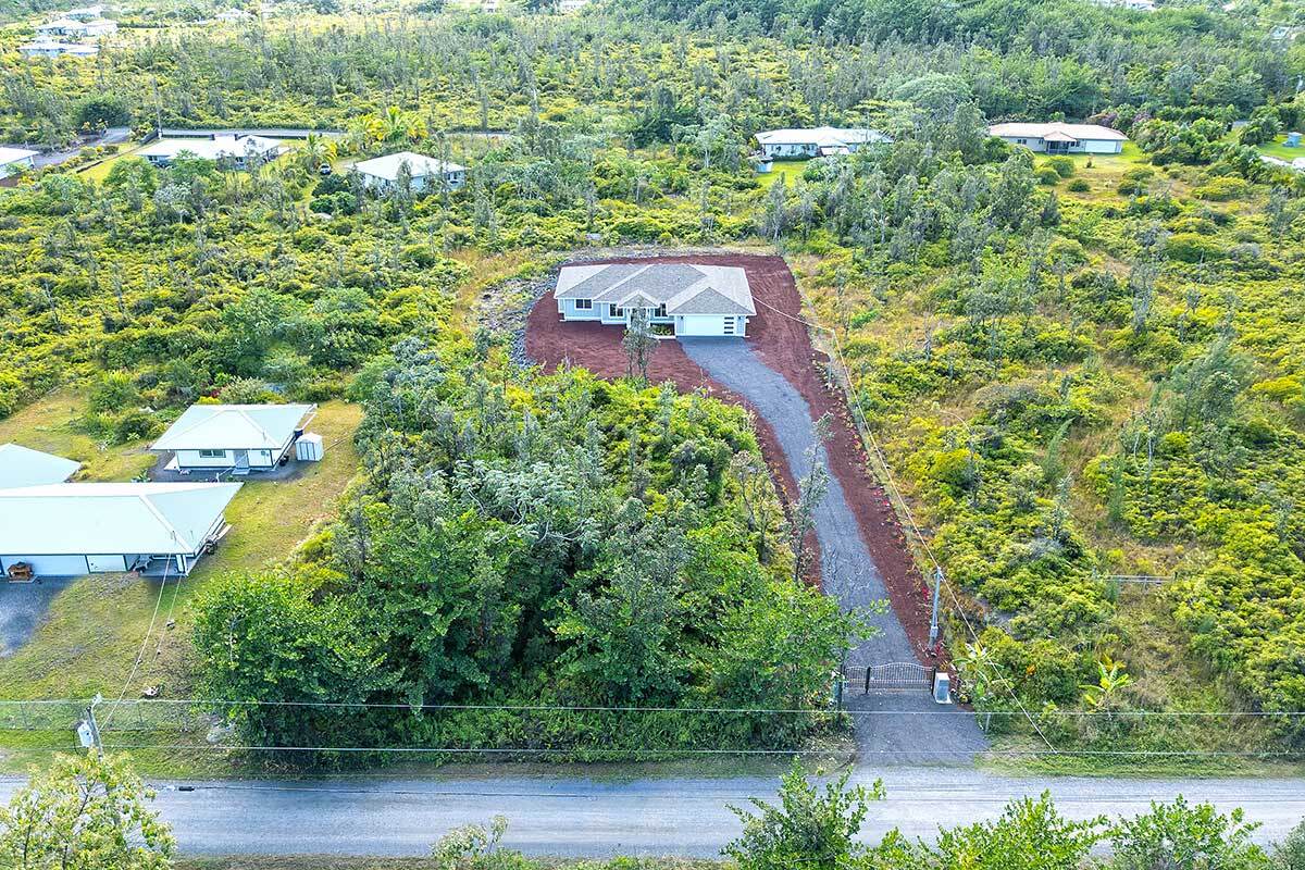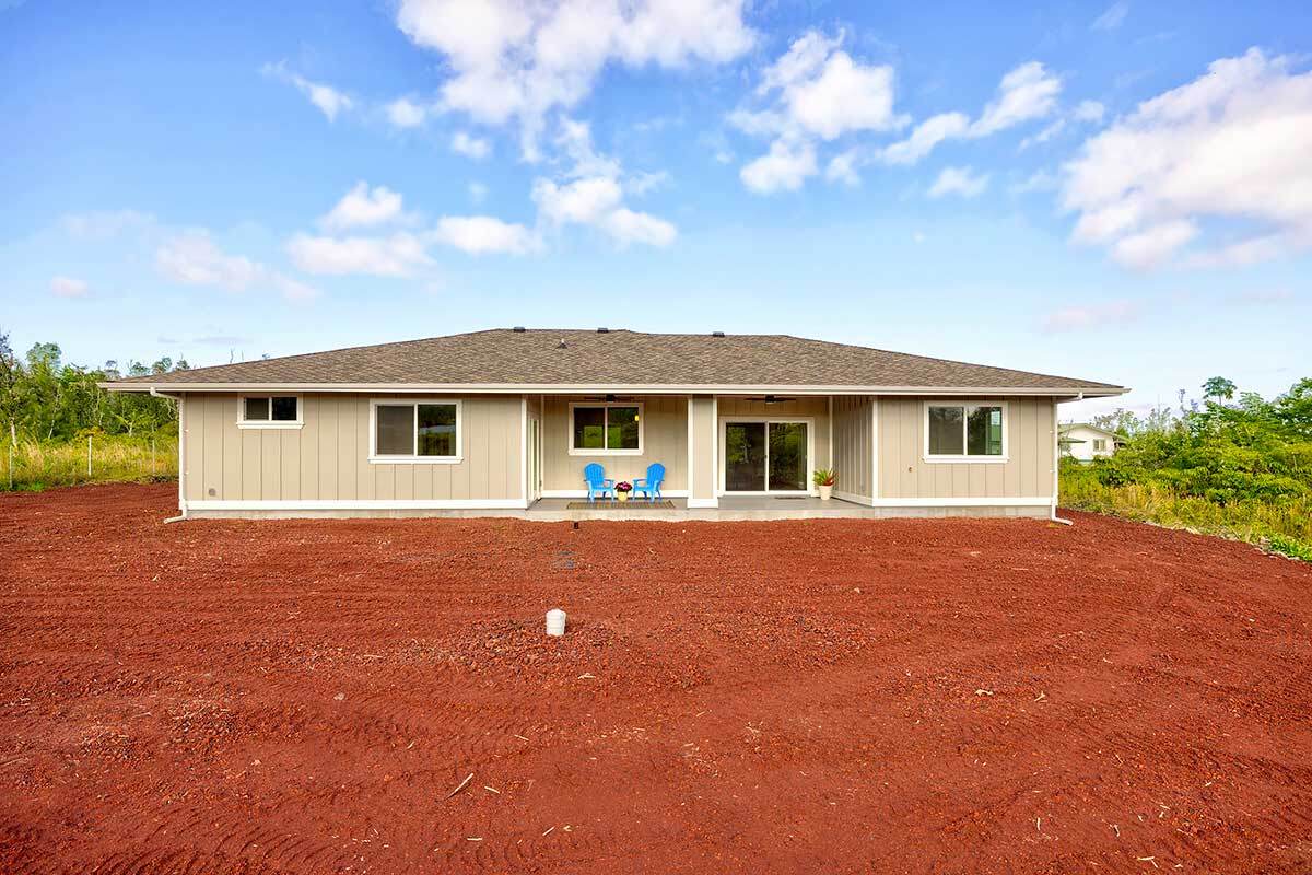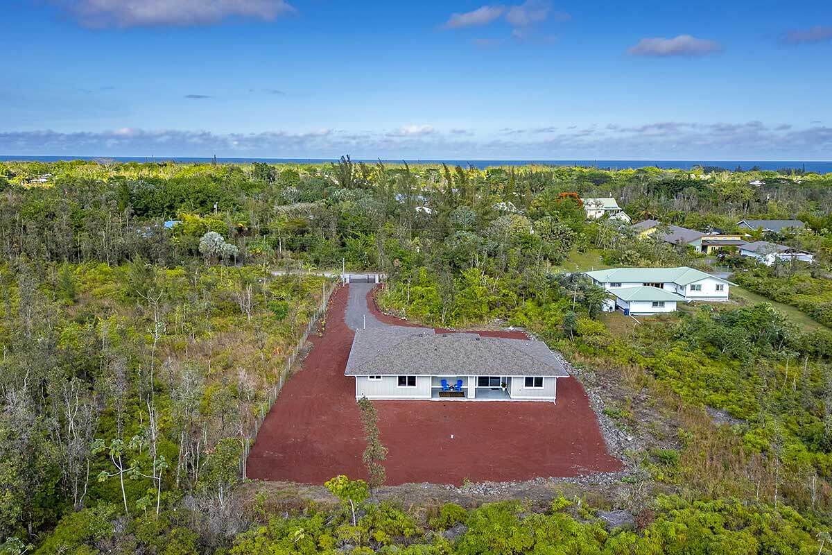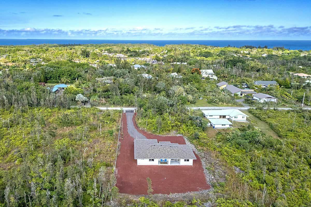 Discover an exceptional opportunity in the oceanside community of Hawaiian Paradise Park on the East side of the Big Island of Hawai?i. This custom-built, single-level home offers 1,973 square feet of thoughtfully designed living space on a private 1-acre lot along 2nd Avenue, surrounded by other quality custom homes and located just a short distance from the ocean. This inviting residence features 3 spacious bedrooms and 2.5 bathrooms. The primary suite is a true retreat, offering a large en-suite bathroom with a large walk-in shower accented by custom tile to the ceiling, private water closet area, and dual sinks. The generous walk-in closet provides excellent storage. The open, split floor plan enhances privacy and comfort, with the two guest bedrooms featuring large picture windows with greenery views, and one with a built-in desk area–ideal for guests or a home office. The well-appointed kitchen showcases shaker-style wood cabinetry, stainless steel appliances, quartz countertops, and a large island with pendant lighting and bar seating, making it perfect for everyday living and entertaining. There is an extra-large panty you will love! Interior features include nine-foot walls with soffit ceilings, tongue-and-groove pine ceiling accents, recessed lighting, and durable vinyl and ceramic flooring throughout. Step outside to a large covered back lanai, offering a peaceful space to relax and enjoy the surroundings. Practical amenities include a spacious attached two-car garage with additional storage, a finished floor and a 220-volt electric charger. There is a large, dedicated laundry room with more storage. The home is serviced by a private well with UV water filtration, features Certified Presidential Shingle roofing for longevity, and Smart Board siding for durability. The expansive one-acre lot provides a blank canvas to create your own tropical oasis while enjoying proximity to the ocean and the lifestyle Hawaiian Paradise Park has to offer.
