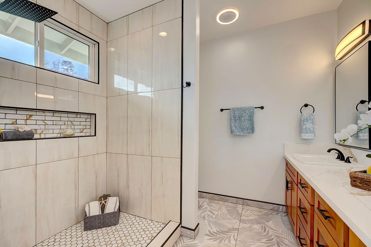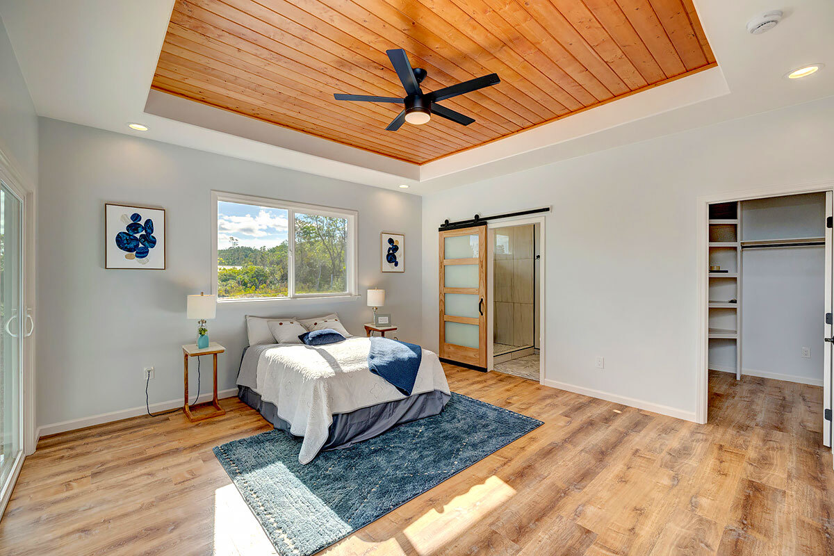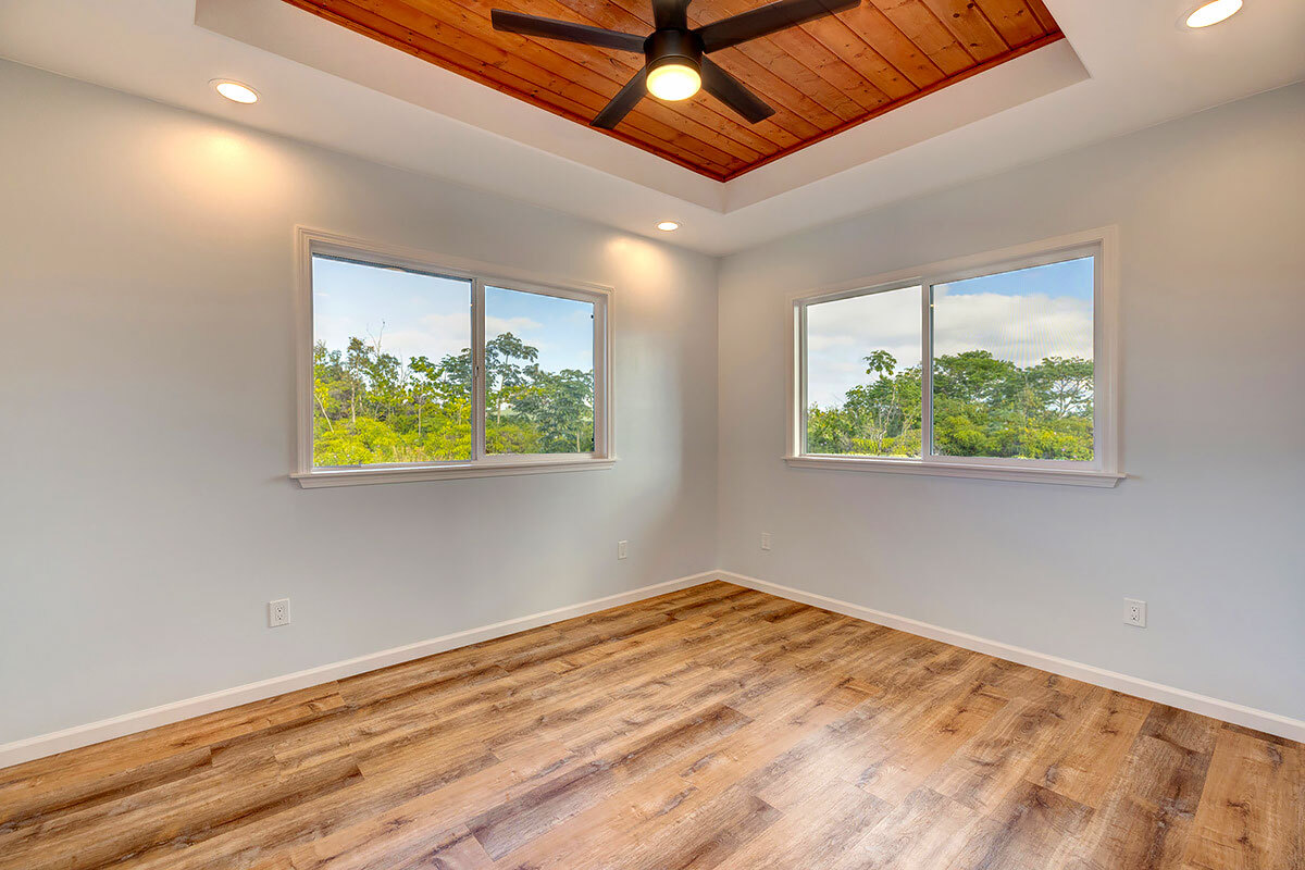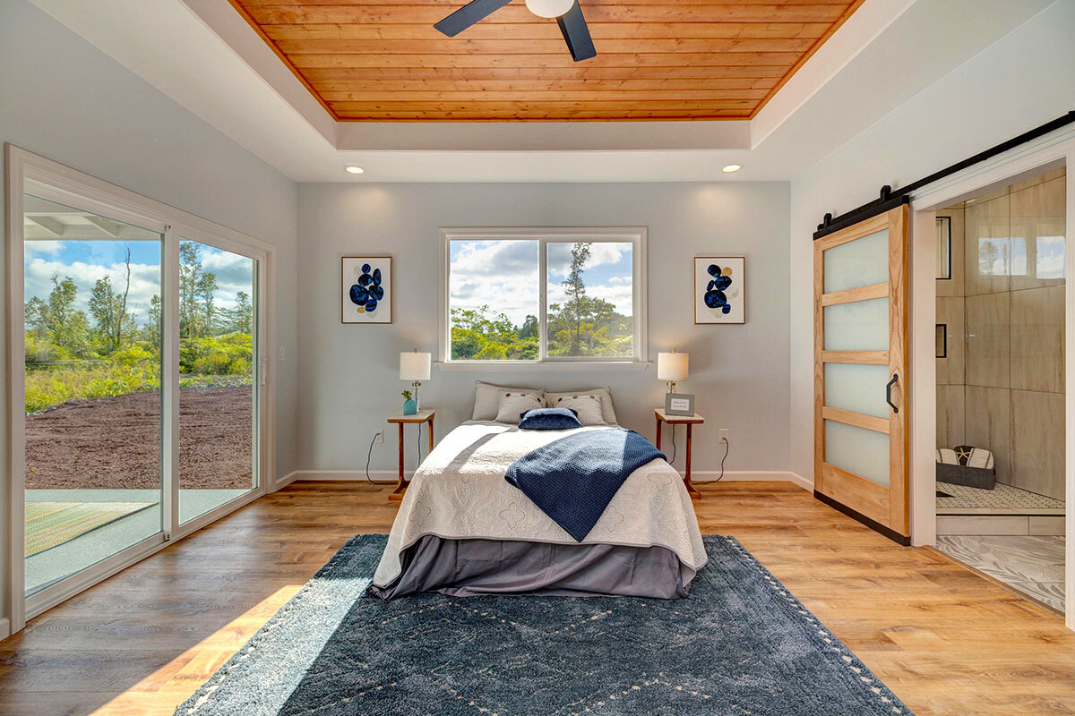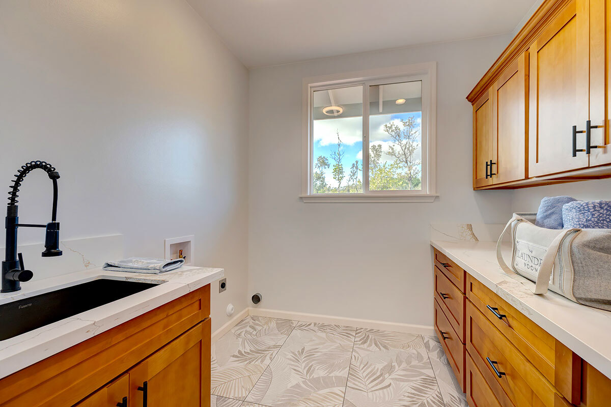 Discover an exceptional opportunity in the oceanside community of Hawaiian Paradise Park on the East side of the Big Island of Hawai?i. This custom-built, single-level home offers 1,973 square feet of thoughtfully designed living space on a private 1-acre lot along 2nd Avenue, surrounded by other quality custom homes and located just a short distance from the ocean. This inviting residence features 3 spacious bedrooms and 2.5 bathrooms. The primary suite is a true retreat, offering a large en-suite bathroom with a large walk-in shower accented by custom tile to the ceiling, private water closet area, and dual sinks. The generous walk-in closet provides excellent storage. The open, split floor plan enhances privacy and comfort, with the two guest bedrooms featuring large picture windows with greenery views, and one with a built-in desk area–ideal for guests or a home office. The well-appointed kitchen showcases shaker-style wood cabinetry, stainless steel appliances, quartz countertops, and a large island with pendant lighting and bar seating, making it perfect for everyday living and entertaining. There is an extra-large panty you will love! Interior features include nine-foot walls with soffit ceilings, tongue-and-groove pine ceiling accents, recessed lighting, and durable vinyl and ceramic flooring throughout. Step outside to a large covered back lanai, offering a peaceful space to relax and enjoy the surroundings. Practical amenities include a spacious attached two-car garage with additional storage, a finished floor and a 220-volt electric charger. There is a large, dedicated laundry room with more storage. The home is serviced by a private well with UV water filtration, features Certified Presidential Shingle roofing for longevity, and Smart Board siding for durability. The expansive one-acre lot provides a blank canvas to create your own tropical oasis while enjoying proximity to the ocean and the lifestyle Hawaiian Paradise Park has to offer.