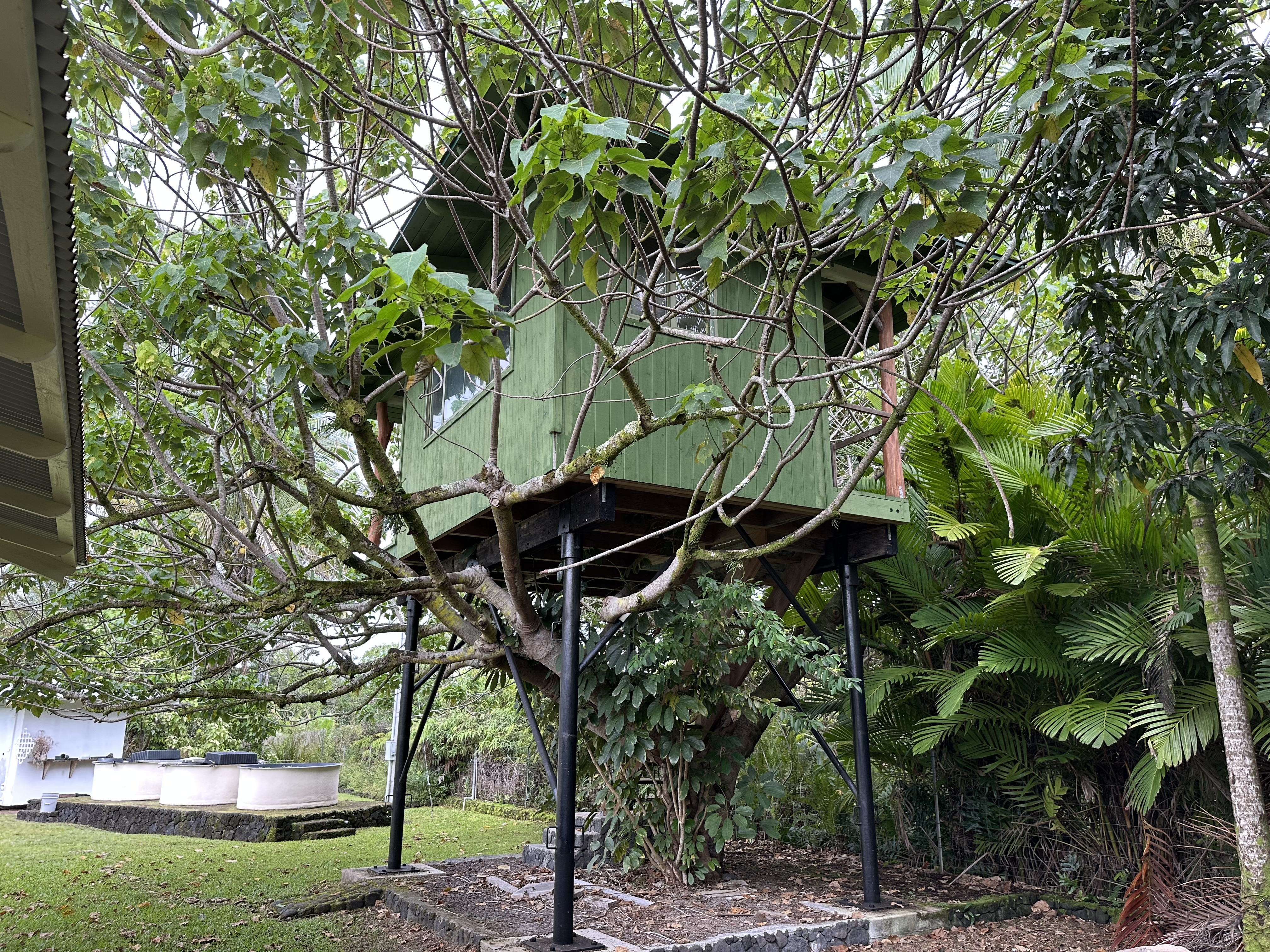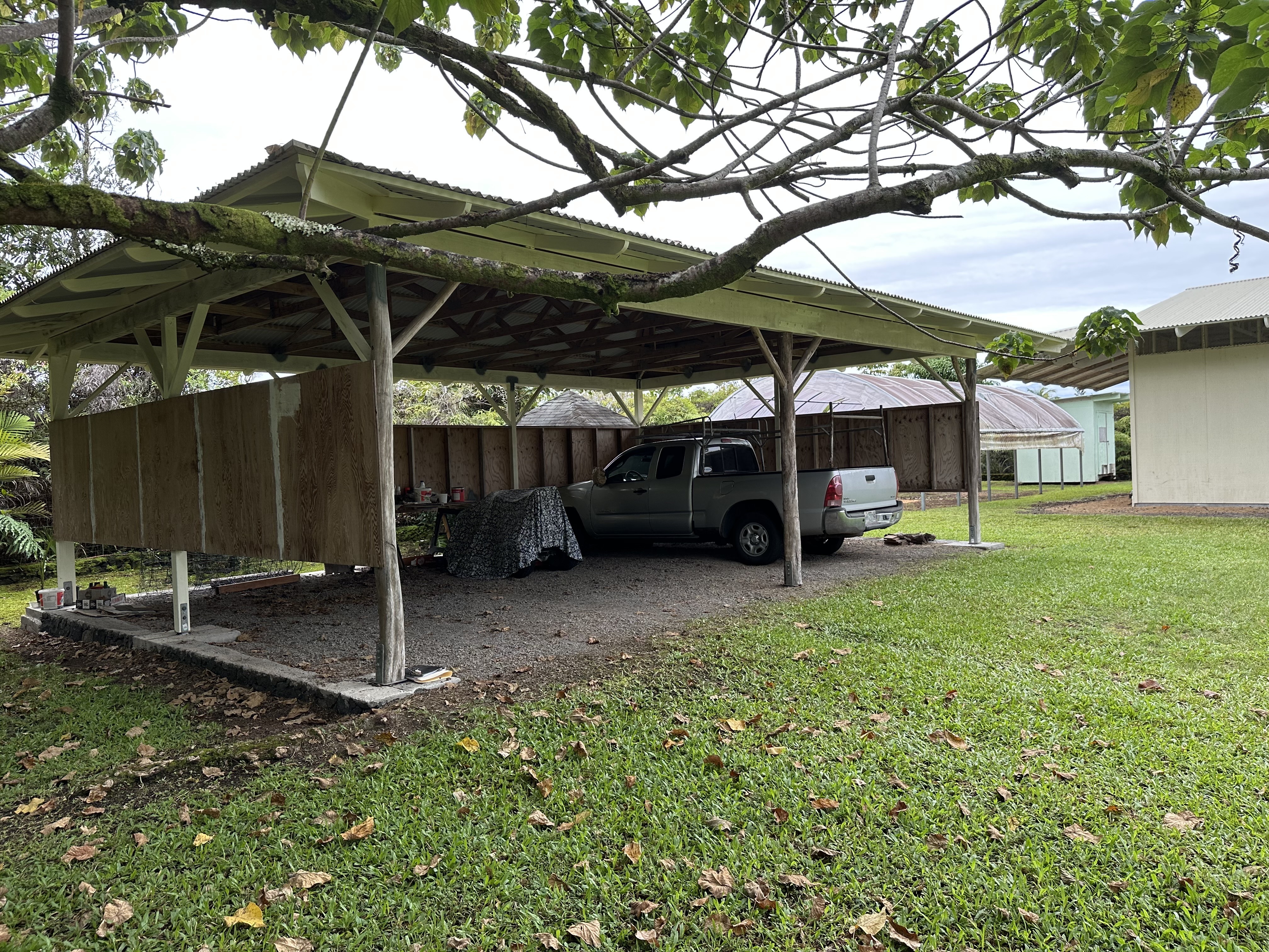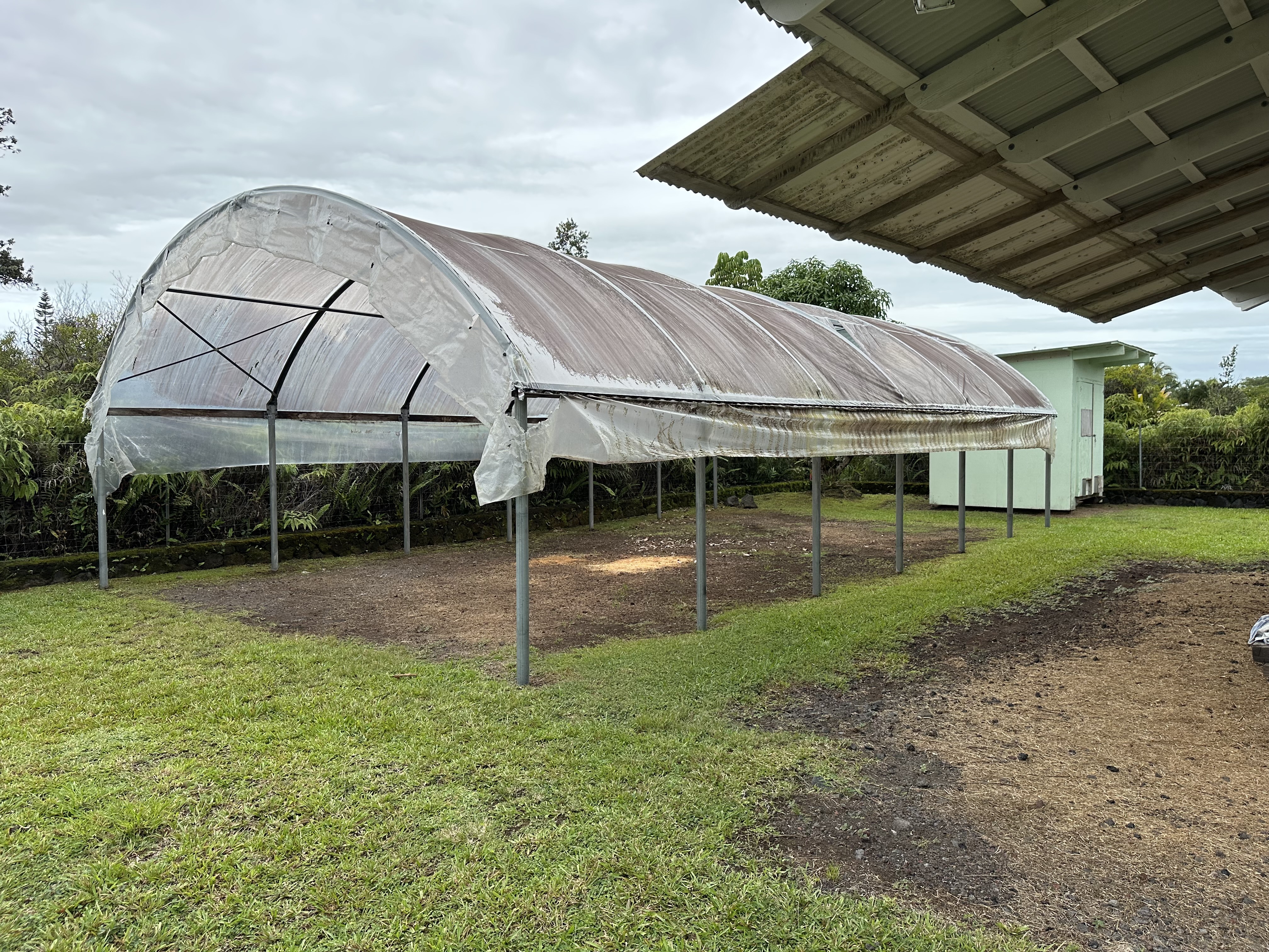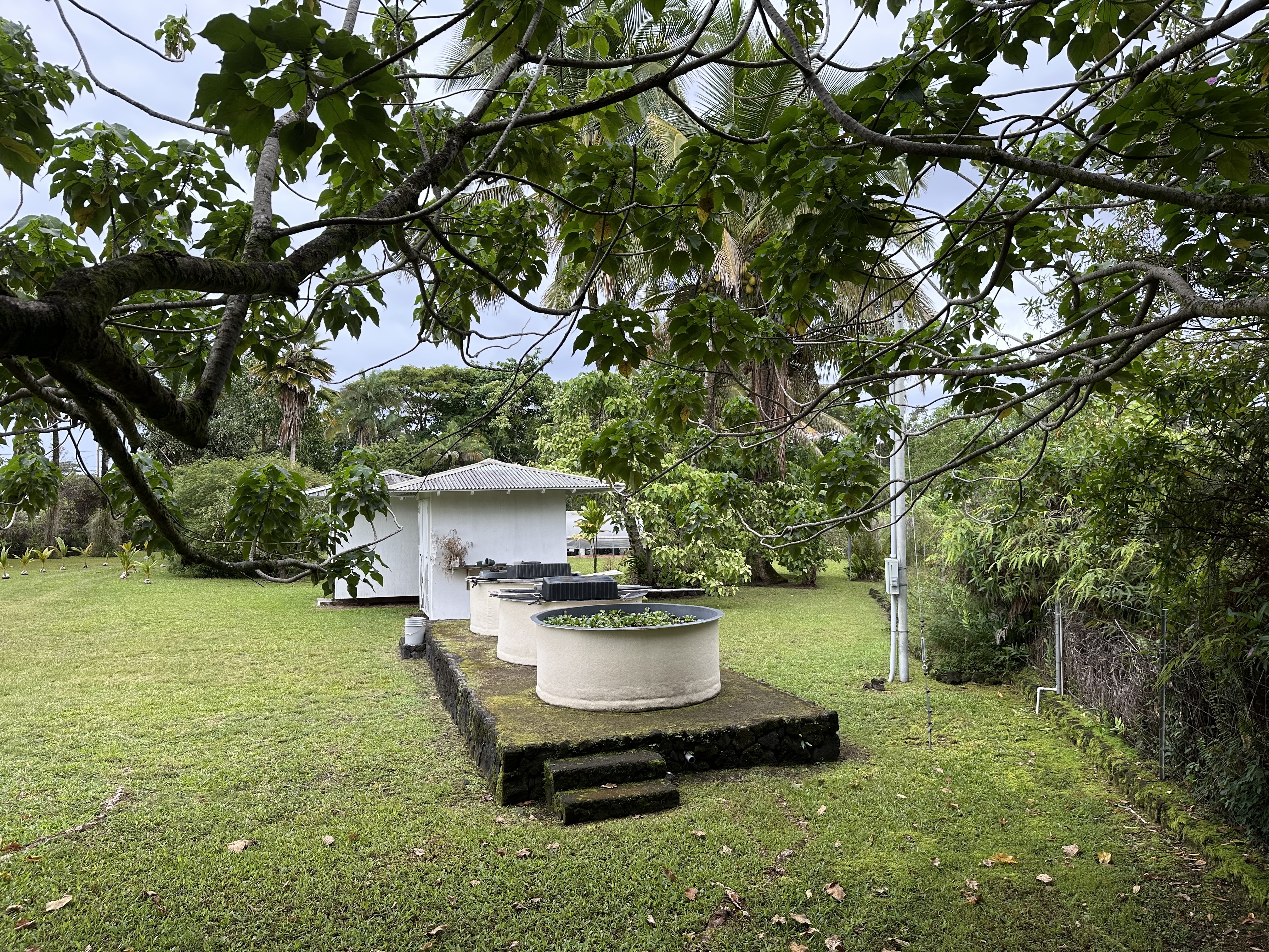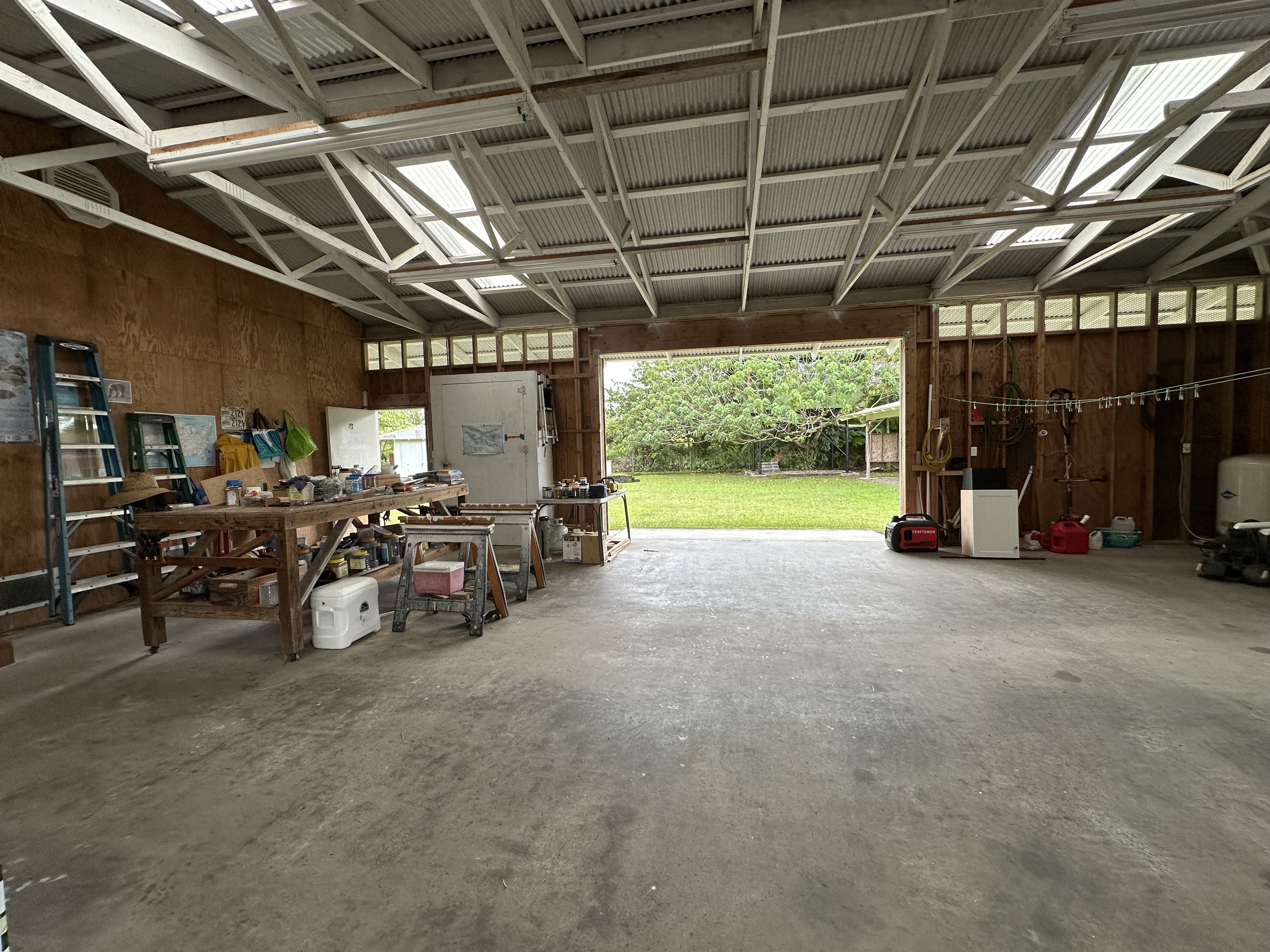 By appointment only. 2 TMK's are included in this sale (look at MLS 726997) . 15-1577 1st Ave. Loke is a 1,248 Permitted Ag building that opens up on both sides. There is an attached office that has a bath room, shower and sink. The shop has electricity and a well for water. Lots of mature fruit trees, a tree house, green houses, and 3 tubs for raising fish. Properties must be sold together and connect diagonally with access to the other property through a gated entrance. Both Properties are fully fenced.