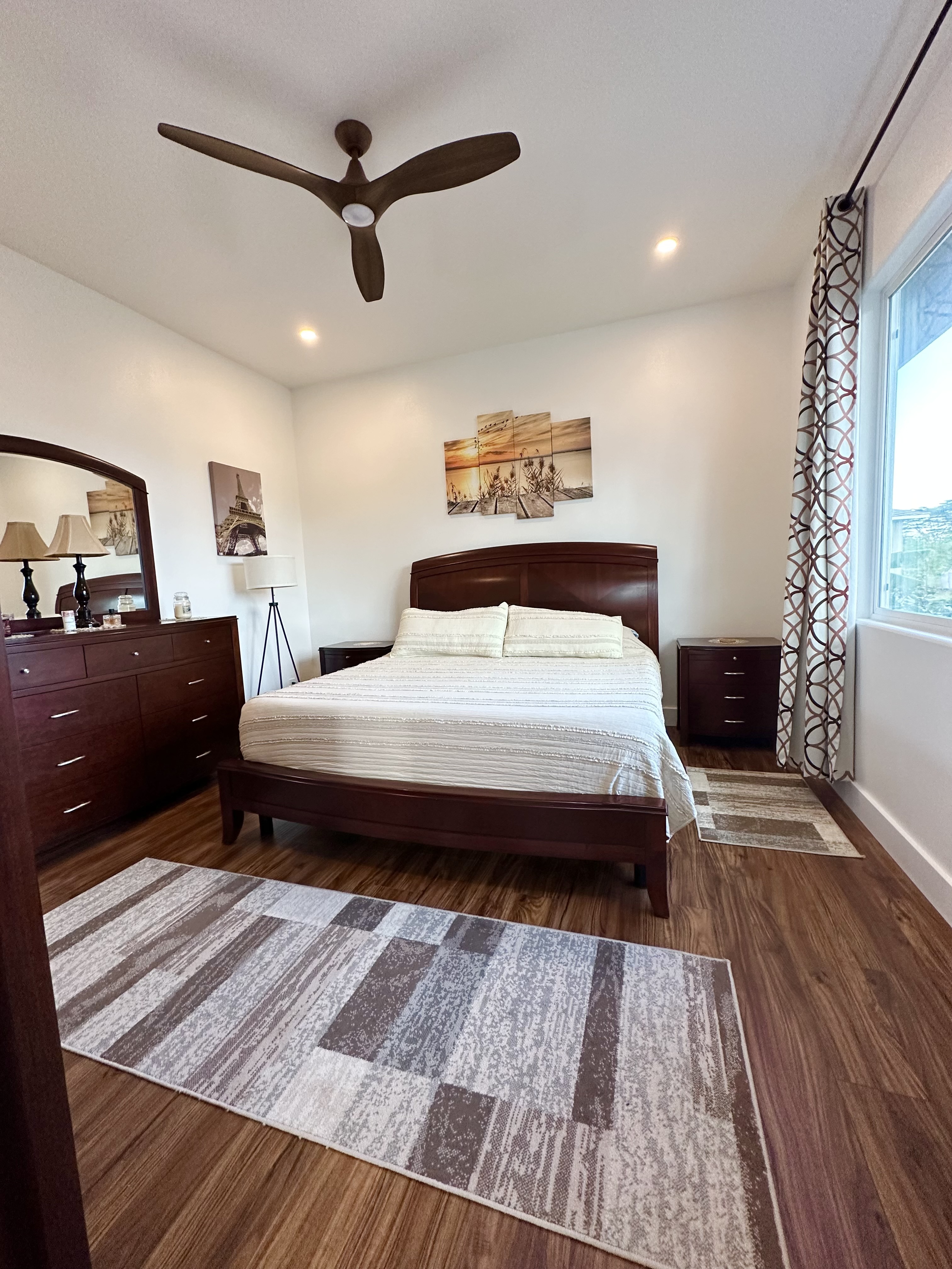 Location, location, location! Discover the best of Hawaiian living in this beautifully maintained property located just short walk to the coastline for sunrise walks and whale-watching. This charming single level home offers 10-foot plus ceiling throughout the entire floor plan, 8 feet doors and sliding doors, an oversized 2 car garage, an open concept layout living, dining, and kitchen, 4 master bedrooms with bathrooms and walking closets. As you enter the house, you will be welcomed to an open concept with plenty natural light, a beautiful custom kitchen that features quartz counter tops, stylish backsplash, stainless steel appliances, walking pantry, a large island 42’’ wide by 7’ long with breakfast bar that flows into the living room and makes it perfect for entertainment. Under roof 2,668 square foot, and living area is 1,858 square feet. Back lanai is a perfect area to gather and entertain as you enjoy the sounds of the ocean waves, and the breeze. The house offers a perfect airflow. The living area flows into a spacious kitchen and dining area, creating a comfortable environment for everyday living and entertaining. Looking for a full custom-built home for welcoming family, and friends, this spacious home offers it all. Everyone will love their private suit with their own bathroom and walking closet. The primary bedroom includes walking closet, dual sink vanity, walking shower and a sophisticated shower system and Bluetooth speaker system. Life-proof flooring in all bedrooms and closets, large back and front covered lanai, a laundry room with sink, cabinet, washer and dryer. The house is well insulated and has high end electrical features through the entire house. The property is fully fenced and has an automatic gate, a private well with excellent water quality and a paid in full solar system. The yard offers beautiful tropical plants, and fruit trees. All comments, data is provided by seller or seller's representatives.