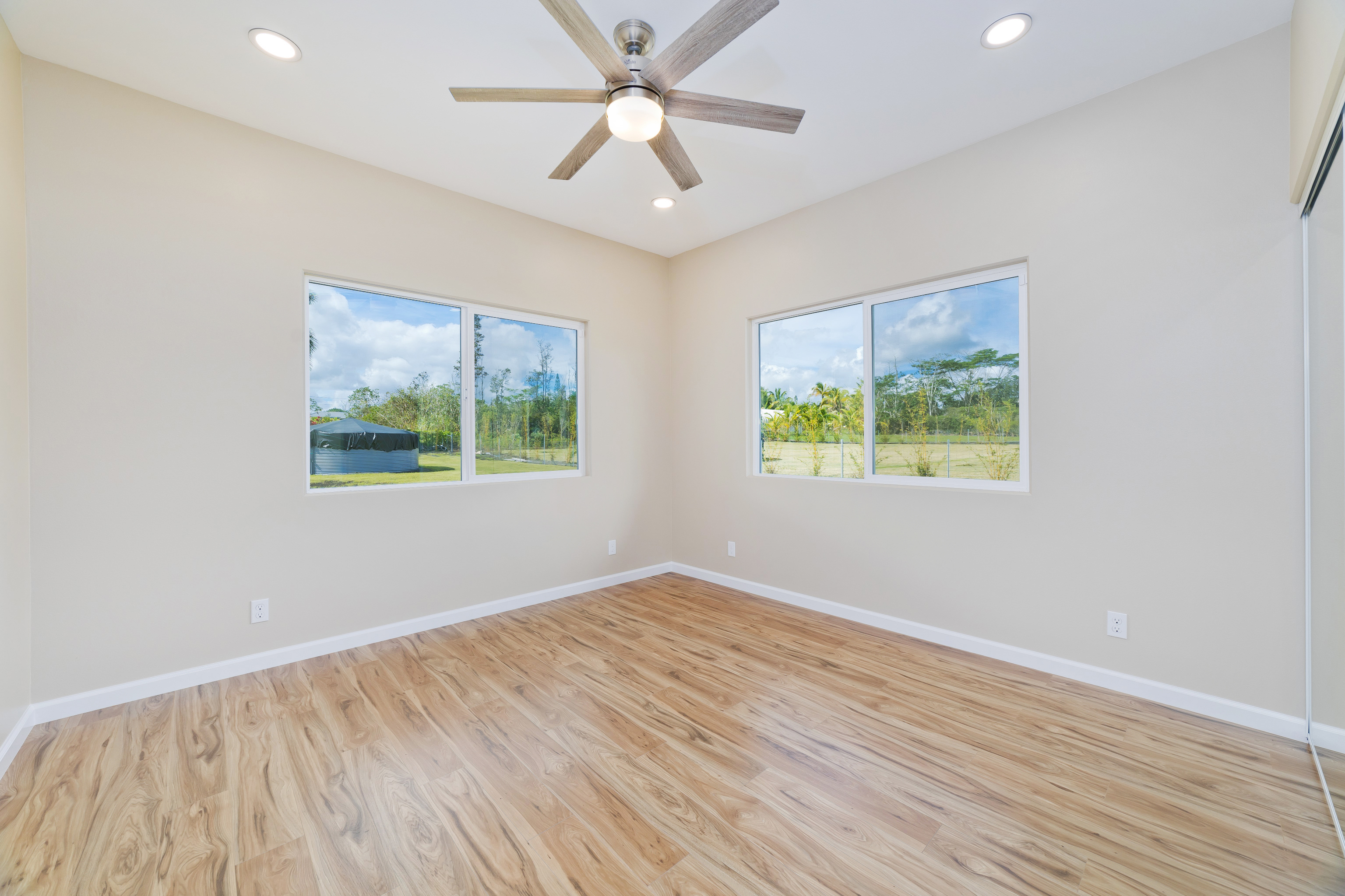 Be the first owner of this stunning, brand-new custom-built home located in the spacious and desirable Hawaiian Paradise Park (HPP). This exceptional property sits on a fully fenced, elevated 1-acre lot with mature privacy hedges and an established, growing yard, offering immediate security and tropical serenity.