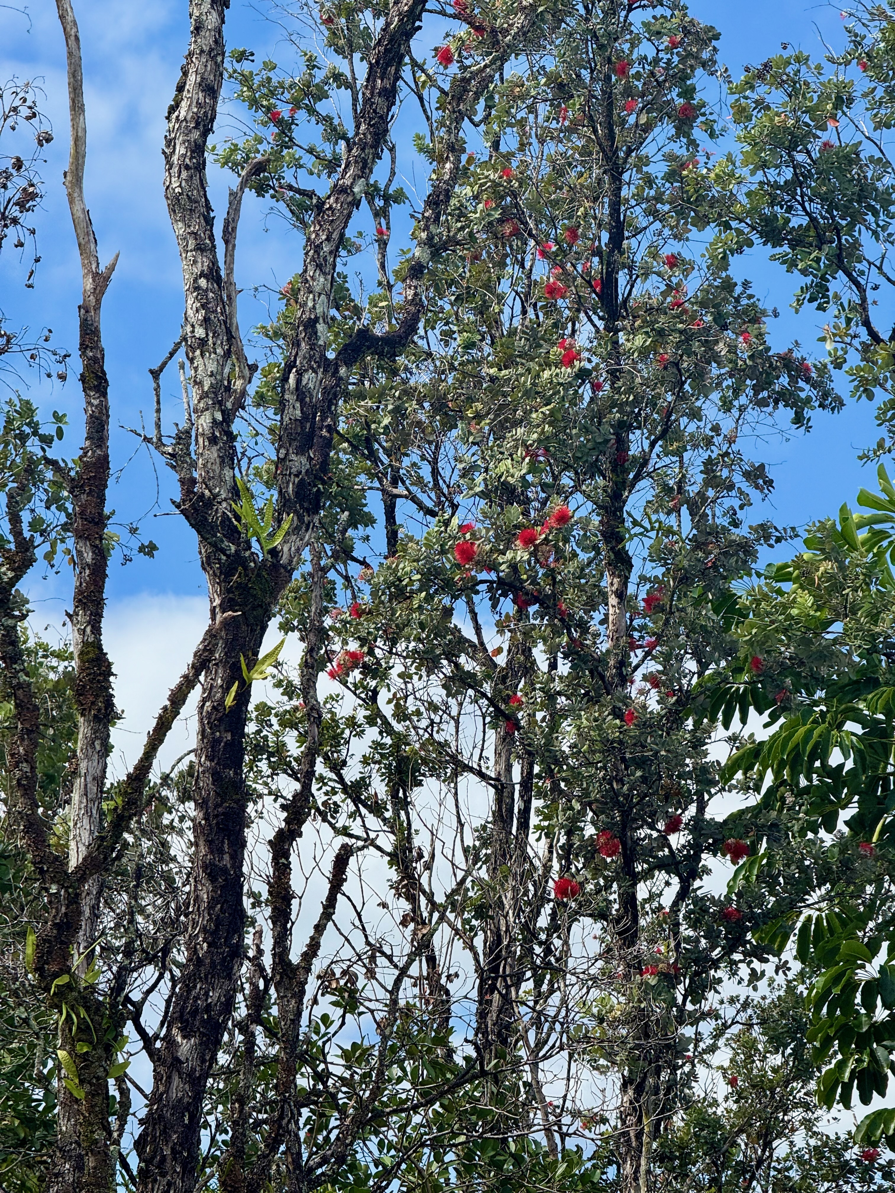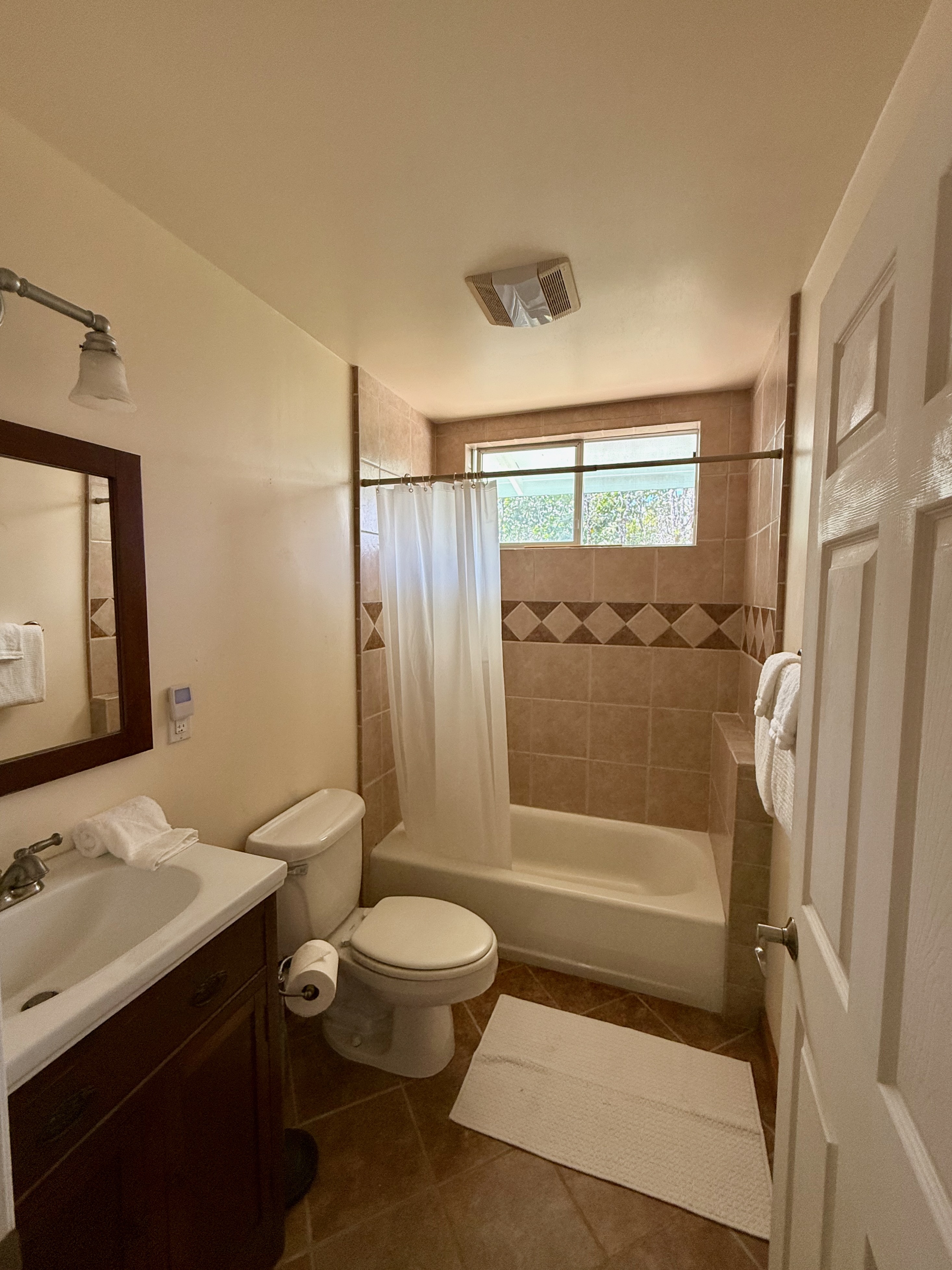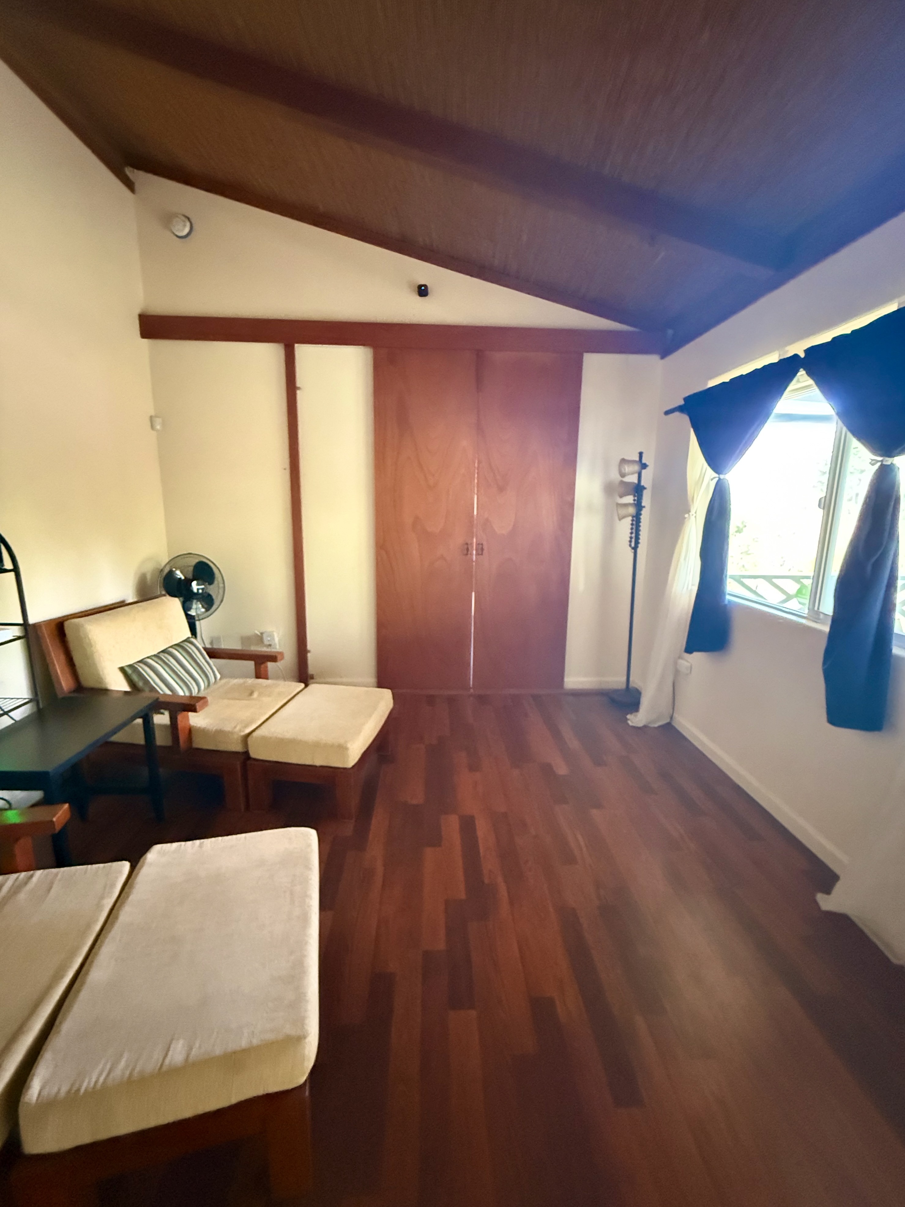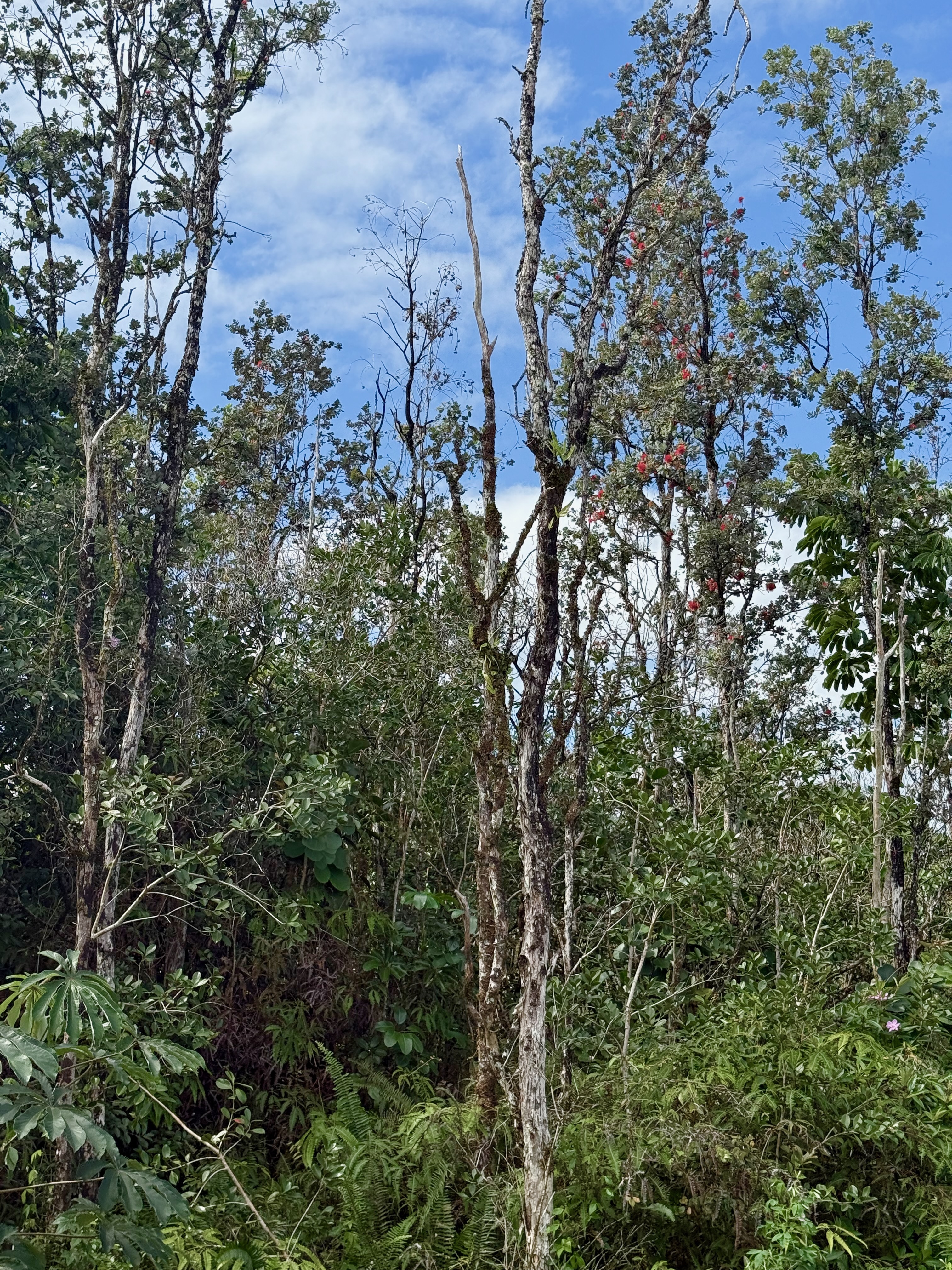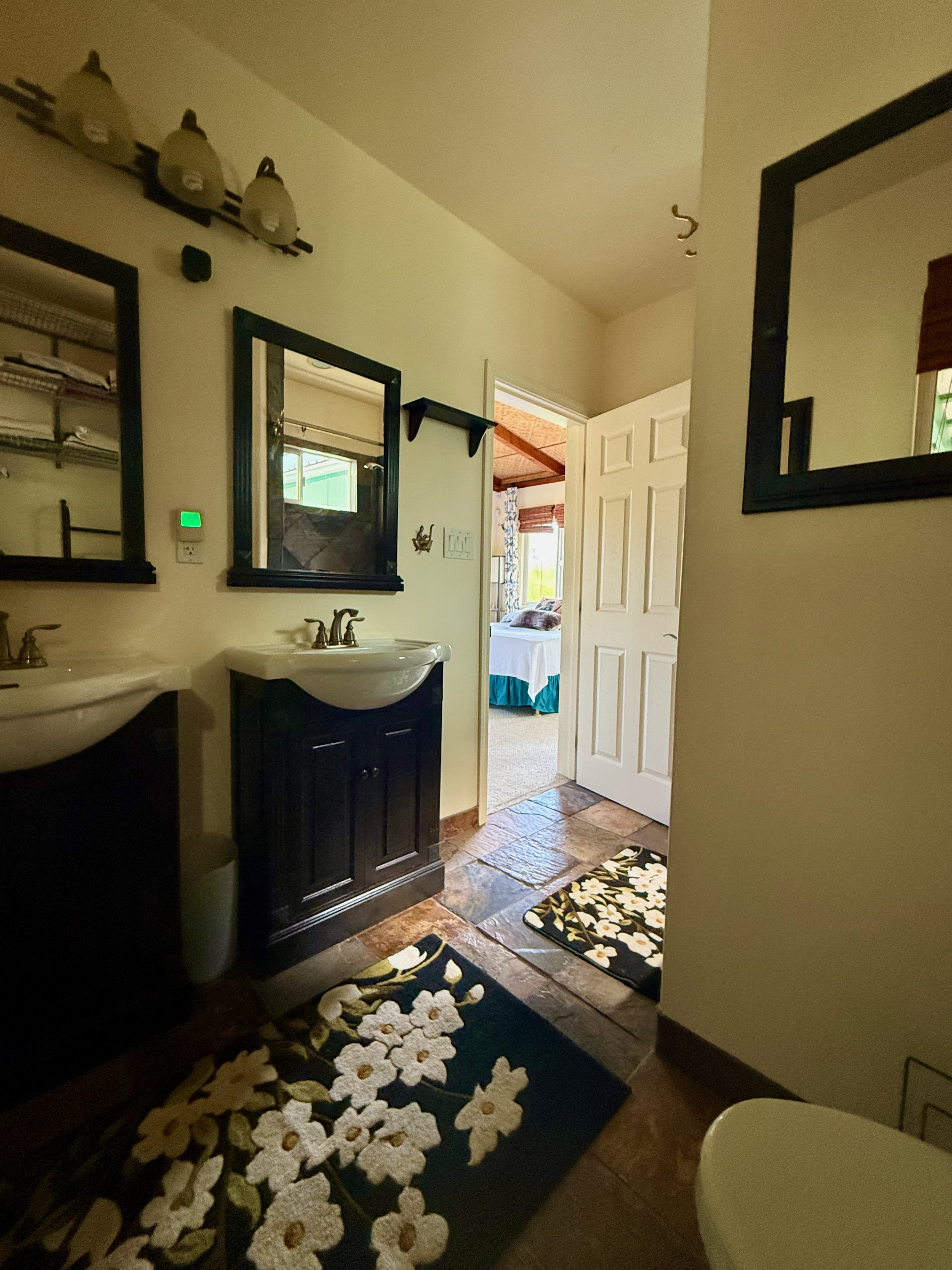 This versatile 3-bedroom, 2-bath home offers flexible living options as a single-family residence or income-producing rental. The home features high vaulted ceilings and both a front and back lanai, including a spacious screened-in back lanai overlooking a peaceful native ?Ohi?a forest, with the rear half-acre intentionally left in its natural, indigenous state. The front lanai features slate tile, providing an inviting entry and additional outdoor living space. A large passageway features a wet bar with two small refrigerators, (easily adaptable as a kitchenette) and large wooden shoji-style doors that create a semi-separate living area between the main house and the master bedroom and back lanai, allowing the property to function similarly to a duplex-style layout–ideal for multi-generational living, rental income, a home office, or a wellness practice such as massage or acupuncture. Located within one mile of the ocean in Hawaiian Paradise Park’s desirable “Sunbelt,” cooling trade winds provide year-round comfort. The main living area features durable laminate flooring, while the kitchen is finished with marble countertops. Two bedrooms share a full bathroom, and the spacious primary suite/master bedroom offers berber carpeting, a beautiful slate-tiled shower and floor, dual sinks, and a toilet and a bidet. Additional highlights include a vaulted 2-car garage with large storage closets, washer and dryer, utility sink, and automatic garage door opener for a ten foot high garage door. The front yard features a manicured lawn accented with tropical ornamental landscaping. Situated on one of the lower paved roads, the property also includes a full alarm system, and new Pergo flooring.
