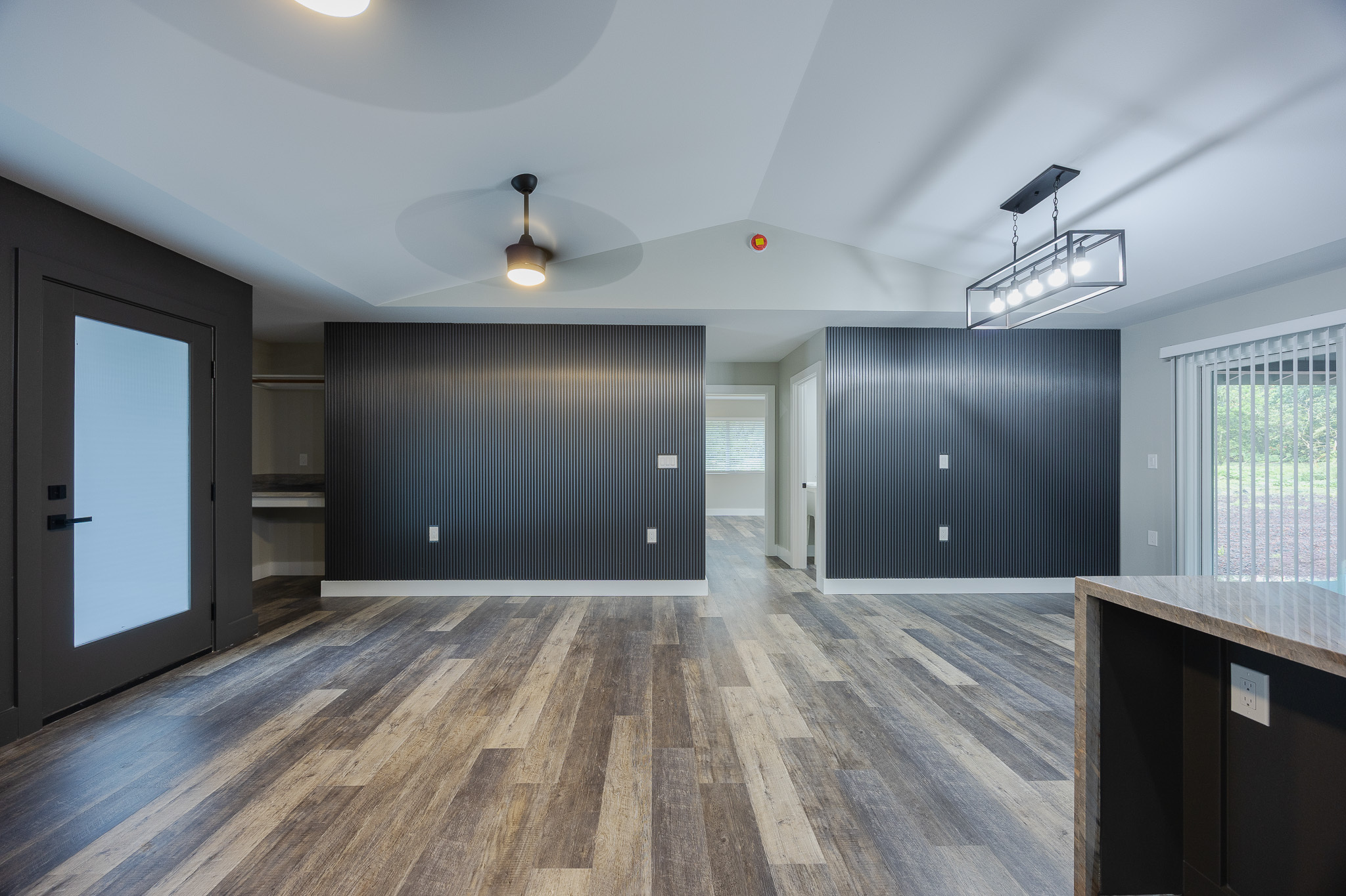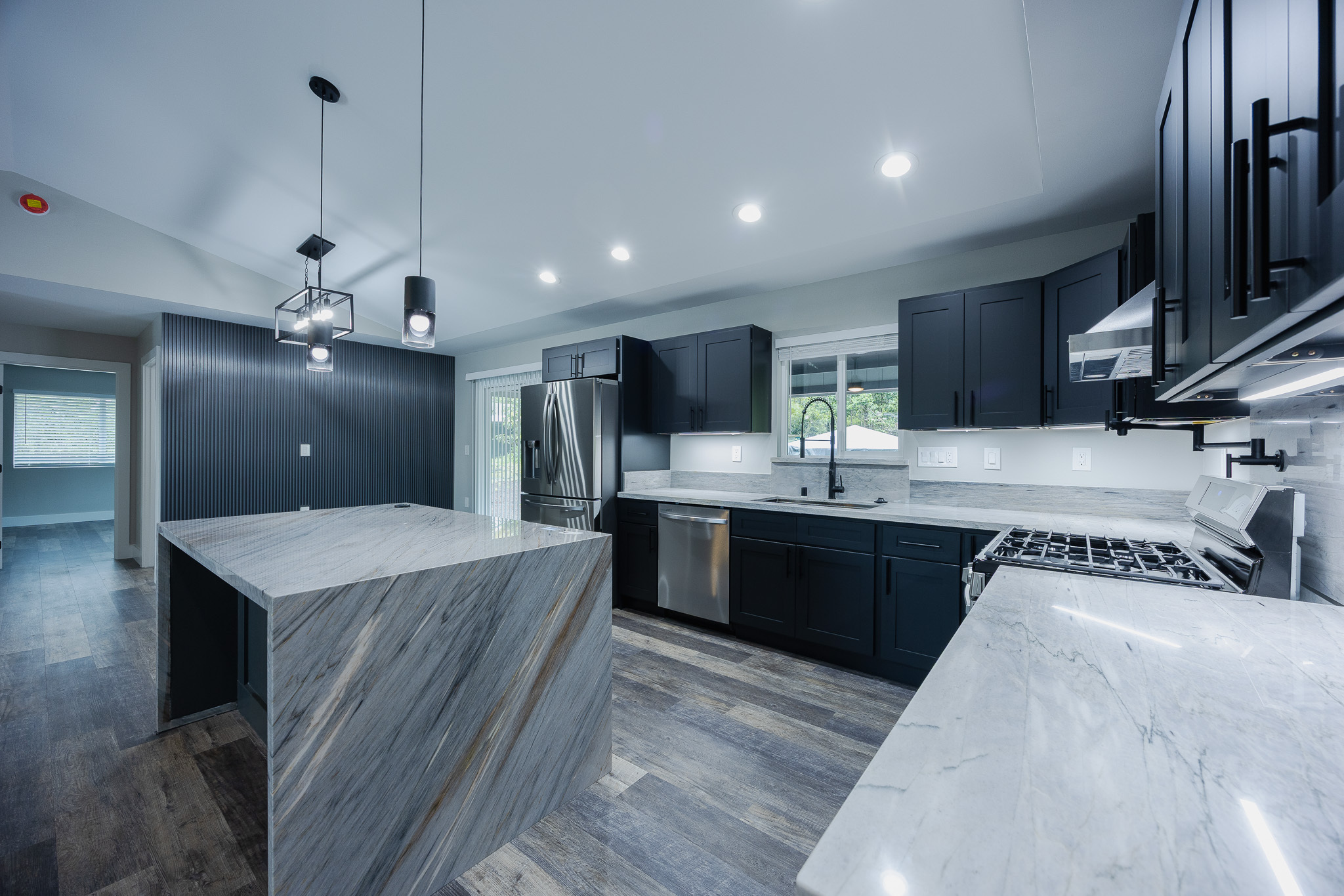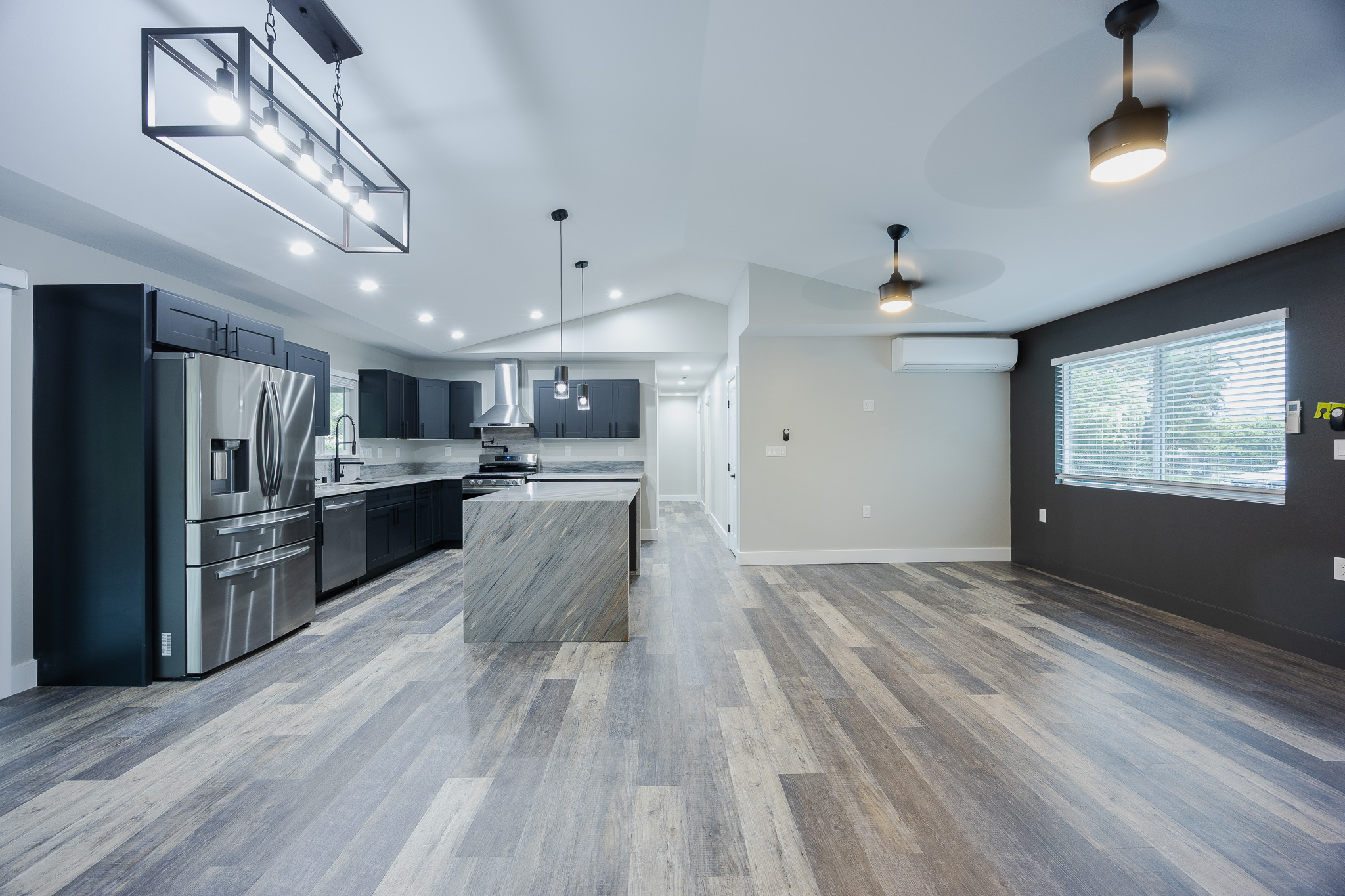 Experience modern island living in the Bold and Classy home, thoughtfully designed for comfort and style. The extra-large primary suite features a spacious walk-in closet, full bath, and convenient laundry room with front-loading machines just outside the door. The split floor plan provides privacy, with the living and dining areas separating the primary suite from two guest bedrooms, full bathroom, and a second master suite with it's own full bath. Enjoy the elegance of solid stone finishes throughout, wood slat accent walls, and all stainless steel appliances with a convertible wall-mount vent hood. Additional features include air conditioning, on-demand hot water, UV filtration, and modern design touches that elevate every space. Situated on one acre at the top of the subdivision, this home awaits you.
