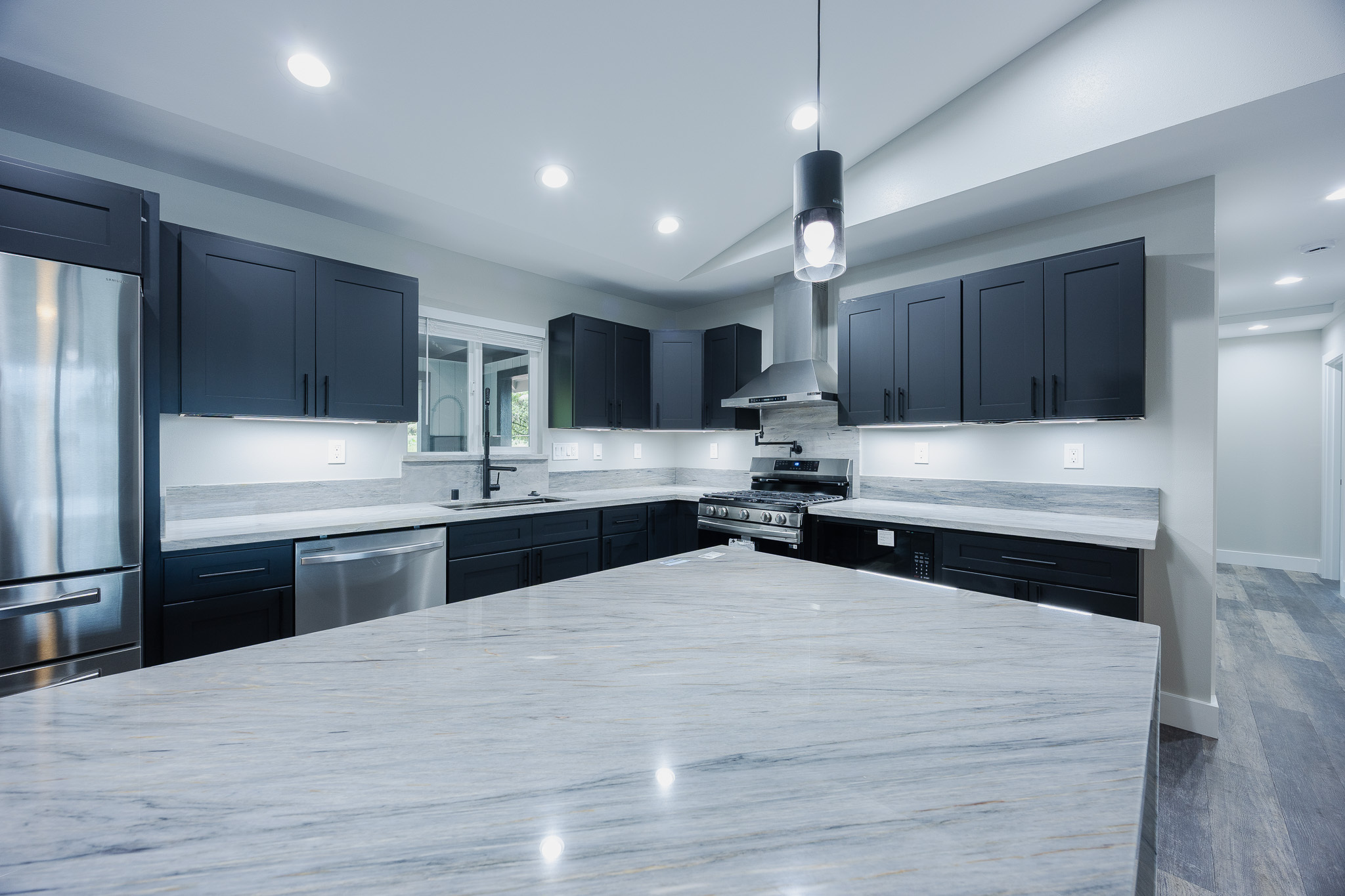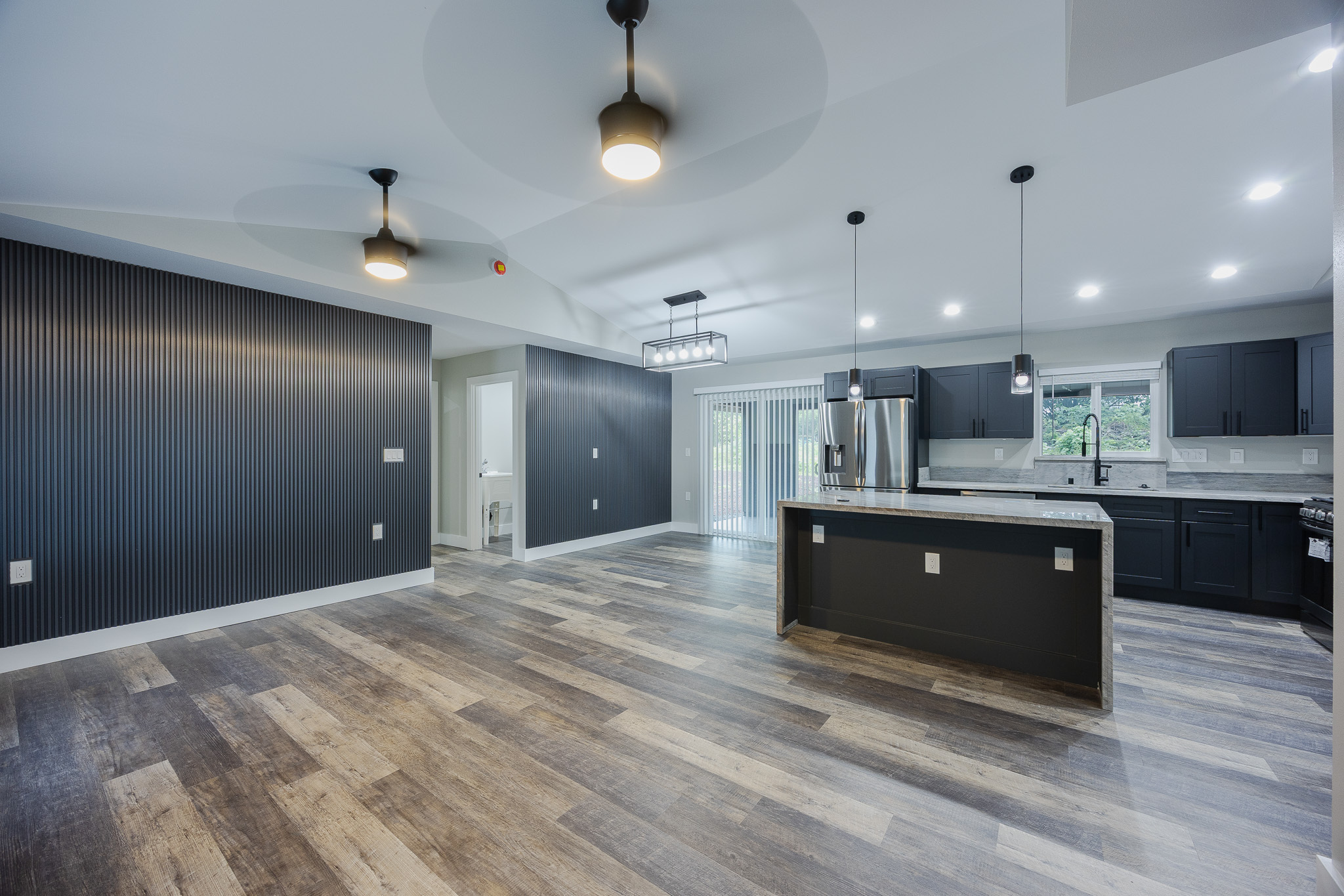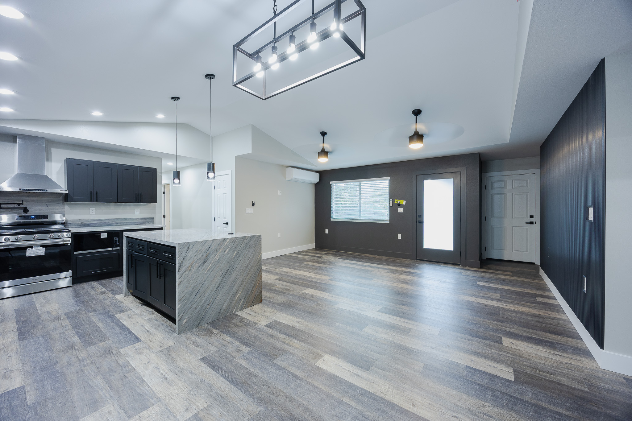 Experience modern island living in the Bold and Classy home, thoughtfully designed for comfort and style. The extra-large primary suite features a spacious walk-in closet, full bath, and convenient laundry room with front-loading machines just outside the door. The split floor plan provides privacy, with the living and dining areas separating the primary suite from two guest bedrooms, full bathroom, and a second master suite with it's own full bath. Enjoy the elegance of solid stone finishes throughout, wood slat accent walls, and all stainless steel appliances with a convertible wall-mount vent hood. Additional features include air conditioning, on-demand hot water, UV filtration, and modern design touches that elevate every space. Situated on one acre at the top of the subdivision, this home awaits you.
