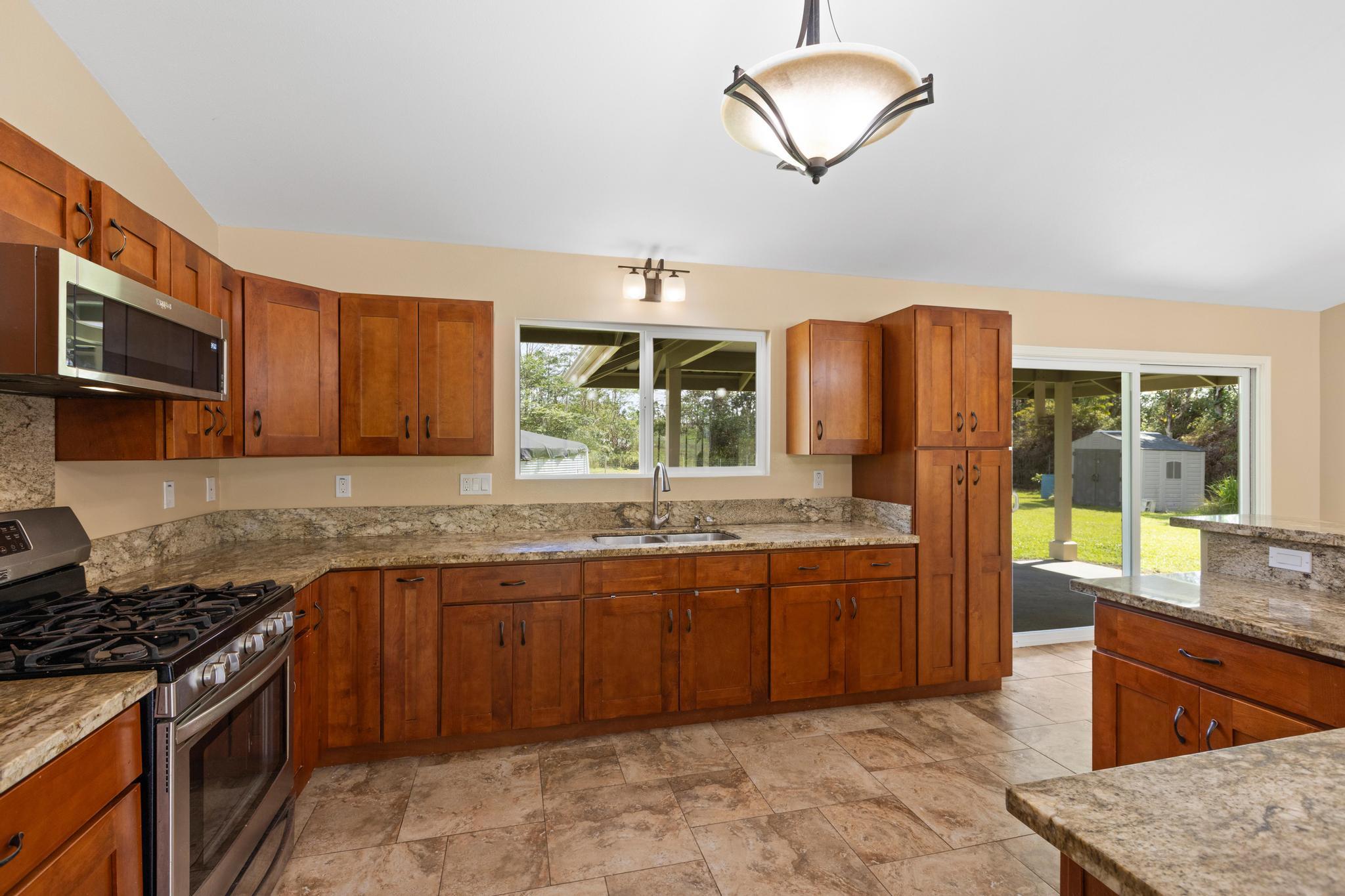 Welcome to 15-1691 21st Avenue, a beautifully maintained and energy-efficient home offering comfort, privacy, and sustainability in the heart of Hawaiian Paradise Park. This fully cleared and gated property features nearly 1,700 square feet of living space, designed with a thoughtful split floor plan ideal for both privacy and entertaining.
