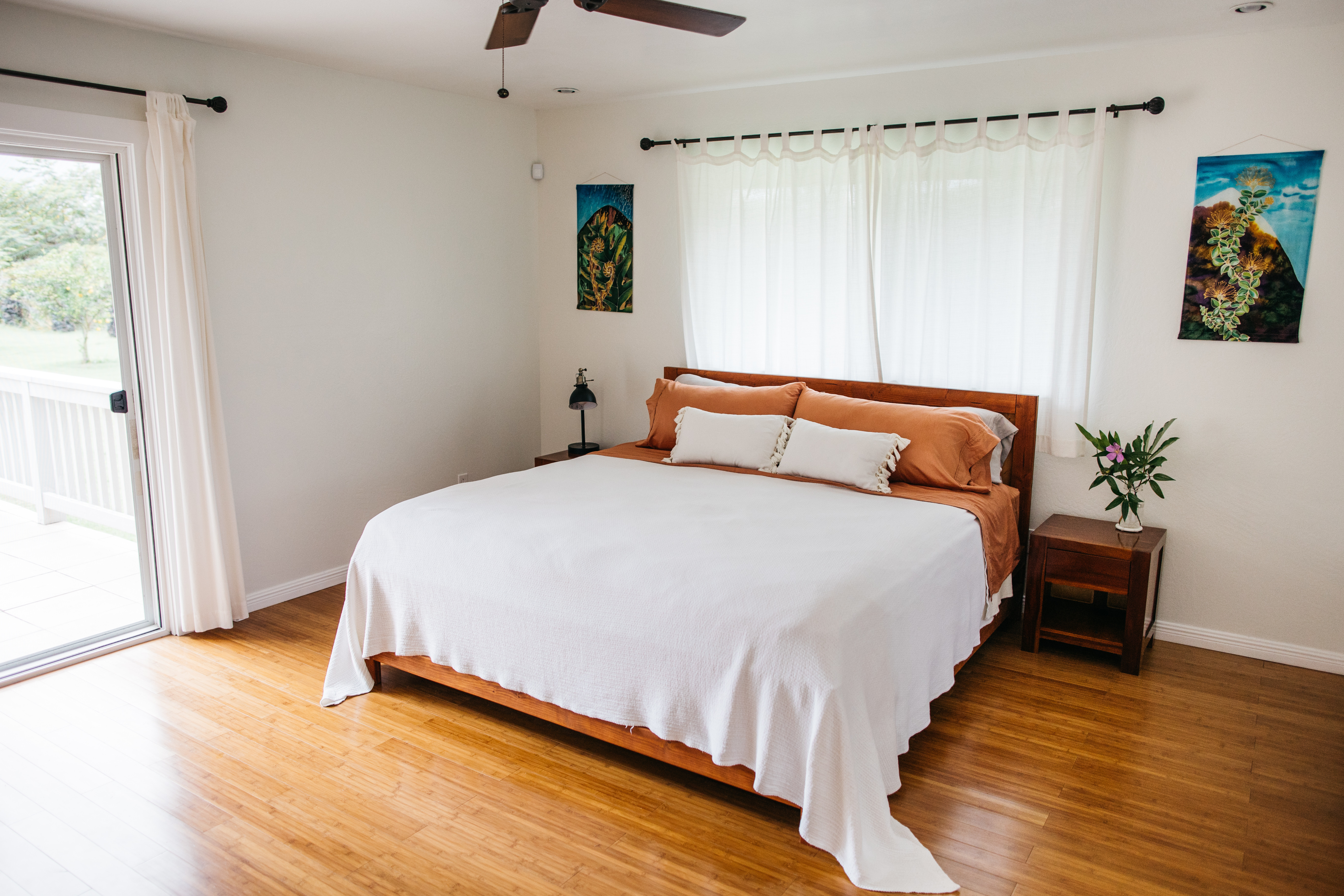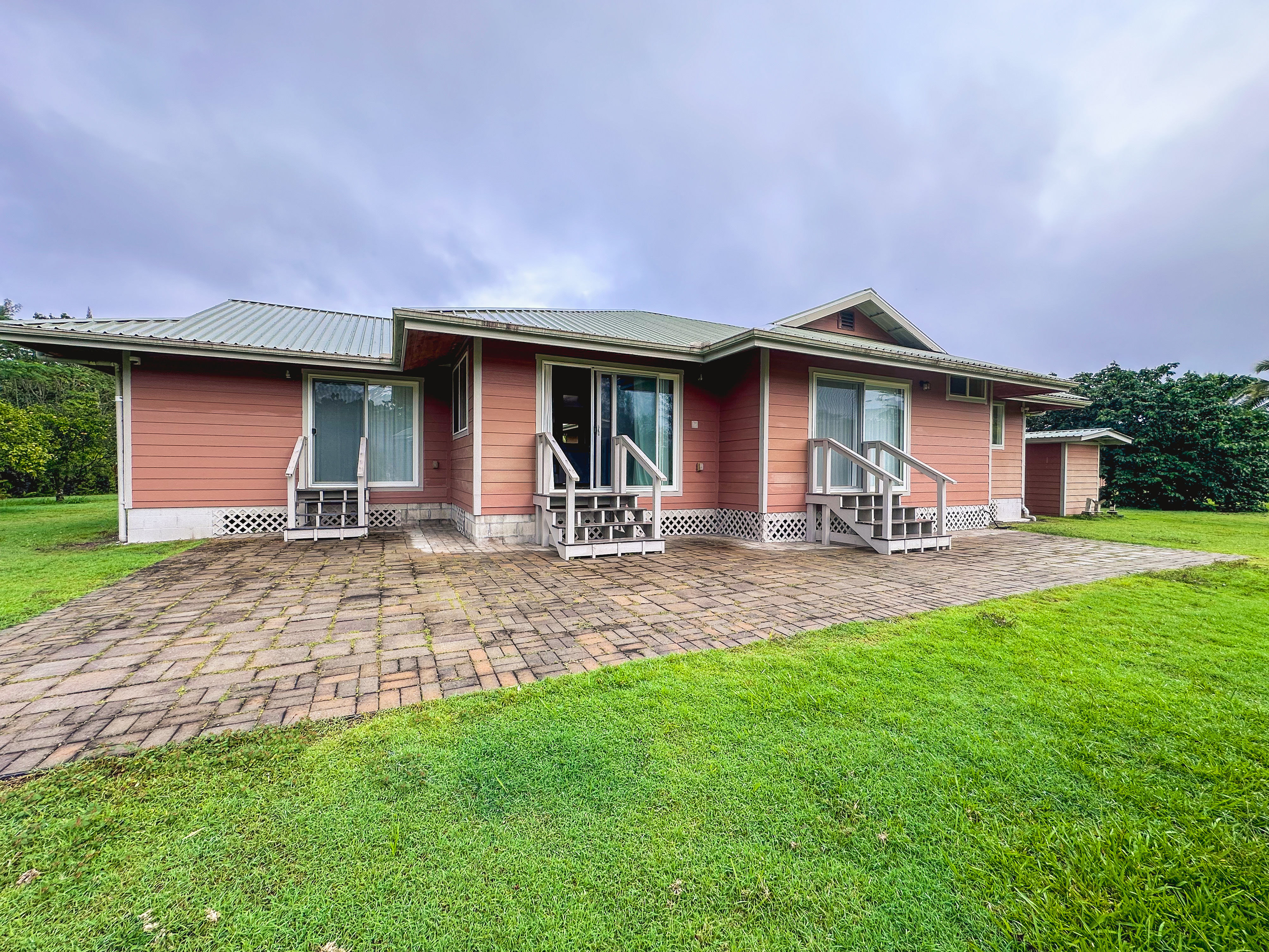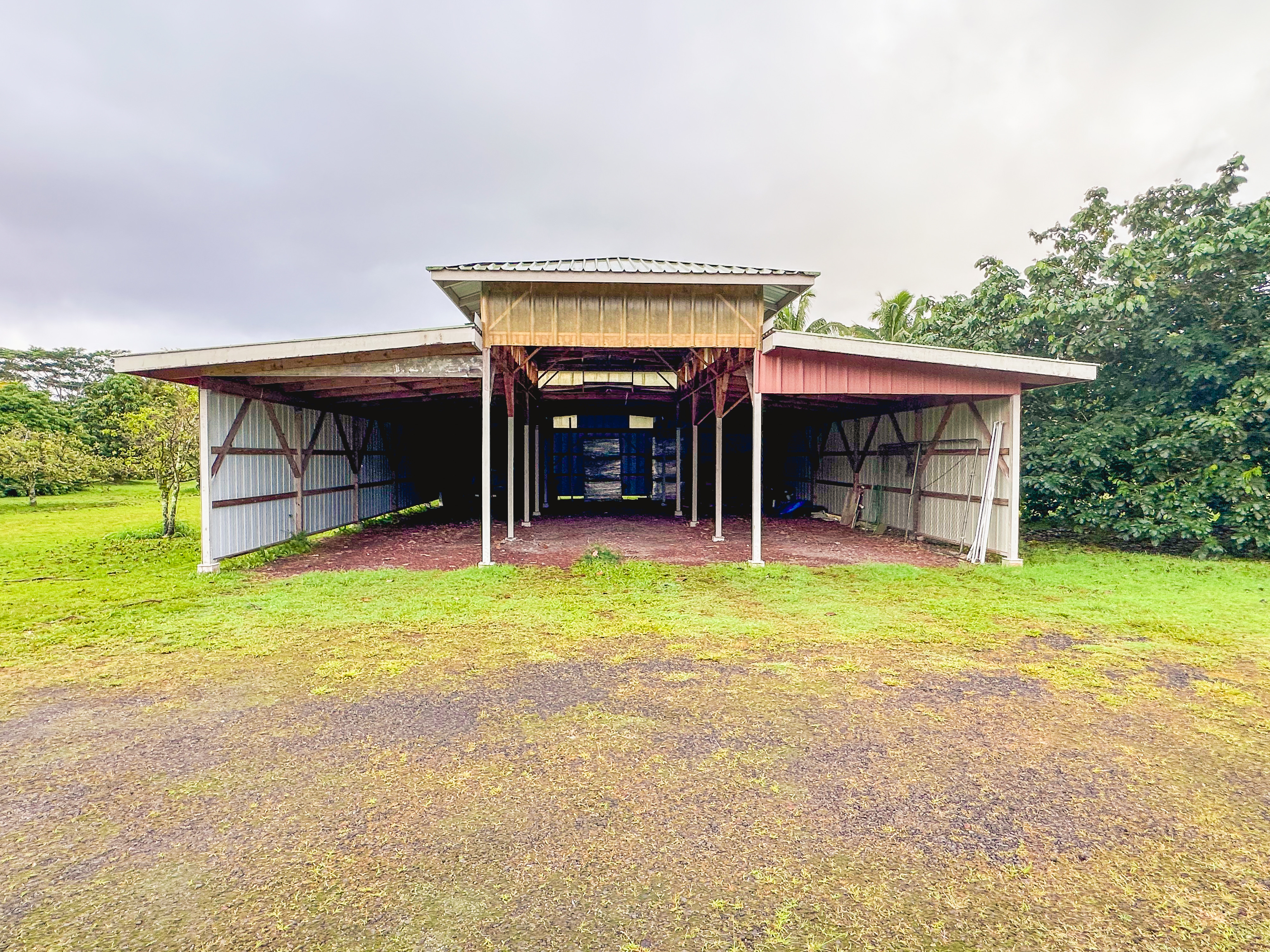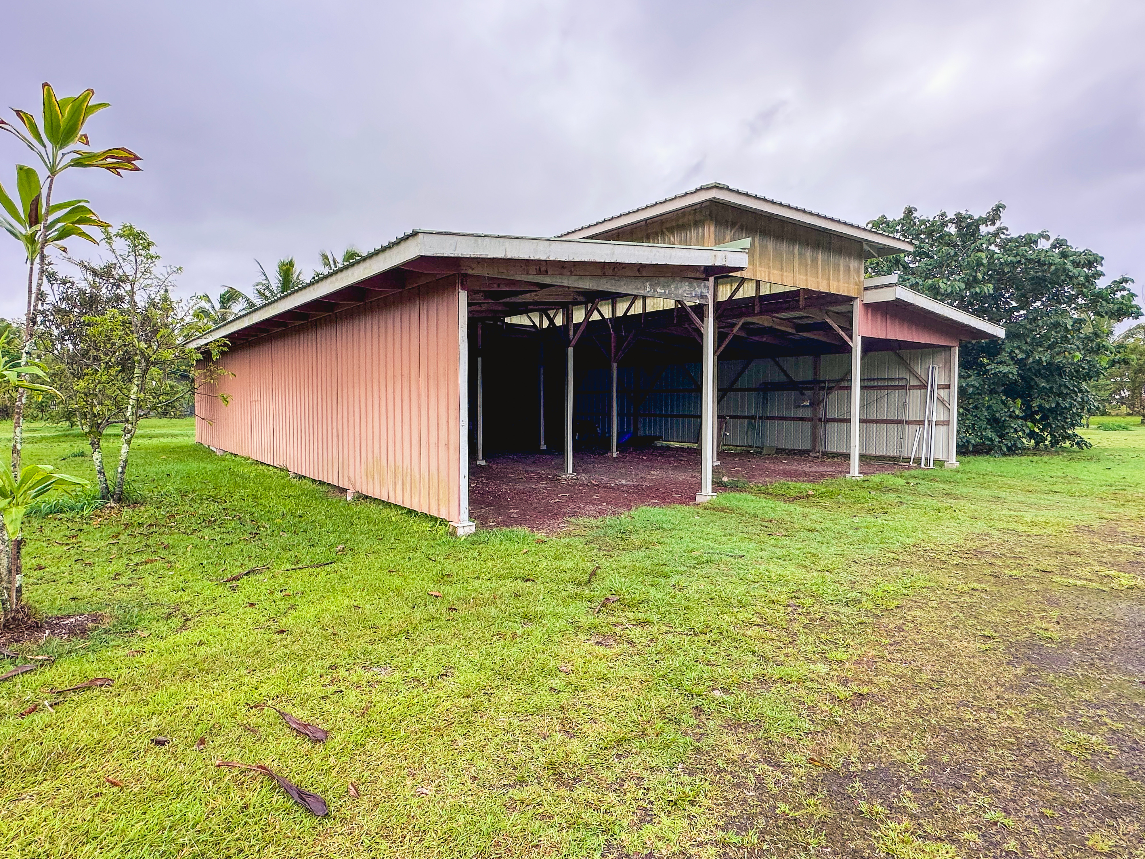 A rare opportunity to own a beautifully maintained two-acre property in the desirable sunbelt area of HPP (TMK's 3-1-5-55-121 & 122). Located on paved 4th Avenue, this fully fenced estate features mature landscaping, with thoughtful upgrades and infrastructure throughout. The spacious 3-bedroom, 2.5-bath home offers a well-designed split-bedroom floor plan and an open-concept living area with vaulted pine ceilings. The primary suite includes a large walk-in closet, double vanities, and sliding doors leading directly to the backyard. Two additional bedrooms are located on the opposite side of the home with access to the remaining 1.5 bathrooms. A dedicated laundry area is conveniently located off the kitchen. Just outside the primary bedroom is a versatile bonus room, ideal for many things. Outdoor living is a highlight of this property. The rear of the home features a large stone lanai perfect for entertaining, along with a 24’ x 24’ covered gazebo with screened walls, electricity, and plumbing. On clear days, enjoy views of Mauna Kea from here. The adjacent lot includes a sizable 1,008 sq ft barn with high ceilings–perfect for a workshop, storage, or housing large vehicles & machinery. The property is fully fenced with rock wall pillars along the perimeter and secured by two sturdy metal gates. Sustainability features include a fully owned NEM PV system with 14 panels and a private water well with a triple water filtration system. In addition, a motion-sensored security system with 8 cameras has been installed . Enhancing the land are approximately 45 mature, fruit-bearing trees: ulu, avocado, jackfruit, soursop, jaboticaba, ice cream bean, kaffir lime, lemon, tangerine, lime, mango, and lychee. Recent upgrades: Back lanai paver patio (2024) Front & back stairs (2024) New washer & dryer (2025) New range (2022) New window screens (2022) Furnishings are included with the sale, excluding artwork.