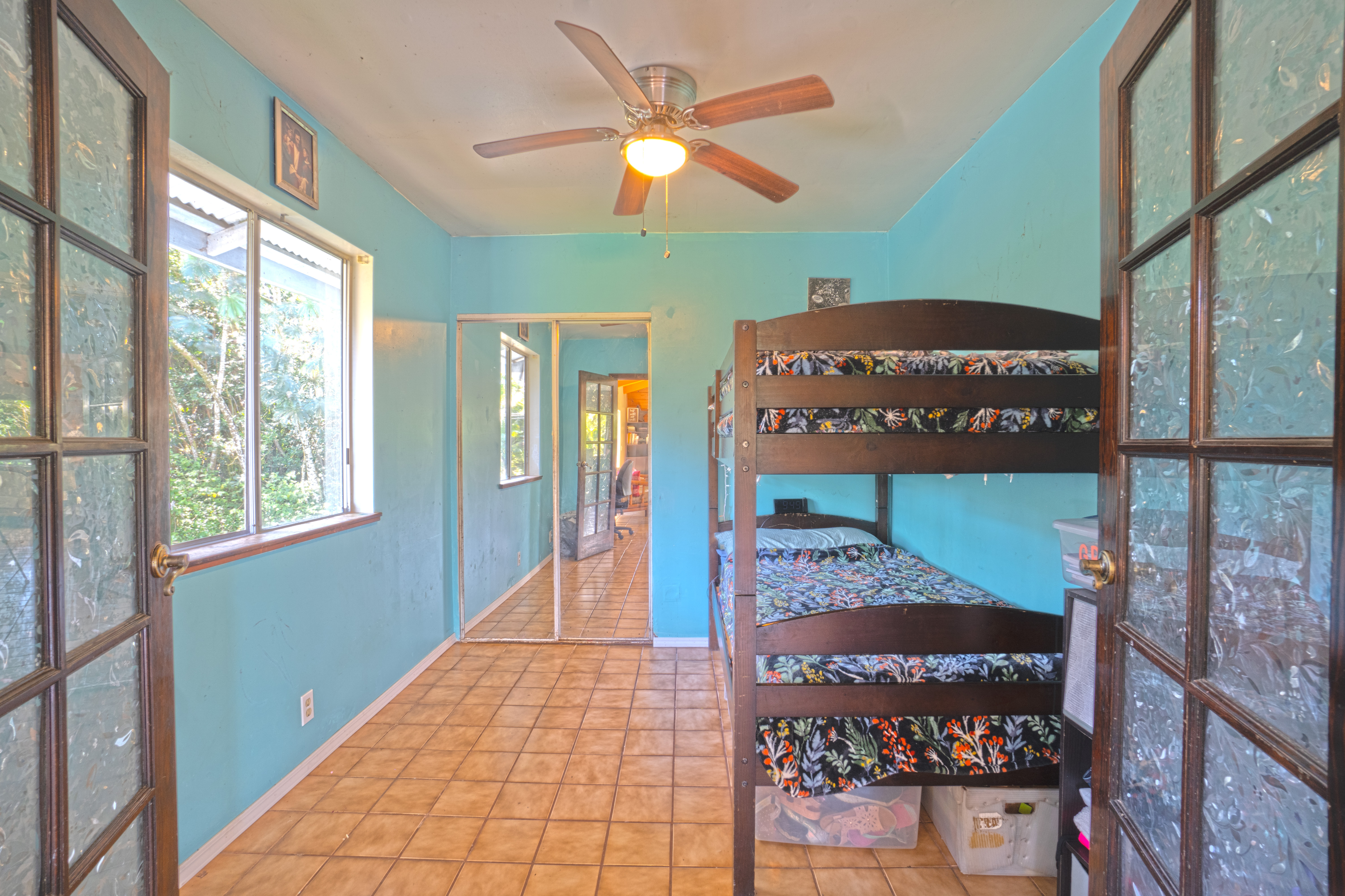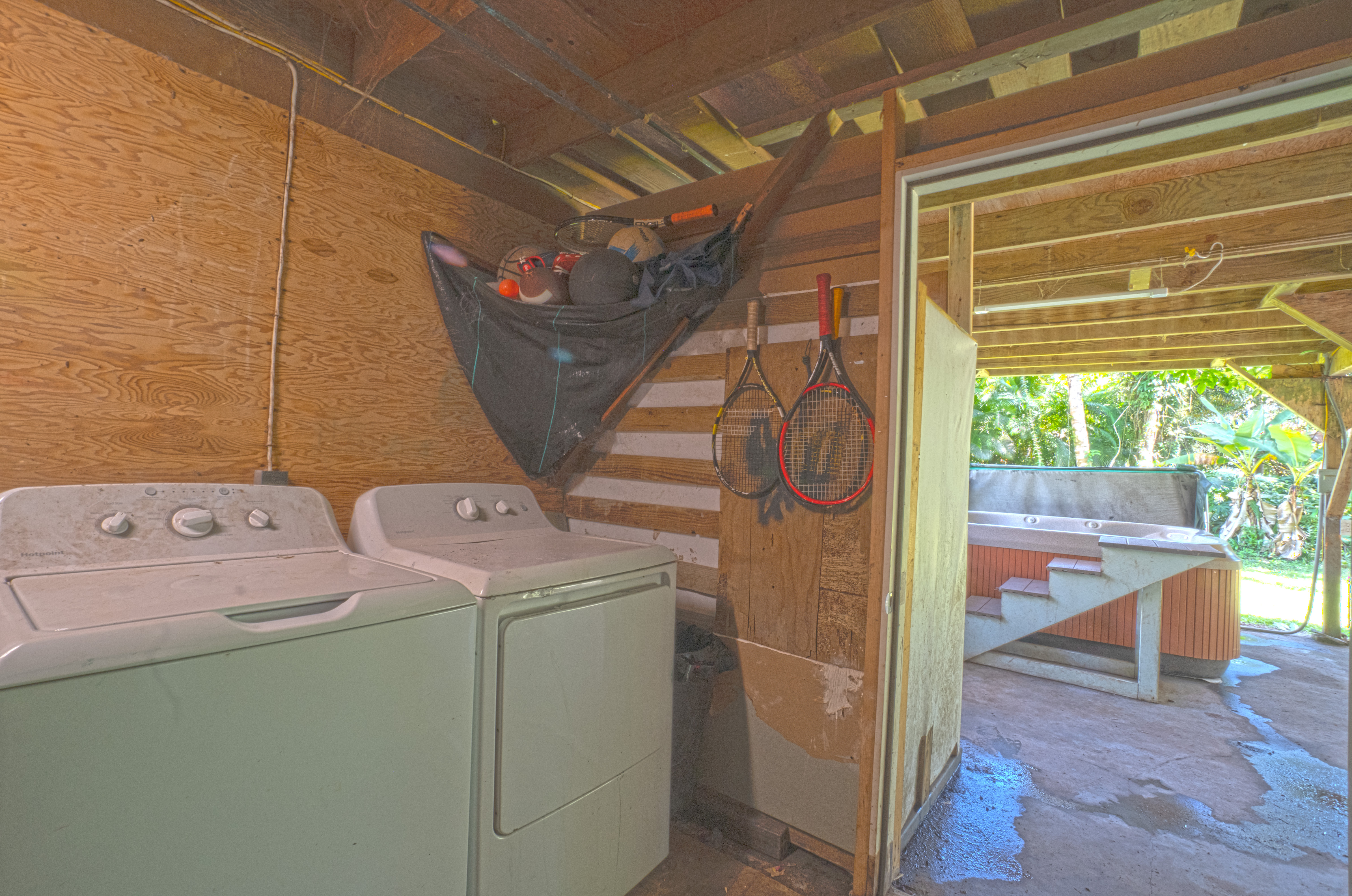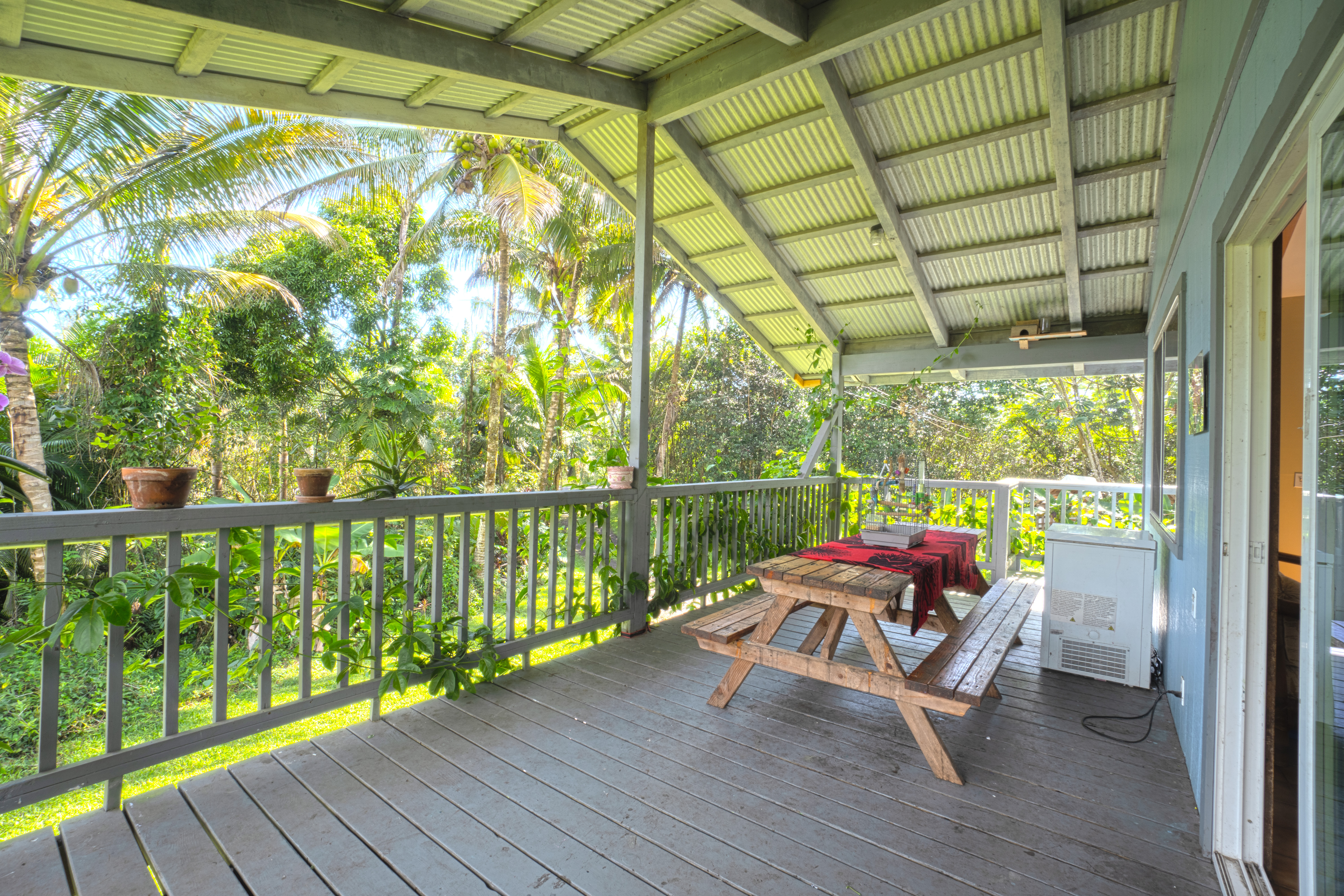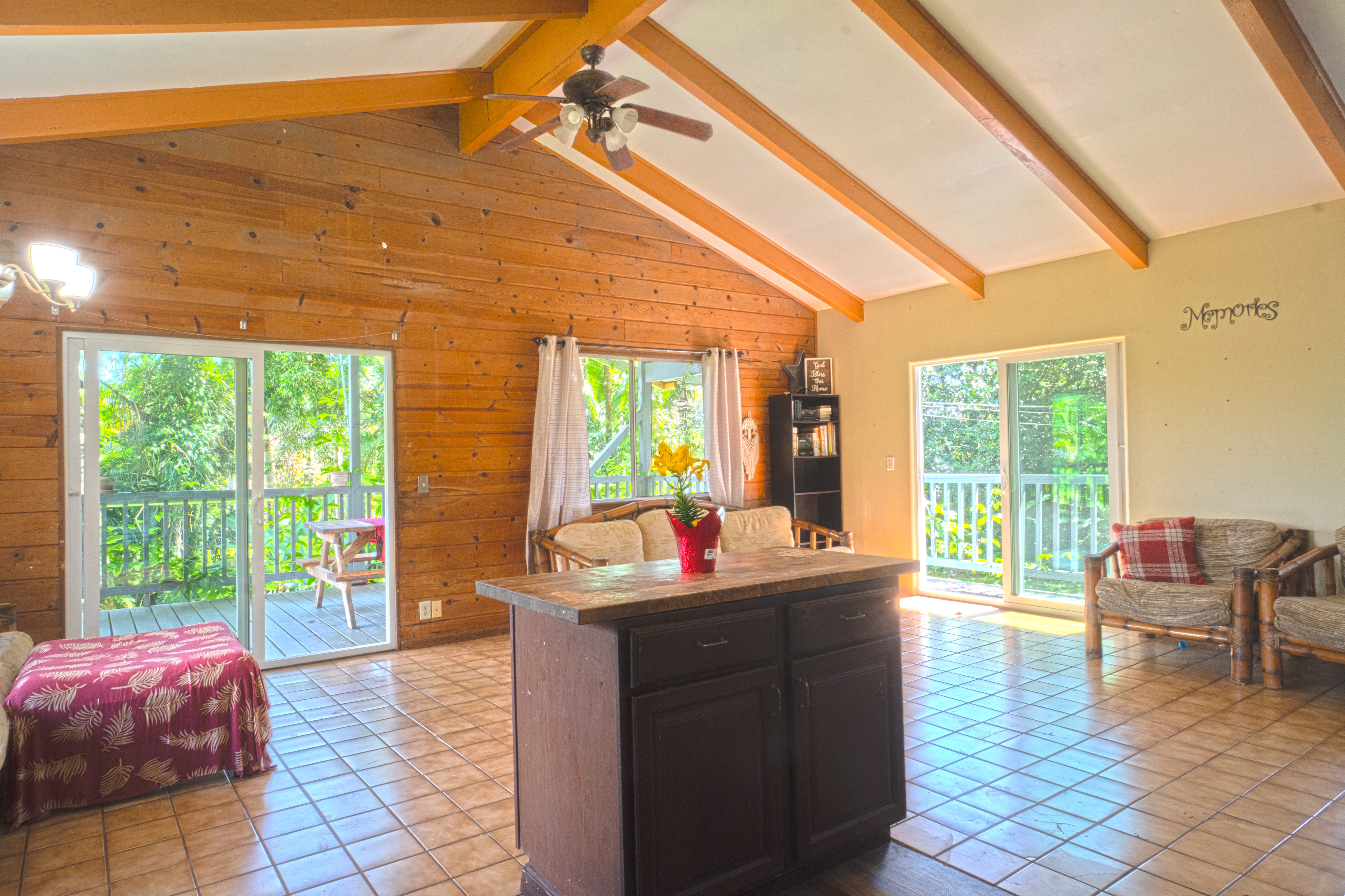 Nestled at the top of a knoll on an acre of land this two-story home is located in the middle of Hawaiian Paradise Park and surrounded by the privacy of old growth jungle. With three bedrooms and two bathrooms upstairs and two additional (Unpermitted) bedrooms downstairs, there is plenty of room for large and extended family or guests. Upstairs has an open floor plan with a large kitchen, living room, dining area, and connecting lanai. The kitchen features stainless steel appliances, new countertops, and plenty of cupboard space. Out on the lanai is a wonderful place to relax, watch the sunrise or sunset, listen to the birds, and occasionally the ocean. A five minute drive will take you directly to the shore with various trails and tide pools to explore. Bathrooms have been remodeled with new flooring, toilets, vanities, and fresh paint. The whole house has been freshly painted inside and out. Downstairs is a carport area including a hot tub. There is also a laundry/workshop area with space to expand to a sixth bedroom. Windows and doors have already been purchased and can be included with the sale. Two large rooms have already been fully finished in the downstairs and both have separate entrances. Outside there are numerous edible plants including banana, orange, butter avocado, and coconut. There is also a chicken coop with a fenced chicken run.