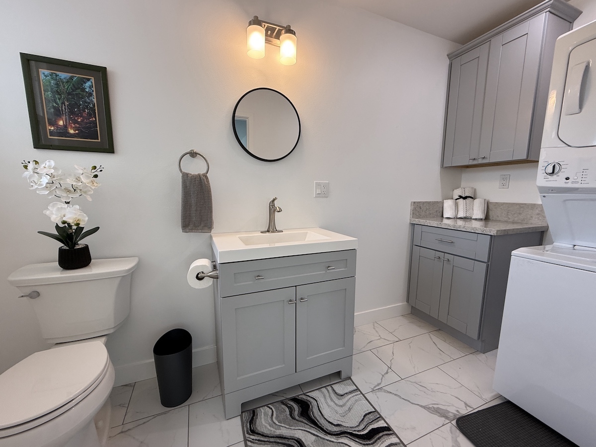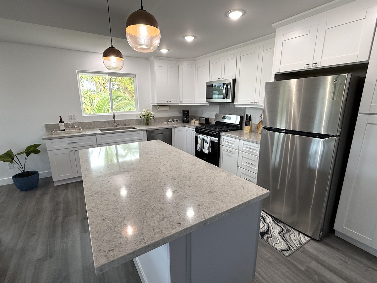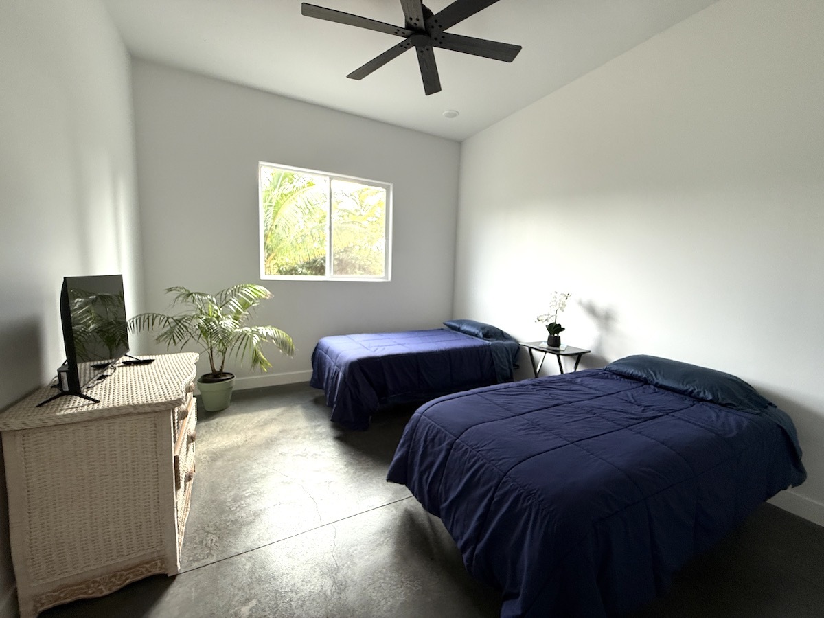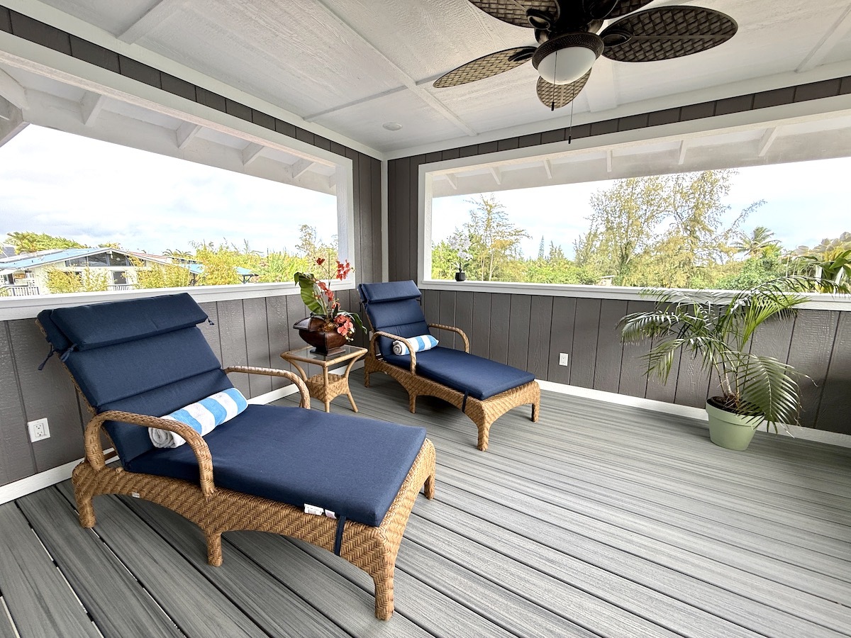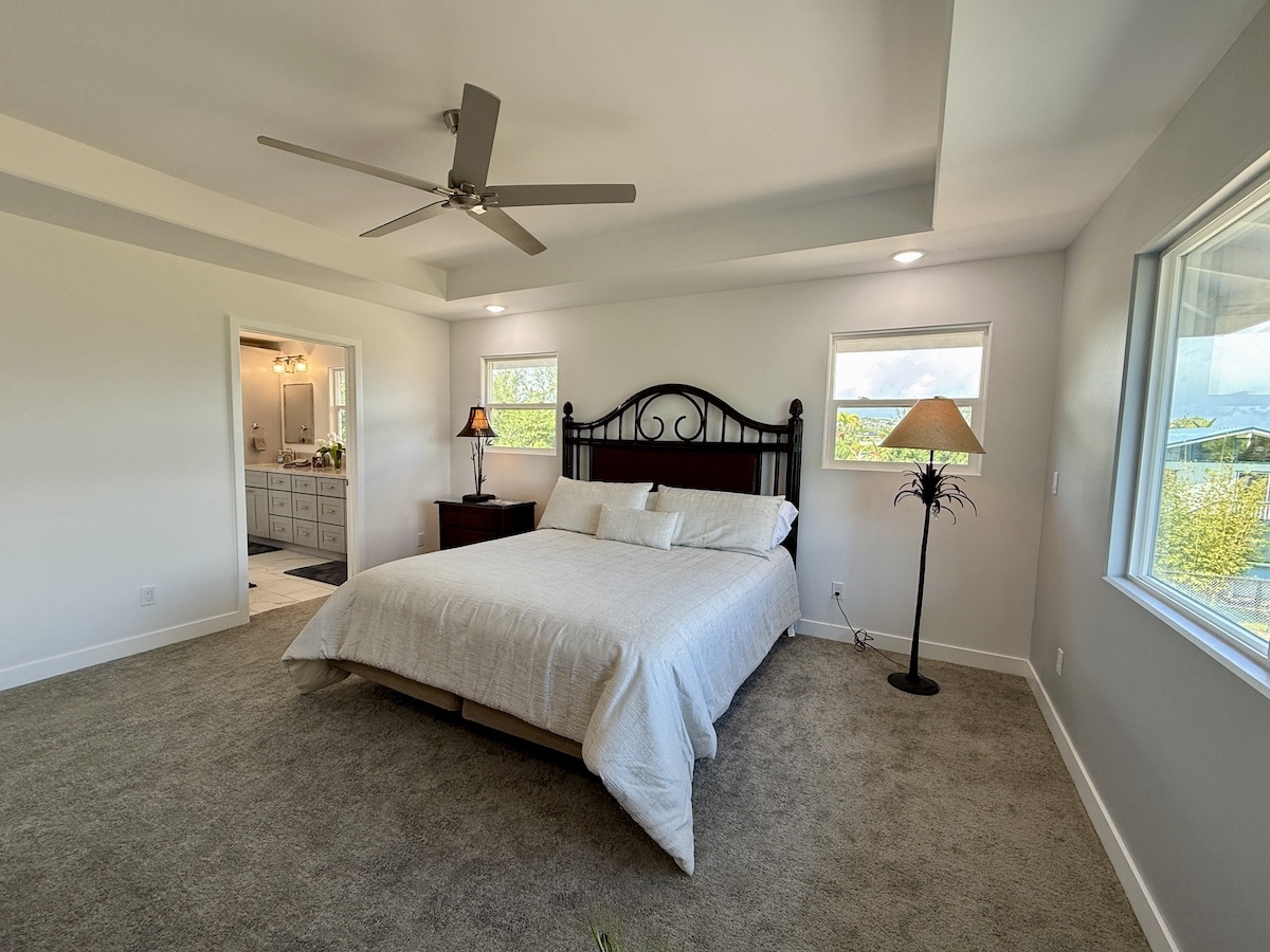 Modern design with tropical flair. Don't miss this exceptional 2-story custom home on 1 acre lot on paved 1st Ave. in HPP. Thoughtfully designed for seamless indoor/outdoor living, this 1-year new home features 2,160 sq.ft. of living space, 672 sq. ft. of covered lanais, and a 400 sq. ft., 2-car garage, for a total of 3,232 sq. ft under roof. Upstairs you'll find the large, open, living room, dining room and kitchen, the primary suite with walk-in closet, a half bath and laundry, and 2 covered lanais. Downstairs features two bedrooms, a bathroom, a rec room with kitchenette, and a second laundry, all under 10-foot ceilings. Stained concrete floors and 8' tall doors add a luxurious feel. Off the rec room is another covered lanai that leads to a large back yard, which offers ample space to add a swimming pool, boat parking, ohana unit, garden, orchard, etc. Located near the ocean for easy access to the scenic shoreline for walks or bike rides! Sold partly furnished (staging items excluded) and on a private water well. 20' shipping container available separately. This home is in like-new condition, only used on occasion by owner, and is move-in ready. See it today!