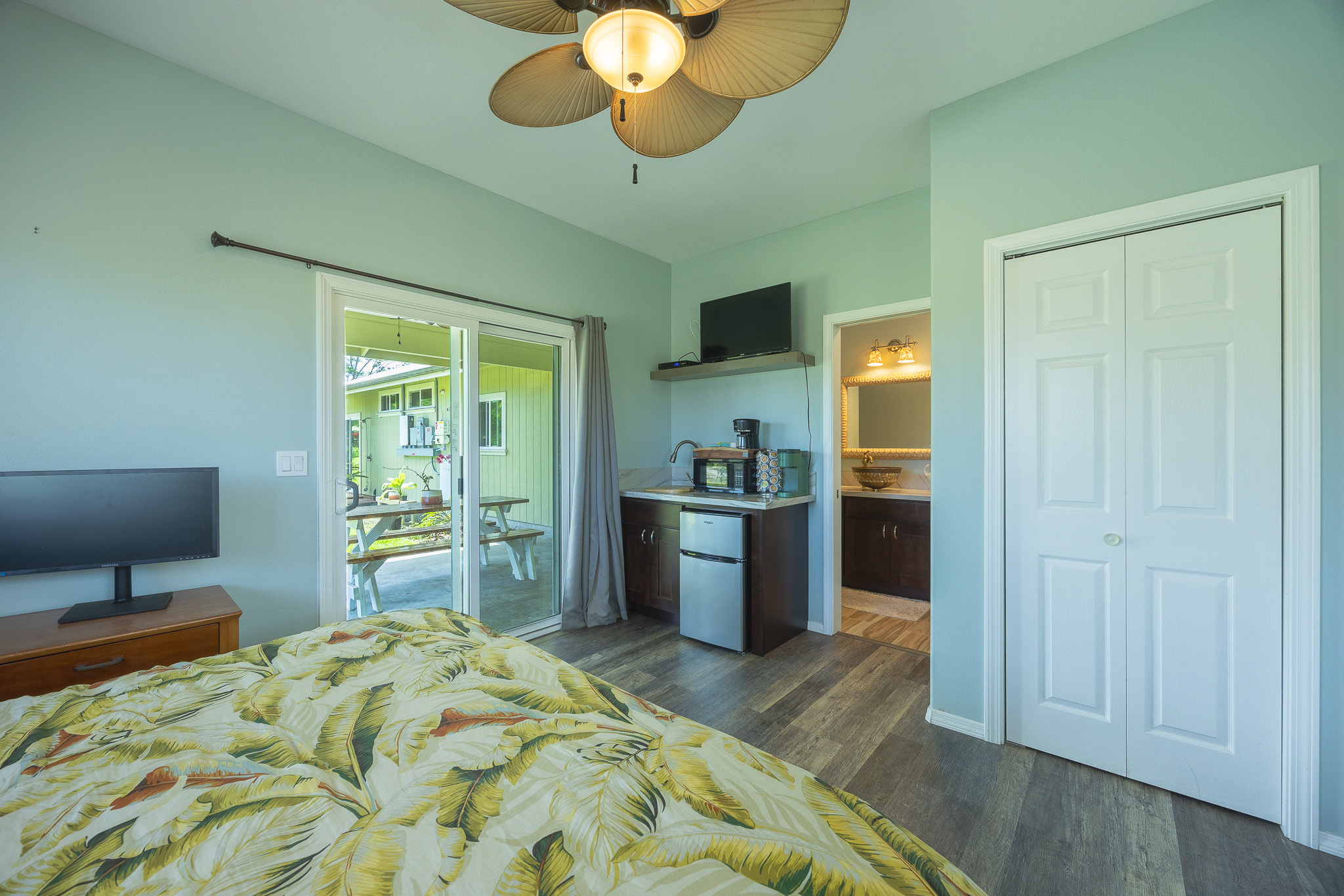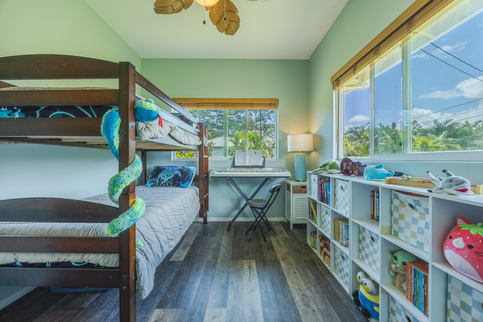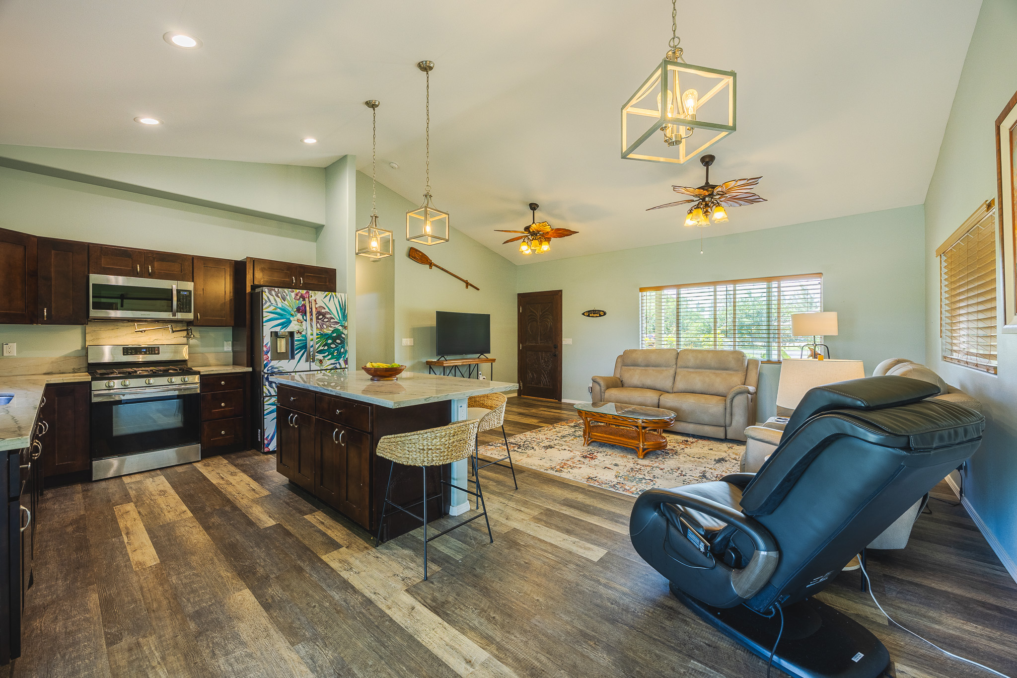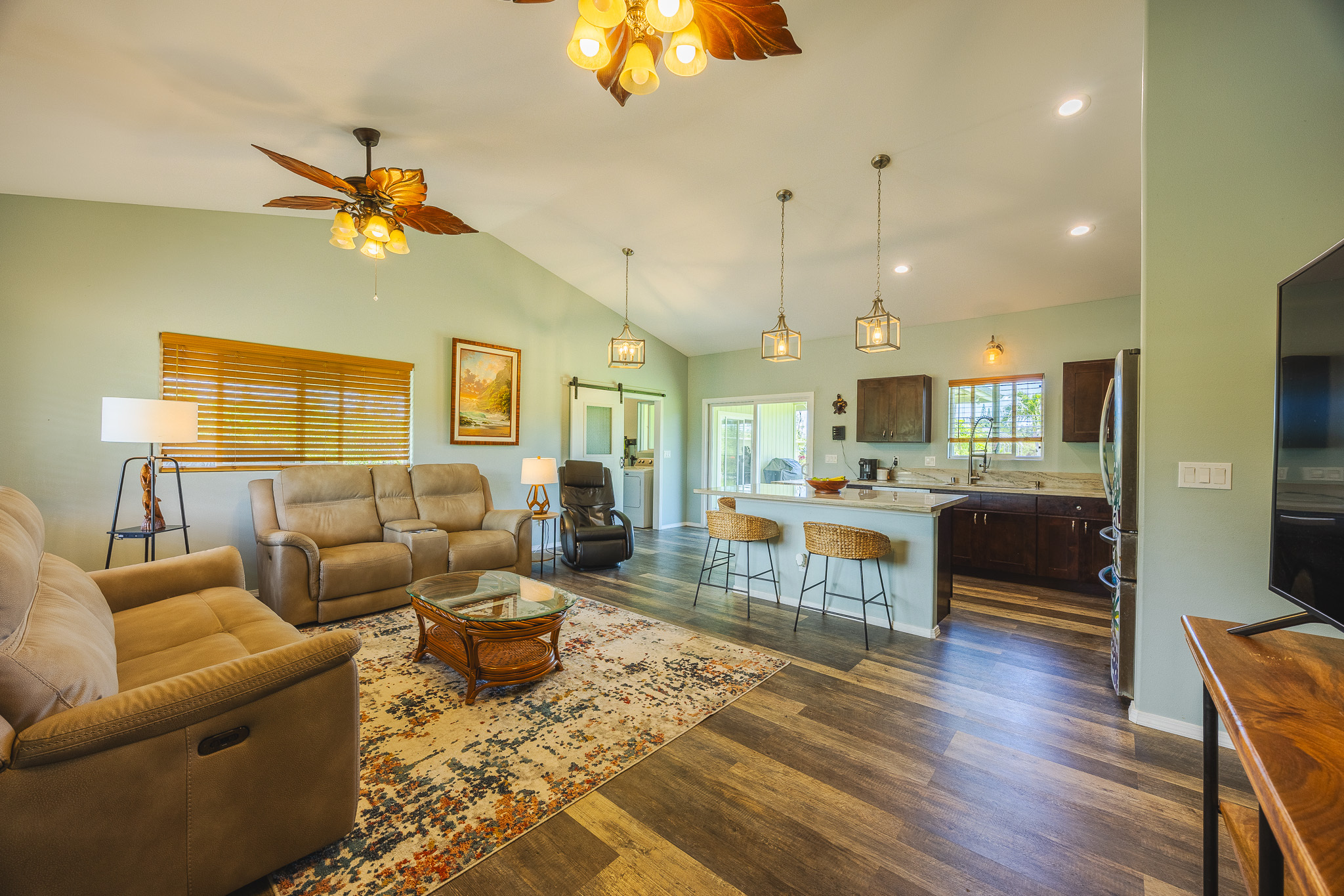 Welcome to this beautiful 4-bedroom, 3-bath home situated on a full acre in Hawaiian Paradise Park, offering the perfect blend of comfort, privacy, and island-style outdoor living. The property has been thoughtfully improved, with the lot recently cleared and leveled, fresh grass seed planted, and Areca palms and vibrant bromeliads added along the front for a welcoming tropical landscape. Enjoy your own private outdoor retreat featuring an in-ground pool, a gorgeous newly built gazebo, paver patio, and gas fire table–perfect for relaxing evenings or entertaining under the Hawaiian sky. An open lanai and outdoor shower add to the home’s effortless indoor-outdoor lifestyle. Inside, the home is bright and inviting with brand new blinds installed last year. On its own well and furnished, energy efficiency is also a standout feature with an owned photovoltaic solar system paired with a Tesla Powerwall battery, providing sustainability, energy savings, and valuable backup power. The home also features an attached additional living area offering flexibility for guests, extended family, workspace, or a variety of living arrangements. Set on a full acre in Lava Zone 3, this property offers the space, privacy, and relaxed lifestyle that make Big Island living so special. Located in Hawaiian Paradise Park, just a short drive to the dramatic ocean cliffs at the end of Paradise Drive, where you can experience breathtaking coastal views and the natural beauty of the island. Hawaiian Paradise Park Owners Association road maintenance fees apply. Ask your Realtor to see the 3D walkthrough video floorpan virtual tour.