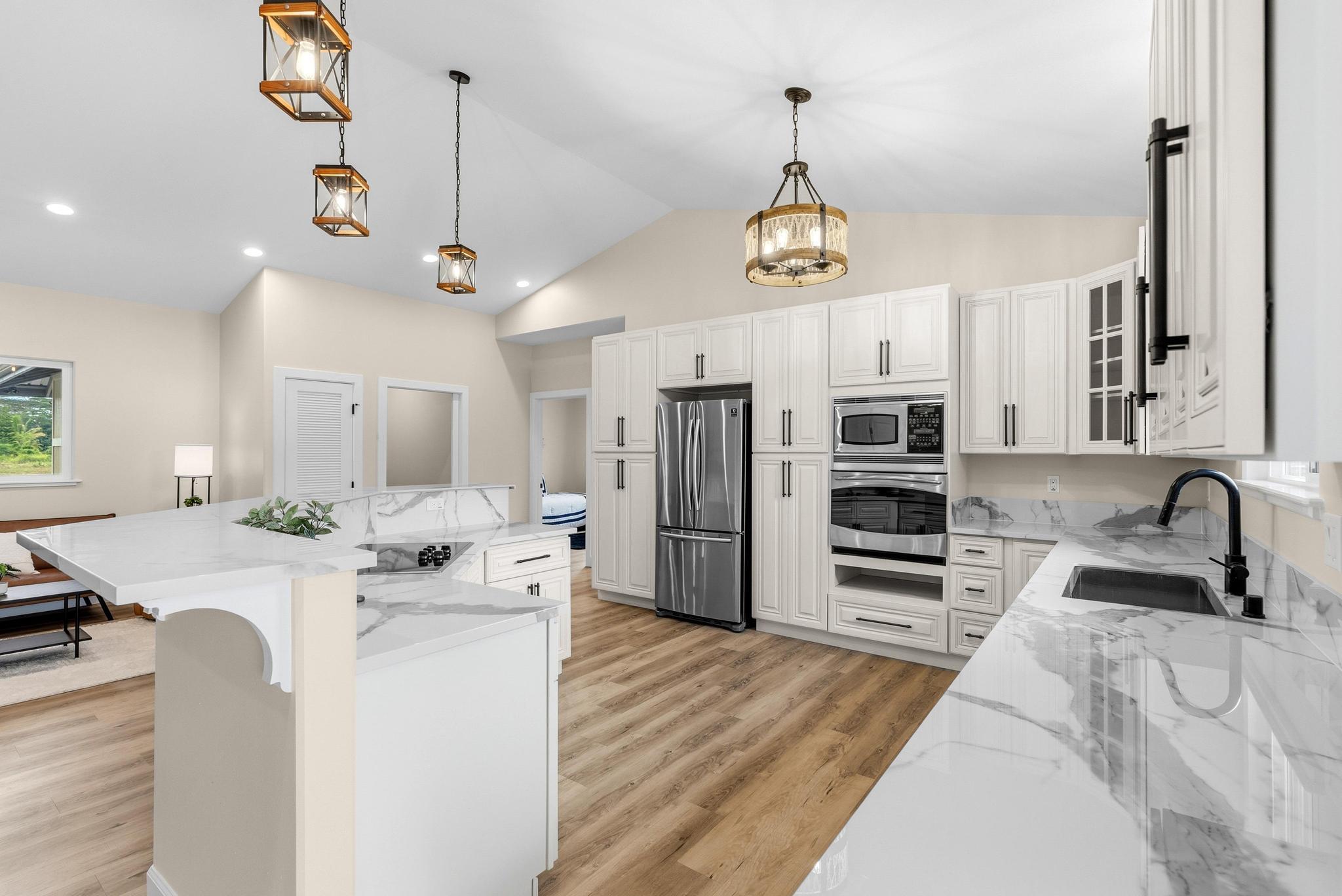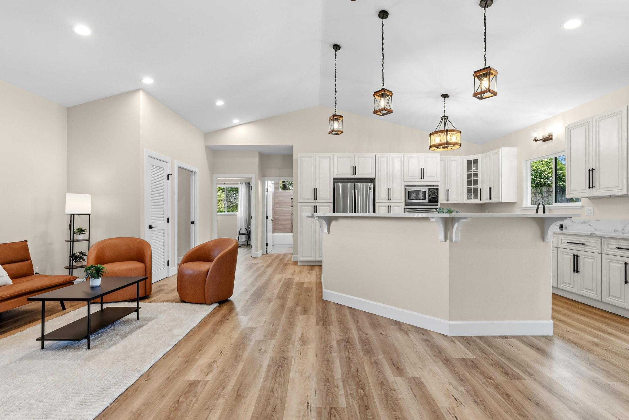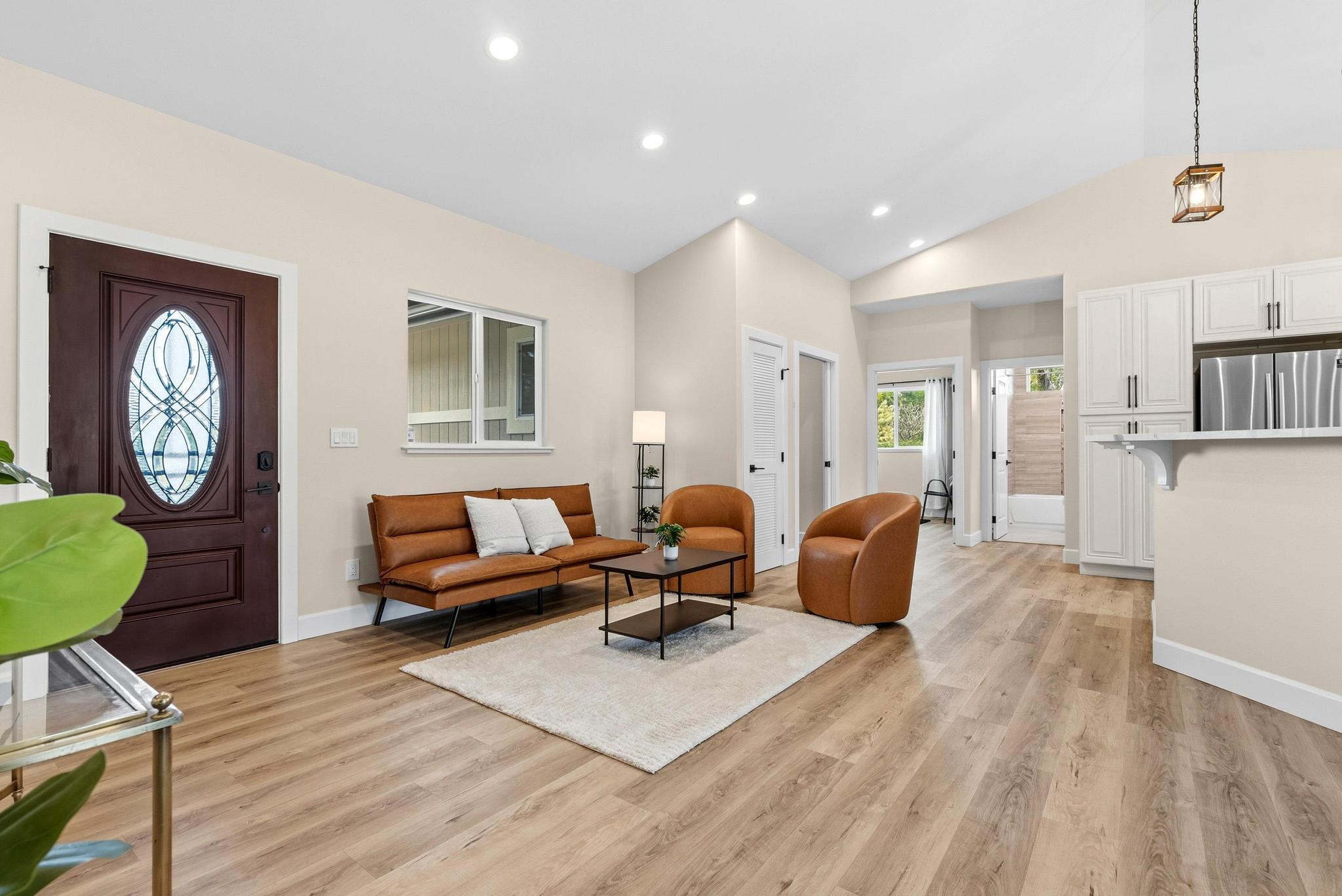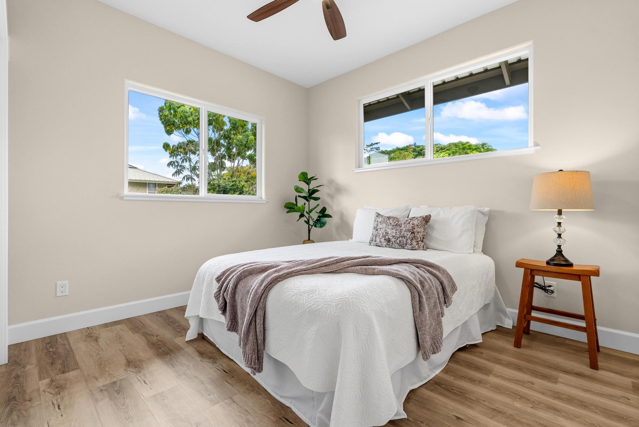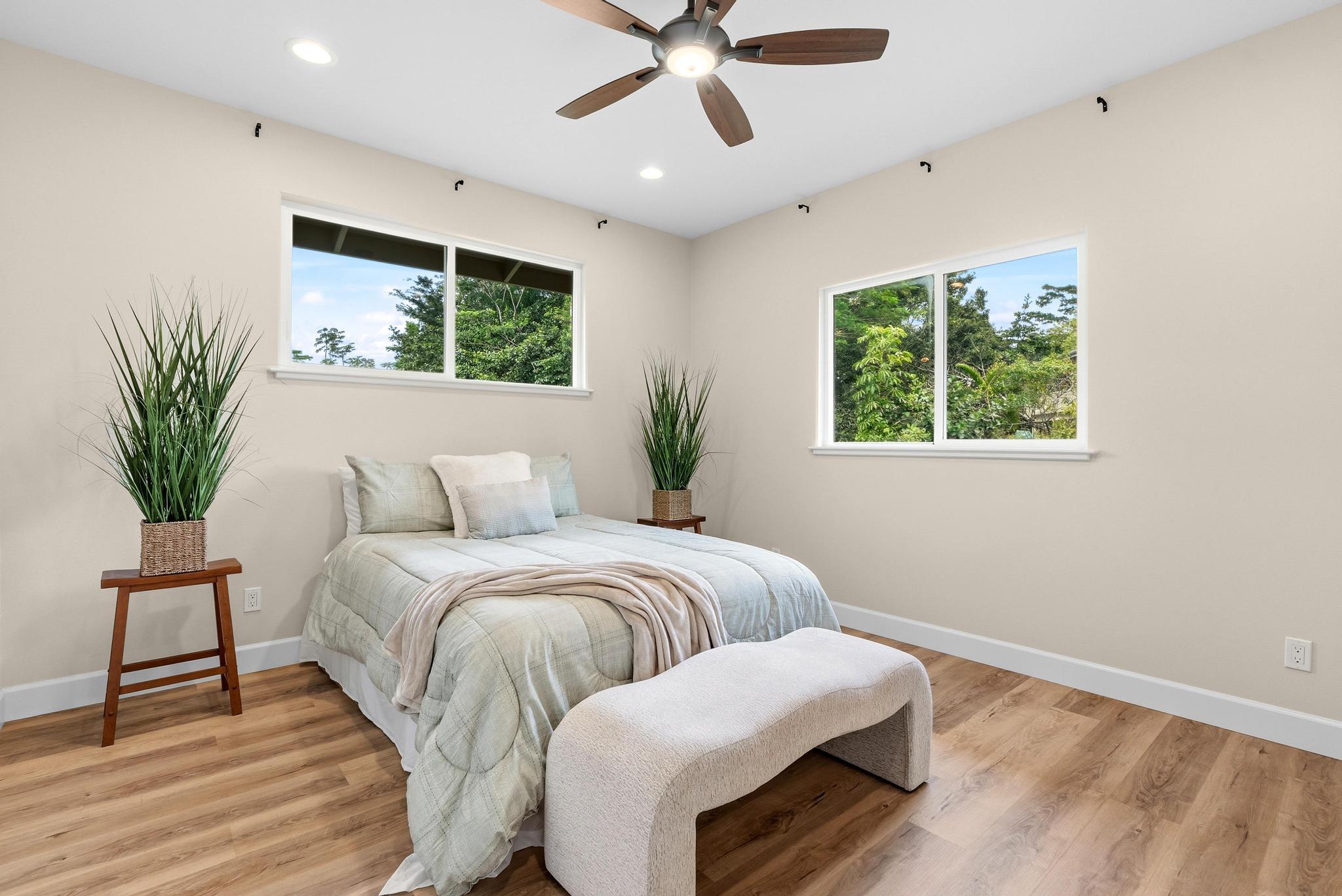 Quality and Comfort with Private Well Water and priced under $550K–this is Hawaiian Paradise Park value at its best. This move-in-ready home on paved 7th Ave delivers space, value, and sustainability rarely found at this price. Just over 2,000 sq ft under roof includes garage and lanai, a private water well, and fresh interior paint on walls, doors, and trim make this property truly turnkey. Vaulted ceilings fill the open layout with natural light. The large kitchen features modern appliances and generous counter space, all included with the sale. Step out to the back patio for seamless indoor-outdoor living. An enclosed garage, laundry room, and custom closet shelving throughout add everyday convenience. Wonderful grassy lot is ready to enjoy from day one. HIGHLIGHTS: - Under $550K with a Private Well Water – rare Big Island value - Newly painted interior walls, doors & trim! - Desirable Split Style floor plan - Just over 2,000 sq ft under roof with Garage and Lanai - Primary bathroom with Double Sinks and Walk-in Tile Shower - Paved Road - Concrete Driveway - In the Keaau School District - Well Water and UV Water Filtration - High Vaulted Ceilings - All appliances included: Dishwasher, Fridge, Oven, Cooktop, Microwave, Washer and Dryer - Two car Garage - Laundry Room with counters and cabinets - Custom closet shelving - Back patio lanai for outdoor living - Partial fenced dog run Located in the desirable Hawaiian Paradise Park community – enjoy the serenity of island living just minutes from Pahoa shops, Hilo, and Keaau. This is your opportunity to own a piece of paradise at an unbeatable price. Video: https://canva.link/gzfu0mmrf76f19g 15-1736 7th ave, Keaau HI 96749 ~ MLS 729569 Home is Staged (art & staging not included)