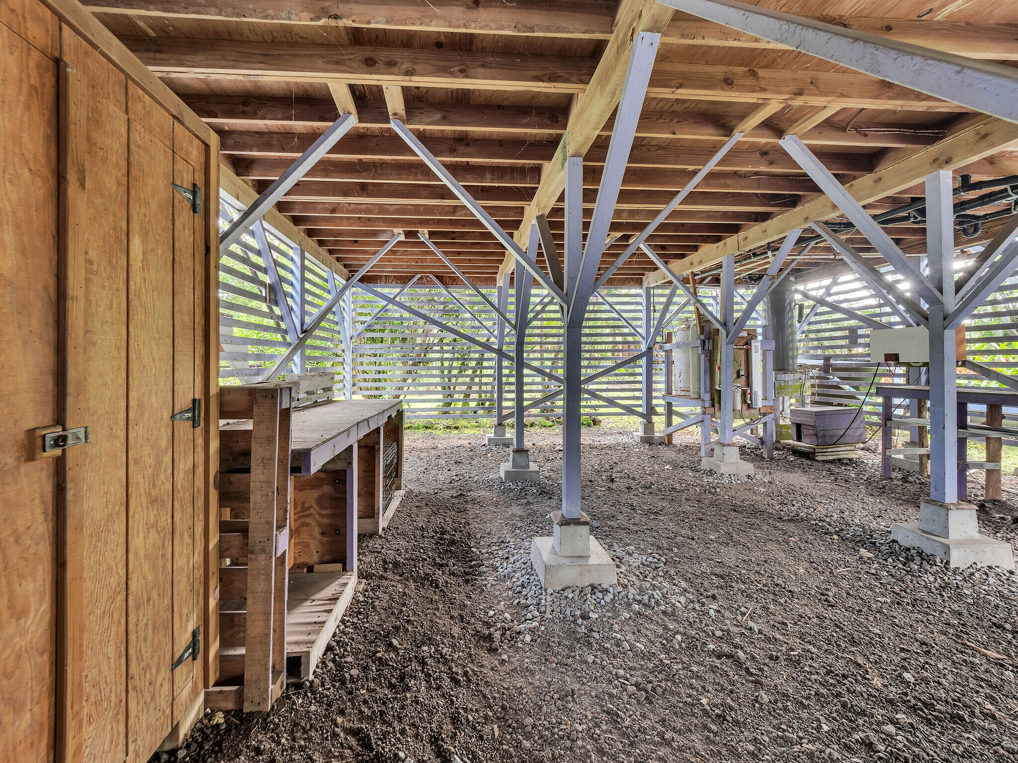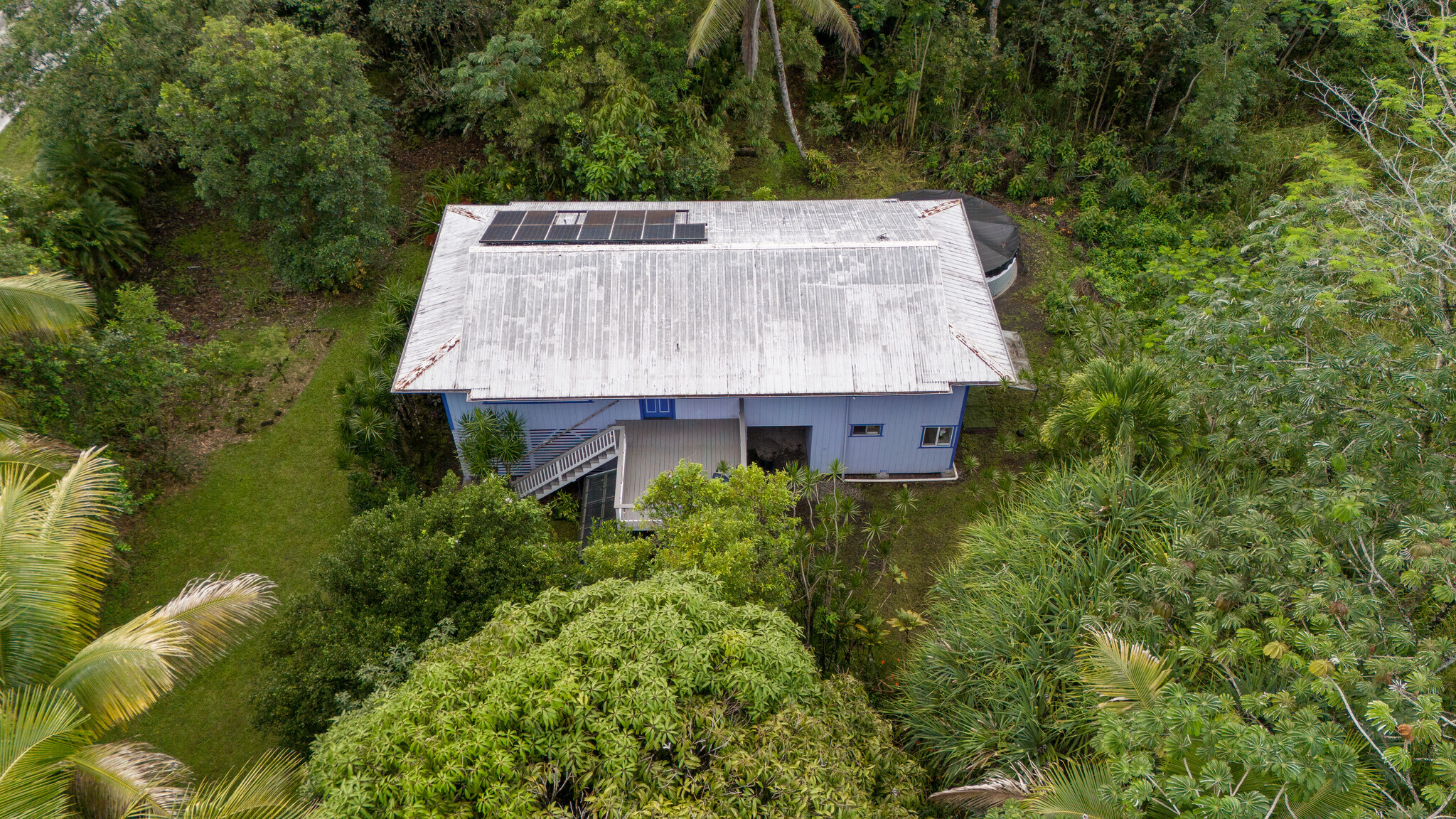 extra income. The big covered lanai upstairs is perfect for relaxing, talking story, or just soaking in the peaceful setting. Underneath you’ll find parking, great dry storage with work space, and a new catchment tank for peace of mind. Recently surveyed, the home is affordable and just screaming for someone to call it home!