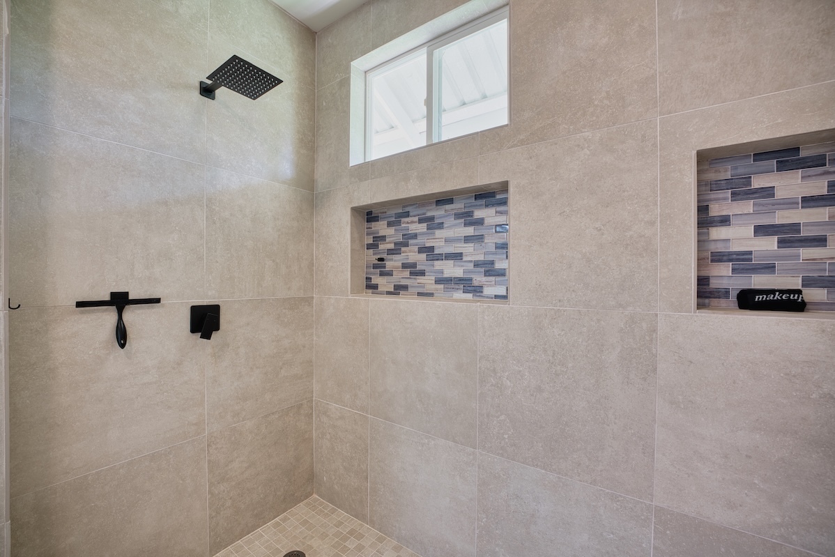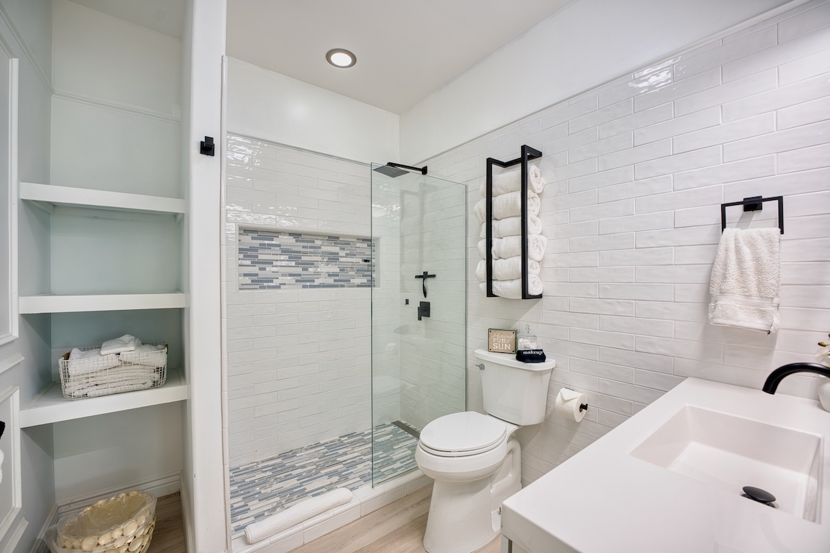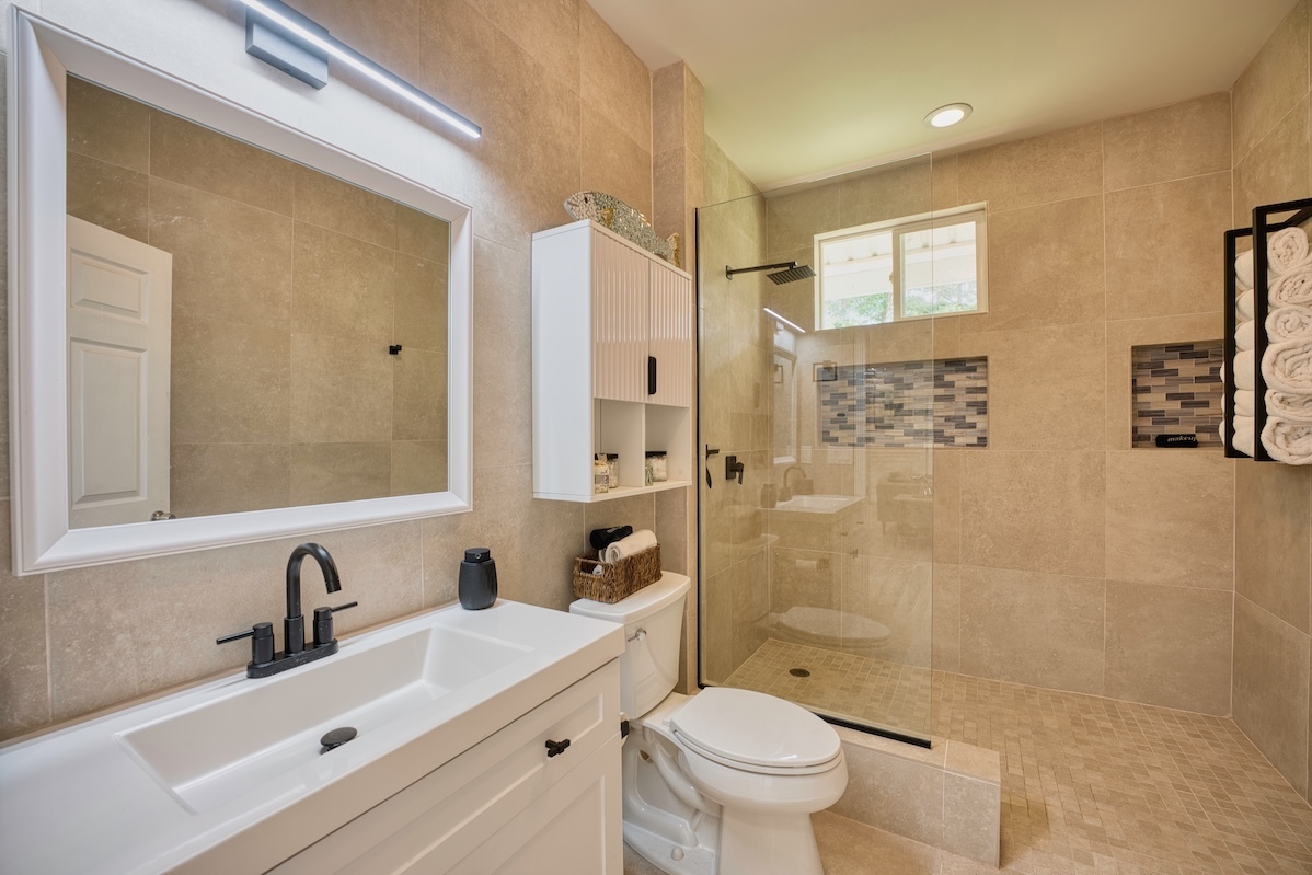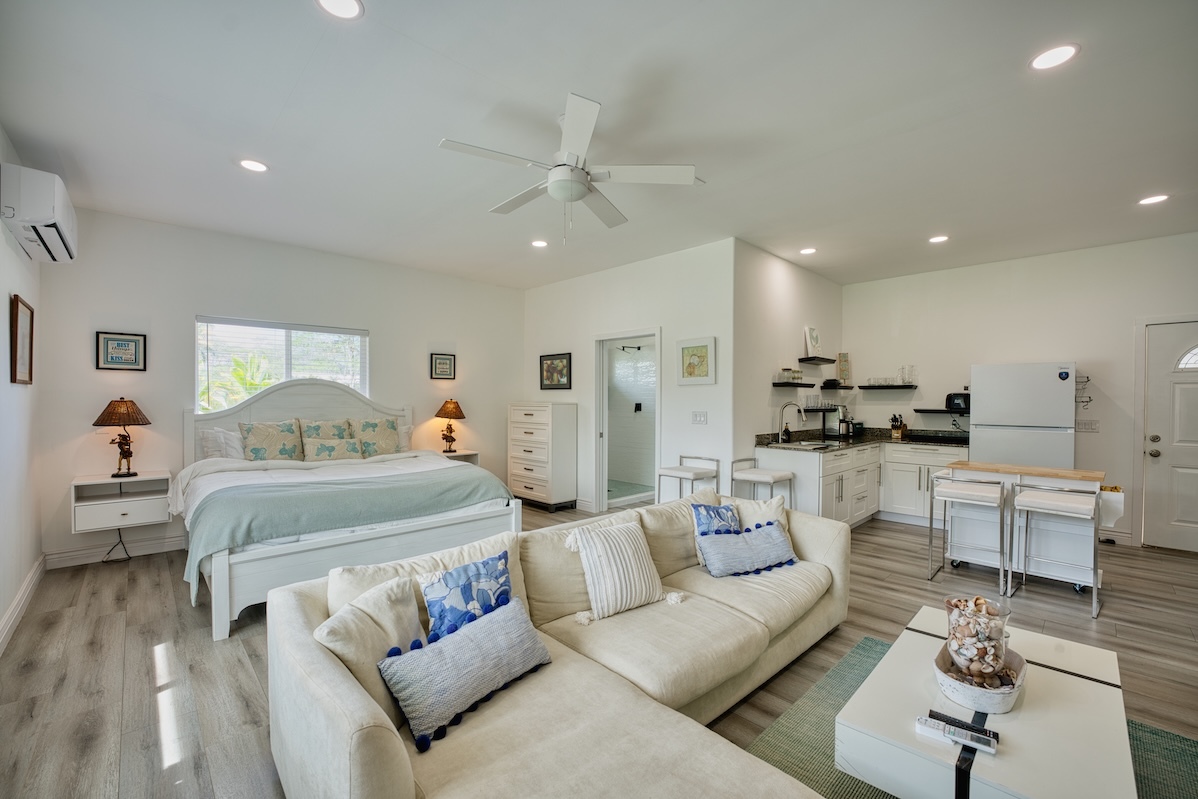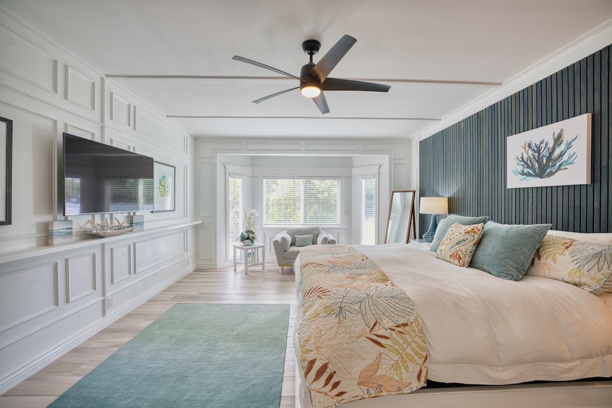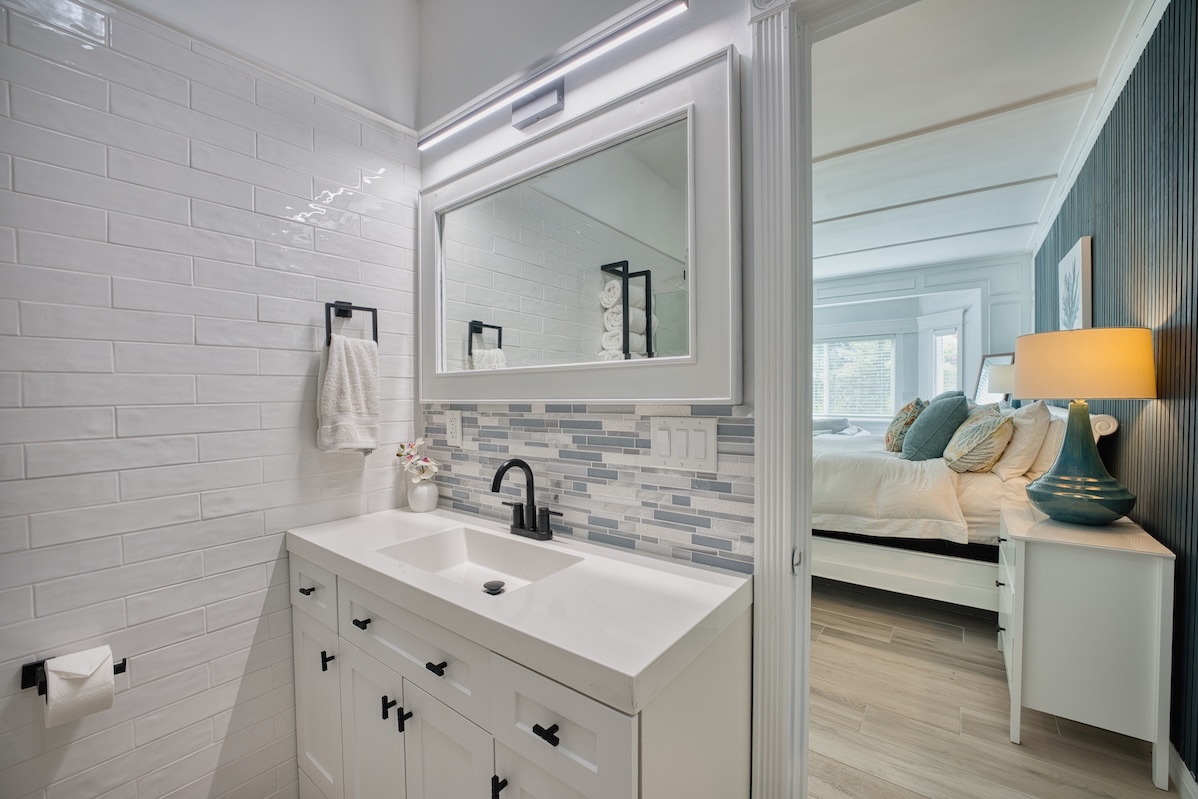 The light-filled open floor plan features vaulted ceilings and elegant plank porcelain tile. The 3-bedroom, 2-bath main home includes: