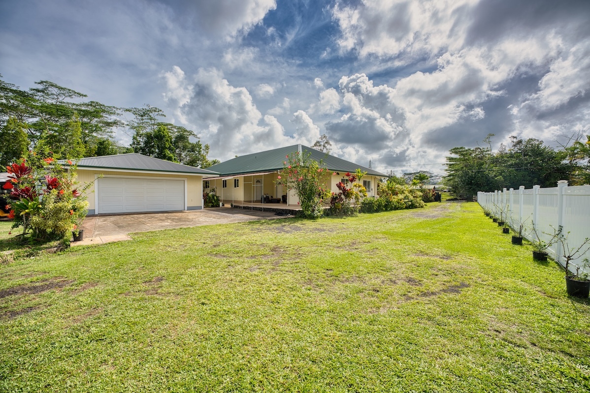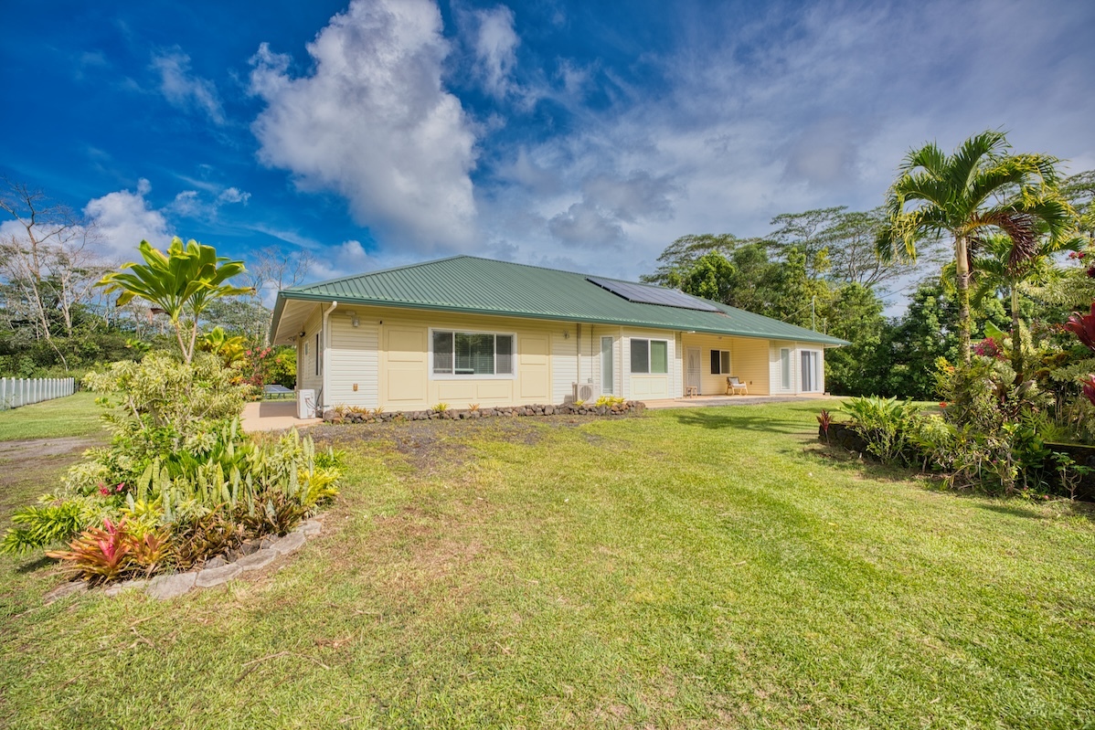 Welcome to your private tropical retreat in Hawaiian Paradise Park! This beautifully updated, custom-designed home sits on a fully landscaped acre with a solar-powered gate, lava rock wall, and full fencing for privacy. Renovated top to bottom, it blends luxury, comfort, and flexibility–perfect for peaceful living, great for extended family or rental income.