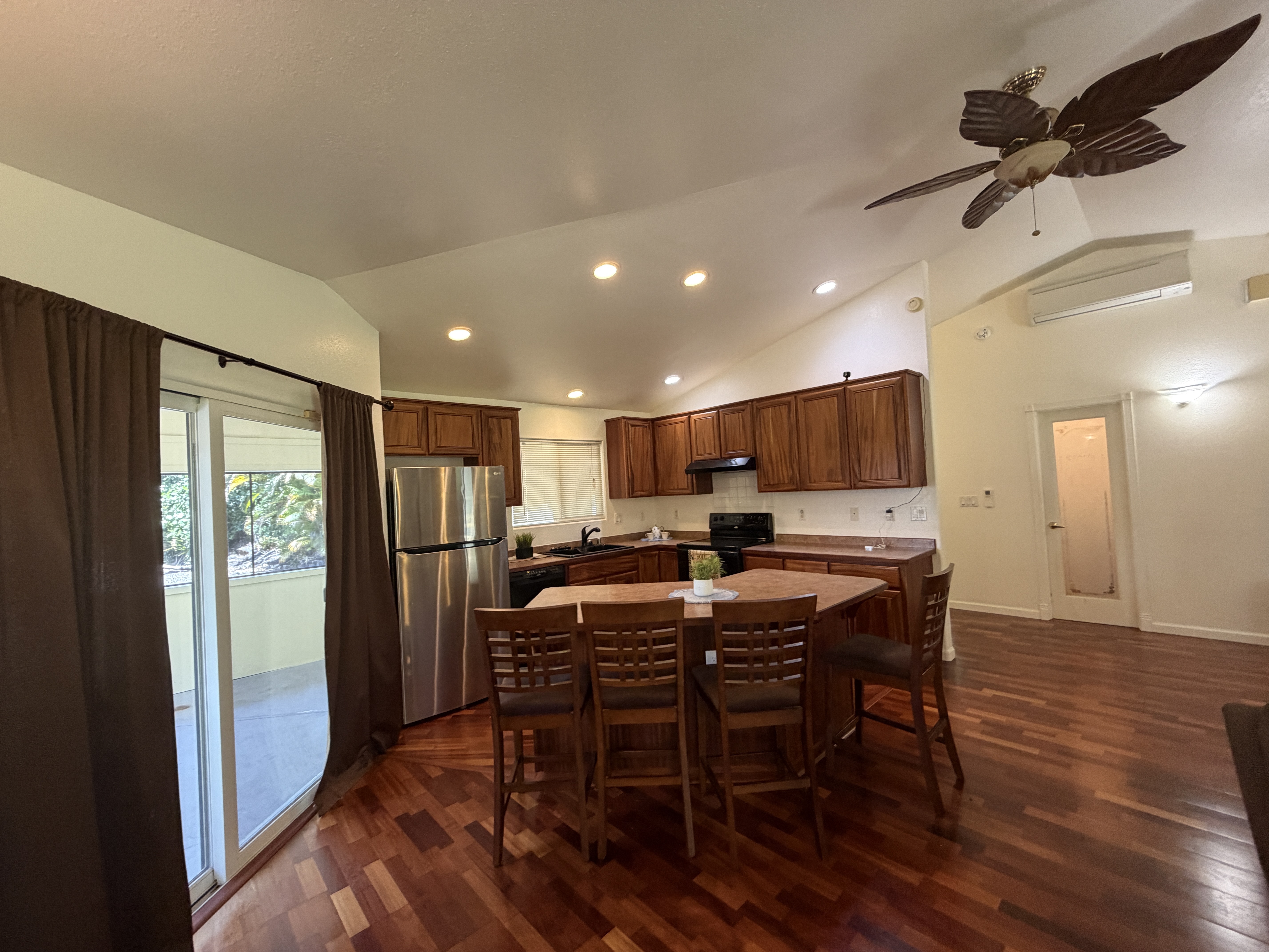 Nestled in desirable Hawaiian Paradise Park subdivision, this inviting 3 bedroom,3 bath home sits on 1 acre of land, providing comfort, privacy and charm. Located on 27th Avenue off Paradise convenient to the highway! Featuring a spacious layout with vinyl floors, split air conditioning in every room for comfort, concrete walkways around the home to allow ease, partially fenced area behind the house for pets, enclosed garage , and a screened patio area. The yard is adorned with mature trees, creating a lush private setting. A wonderful opportunity to own a piece of paradise in a well established neighborhood.