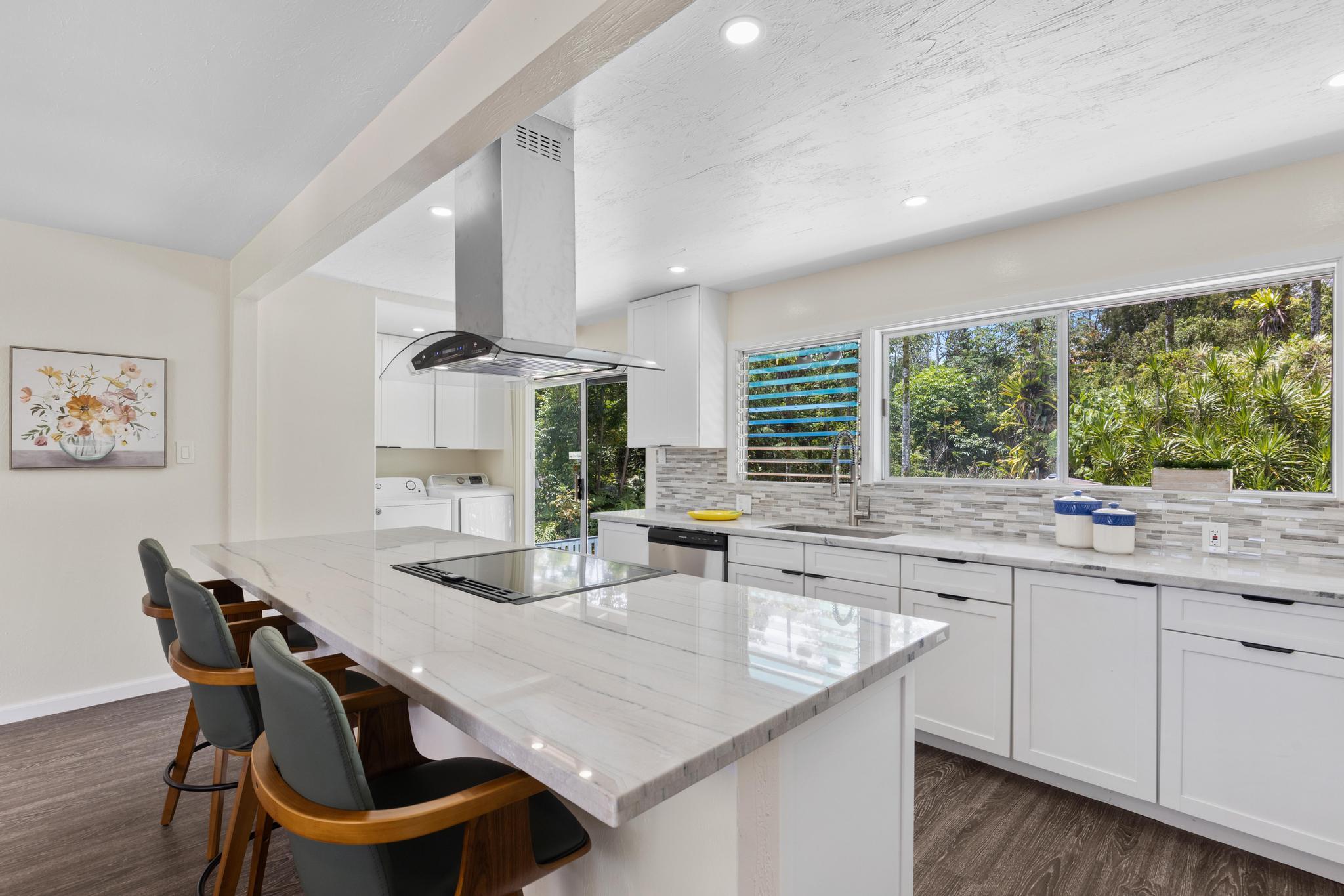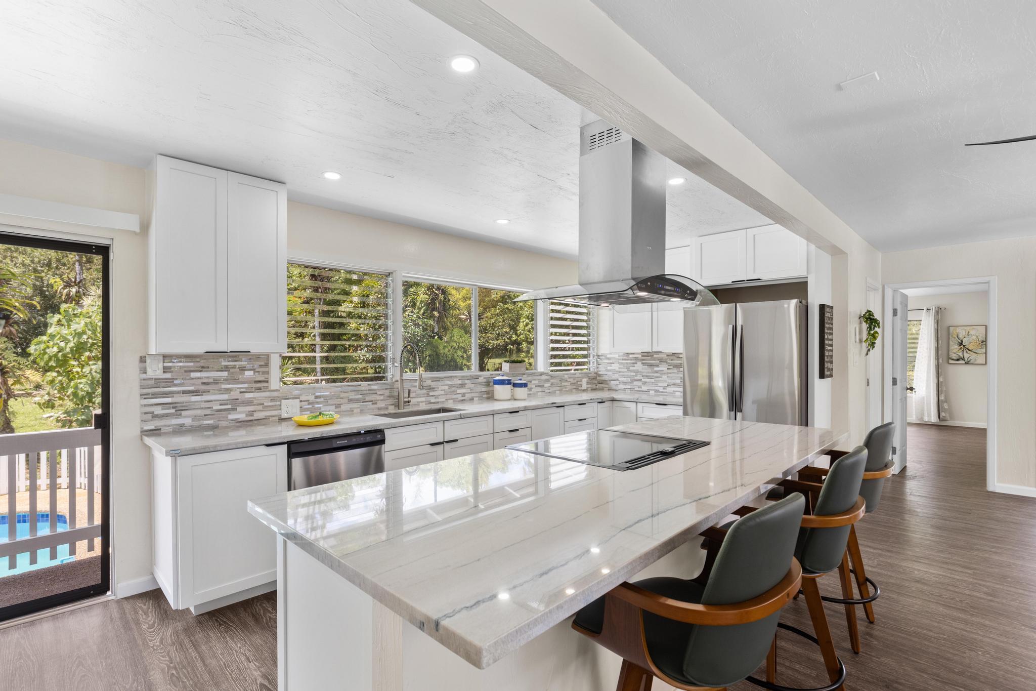 This detailed and creatively renovated home featuring two separated, fresh dwellings--ideal for multigenerational living, a potential rental income, or a private guest retreat. The entire house has been thoroughly upgraded with quality finishes, offering comfort, functionality, and modern appeal. With new floor, new ceiling, new bathrooms, new kitchen, new appliances, new curtains, new electric, new plumb, new catchment tank, and new painting interiors and exteriors, the home is now ready for a new owner. Upstairs boasts a bright, open floor plan with updated flooring, a sleek kitchen with new appliances, and spacious bedrooms filled with natural light. The basement offers its own private entrance, kitchenette, living space, and bathroom--perfect for extended family, visitors, or as a long-term rental option. With an easy access to the main road, this home has an in-ground pool which provides the owners a cool and refreshing summer time. Newly installed concrete circling driveway with two gate make the property gracious and estate-like. Whether you are looking for a smart investment or a flexible living solution, this turn-key property is a great catch. This property is sold As Is. Please submit offer with an "As Is" addendum.
