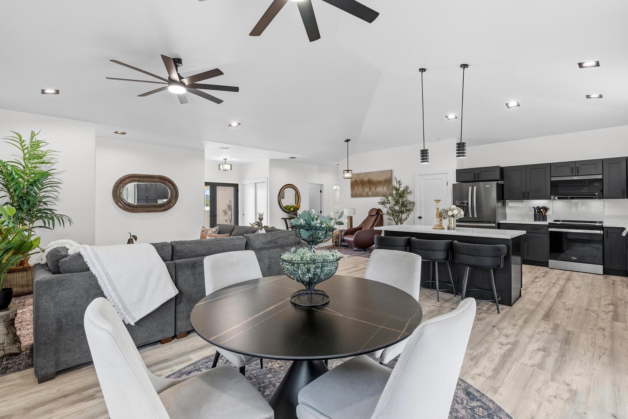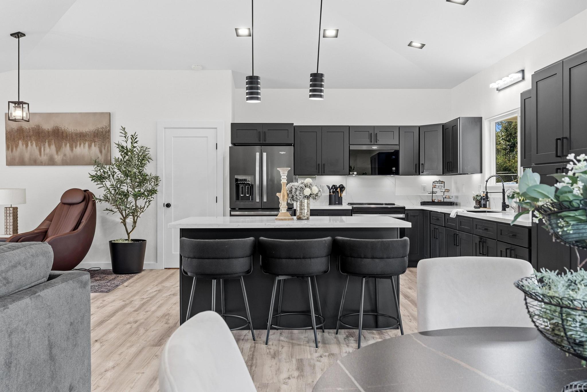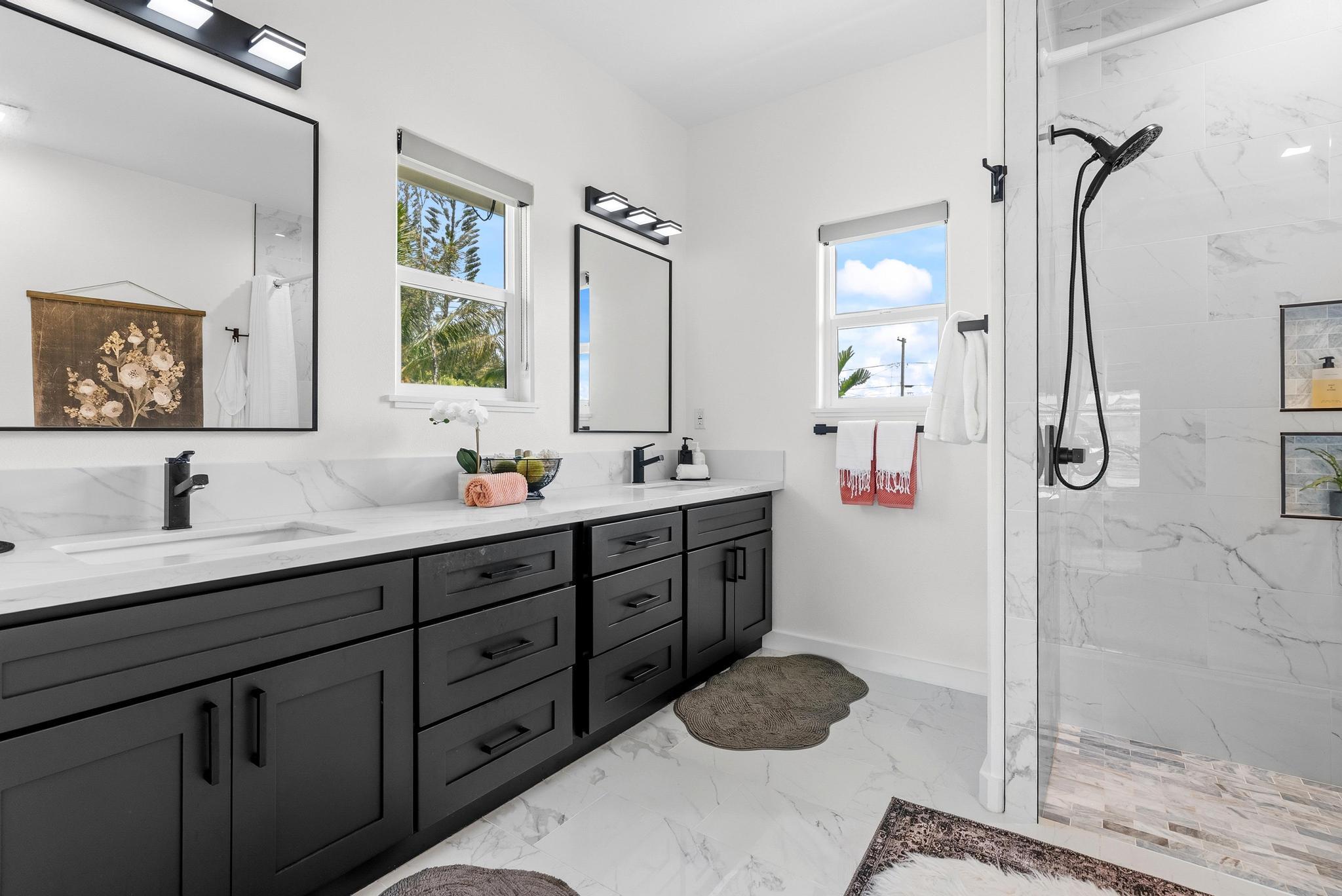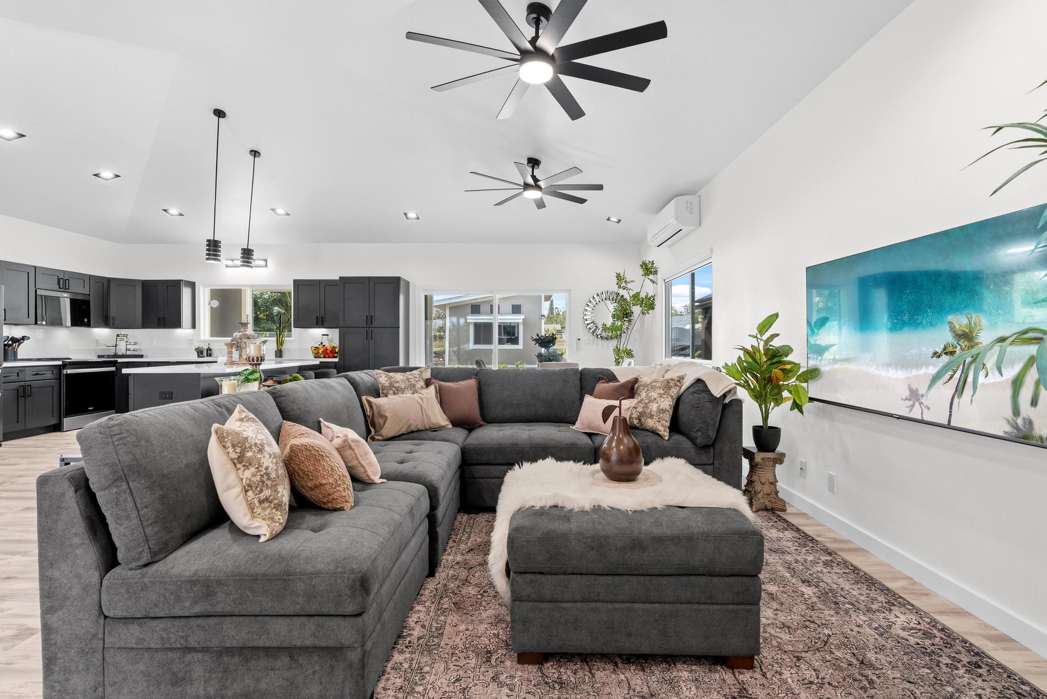 Location, location, location! 15-1818 31st Avenue, Keaau; one of East Hawai‘i’s most desirable tropical neighborhoods near the top of Hawaiian Paradise Park. This newer single-level, move-in ready home where thoughtful design meets everyday functionality, flexibility, and style. Set on a beautifully leveled, fully fenced one-acre lot with a gated entrance and wide paved driveway, this bright and spacious 4-bedroom, 3-bathroom home offers an ideal layout for easy access and comfortable living. Inside, you’ll find two ductless climate control systems, a grand entrance walkway with French doors, and a well-designed floor plan with comfortable separation of space. The open concept kitchen, dining, and living areas are filled with extras, including vaulted ceilings, a large island, walk-in pantry, abundant storage, and an advanced RO ECO drinking water system. Durable LVP flooring throughout creates a clean, modern, low-maintenance feel. The primary suite is a standout, featuring a spacious bedroom with large sliding glass doors leading to the gazebo and lanai areas. The suite also includes a walk-in closet and beautiful white marble en suite bathroom with a walk-in shower. Adjacent to the entrance and primary suite is the second bedroom, ideal as an office, nursery, or study. On the opposite side of the home are two additional bedrooms and two bathrooms, offering privacy and comfort. The upgraded utility and laundry room leads to the oversized 2-car garage with an epoxy-sealed floor, two side entrances, solar water heater, and whole-home water filtration system. Outside, the thoughtfully landscaped yard offers both beauty and utility. A recently custom-built 20x12 auxiliary structure with solar-powered ventilation and lighting creates possibilities for a studio, hobby room, office, or future ohana. The 16x10 gazebo creates the perfect shaded outdoor lounge area. With newer construction, flexible spaces, and clean finish, this is the one!