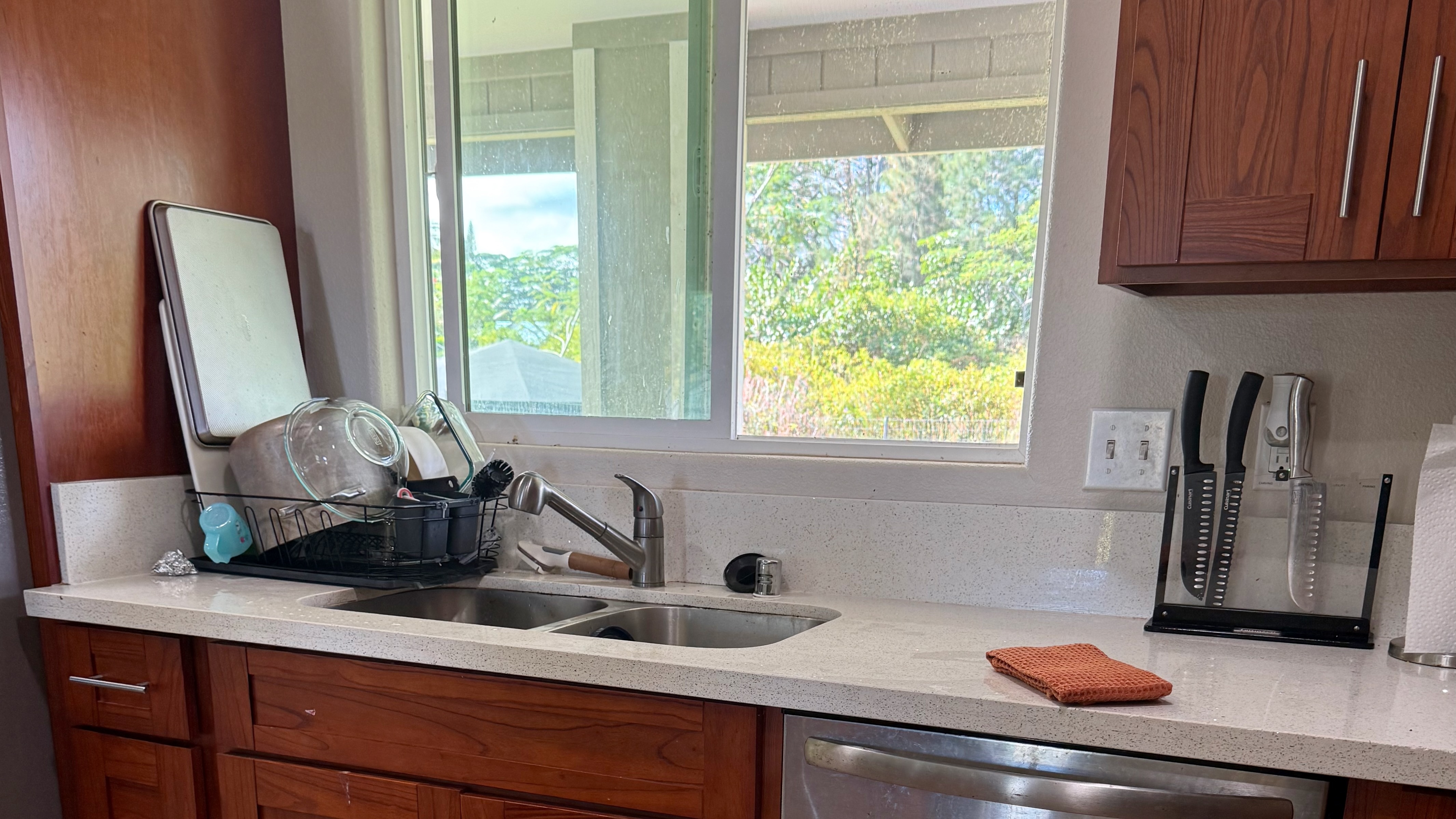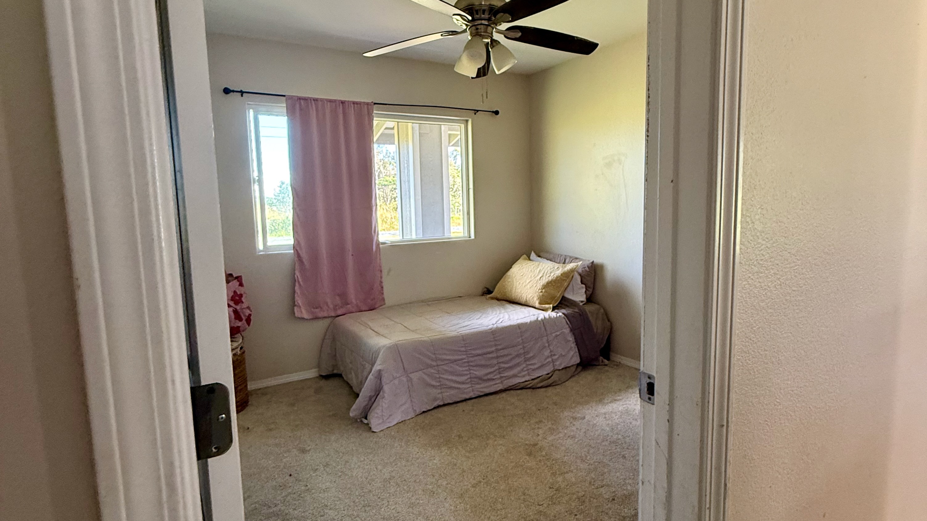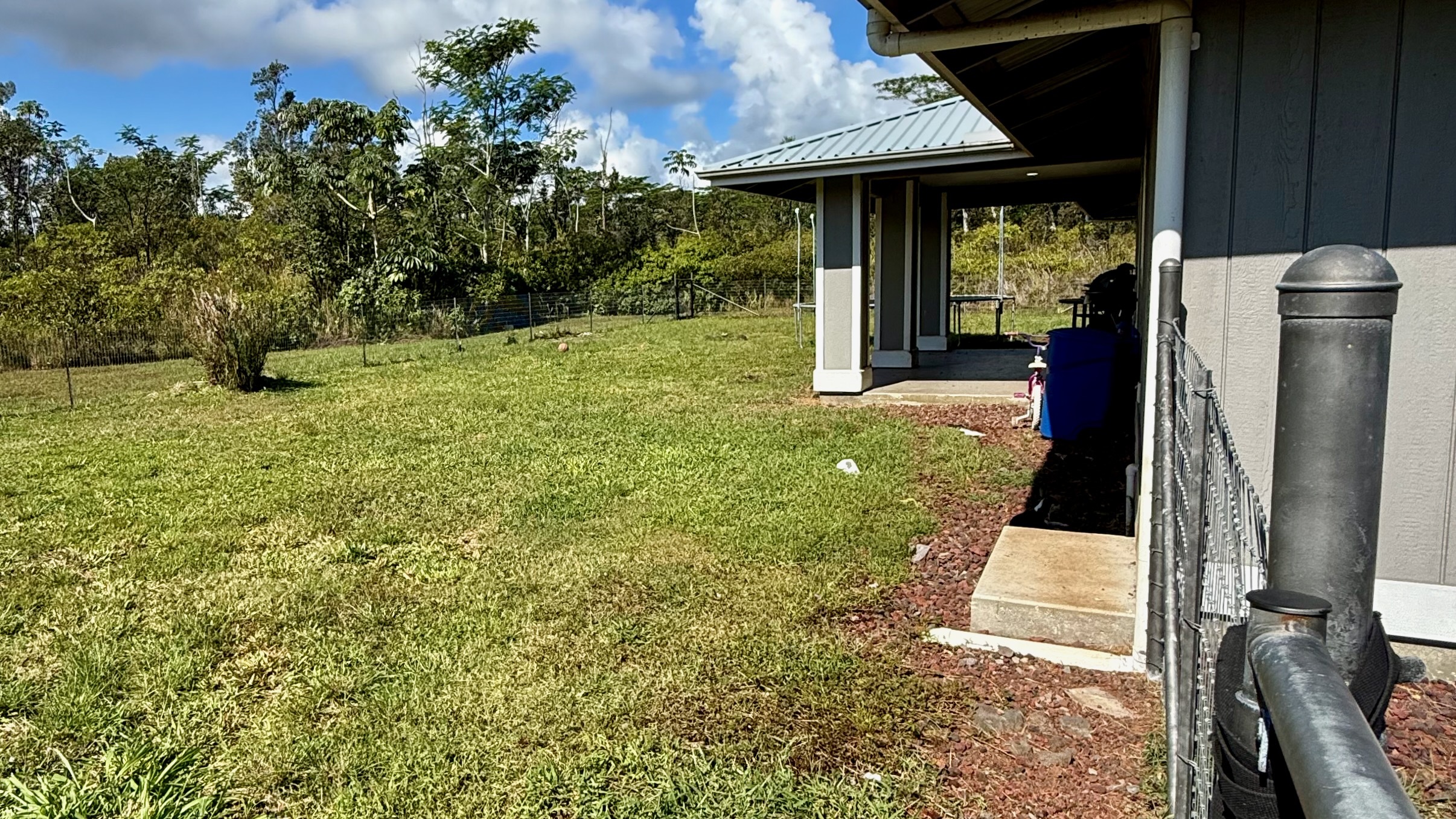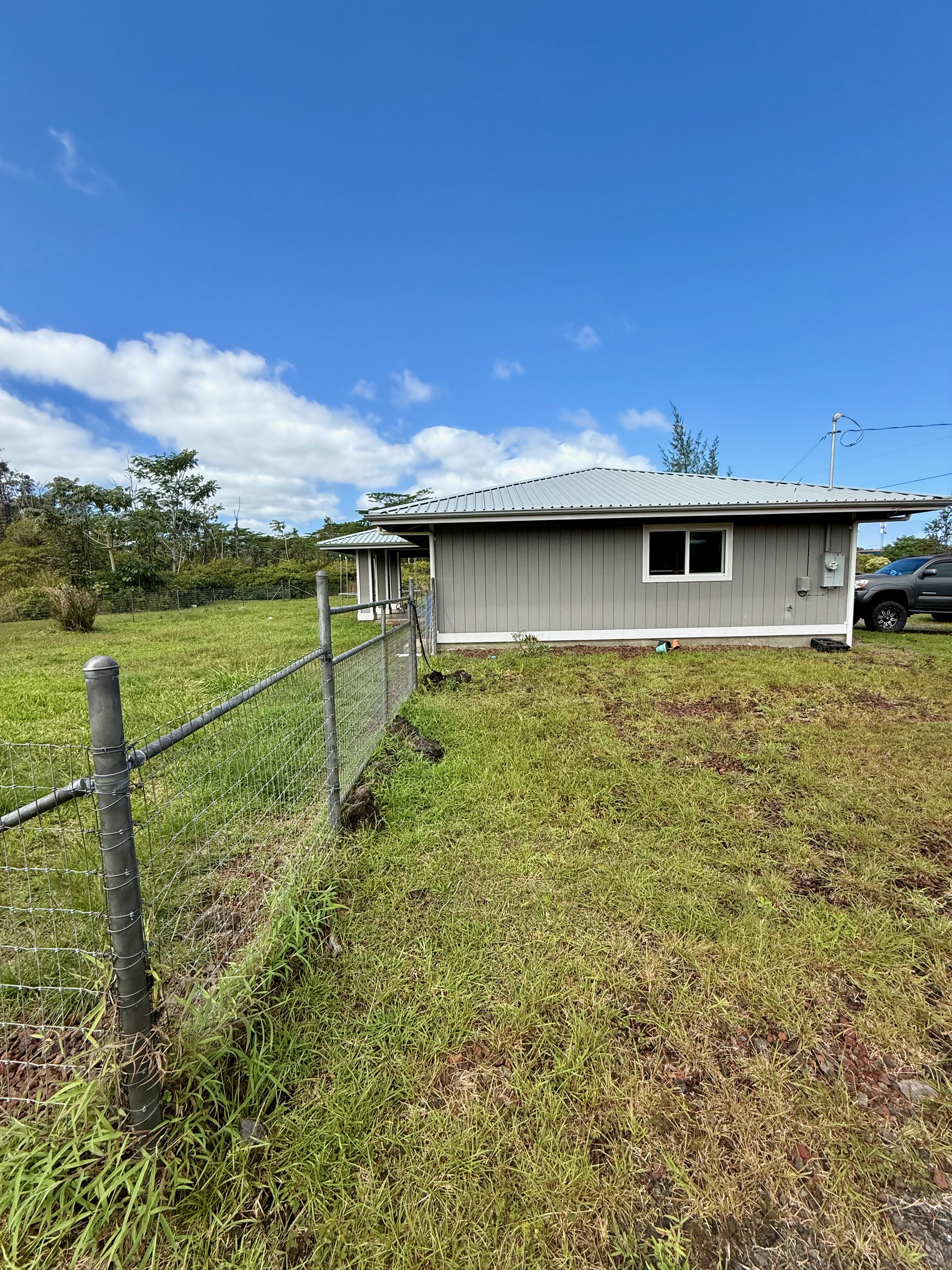 This HPM kit home is located on 6th Avenue in Hawaiian Paradise Park, just a few houses down from Kaloli Drive, offering a desirable location in the HPP Sunbelt with refreshing ocean breezes. The property features a cleared and graded lot, with a wire fence enclosing the backyard only–creating a contained space ideal for pets or little ones. A thoughtful portion of the lot has been hand-cleared to preserve natural beauty, including approximately ¼ acre of ?ohi?a forest retained in the rear-right portion of the property, as well as ohi?a maintained along the front right-of-way. The remainder of the lot is open and ready for additional landscaping, gardening, or future development, offering a nice balance of usable space and native surroundings. This spacious 3-bedroom, 2-bath home offers a comfortable and practical floor plan. The open-concept living room flows into the kitchen and dining area, creating a bright and functional living space. The living room and bedrooms feature carpet, while the kitchen and dining area are finished with durable vinyl flooring. The bedrooms are generously sized, making the home well-suited for full-time living, extended stays, or rental use. Built approximately five years ago, the home still feels fresh and modern, offering ease of maintenance and everyday comfort. Additional features include a 2-car garage, providing secure parking and extra storage. With its excellent Sunbelt location, preserved ?ohi?a, thoughtful layout, and room to expand, this property presents a great opportunity to enjoy island living in a well-established neighborhood.