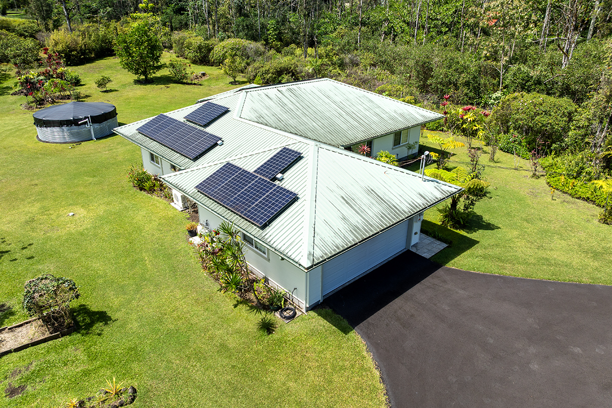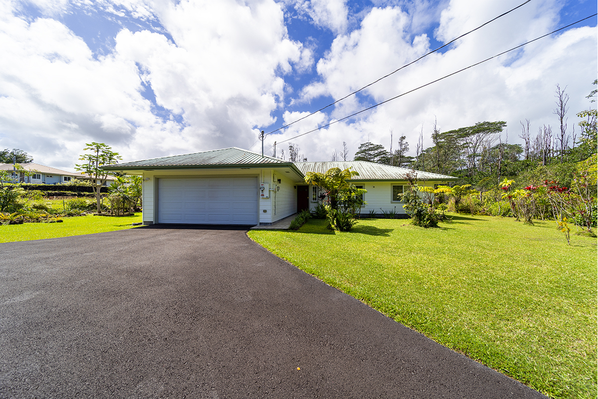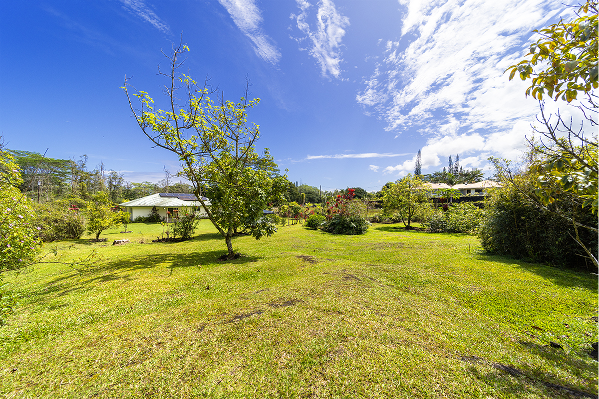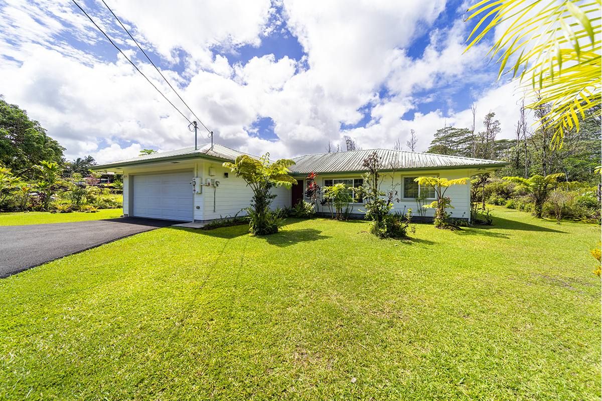 Discover modern comfort and ultimate energy independence in this beautifully maintained 3-bedroom, 2-bath home on 24th Avenue in Hawaiian Paradise Park. Situated on a paved road, this fully fenced and gated 1-acre parcel offers a private sanctuary with a mature landscape of mango and citrus trees, along with vibrant ornamental tropical plants and trees. Step inside to an airy, open living space featuring soaring vaulted ceilings and a thoughtful split-floor plan for maximum privacy. The primary suite is a true retreat, offering a spacious walk-in closet and a private en-suite bath. On the opposite side of the home, two generous guest bedrooms share a second full bath. The chef-inspired kitchen is the heart of the home, complete with sleek granite countertops, a convenient breakfast counter, and a spacious walk-in pantry. Stay cool year-round with split-zone A/C units in every room. This home is built for East Hawaii longevity, featuring Hardiplank exterior siding and a high-end water system upgraded with a UV filter. Efficiency is key with an on-demand propane water heater and a spacious garage. The standout feature is the fully owned photovoltaic system. Equipped with 24 panels and the advanced Tabuchi Eco Intelligent Battery System (EIBS), this setup provides 5.5kW of power and nearly 15 kWh of storage while still being connected to Hawaiian Electric. Enjoy seamless backup power during outages and significant utility savings. Combining island charm with cutting-edge technology, this move-in-ready gem is HPP living at its finest! Property Video: https://realestatevideos.vids.io/videos/5a9bd3b41718e5cad0/15-1830-24th-ave