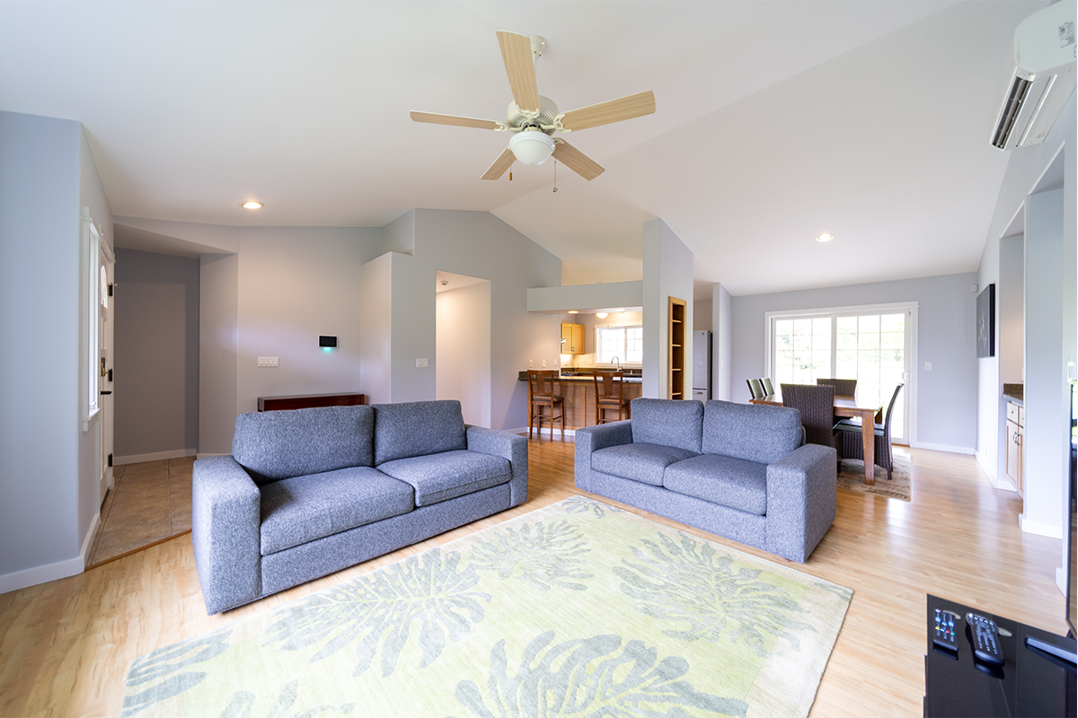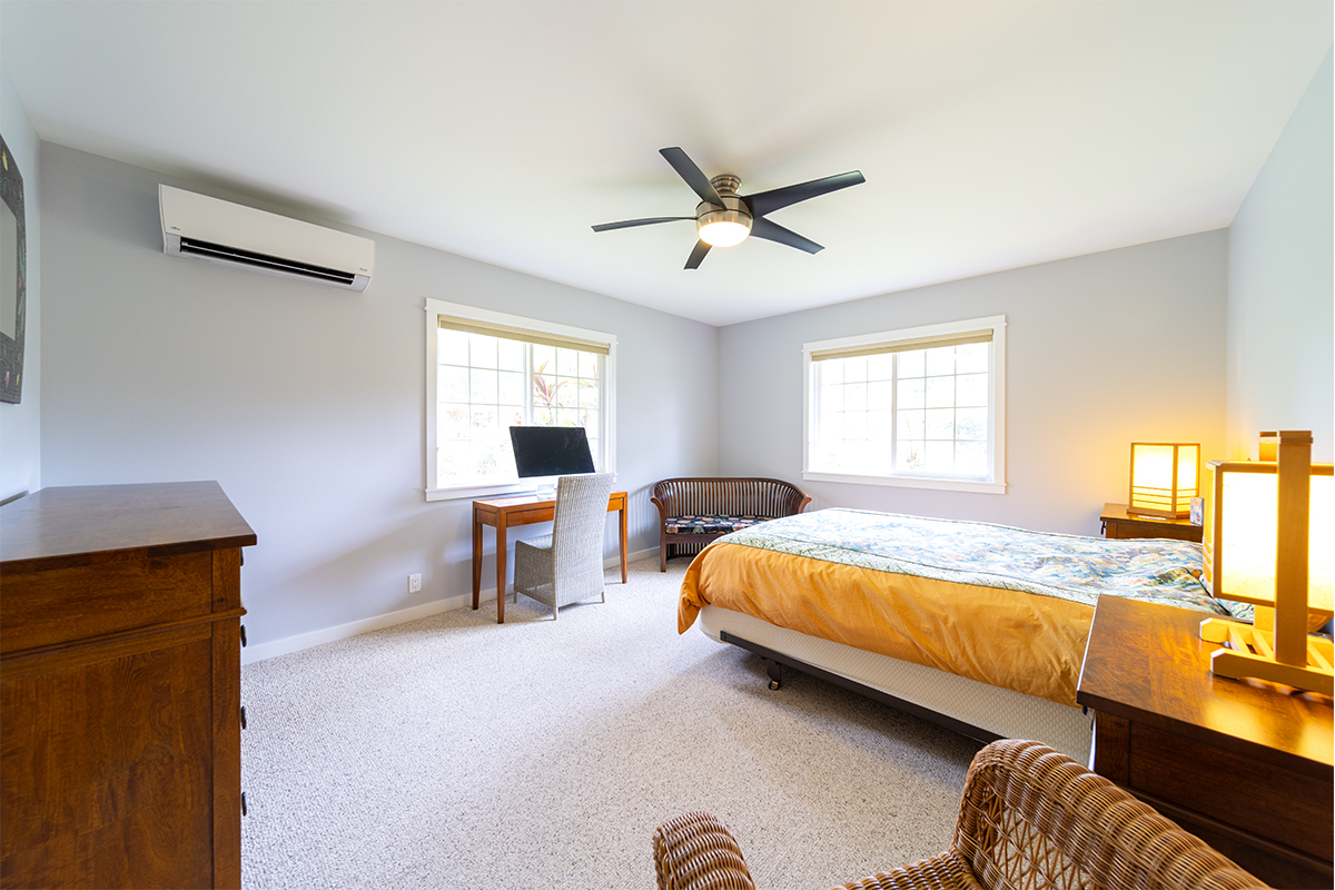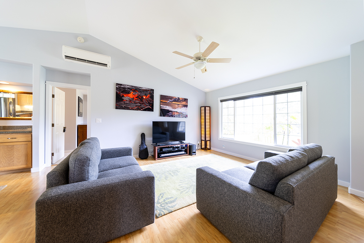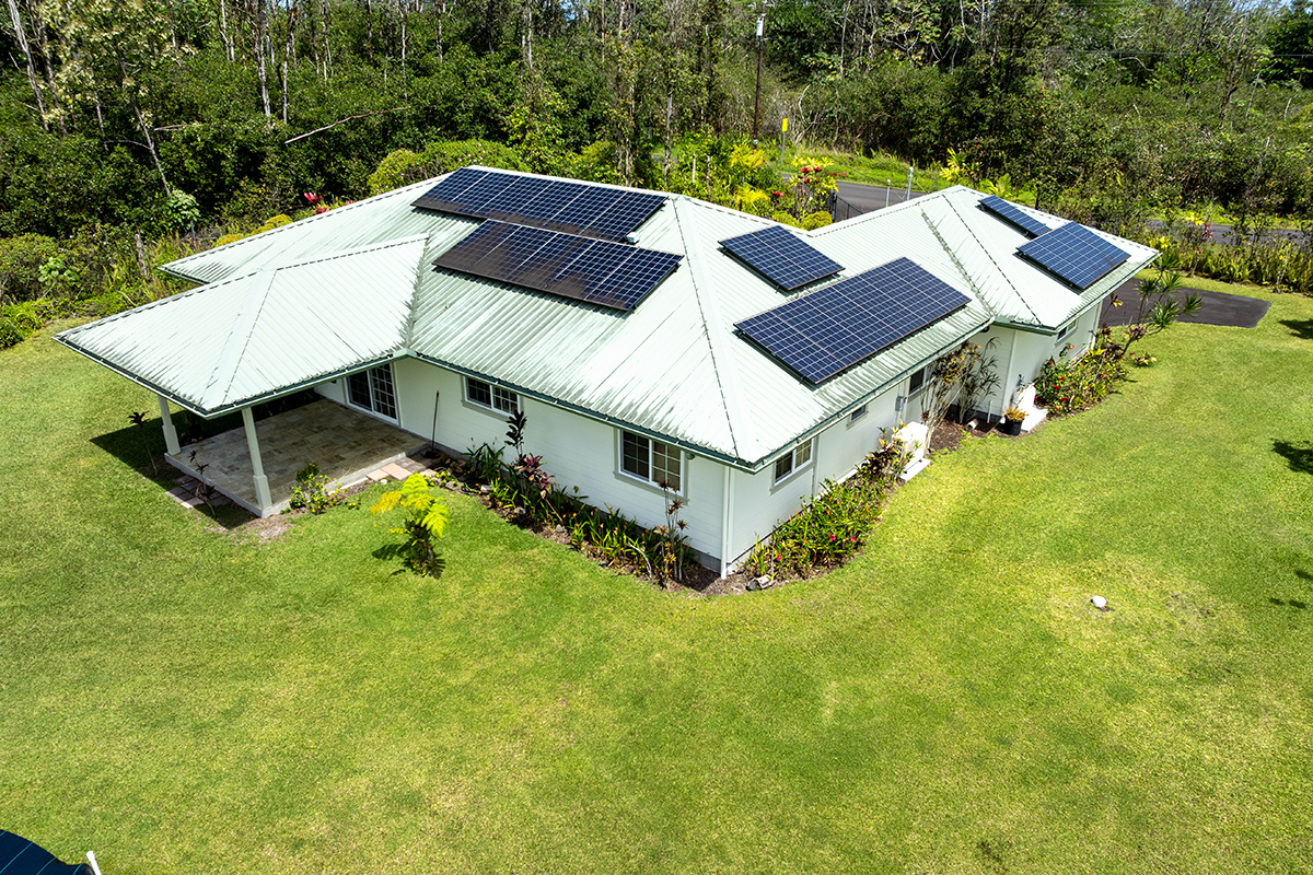 Discover modern comfort and ultimate energy independence in this beautifully maintained 3-bedroom, 2-bath home on 24th Avenue in Hawaiian Paradise Park. Situated on a paved road, this fully fenced and gated 1-acre parcel offers a private sanctuary with a mature landscape of mango and citrus trees, along with vibrant ornamental tropical plants and trees. Step inside to an airy, open living space featuring soaring vaulted ceilings and a thoughtful split-floor plan for maximum privacy. The primary suite is a true retreat, offering a spacious walk-in closet and a private en-suite bath. On the opposite side of the home, two generous guest bedrooms share a second full bath. The chef-inspired kitchen is the heart of the home, complete with sleek granite countertops, a convenient breakfast counter, and a spacious walk-in pantry. Stay cool year-round with split-zone A/C units in every room. This home is built for East Hawaii longevity, featuring Hardiplank exterior siding and a high-end water system upgraded with a UV filter. Efficiency is key with an on-demand propane water heater and a spacious garage. The standout feature is the fully owned photovoltaic system. Equipped with 24 panels and the advanced Tabuchi Eco Intelligent Battery System (EIBS), this setup provides 5.5kW of power and nearly 15 kWh of storage while still being connected to Hawaiian Electric. Enjoy seamless backup power during outages and significant utility savings. Combining island charm with cutting-edge technology, this move-in-ready gem is HPP living at its finest! Property Video: https://realestatevideos.vids.io/videos/5a9bd3b41718e5cad0/15-1830-24th-ave