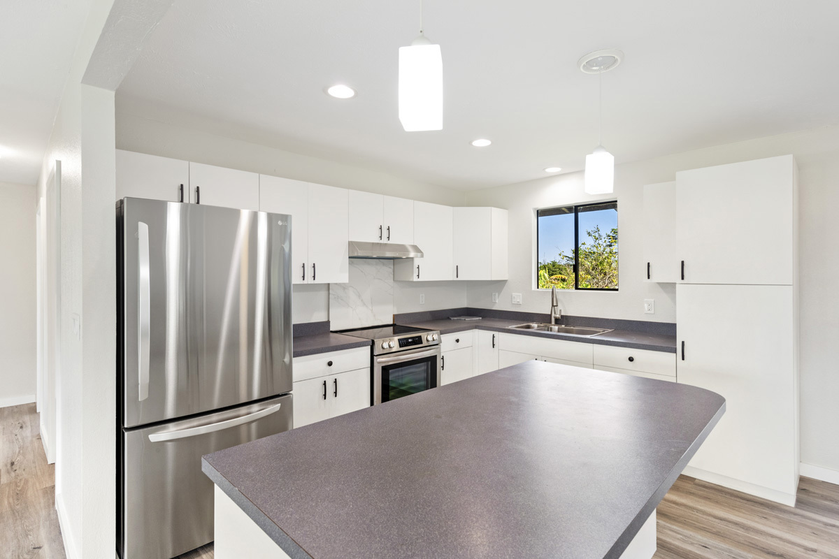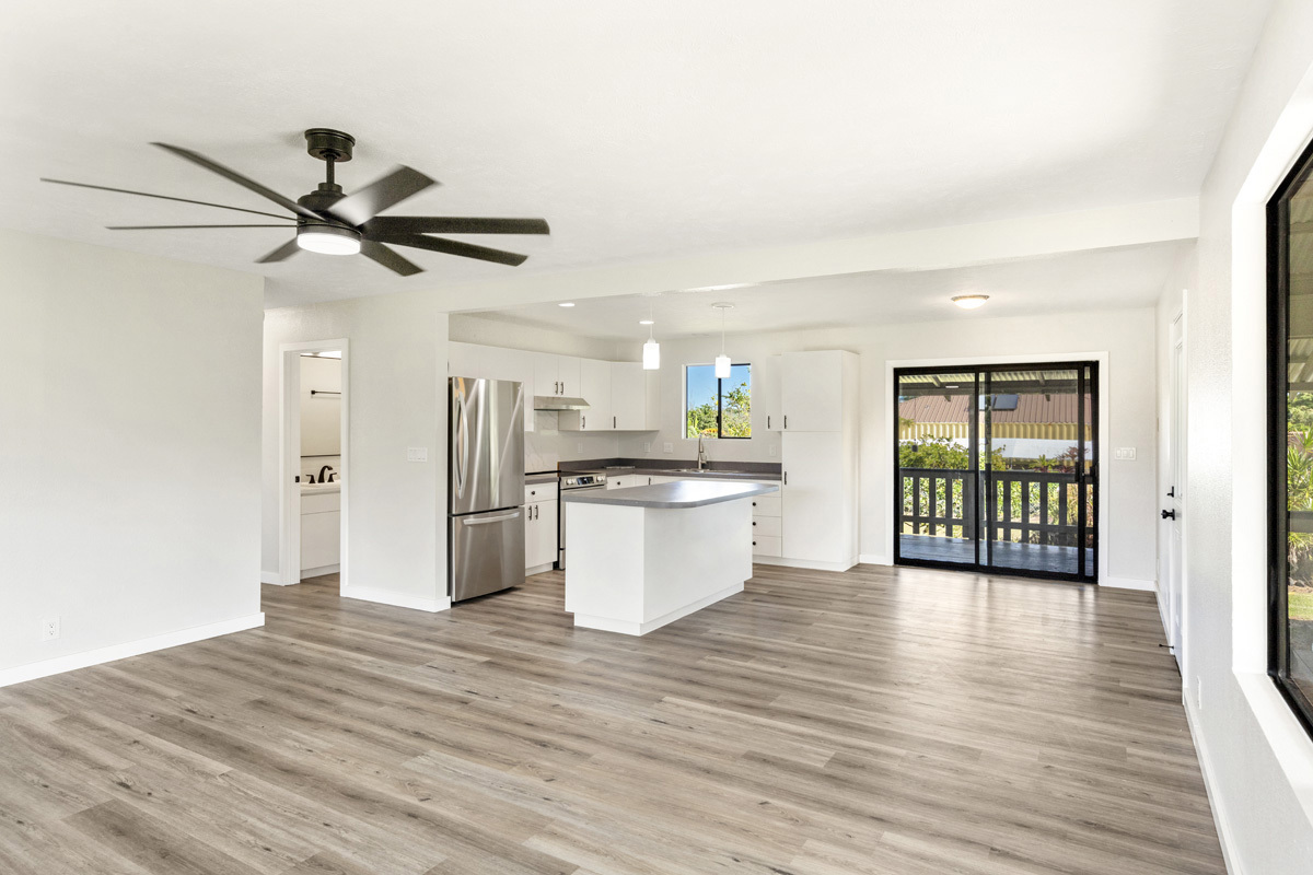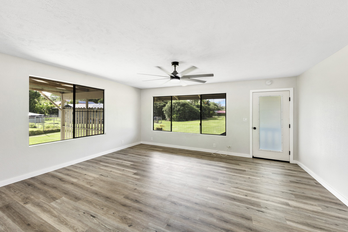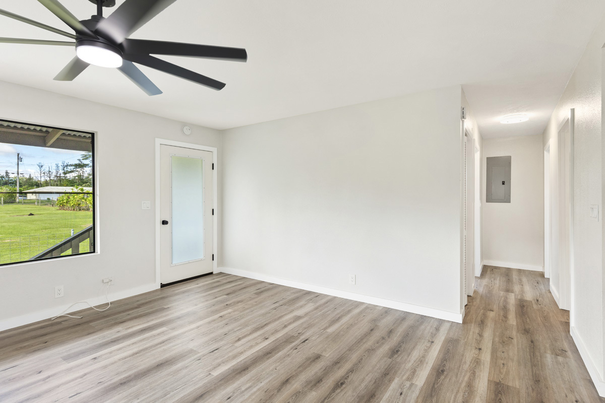 Discover the perfect blend of privacy and modern comfort on this beautifully improved one-acre property on paved 25th Ave near the top of Hawaiian Paradise Park. Situated away from the road at the back of a mostly fenced, grassy parcel, this freshly remodeled 2-bedroom, 1-bath post-and-pier home offers a peaceful, private setting with gated entry for added security and seclusion. With over 1,000 Sq. Ft. of living space, this well kept home provides a functional layout designed for everyday island living. Completely remodeled, this home features a bright and efficient floor plan, and thoughtful modern updates throughout. An attached two-car carport provides convenient covered parking along with additional storage possibilities. The expansive one-acre lot offers ample space to expand or add future improvements, such as a guest dwelling, workshop, or enhanced landscaping, while maintaining the privacy of the existing home site. In preparation for the sale, the owner proactively had the home fumigated by Bowman Termite in Dec. 2025. A two-year Fumigation Warranty will be provided, offering added peace of mind. Additional Unique Opportunity: The Seller also owns the adjacent property, 15-1845 25th Ave, not currently listed, and may consider selling it as well to a Buyer who's interested in both properties. This presents a rare chance to acquire two side-by-side one-acre parcels–ideal for an expanded compound, multi-generational or multifamily living, or for those seeking a primary residence with a rental or extended living option next door. Conveniently located, a short drive brings you to nearby amenities including Orchidland General Store (approx. 2 miles), Puna Kai Shopping Center (5.3 miles), Keaau (7.2 miles), and Hilo (15 miles). Whether you’re searching for a move-in-ready and affordable home, an investment opportunity, or room to grow, this property delivers space, flexibility, and value in one desirable package. Shown by appointment.