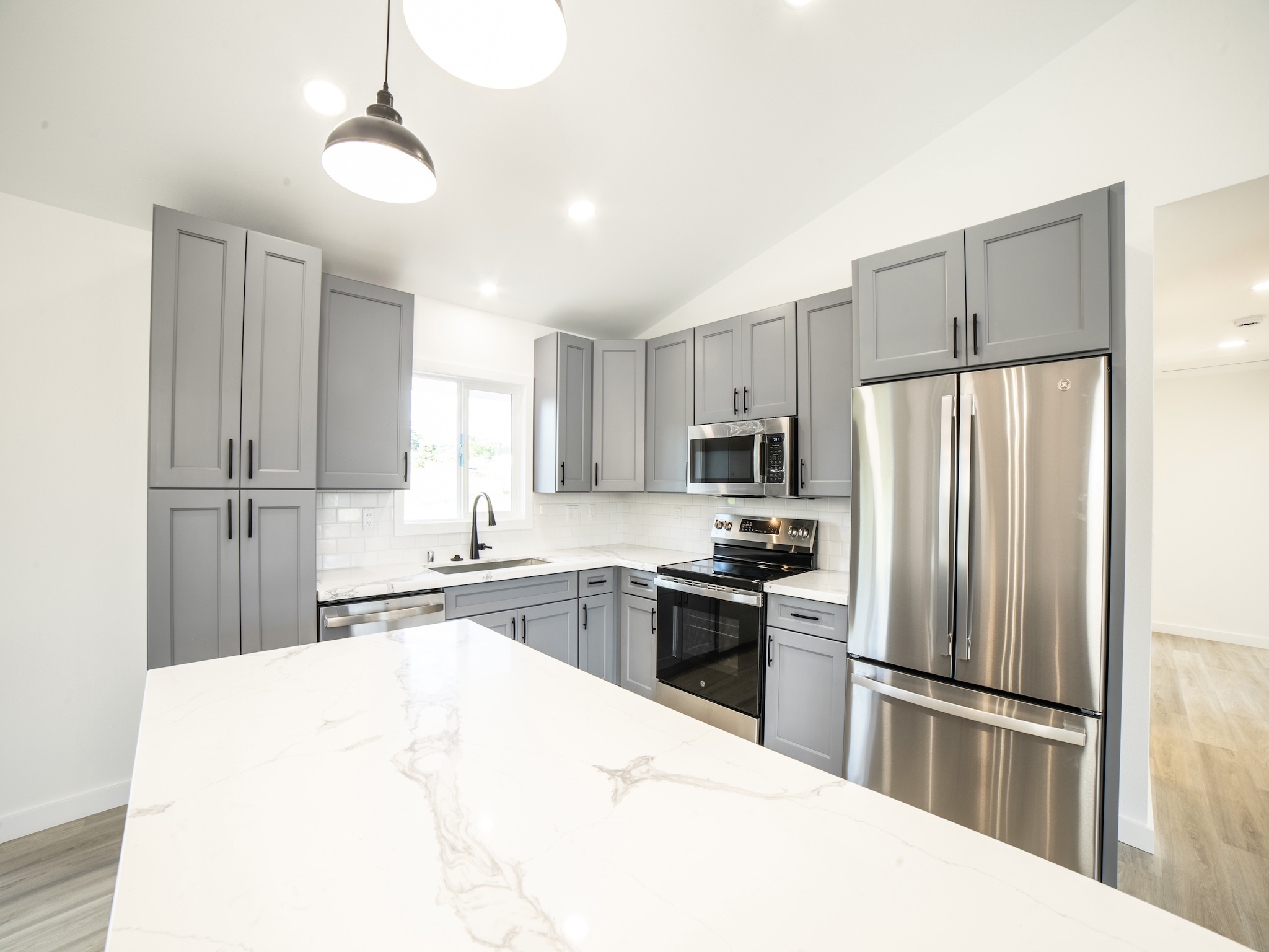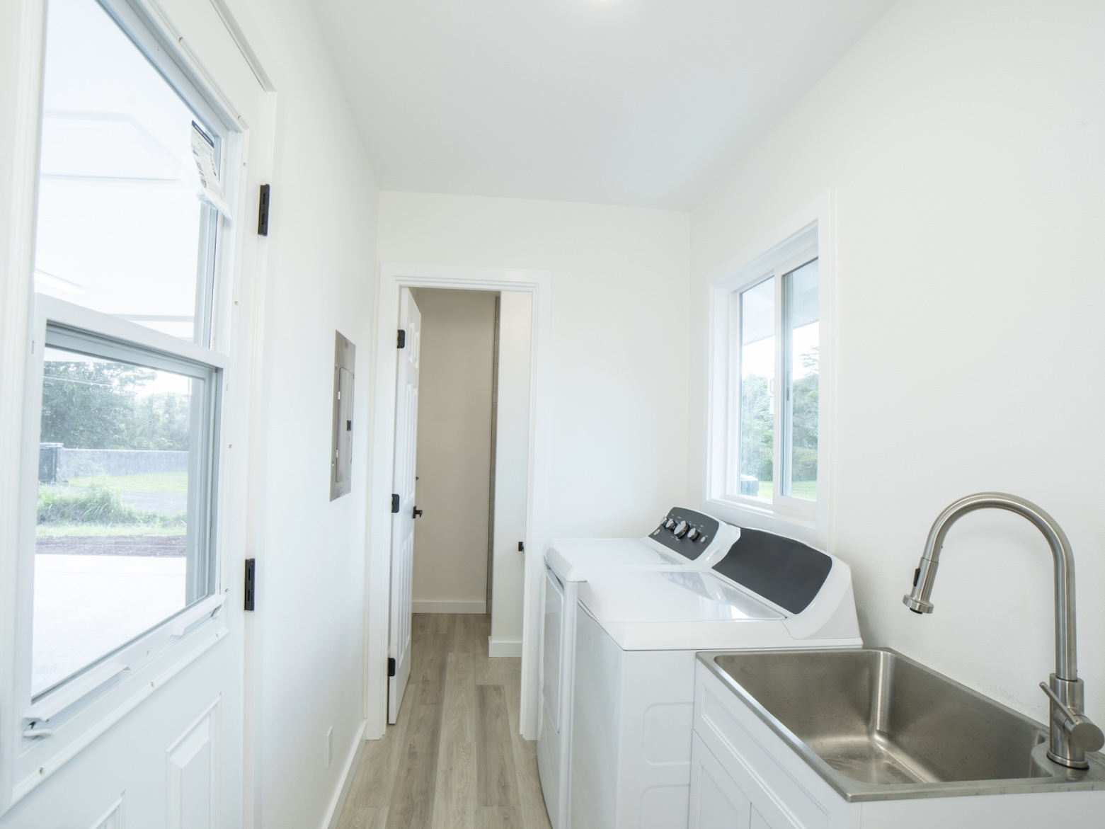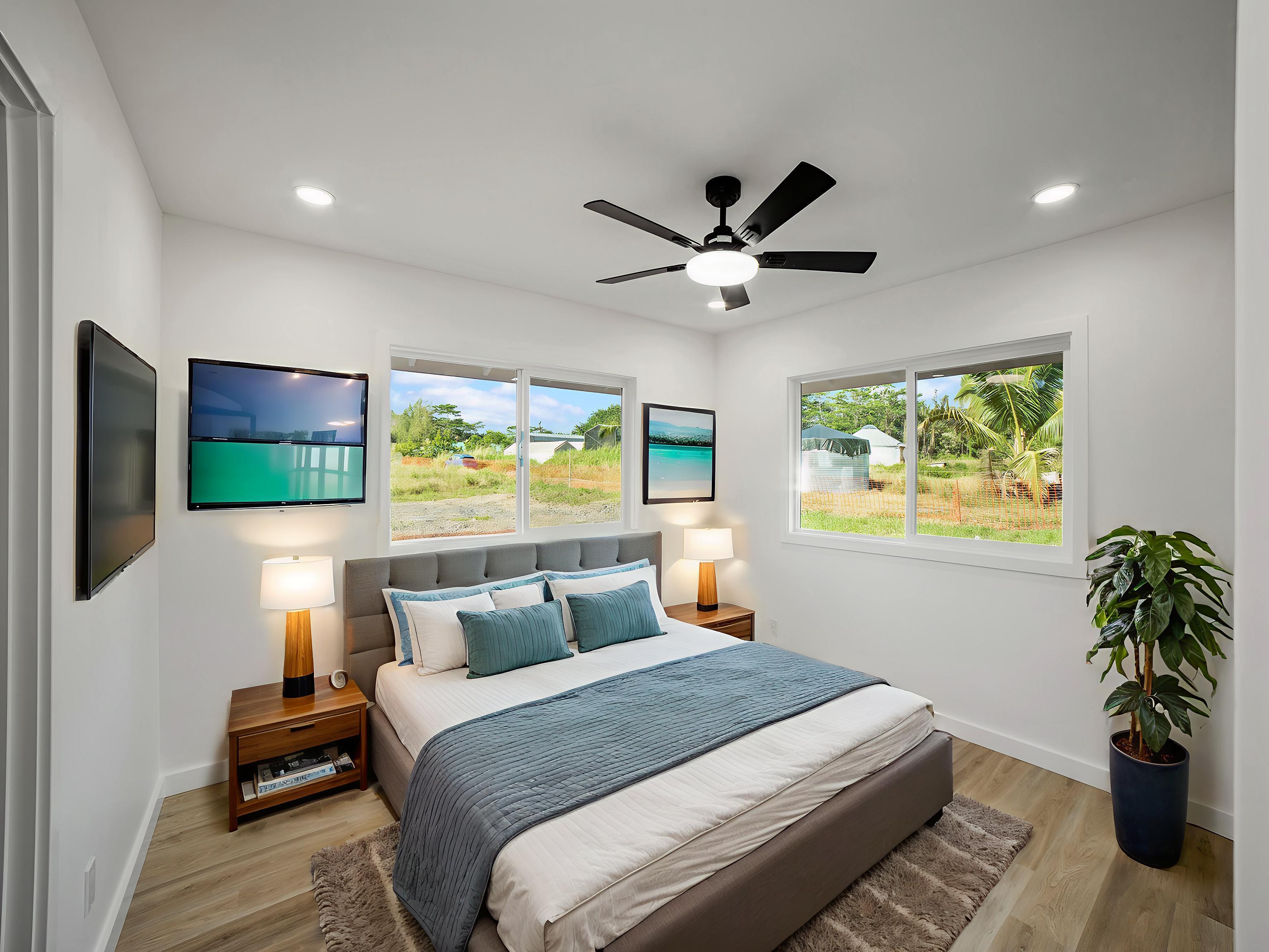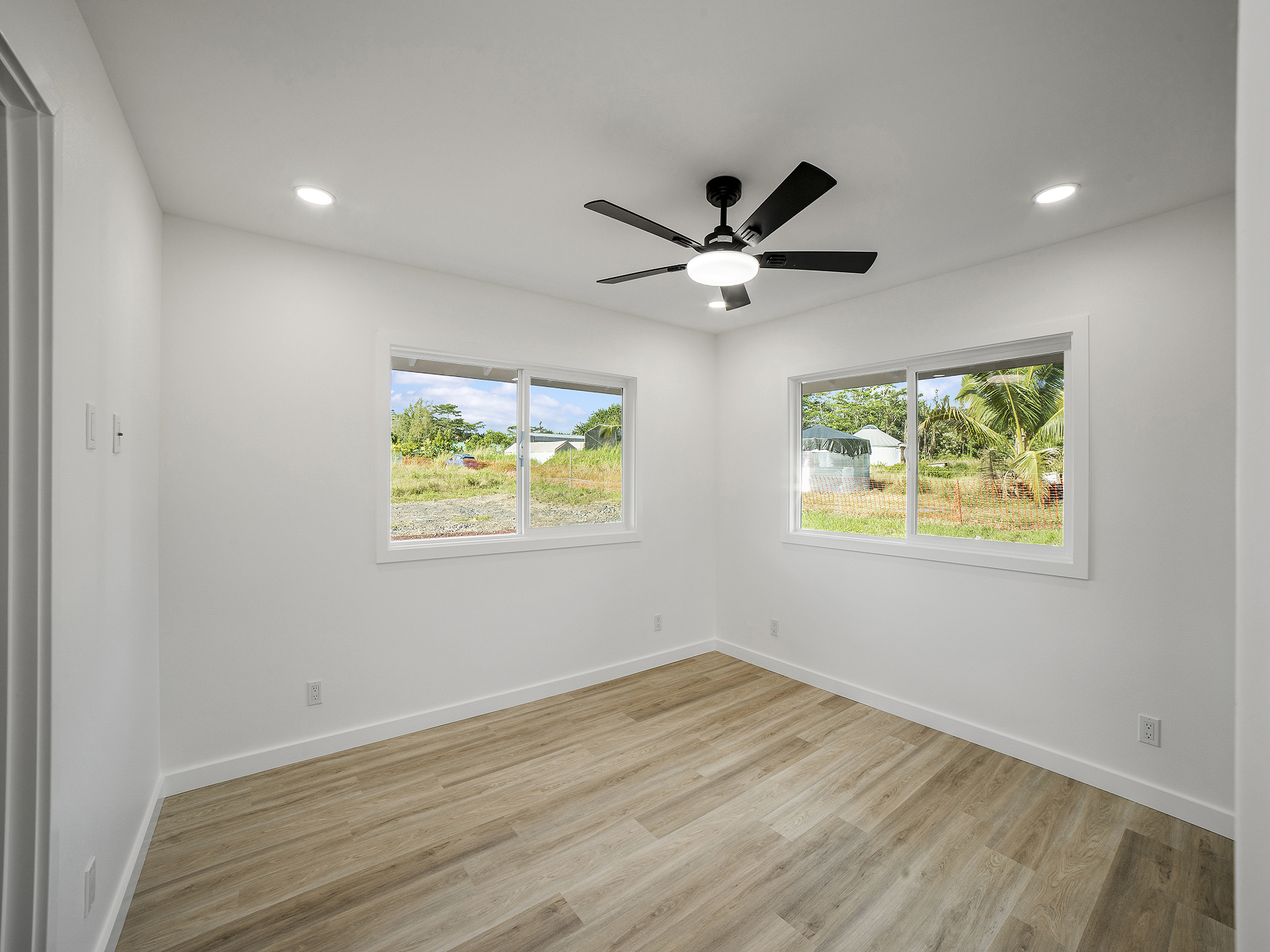 Modern New Construction on One Acre in Hawaiian Paradise Park Welcome to this well-designed new construction home located in the desirable Hawaiian Paradise Park subdivision. Situated on a full one-acre lot, this 3-bedroom, 3-bath residence offers modern style, functionality, and move-in-ready convenience. The interior features wood-look luxury vinyl plank flooring, a bright neutral color palette, and vaulted ceilings that create an open, airy feel. The open-concept living space flows seamlessly into the kitchen, which includes a large center island, stainless steel appliances, modern pendant lighting, and ample cabinetry–ideal for everyday living and entertaining. A standout feature is the dedicated laundry room, accessed through a stylish sliding barn door, complete with a washer, dryer, utility sink, and additional cabinetry for storage. Extra hallway storage adds to the home’s practical and efficient layout. The bedrooms are well-proportioned, and all bathrooms feature contemporary finishes, walk-in tiled showers, and clean modern fixtures. Ceiling fans and recessed lighting enhance comfort throughout the home. Exterior highlights include a wide concrete driveway, a 470-square-foot two-car garage, and a durable metal roof, designed for low-maintenance island living. A solar water heater adds energy efficiency and long-term savings. With plenty of room to landscape, garden, or expand, the one-acre property offers privacy and flexibility rarely found with new construction in this area. Thoughtfully built and move-in ready, this home presents an excellent opportunity to own a modern residence in Hawaiian Paradise Park. see video tour: https://www.youtube.com/watch?v=Asw85kHPaHs