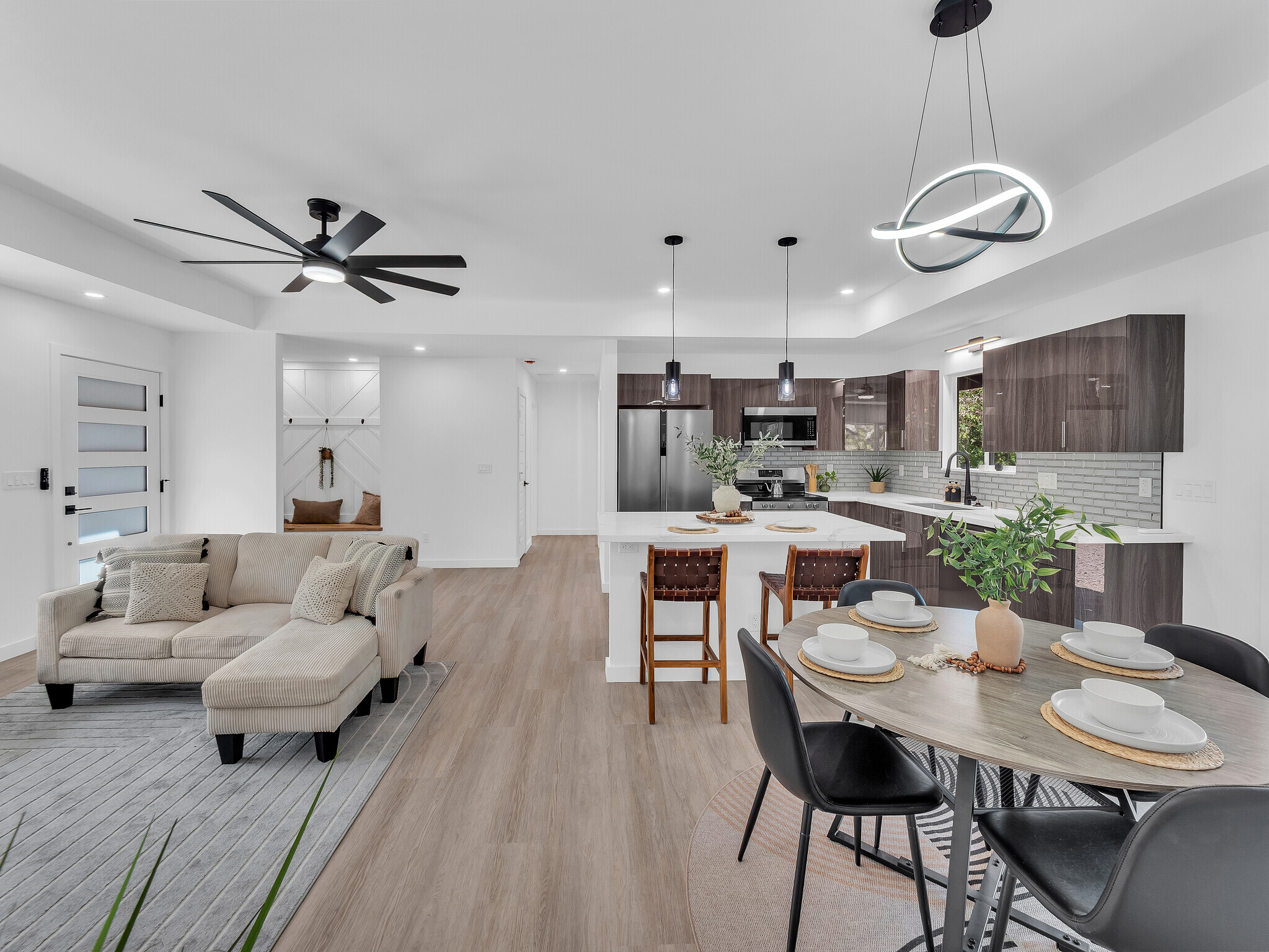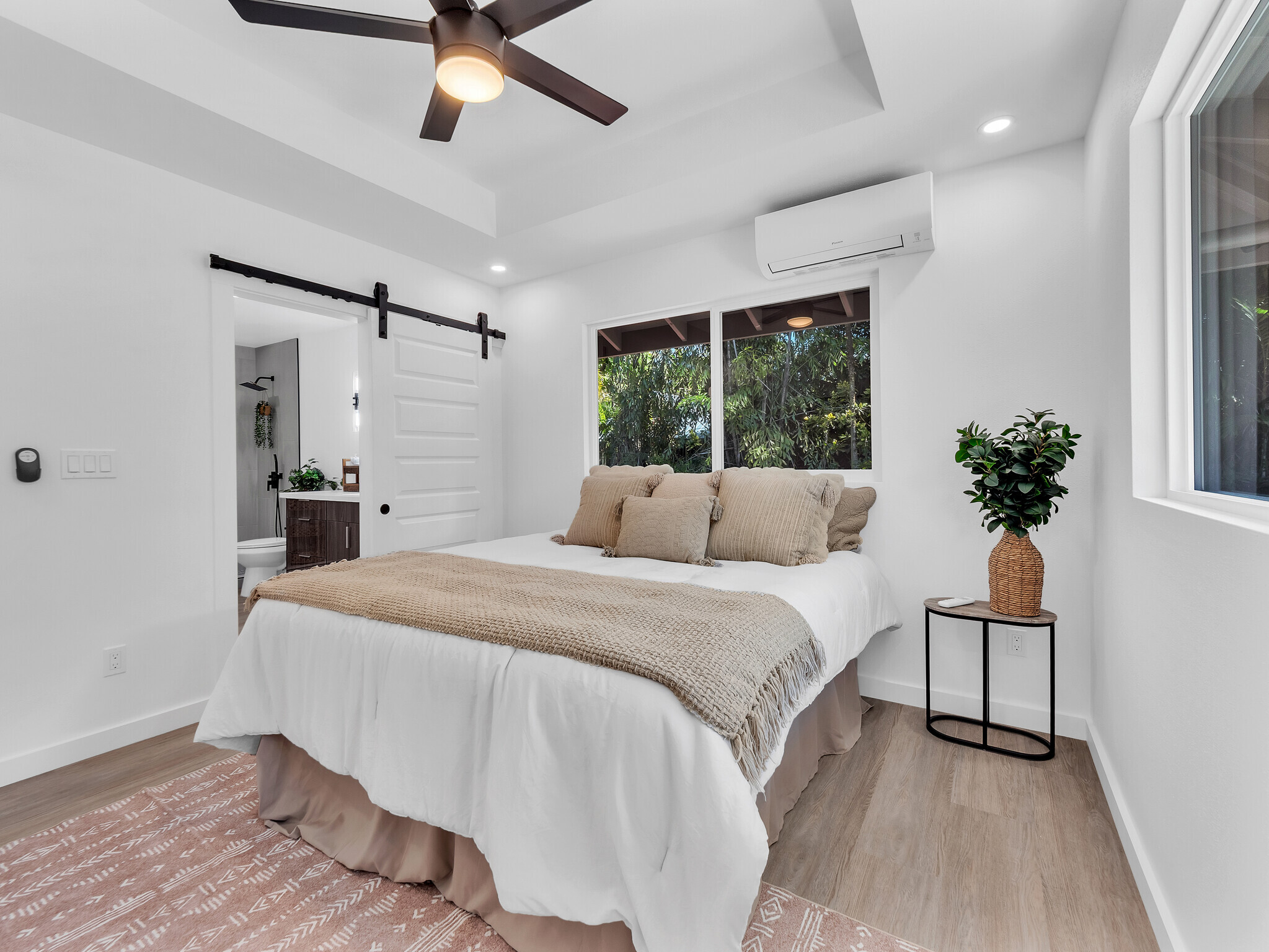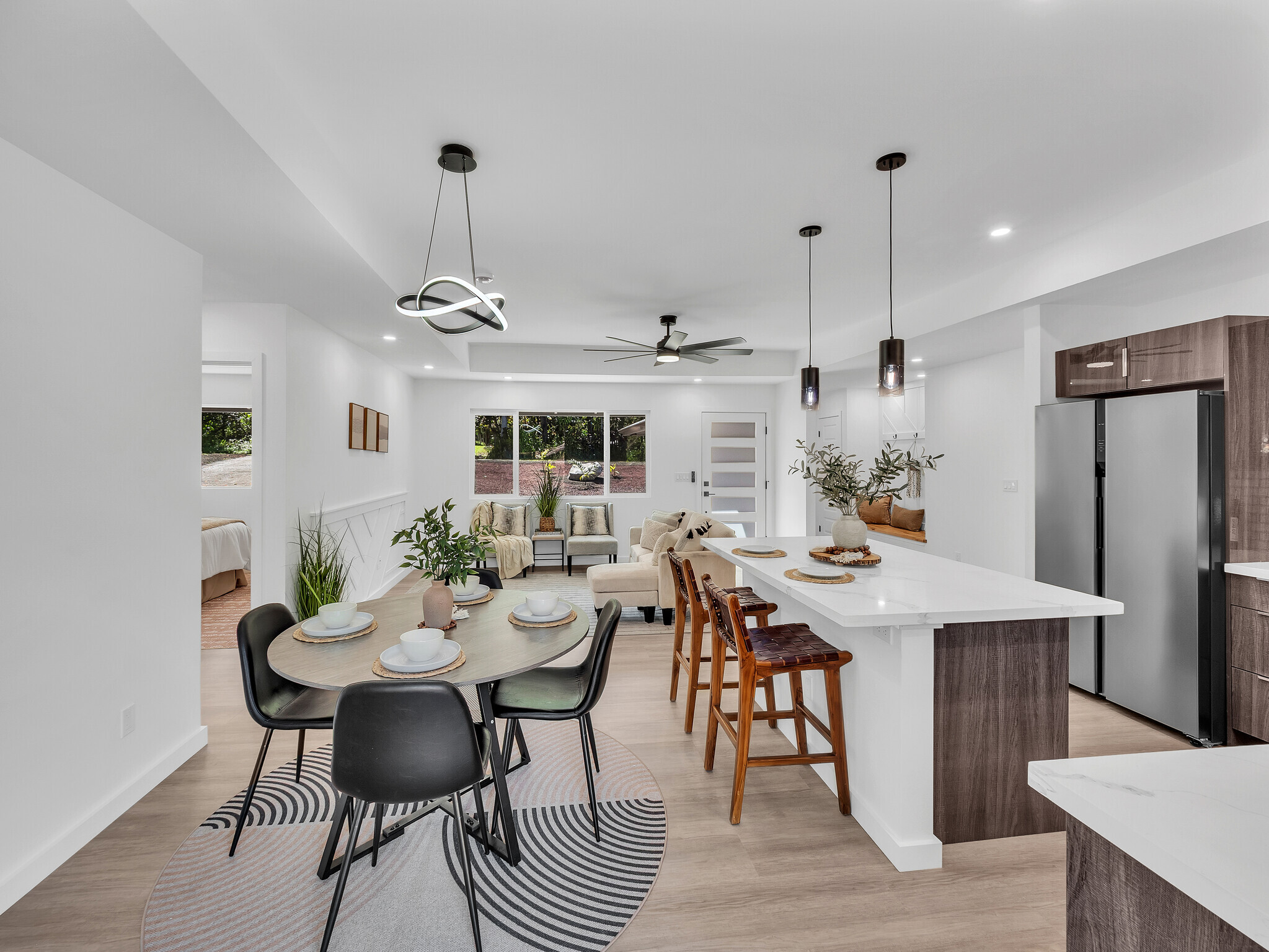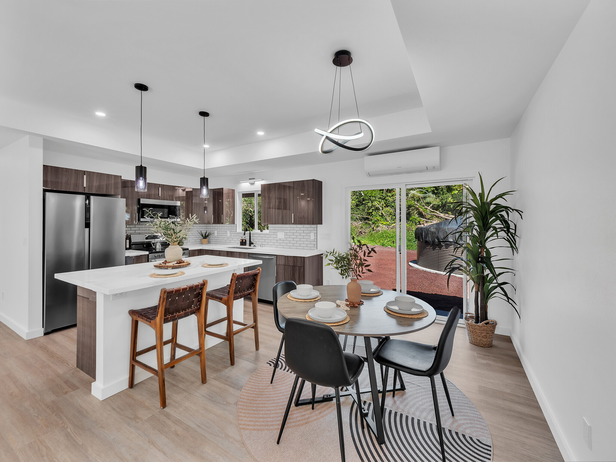 Brand-new construction in the desirable Hawaiian Paradise Park neighborhood! Located at the top of the subdivision for added convenience, this thoughtfully designed 3-bedroom, 2-bath residence is situated on a paved road and offers an ideal blend of privacy and functionality with its popular split floor plan. The open-concept kitchen is a standout, showcasing sleek high-gloss cabinetry, quartz countertops, a spacious island, and a walk-in pantry. The primary suite provides a private retreat with a walk-in closet and tiled walk-in shower with LED lighting in the shower niche. Additional highlights include a convenient mudroom off the garage entry featuring a built-in bench with hidden storage, split A/C units in the living room and primary suite for year-round comfort, and quality finishes throughout the home. Move-in ready and thoughtfully appointed, this is a must-see opportunity in Hawaiian Paradise Park.