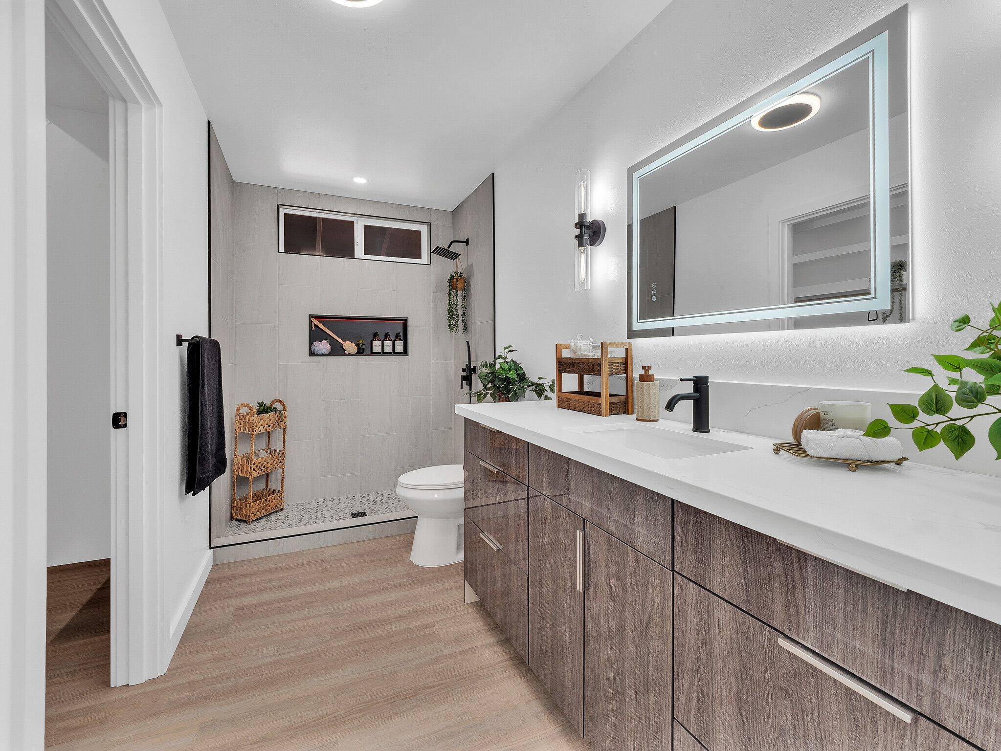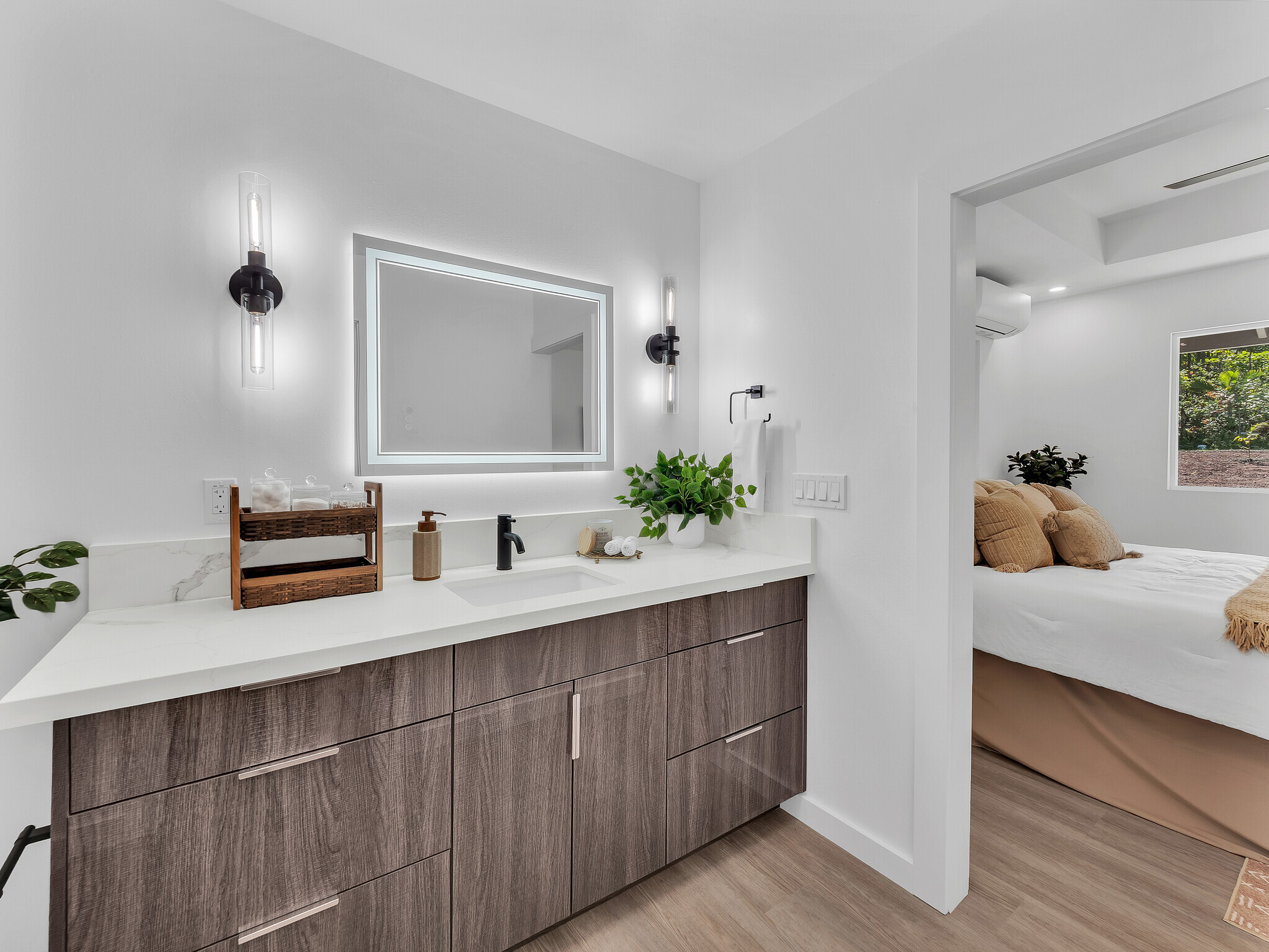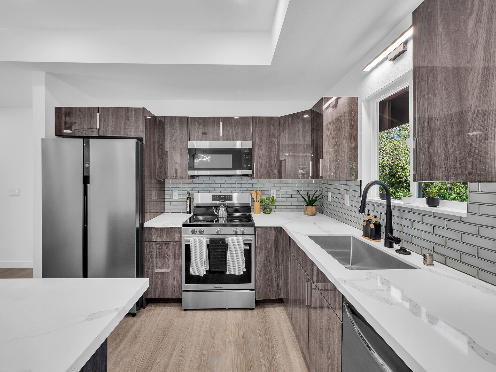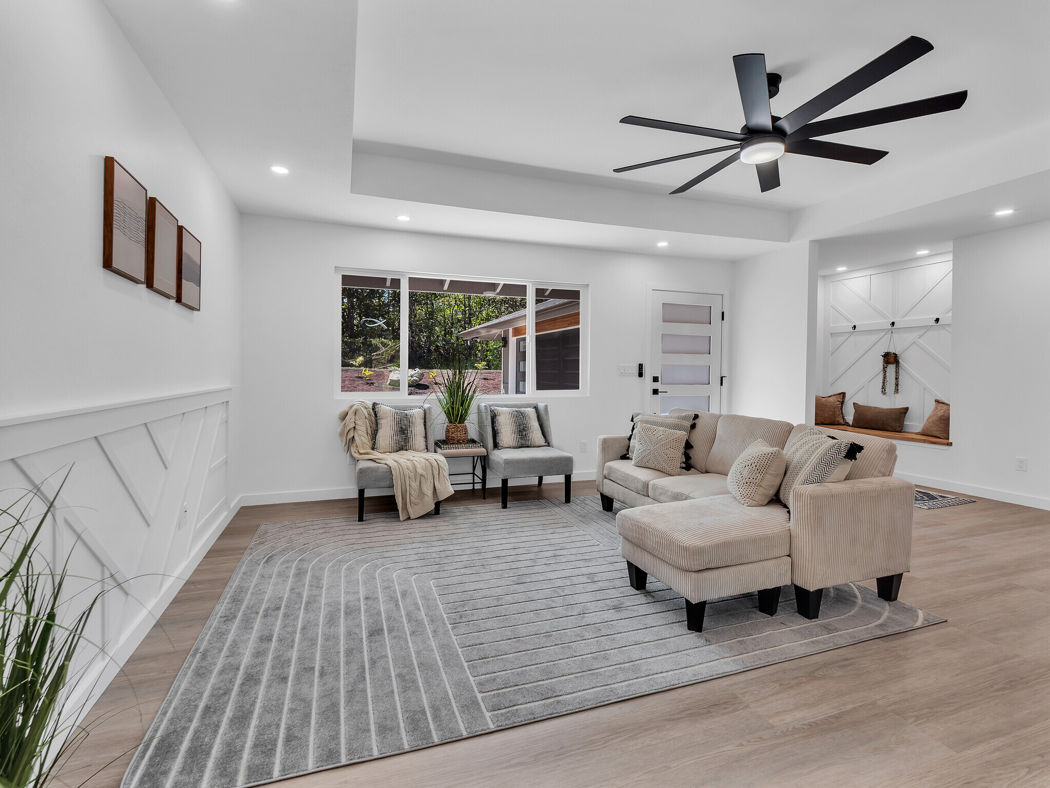 Brand-new construction in the desirable Hawaiian Paradise Park neighborhood! Located at the top of the subdivision for added convenience, this thoughtfully designed 3-bedroom, 2-bath residence is situated on a paved road and offers an ideal blend of privacy and functionality with its popular split floor plan. The open-concept kitchen is a standout, showcasing sleek high-gloss cabinetry, quartz countertops, a spacious island, and a walk-in pantry. The primary suite provides a private retreat with a walk-in closet and tiled walk-in shower with LED lighting in the shower niche. Additional highlights include a convenient mudroom off the garage entry featuring a built-in bench with hidden storage, split A/C units in the living room and primary suite for year-round comfort, and quality finishes throughout the home. Move-in ready and thoughtfully appointed, this is a must-see opportunity in Hawaiian Paradise Park.