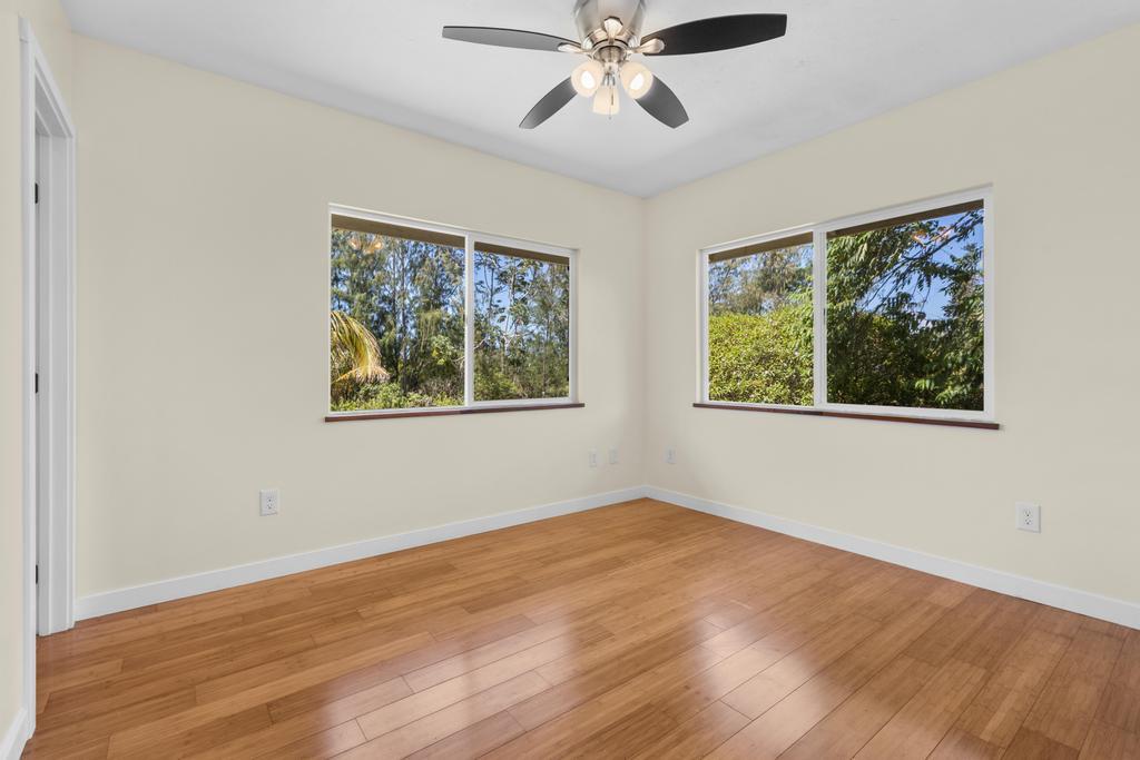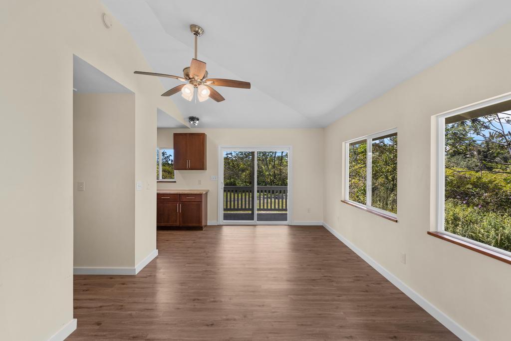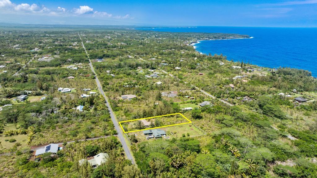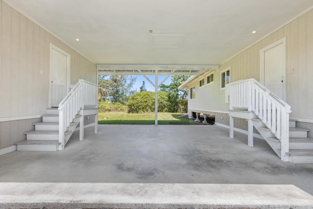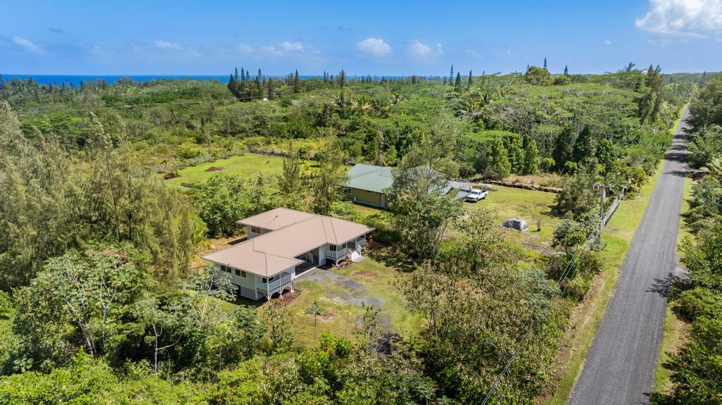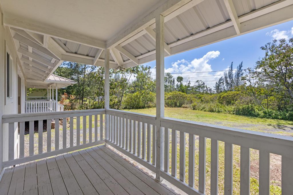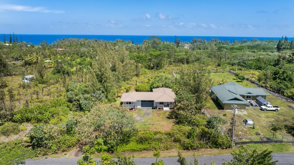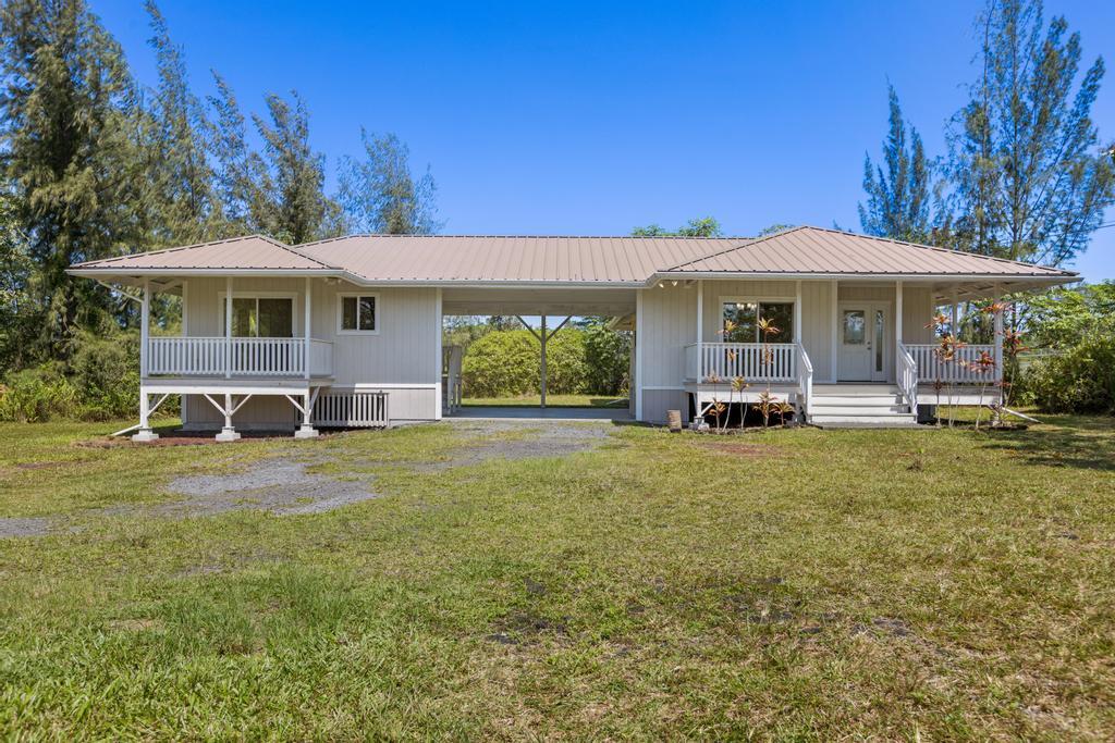 Escape to your own private retreat at 15-1889 3rd Avenue, located in one of the most desirable areas of Hawaiian Paradise Park, just blocks from the ocean! This beautifully designed 4-bedroom, 3-bathroom home on a sprawling 1-acre lot offers a comfortable blend of thoughtful craftsmanship and island living. The main home features an inviting open layout with vaulted ceilings, bamboo hardwood floors, and oversized tile in the bathrooms. The kitchen, designed for both style and function, recessed lighting, and an open flow to the dining and living areas. Custom details abound, including hardwood or granite sills on every window and soft-close cabinets and drawers throughout. The bathrooms are beautifully appointed with intricate tile work and built-in detail. A spacious covered front lanai welcomes you at the entry, while the large carport serves as a versatile living and utility space with washer/dryer hookups and extra cabinetry. On the opposite side of the carport, you’ll find Casita with a kitchenette, full bathroom, custom tile work, vinyl flooring, and a slider leading to a second covered lanai. This home features private well water, an on-demand gas water heater, and Mauna Kea views. Surrounded by nature, you can enjoy the soothing sounds of the ocean while still being near local amenities and outdoor activities. Don’t miss this exceptional opportunity!