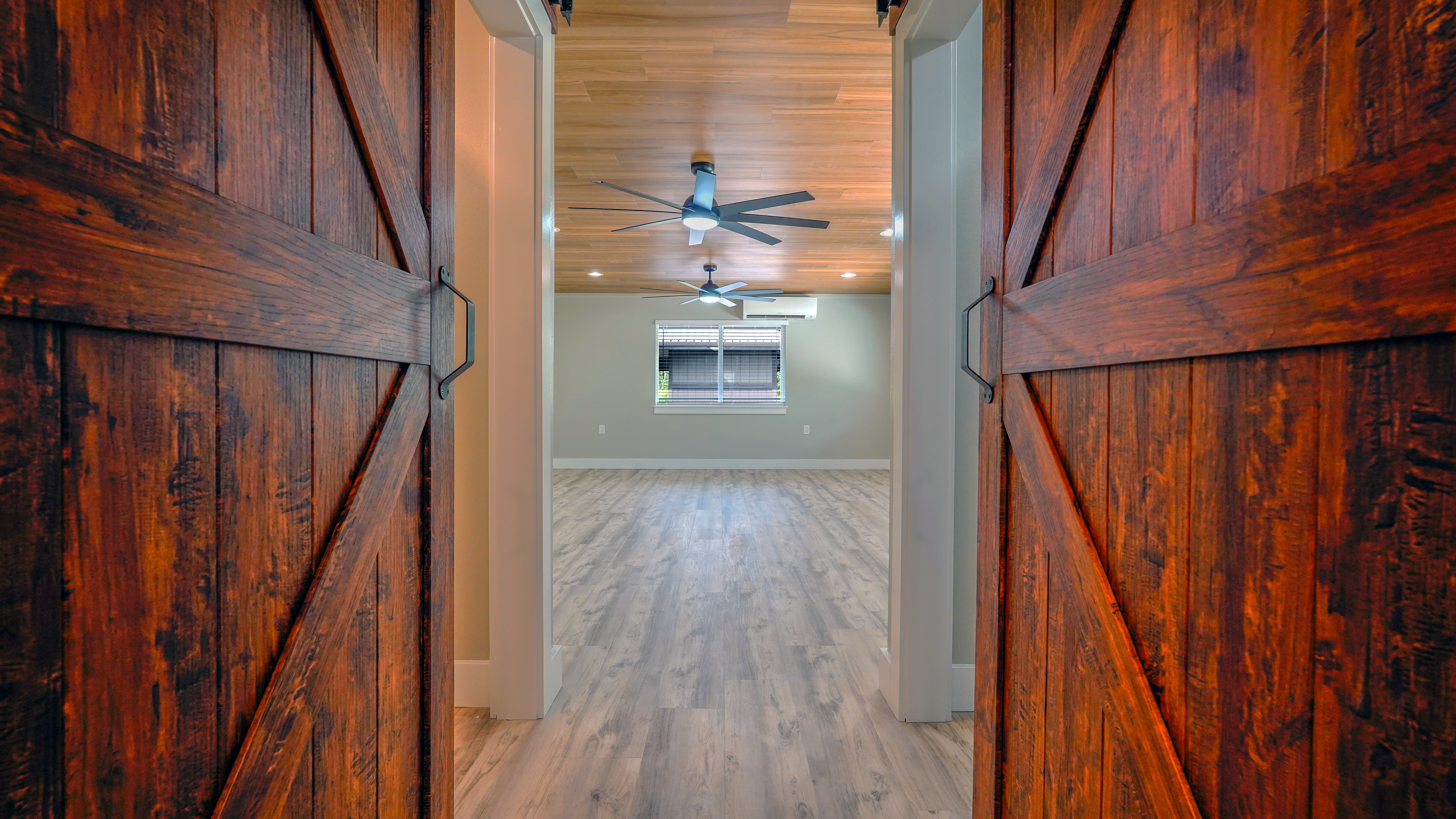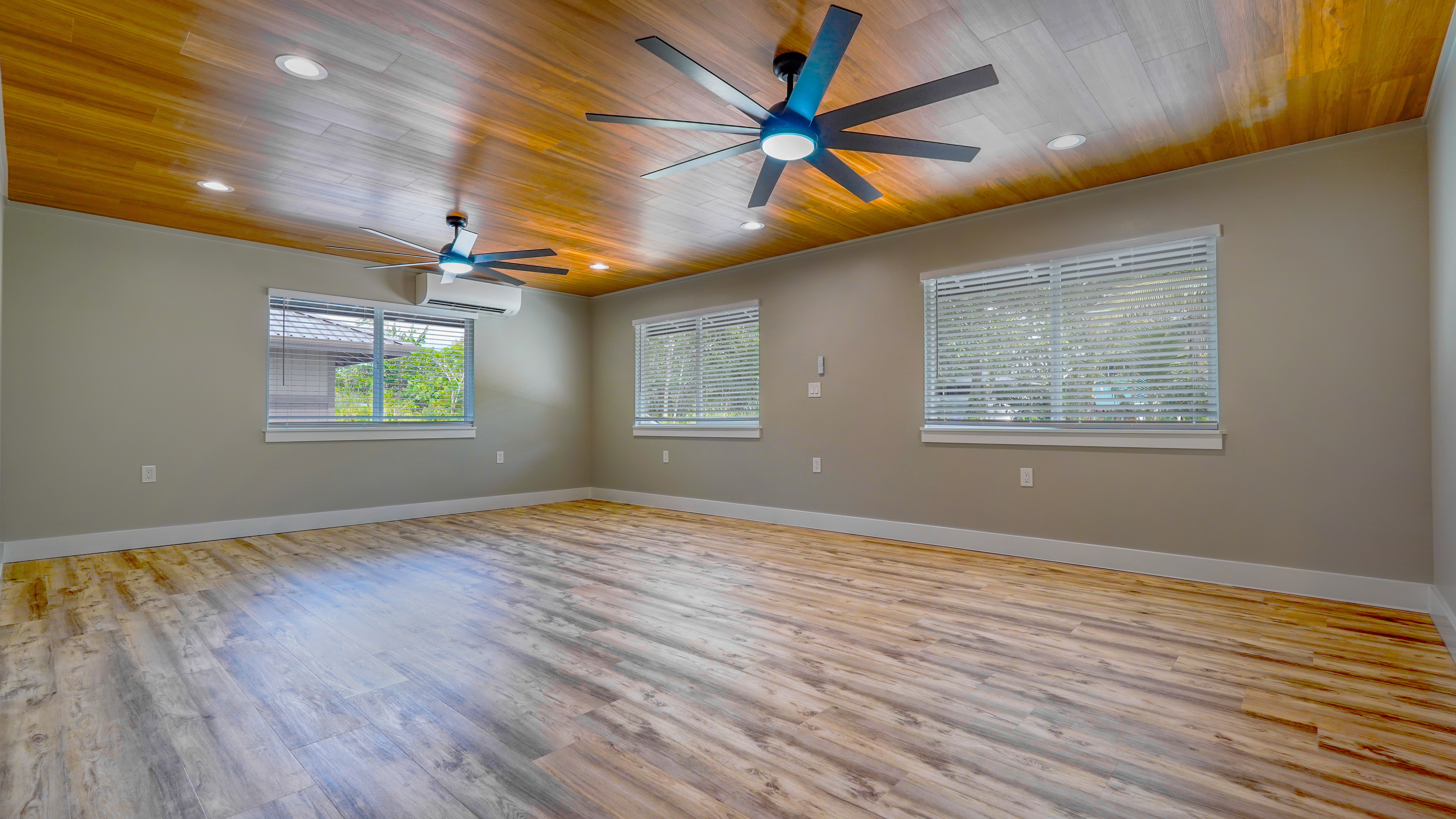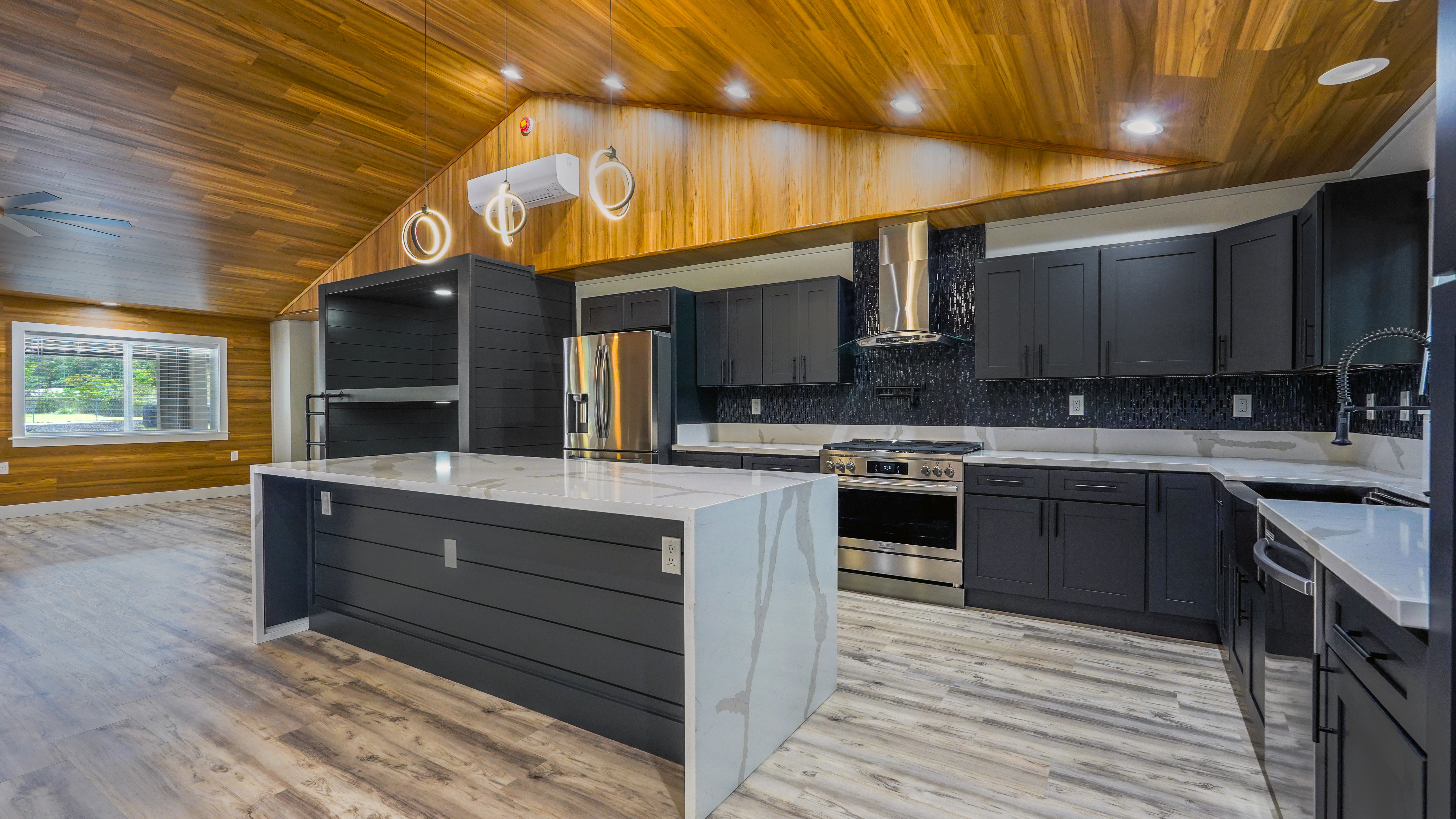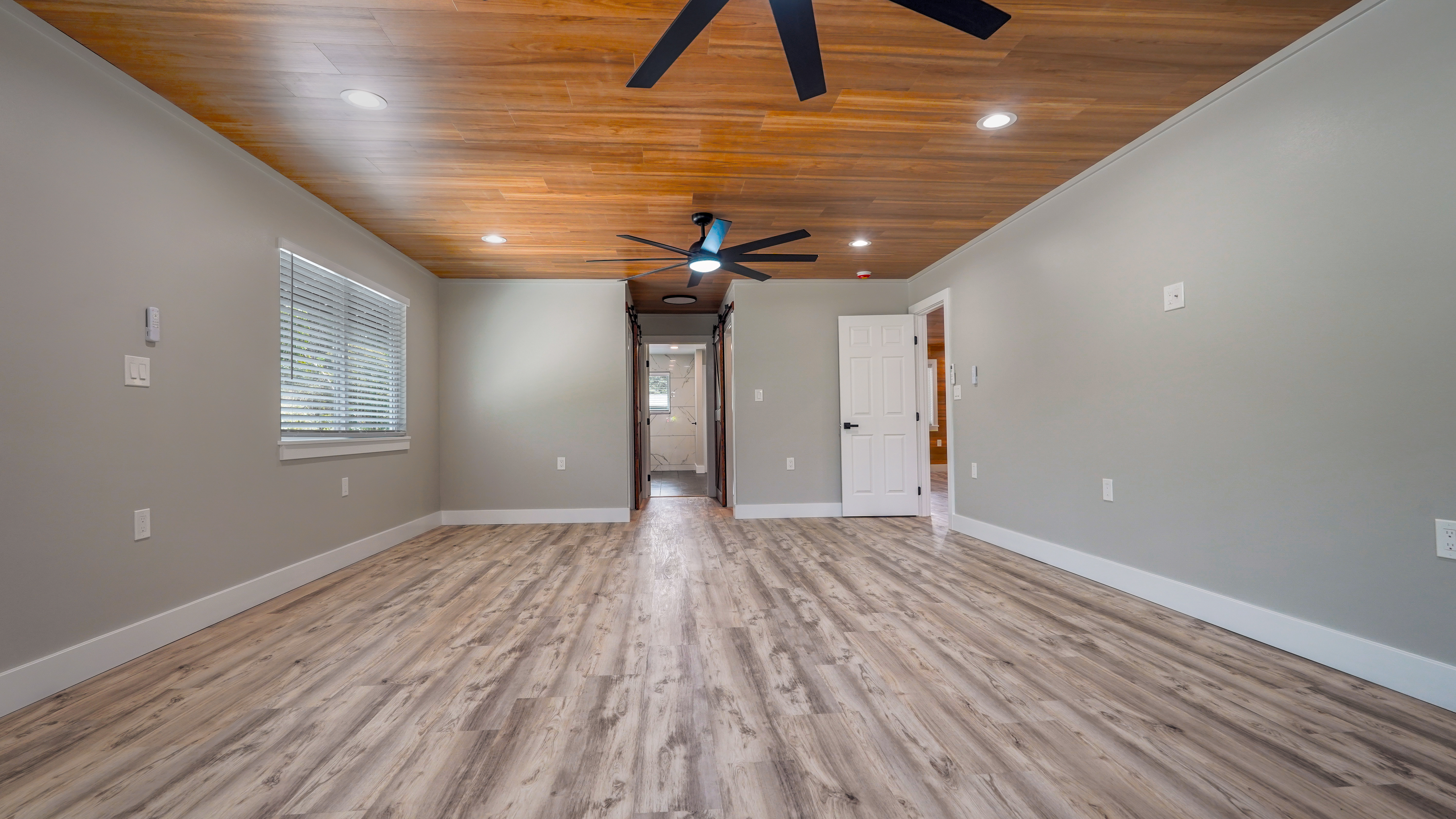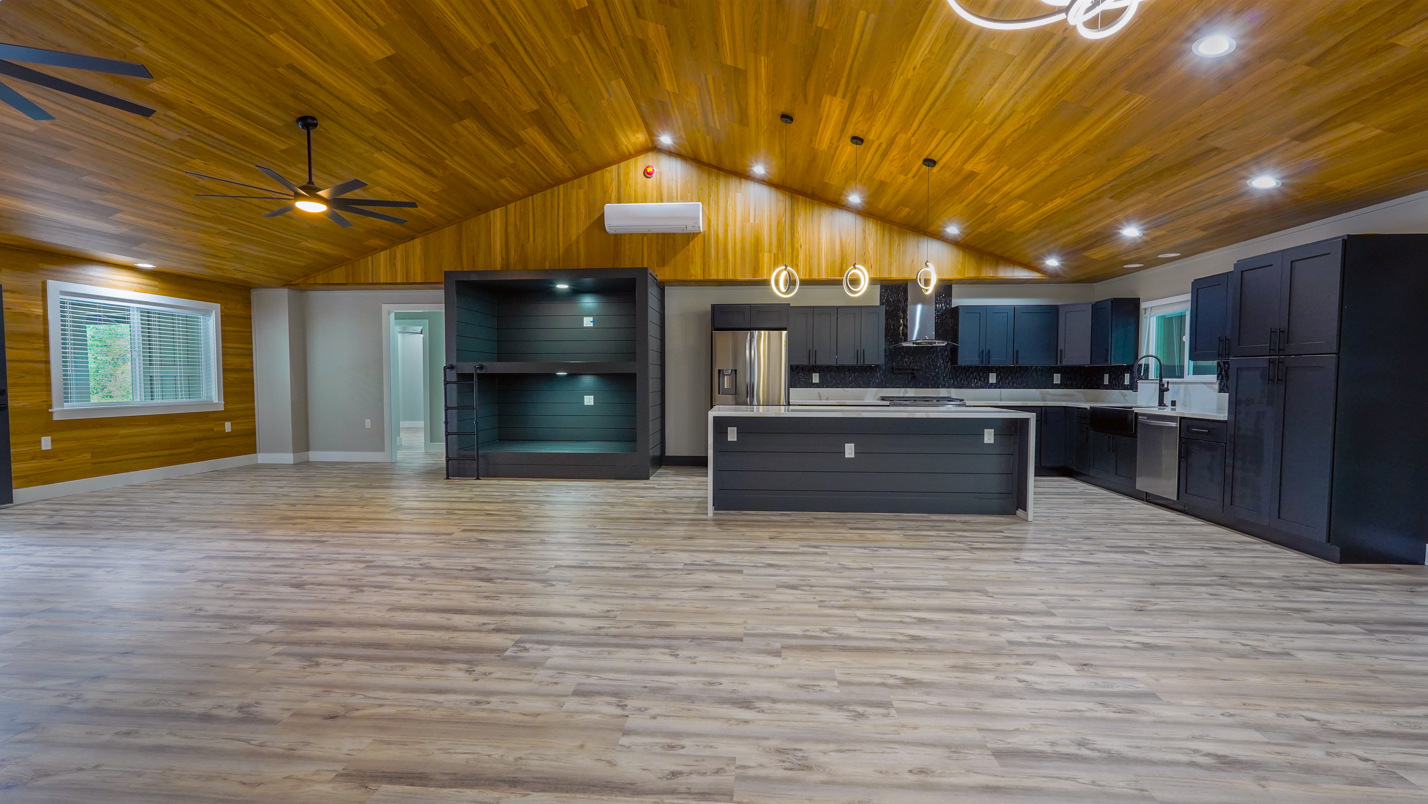 Welcome to this incredibly stunning 4 bedroom, 4 bath estate featuring just under 3,000 sq. ft. of interior living space and a total building area of 4,723 sq. ft., perfectly situated on a full acre with massive concrete driveway and impressive rock wall frontage. Designed with both comfort and style in mind, this home features soaring vaulted ceilings and a desirable split floor plan for privacy and functionality. The spacious primary suite is a true retreat, complete with his and hers closets accented by custom barn doors, dual vanities, a floor-to-ceiling tiled jetted Jacuzzi tub, and oversized walk-in tiled shower. The Heart of the Home (total vibe) showcases stainless steel appliances, a thoughtfully designed accent wall with mounted flat-screen TV & built-in electric fireplace, plus custom built-in bunks - perfect for cozy movie nights and creating unforgettable family memories. Split AC units provide comfort year round. Outdoor and additional features include a detached separate carport with full bath and abundant storage space. The carport spans over 1,000 sq. ft., extensive parking space along with additional space for guest, boats, or recreational vehicles. Set on a fully usable acre with expansive parking and quality finishes throughout, this exceptional property blends luxury, functionality, and lifestyle in one remarkable package. This one? She's not basic. She's BOLD.