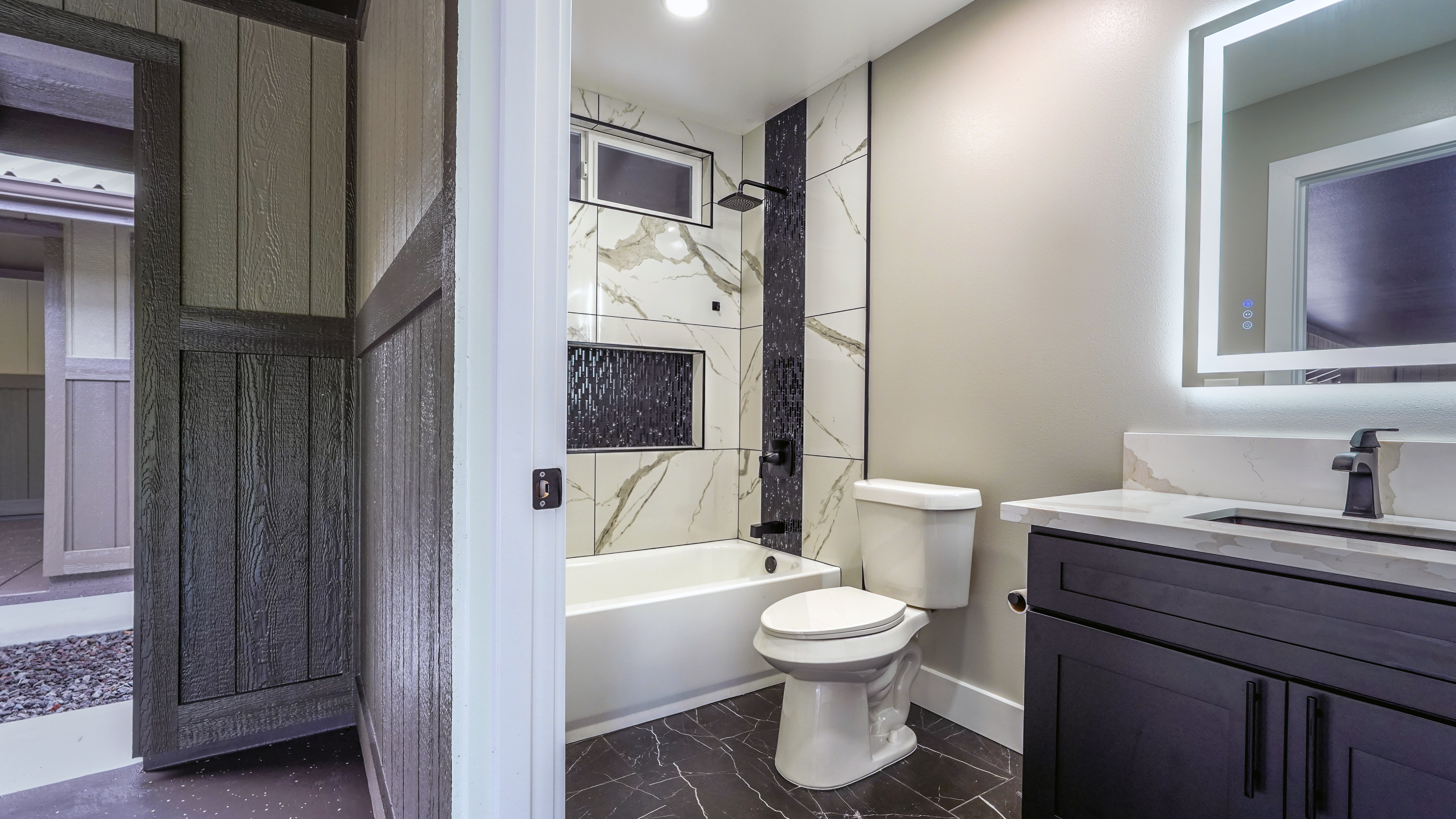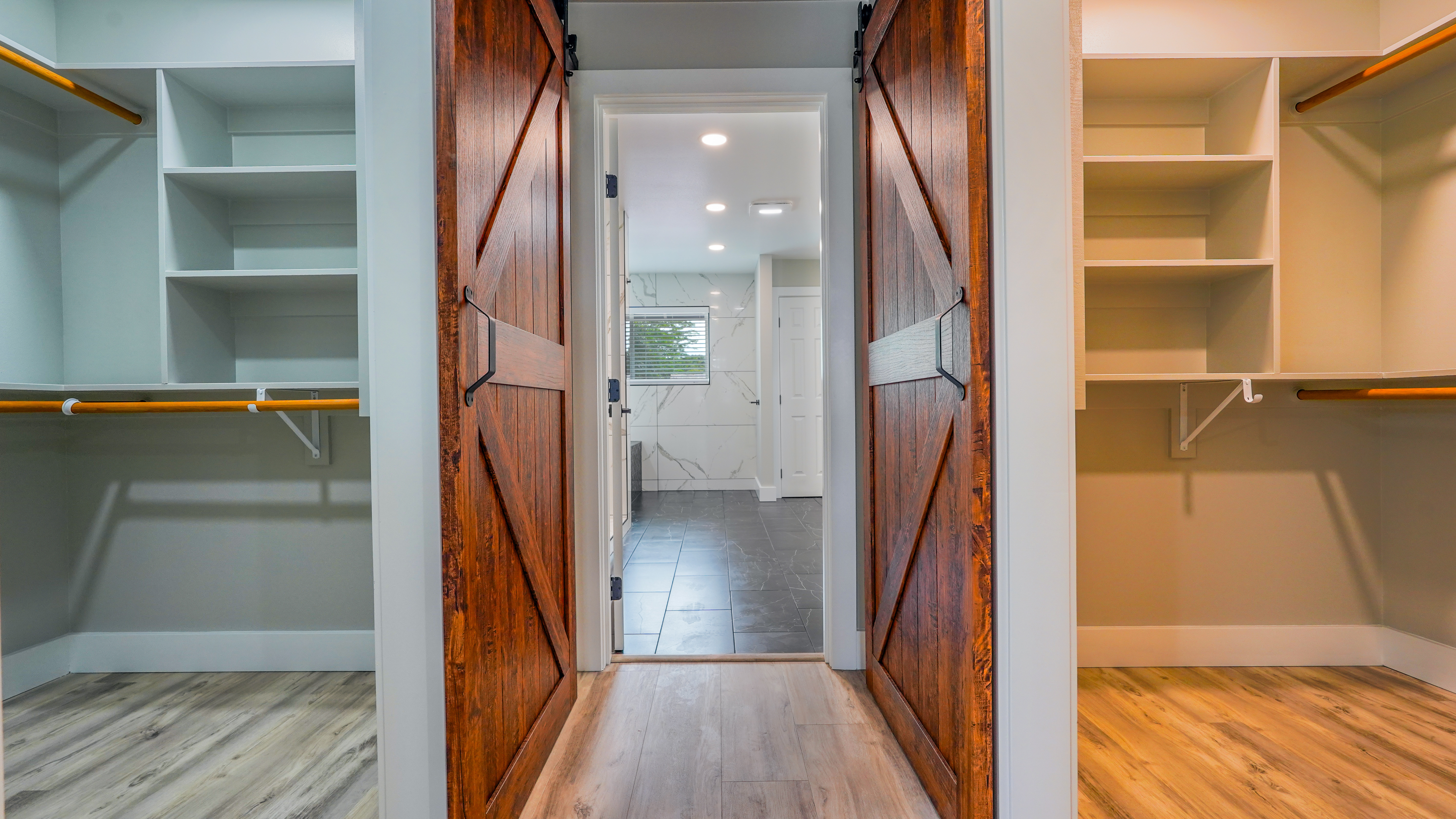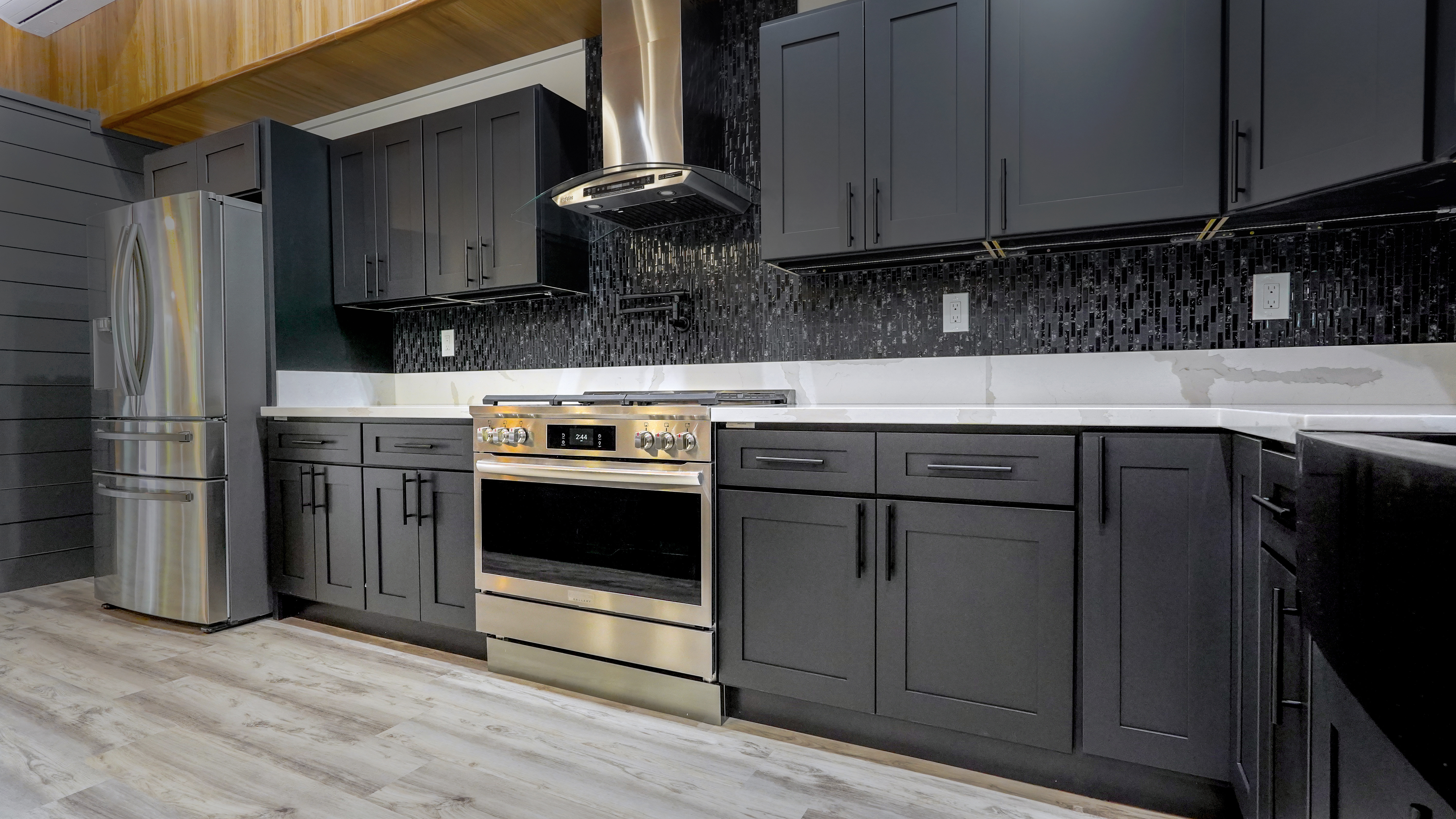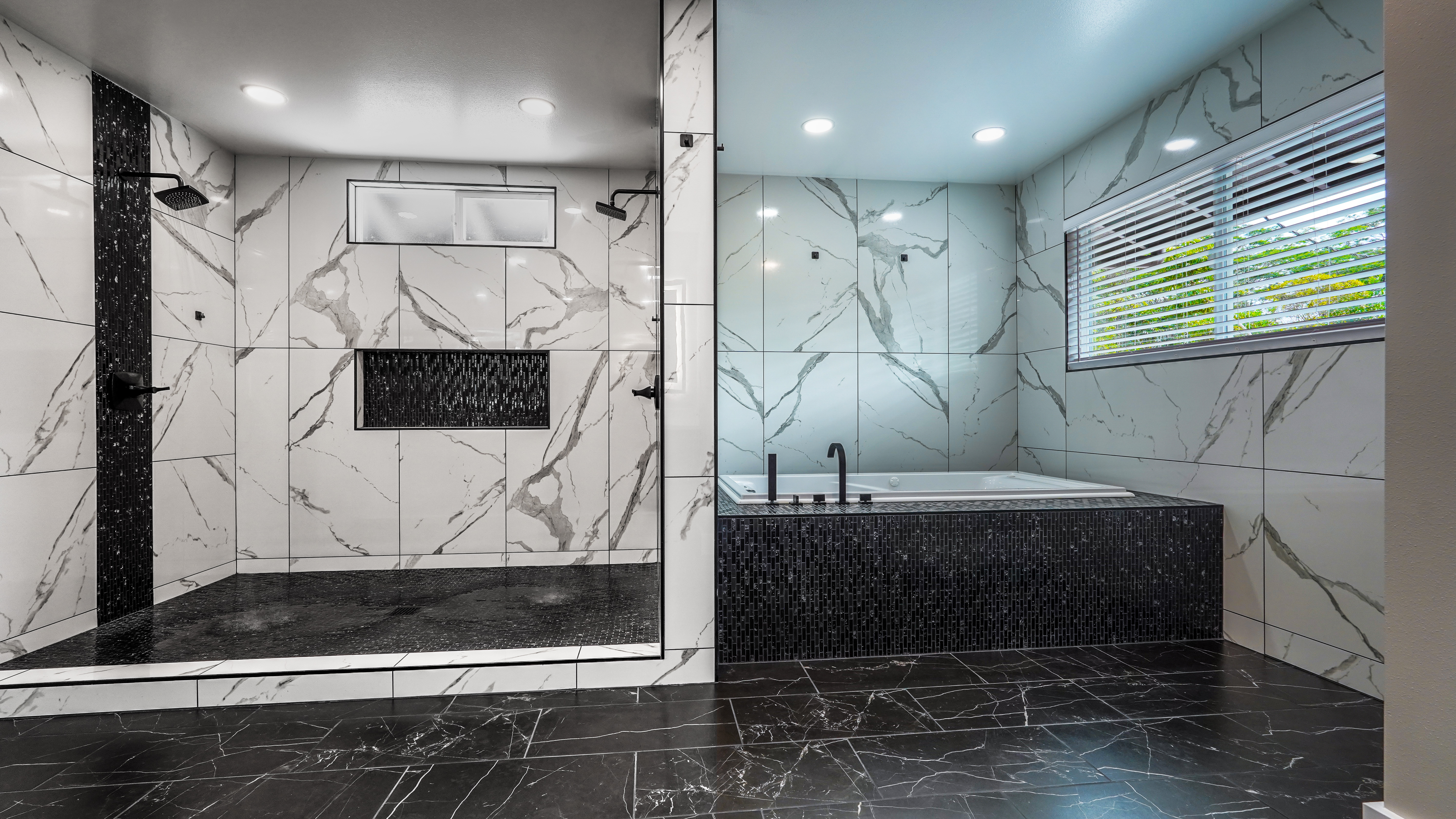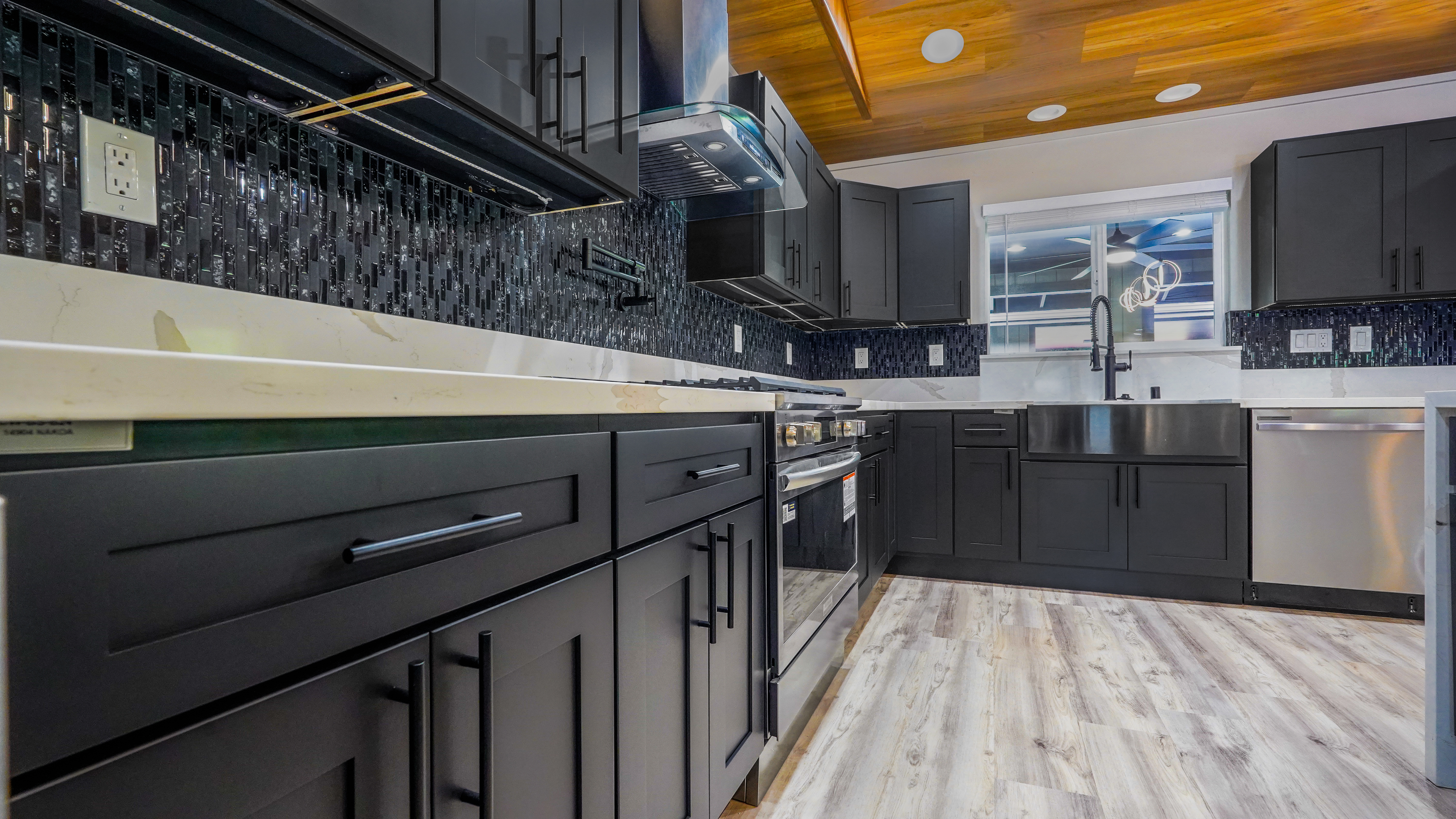 Welcome to this incredibly stunning 4 bedroom, 4 bath estate featuring just under 3,000 sq. ft. of interior living space and a total building area of 4,723 sq. ft., perfectly situated on a full acre with massive concrete driveway and impressive rock wall frontage. Designed with both comfort and style in mind, this home features soaring vaulted ceilings and a desirable split floor plan for privacy and functionality. The spacious primary suite is a true retreat, complete with his and hers closets accented by custom barn doors, dual vanities, a floor-to-ceiling tiled jetted Jacuzzi tub, and oversized walk-in tiled shower. The Heart of the Home (total vibe) showcases stainless steel appliances, a thoughtfully designed accent wall with mounted flat-screen TV & built-in electric fireplace, plus custom built-in bunks - perfect for cozy movie nights and creating unforgettable family memories. Split AC units provide comfort year round. Outdoor and additional features include a detached separate carport with full bath and abundant storage space. The carport spans over 1,000 sq. ft., extensive parking space along with additional space for guest, boats, or recreational vehicles. Set on a fully usable acre with expansive parking and quality finishes throughout, this exceptional property blends luxury, functionality, and lifestyle in one remarkable package. This one? She's not basic. She's BOLD.