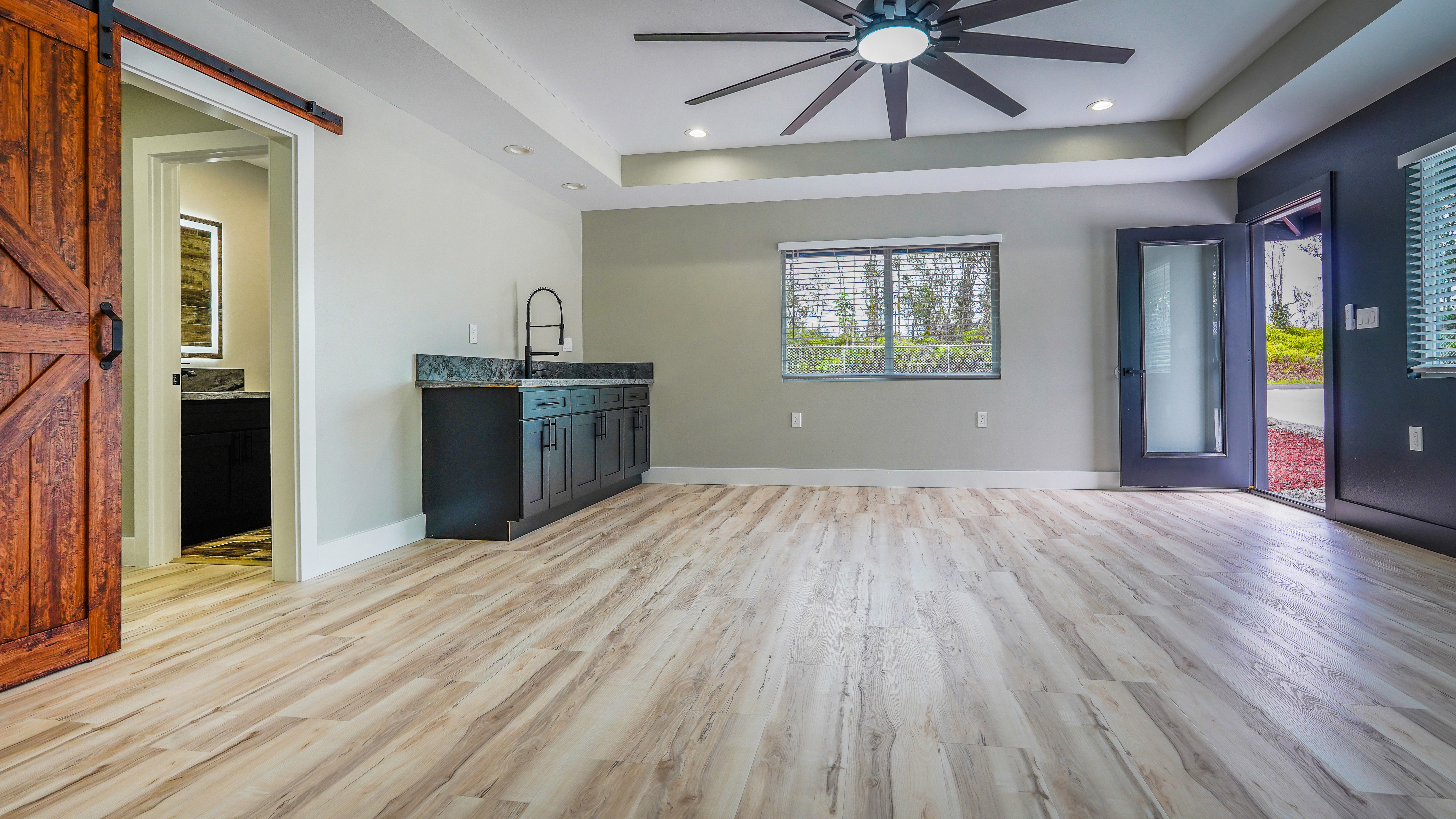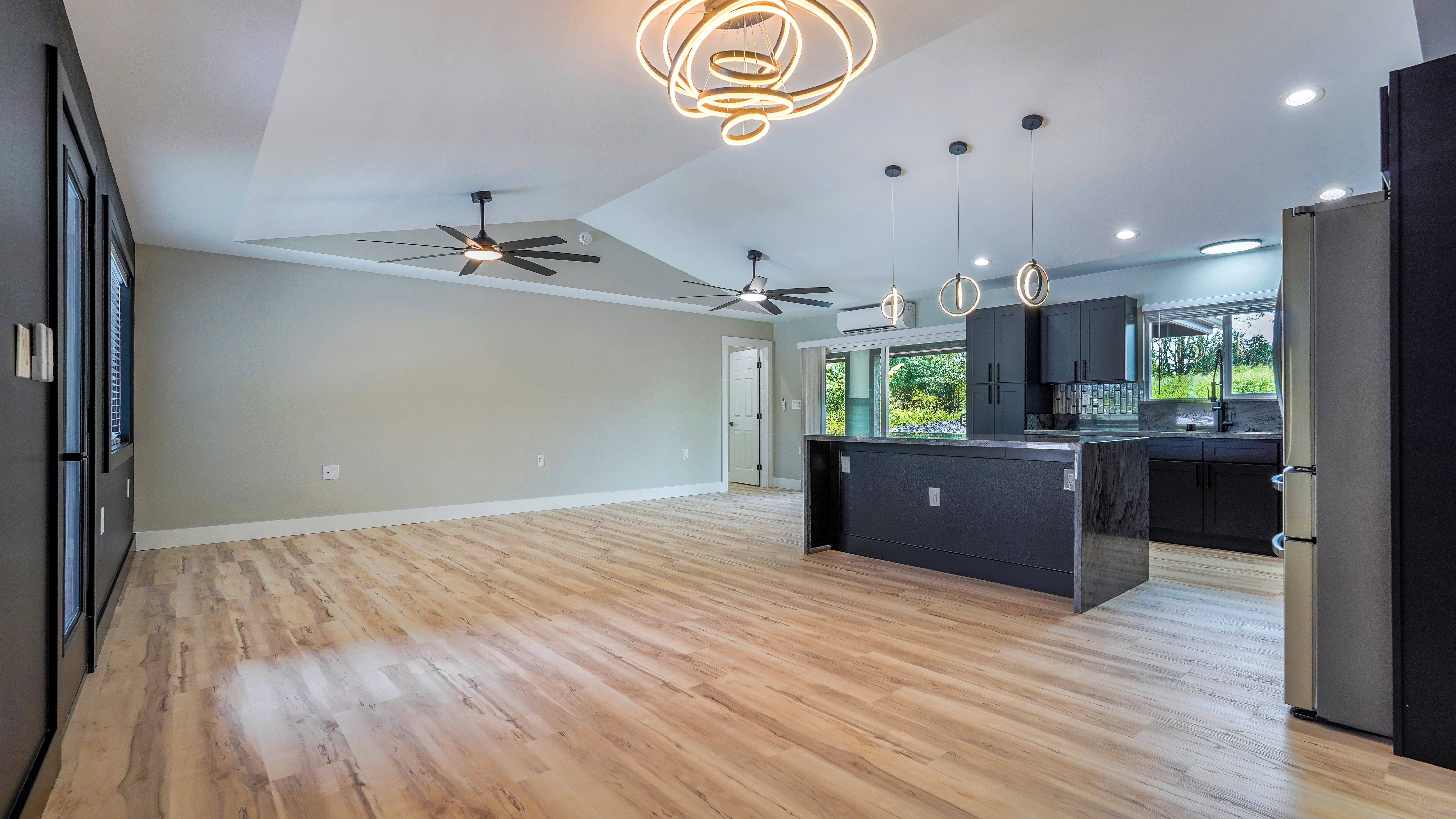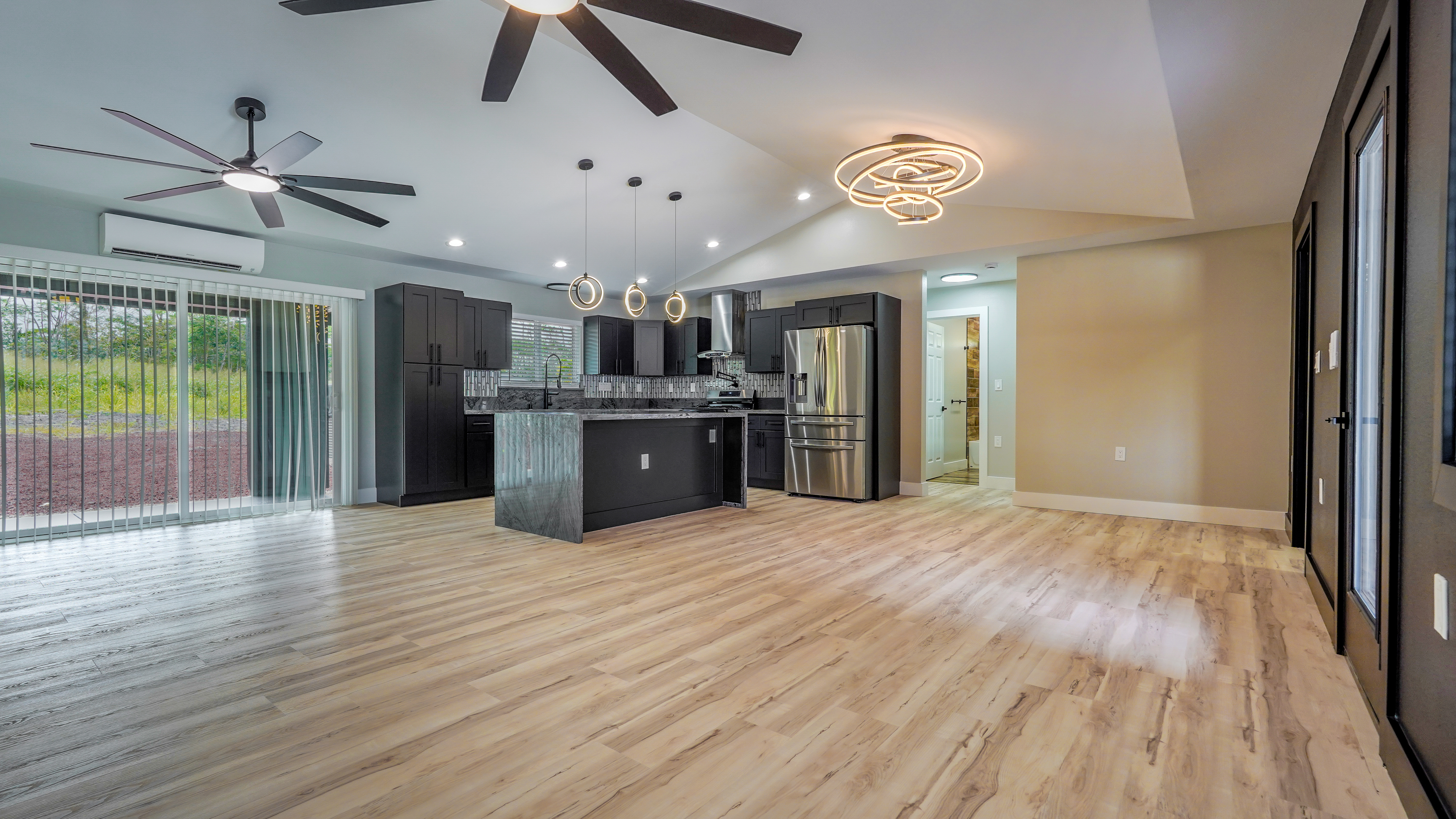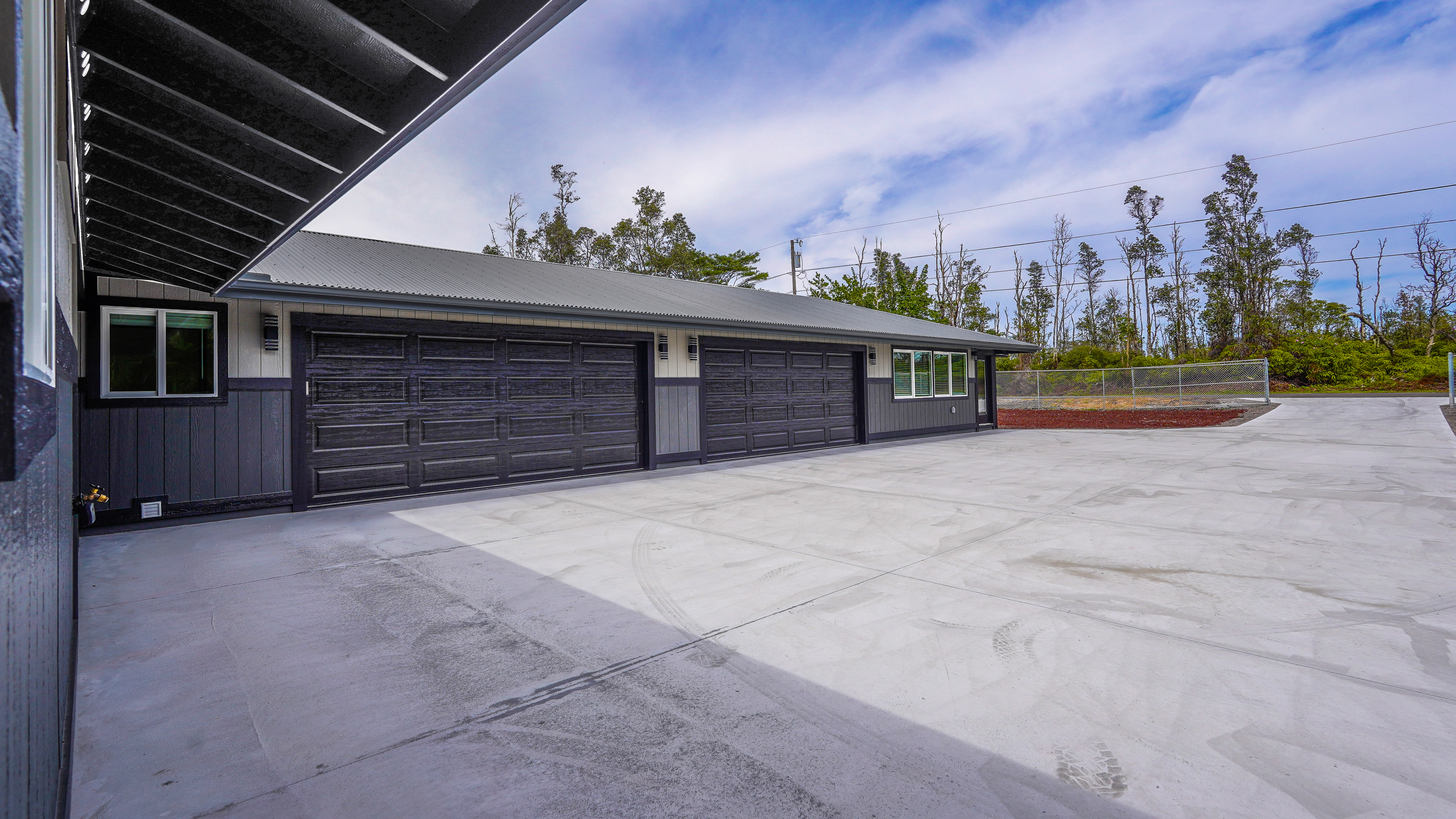 Privacy, space, and flexibility all wrapped into one incredible property just minutes from the Ocean. Situated on a full 1 acre, this 4 bedroom, 3.5 bath home features a highly desirable split floor plan designed for comfort and versatility. A massive four-car garage separates the main home from the en-suite. Inside you'll find stainless steel appliances, custom blinds throughout, and spacious bedrooms. The primary suite is a true retreat, complete with double sinks, and an oversized custom tiled walk-in shower. Wait till you see the Kitchen.....Bold. Moody. Classy. Deep black tones, strong lines, waterfall island, and a design that makes a statement the second you walk in. And that's just a few of the wonderful things about this Home. Step outside to enjoy the wide-open acre with plenty of room for gardens, outdoor living, or future possibilities. The front boundary is fenced with a 5-foot chain-link fence and gated entry for security and ease. Located on a real nice street, and just seven blocks from the Ocean, you'll enjoy refreshing trade winds, the sound of the surf, ans the space that makes island living so special.