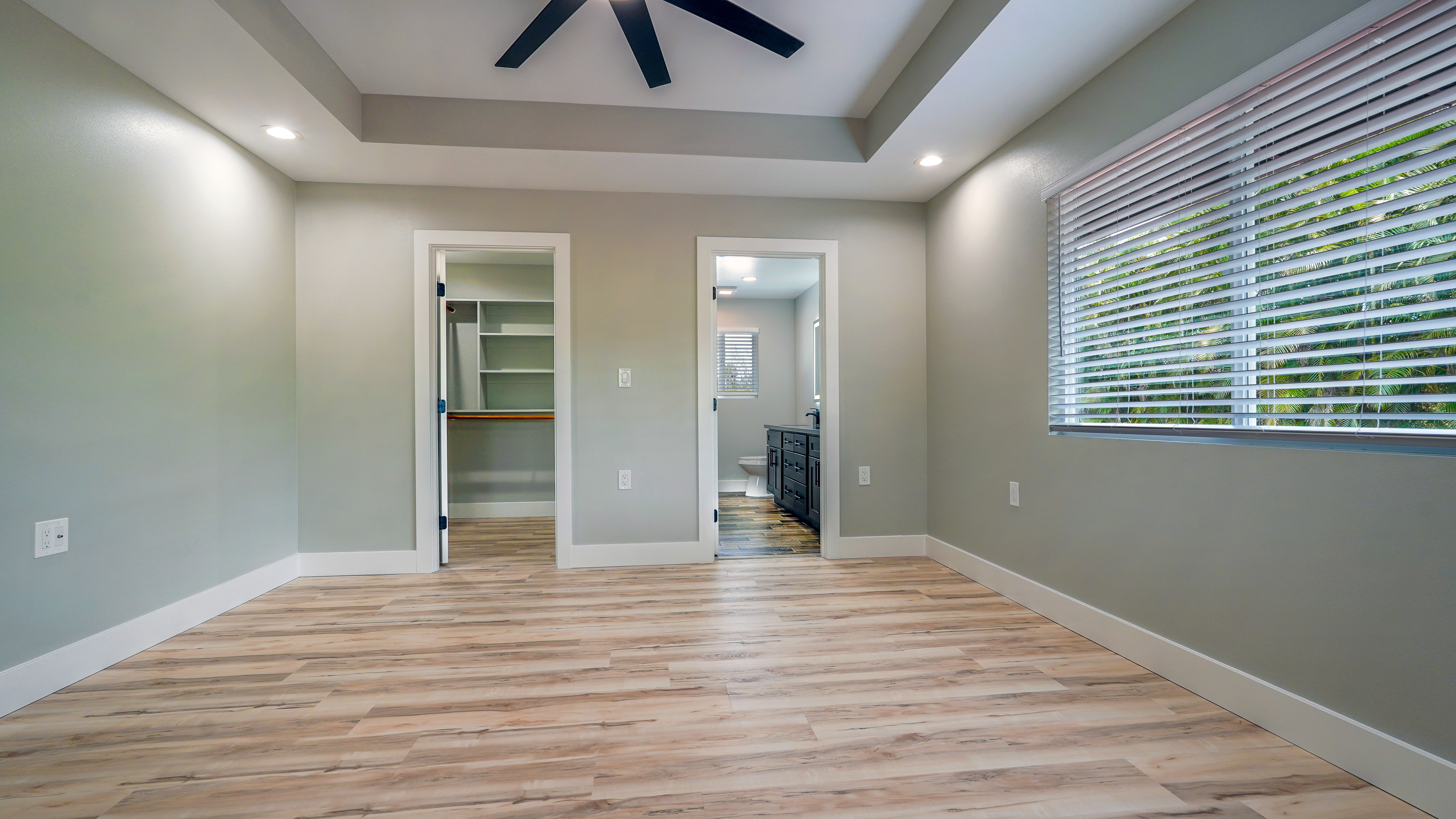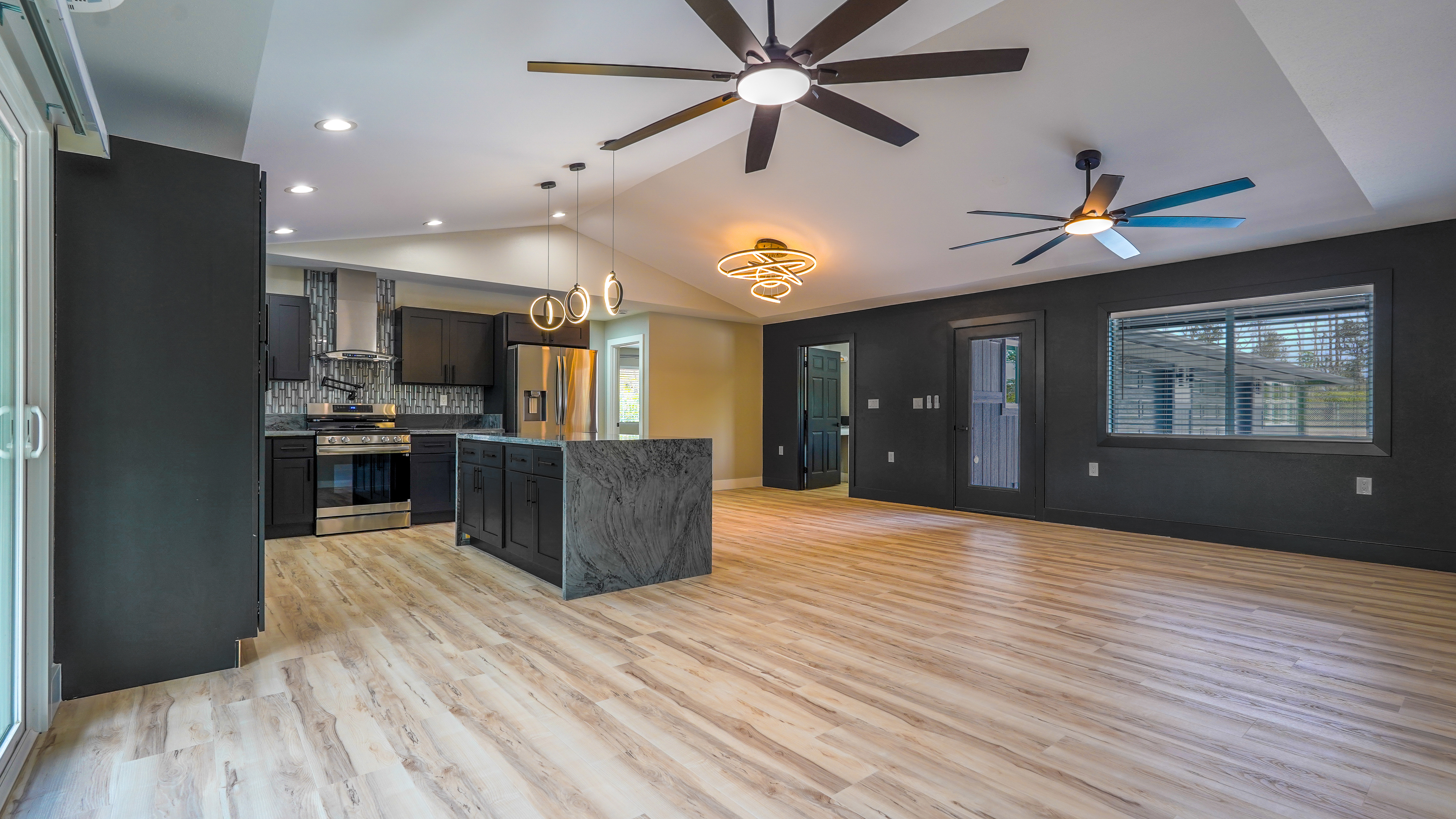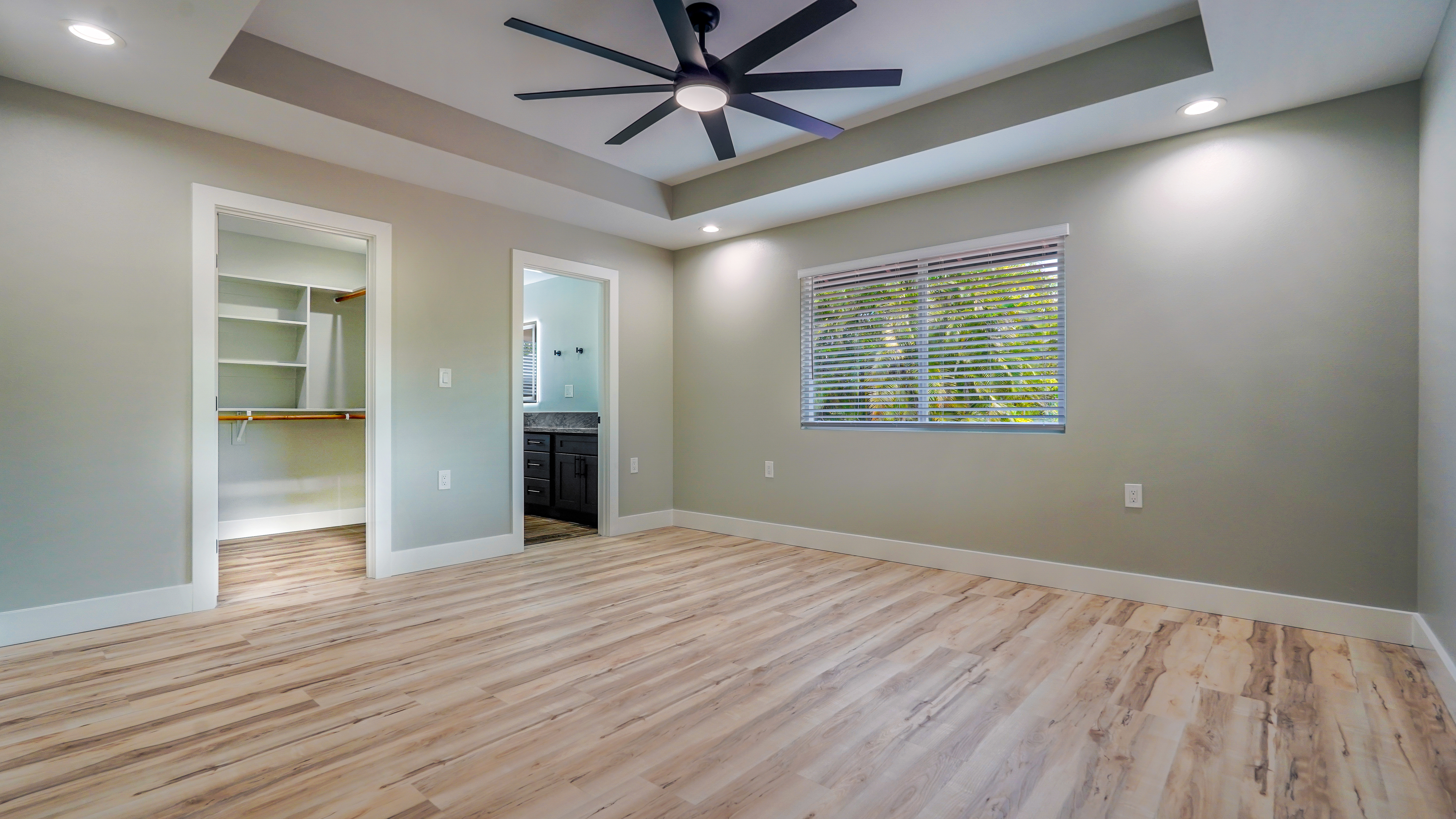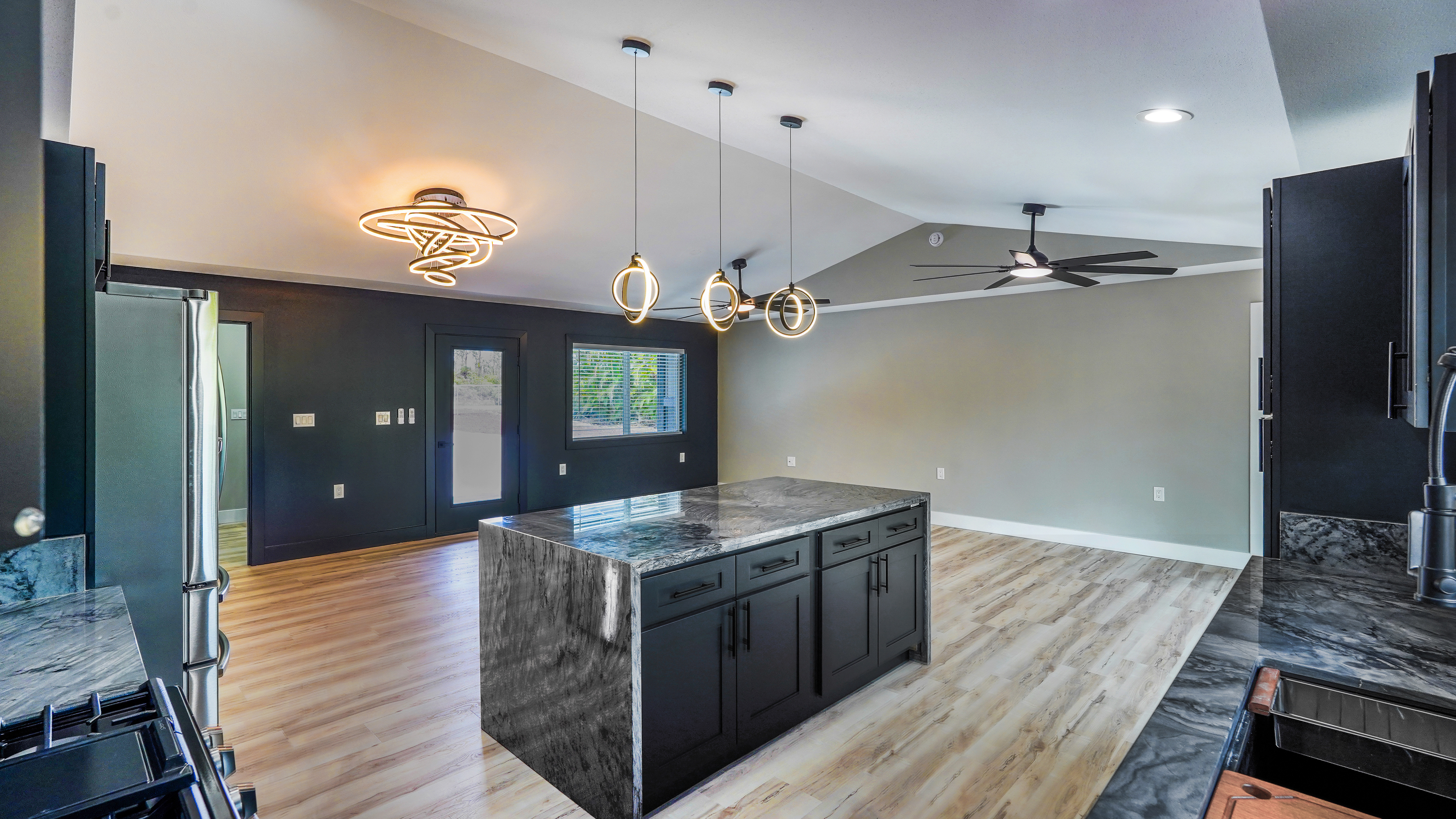 Privacy, space, and flexibility all wrapped into one incredible property just minutes from the Ocean. Situated on a full 1 acre, this 4 bedroom, 3.5 bath home features a highly desirable split floor plan designed for comfort and versatility. A massive four-car garage separates the main home from the en-suite. Inside you'll find stainless steel appliances, custom blinds throughout, and spacious bedrooms. The primary suite is a true retreat, complete with double sinks, and an oversized custom tiled walk-in shower. Wait till you see the Kitchen.....Bold. Moody. Classy. Deep black tones, strong lines, waterfall island, and a design that makes a statement the second you walk in. And that's just a few of the wonderful things about this Home. Step outside to enjoy the wide-open acre with plenty of room for gardens, outdoor living, or future possibilities. The front boundary is fenced with a 5-foot chain-link fence and gated entry for security and ease. Located on a real nice street, and just seven blocks from the Ocean, you'll enjoy refreshing trade winds, the sound of the surf, ans the space that makes island living so special.