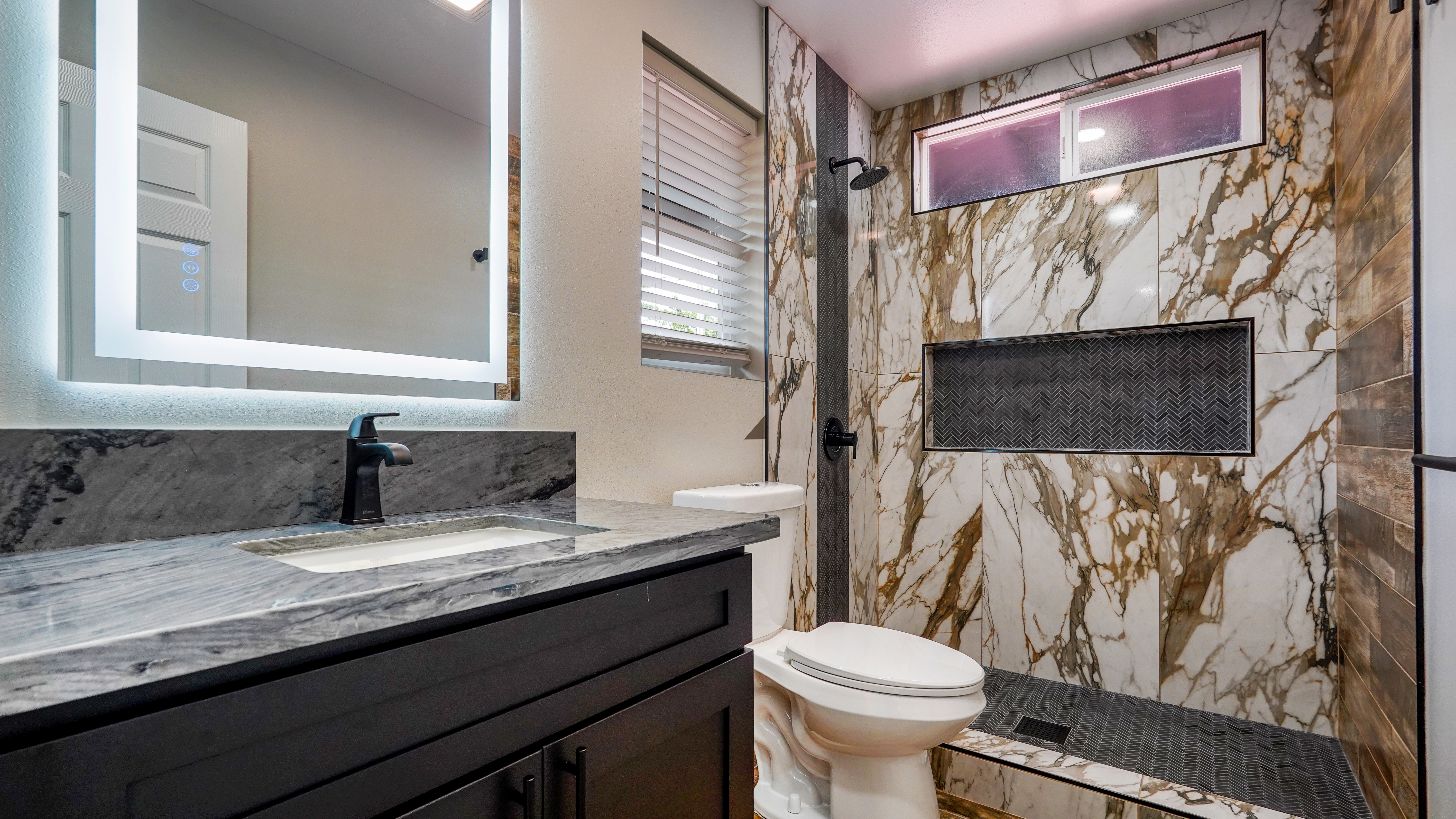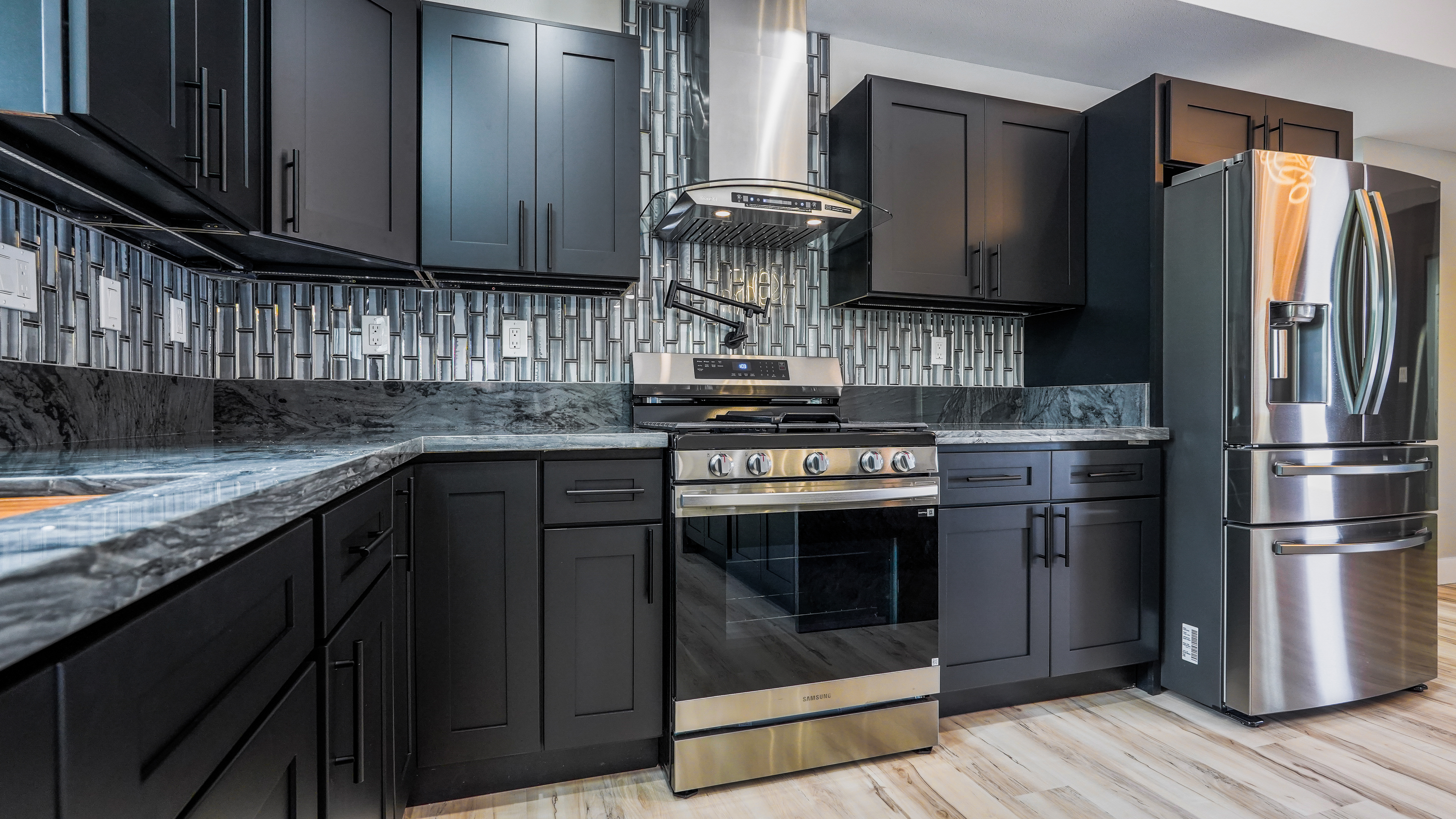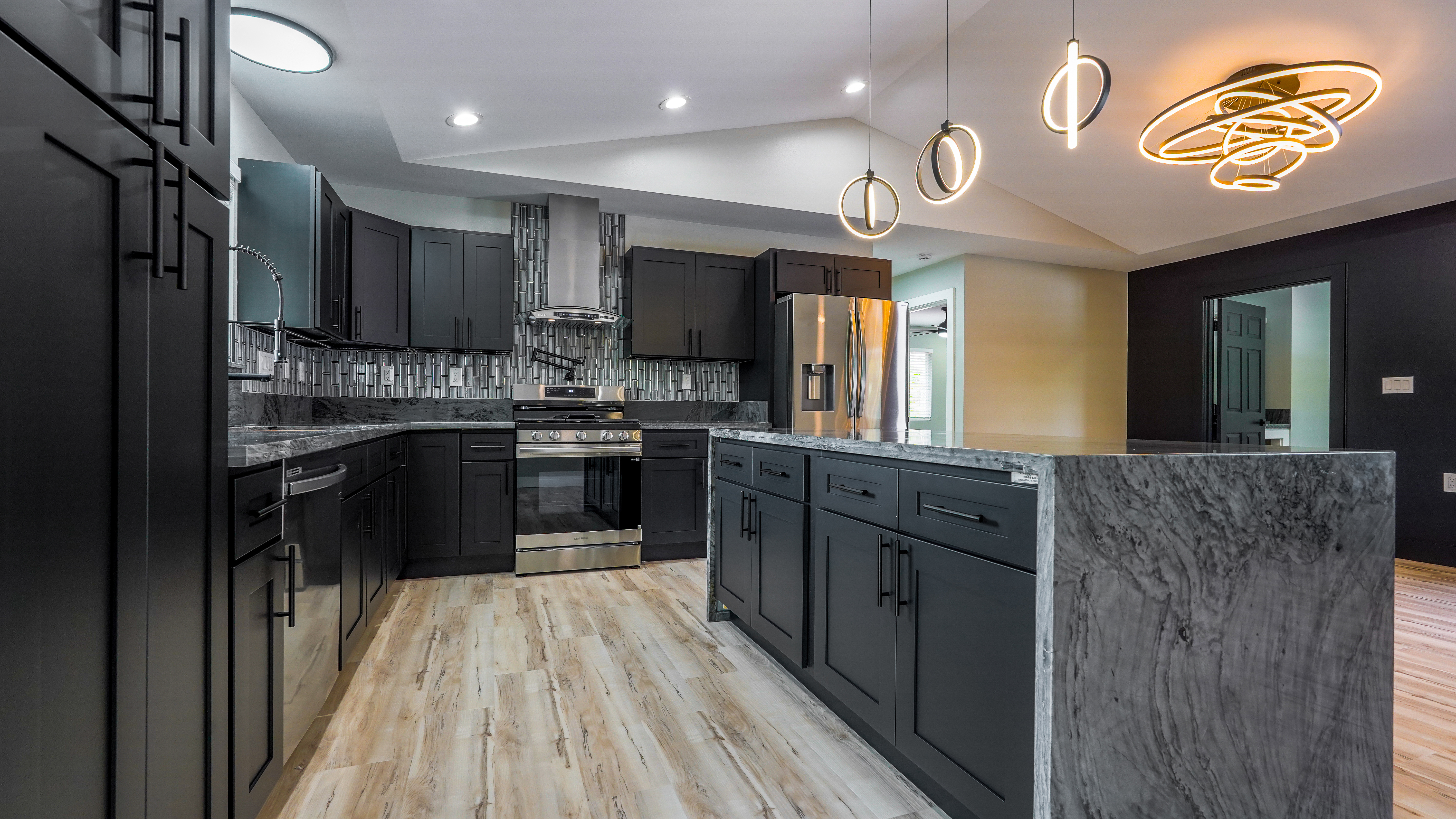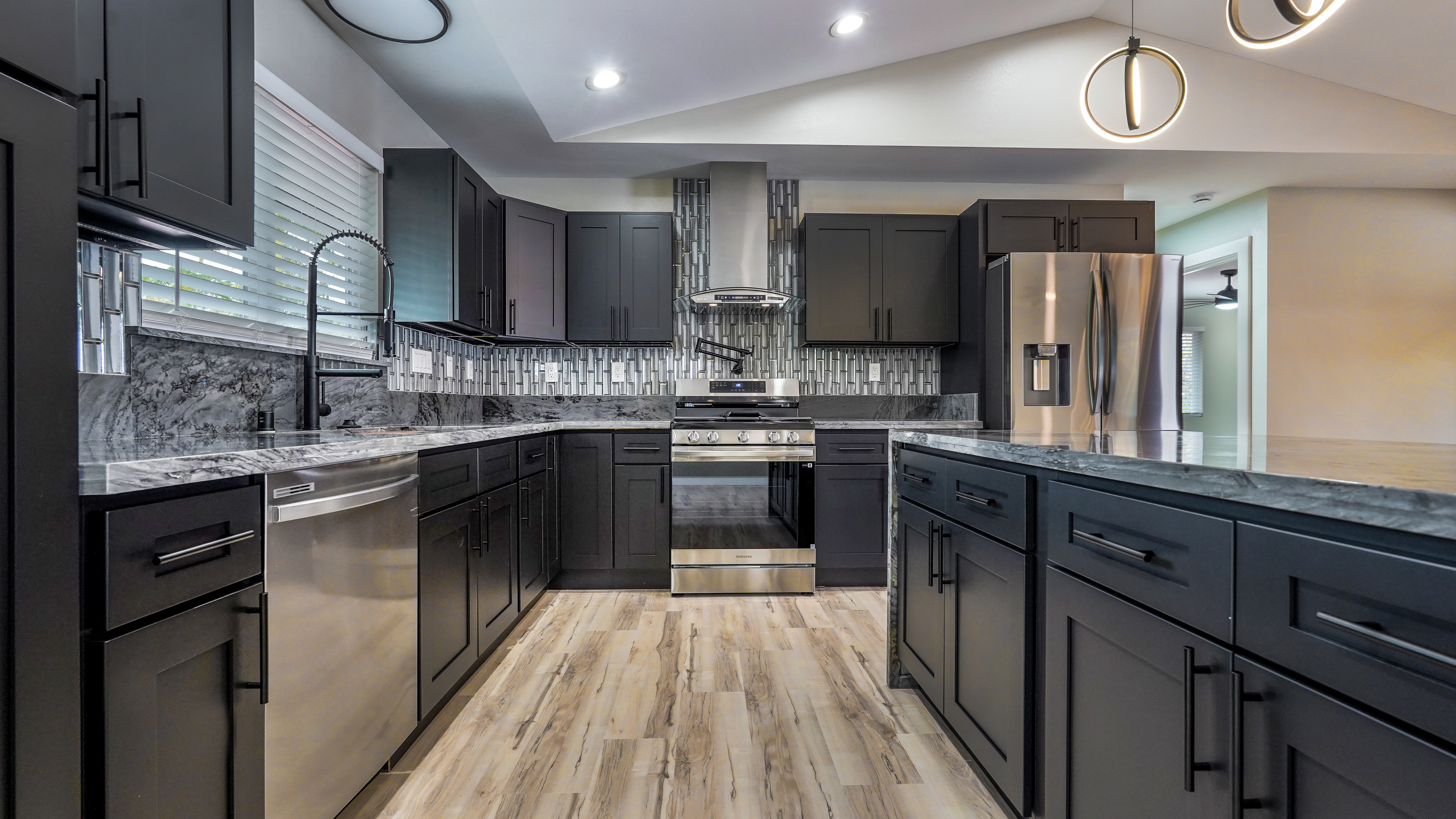 Privacy, space, and flexibility all wrapped into one incredible property just minutes from the Ocean. Situated on a full 1 acre, this 4 bedroom, 3.5 bath home features a highly desirable split floor plan designed for comfort and versatility. A massive four-car garage separates the main home from the en-suite. Inside you'll find stainless steel appliances, custom blinds throughout, and spacious bedrooms. The primary suite is a true retreat, complete with double sinks, and an oversized custom tiled walk-in shower. Wait till you see the Kitchen.....Bold. Moody. Classy. Deep black tones, strong lines, waterfall island, and a design that makes a statement the second you walk in. And that's just a few of the wonderful things about this Home. Step outside to enjoy the wide-open acre with plenty of room for gardens, outdoor living, or future possibilities. The front boundary is fenced with a 5-foot chain-link fence and gated entry for security and ease. Located on a real nice street, and just seven blocks from the Ocean, you'll enjoy refreshing trade winds, the sound of the surf, ans the space that makes island living so special.
