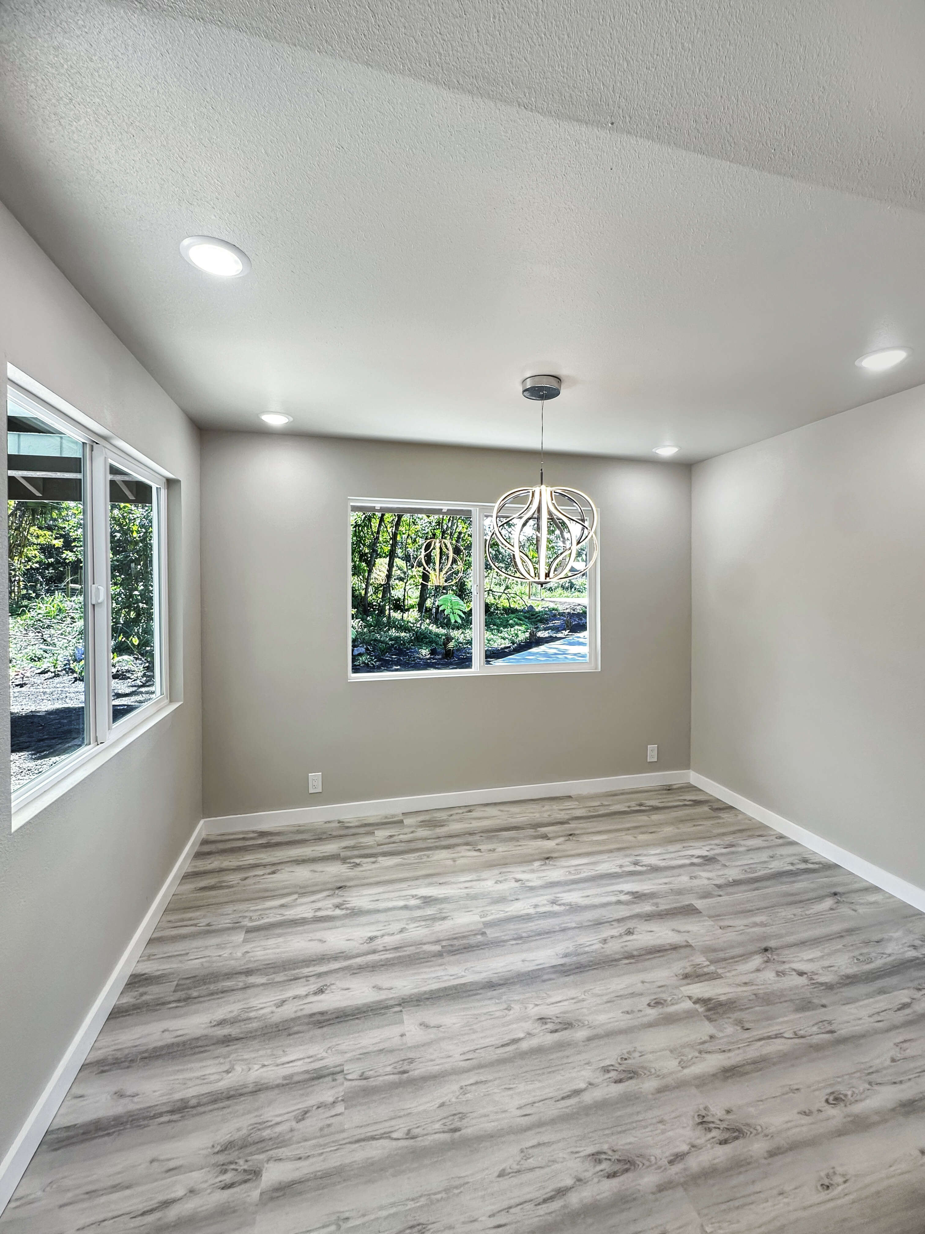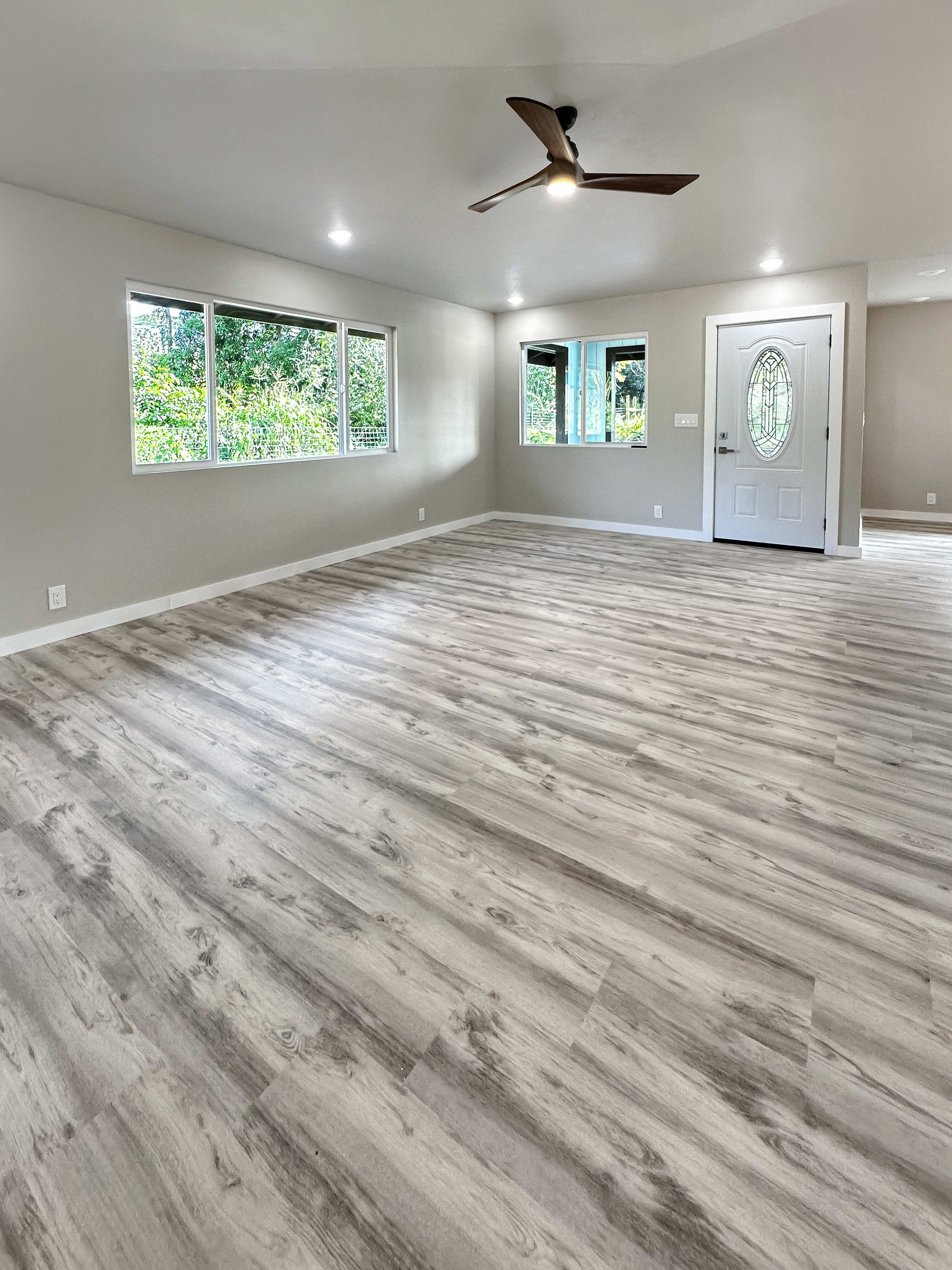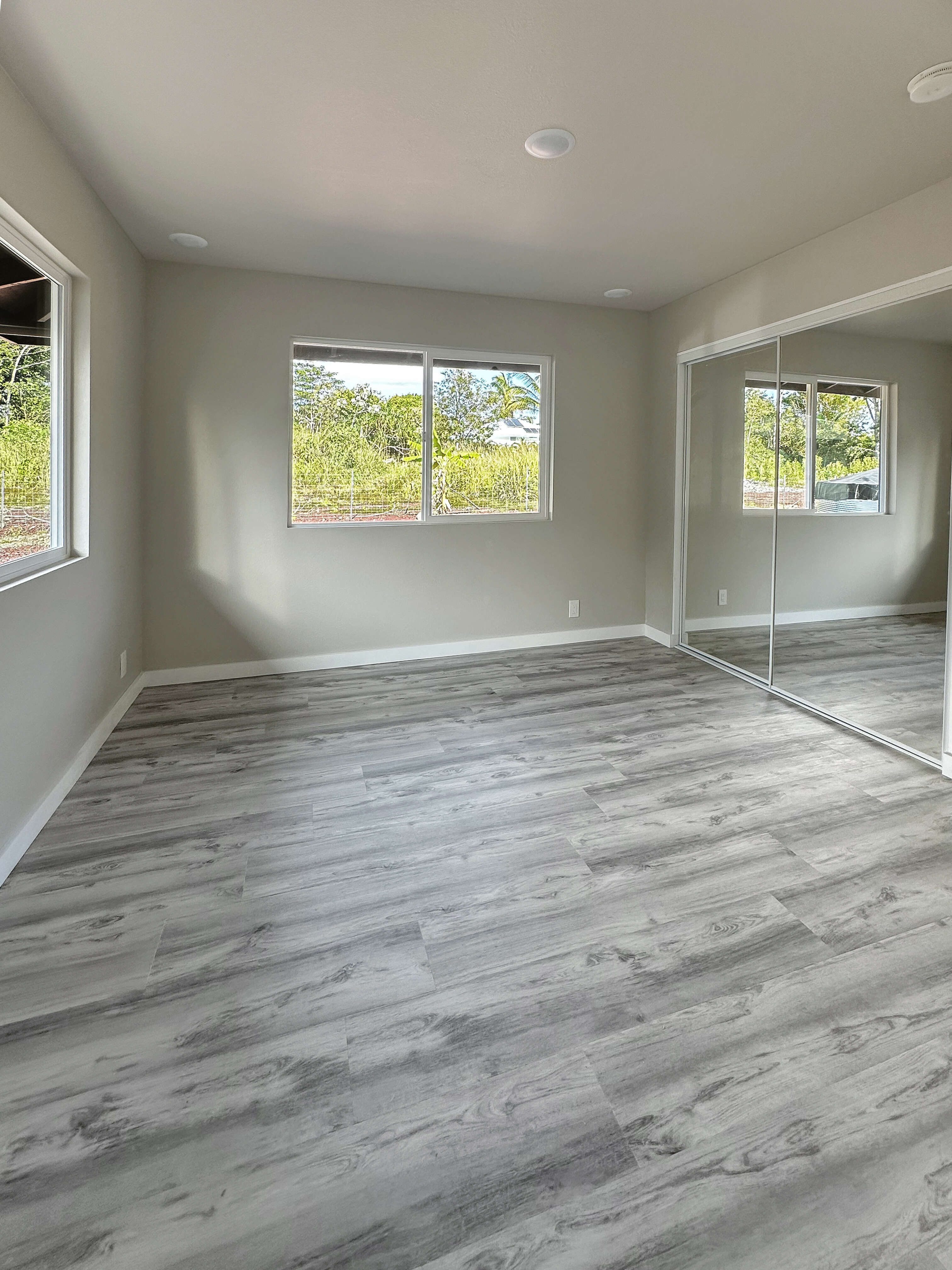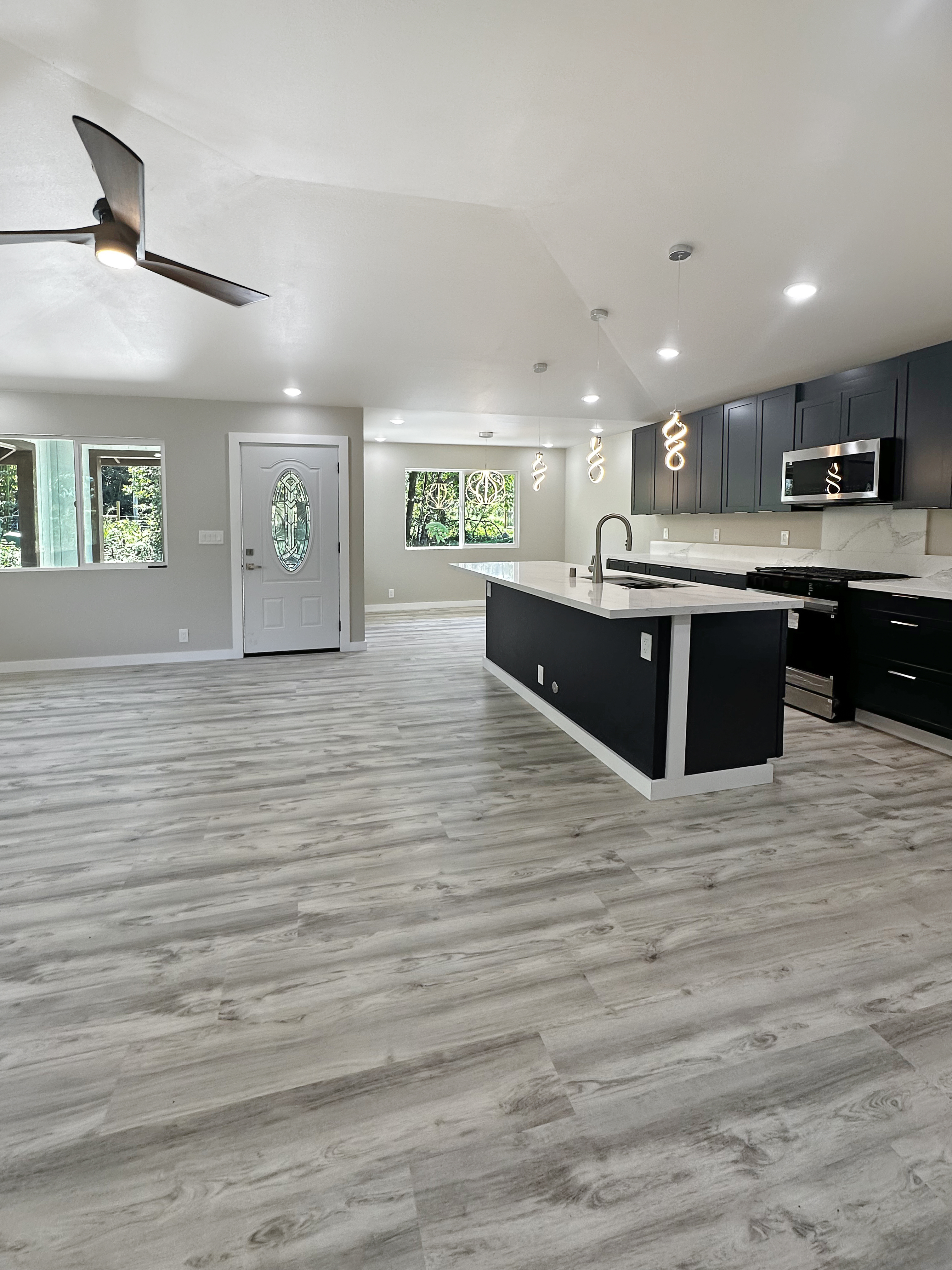 This new home built in the sought-after Hawaiian Paradise Park offers a practical and versatile layout on a peaceful lot. The main residence includes 3 bedrooms and 2 bathrooms, with an open living area that feels spacious and bright thanks to vaulted ceilings and a thoughtful color scheme. The kitchen stands out with ample counter and cabinet space, premium Kraftmaid cabinets (including extra-tall 39” uppers), two large pantries, and modern Samsung and LG stainless steel appliances. Durable Lifeproof vinyl plank flooring runs throughout the main areas for easy upkeep, paired with ceiling fans, sleek fixtures, and a balanced mix of cool surfaces and warm dark cabinetry. A key feature is the fully separate studio, complete with its own entrance, full bath (curbless shower), wet bar, and living space. This setup provides excellent privacy via the connecting enclosed 2-car garage – ideal for guests, multigenerational living, a home office, or potential rental income in this high-demand area. Outside, enjoy a spacious front lanai for relaxing or entertaining, a wide concrete driveway, low-maintenance partial landscaping -including tropical fruit trees (mango, papaya, banana) plus an eco-friendly photovoltaic UV water filtration system. Additional Highlights: - Curbless showers in both the primary suite and studio - Easy-to-maintain vinyl plank flooring - Stainless steel appliances and custom cabinetry - Private studio with separate entrance and wet bar - Tropical fruit trees and sustainable water system - Located in a convenient yet quiet part of Hawaiian Paradise Park, close to beaches, amenities, and everyday needs. -Long, wide concrete driveway - Approximate 1/2 acre fenced and gated in front and back This home combines modern comfort, flexibility, and low-maintenance island living. Information herein deemed reliable but not guaranteed. Buyer and buyer's agent to do their own due diligence on all pertinent facts.