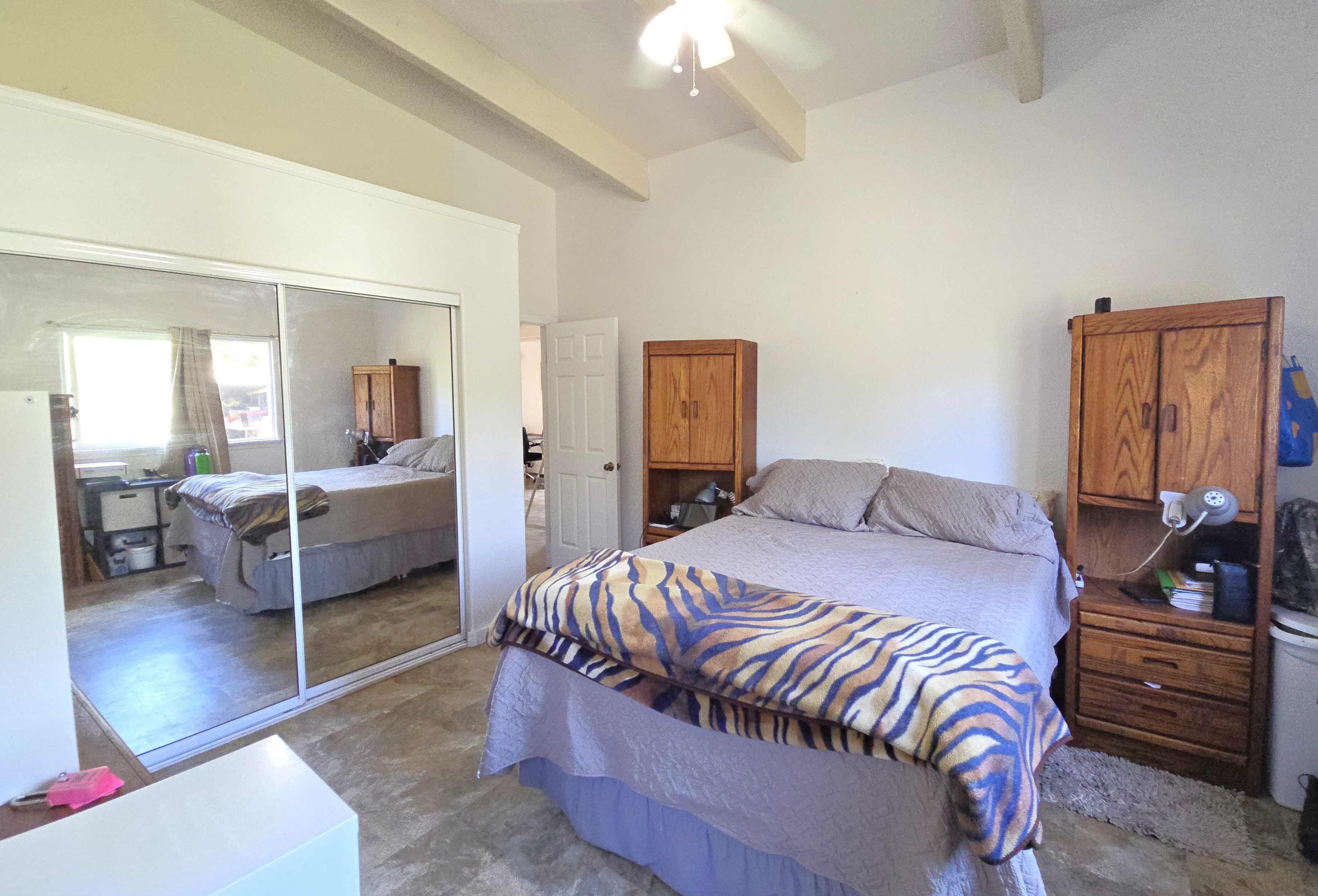 The layout features open beam ceilings, a bright living room and a large family room–perfect for gatherings or extended family. The split-level design allows privacy and flexibility for multiple living arrangements. Every room includes ceiling fans for comfort, and recessed lighting enhances the home’s inviting atmosphere.