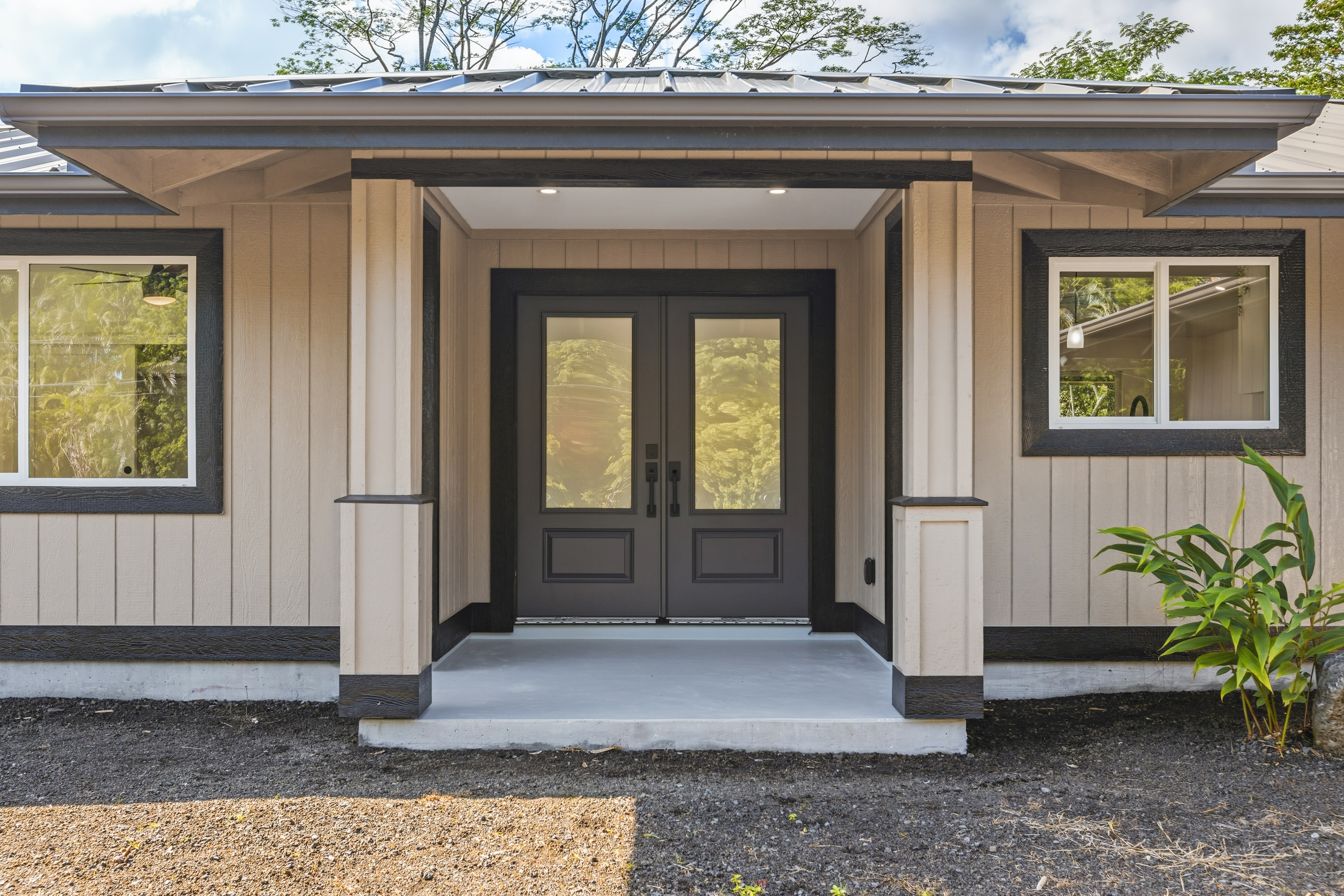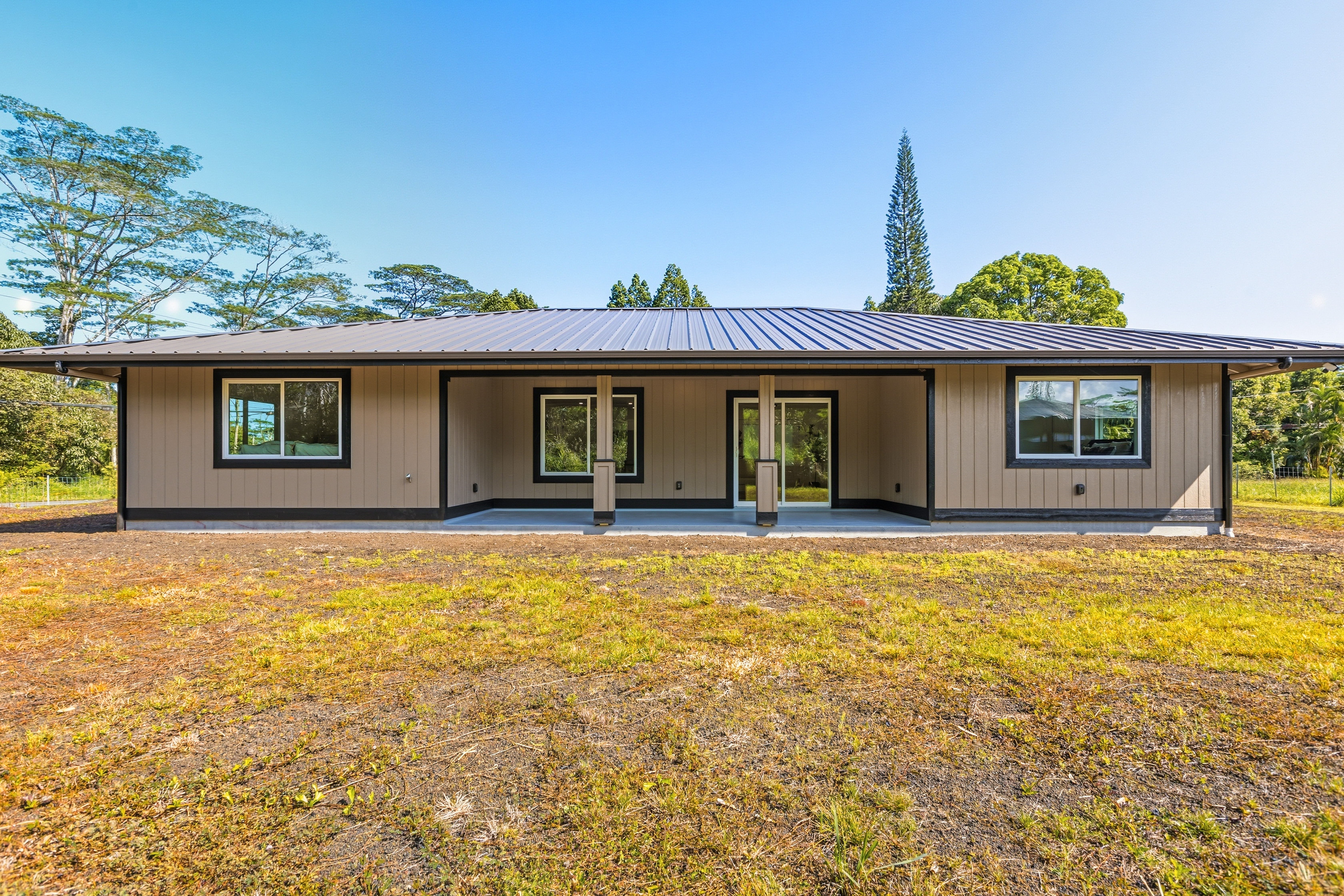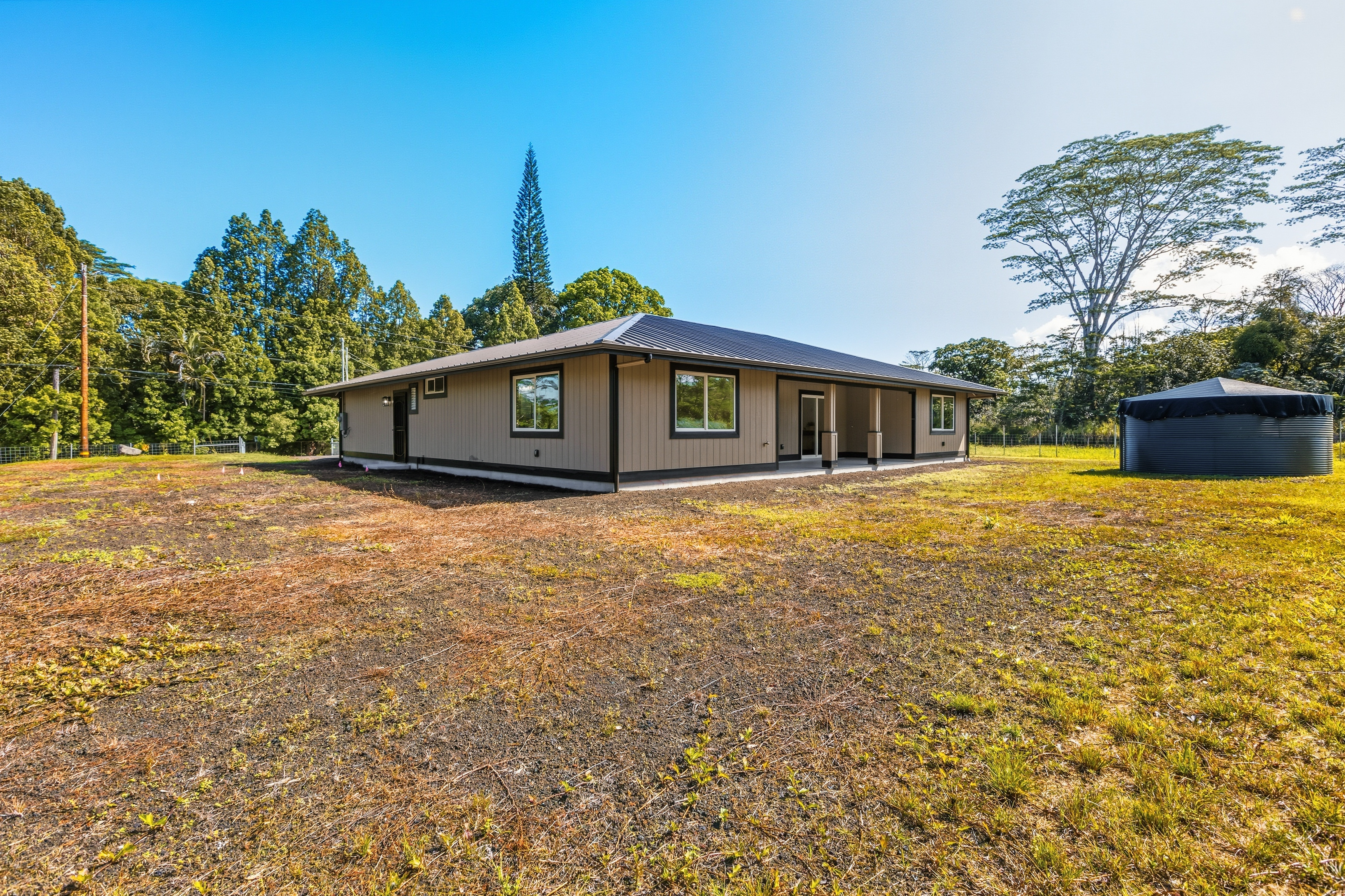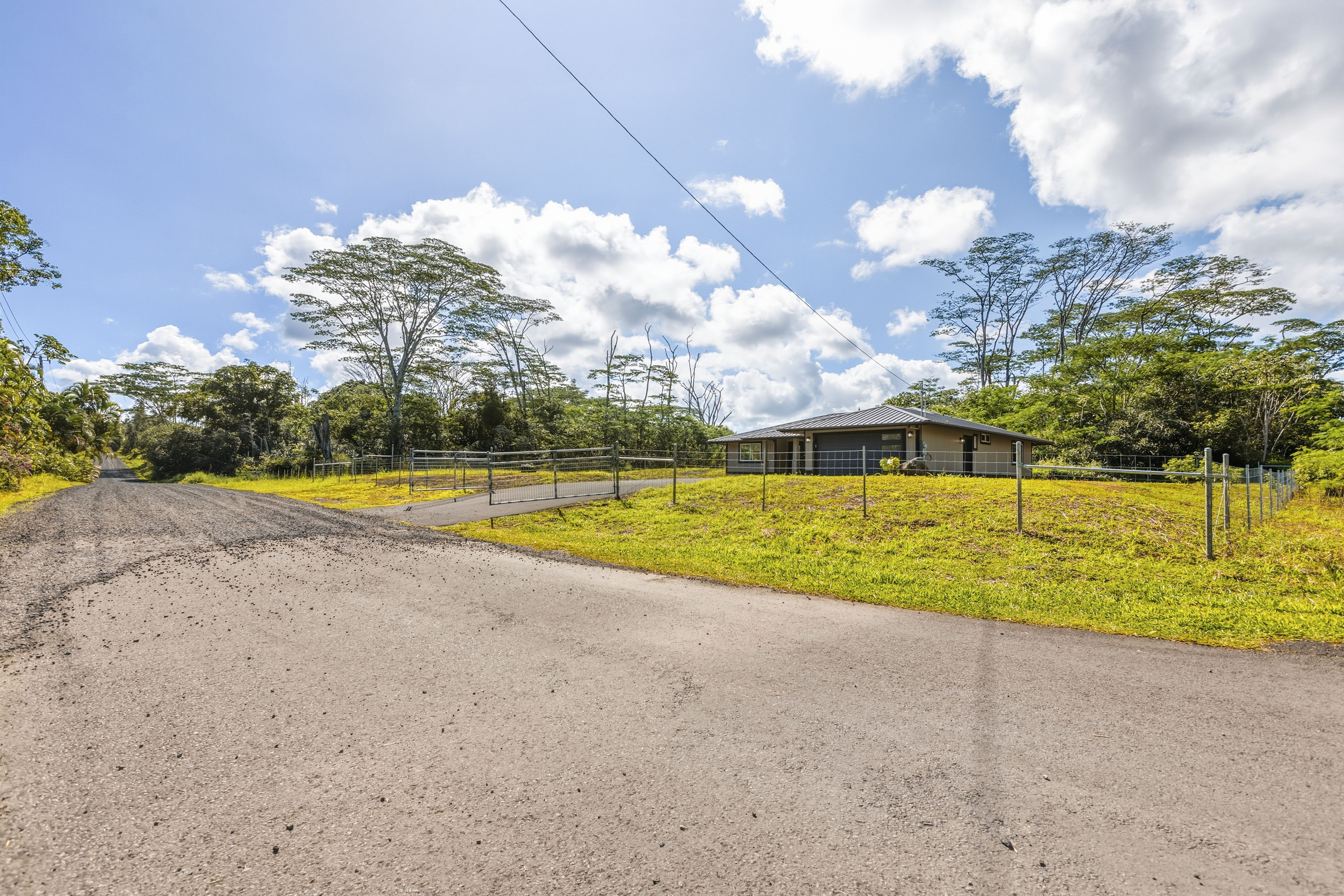 Welcome to this beautifully built 2025 home located in the highly sought-after Hawaiian Paradise Park subdivision. Situated on a half-cleared, 1-acre corner lot, this 3-bedroom, 2-bath property is priced to sell. As you arrive, you’ll appreciate the paved driveway leading to a fully fenced yard, offering both security and peace of mind. The landscaping is thoughtfully designed with young podocarpus trees lining the roadside for future privacy. Inside, you’ll find a desirable split floor plan, providing excellent separation between the primary suite and guest bedrooms. The primary suite is a true retreat, featuring a spacious walk-in closet with a built-in makeup vanity area, as well as a beautifully appointed ensuite bathroom with double-vanity sinks and modern finishes. This newer home offers the space, style, and location you’ve been searching for.