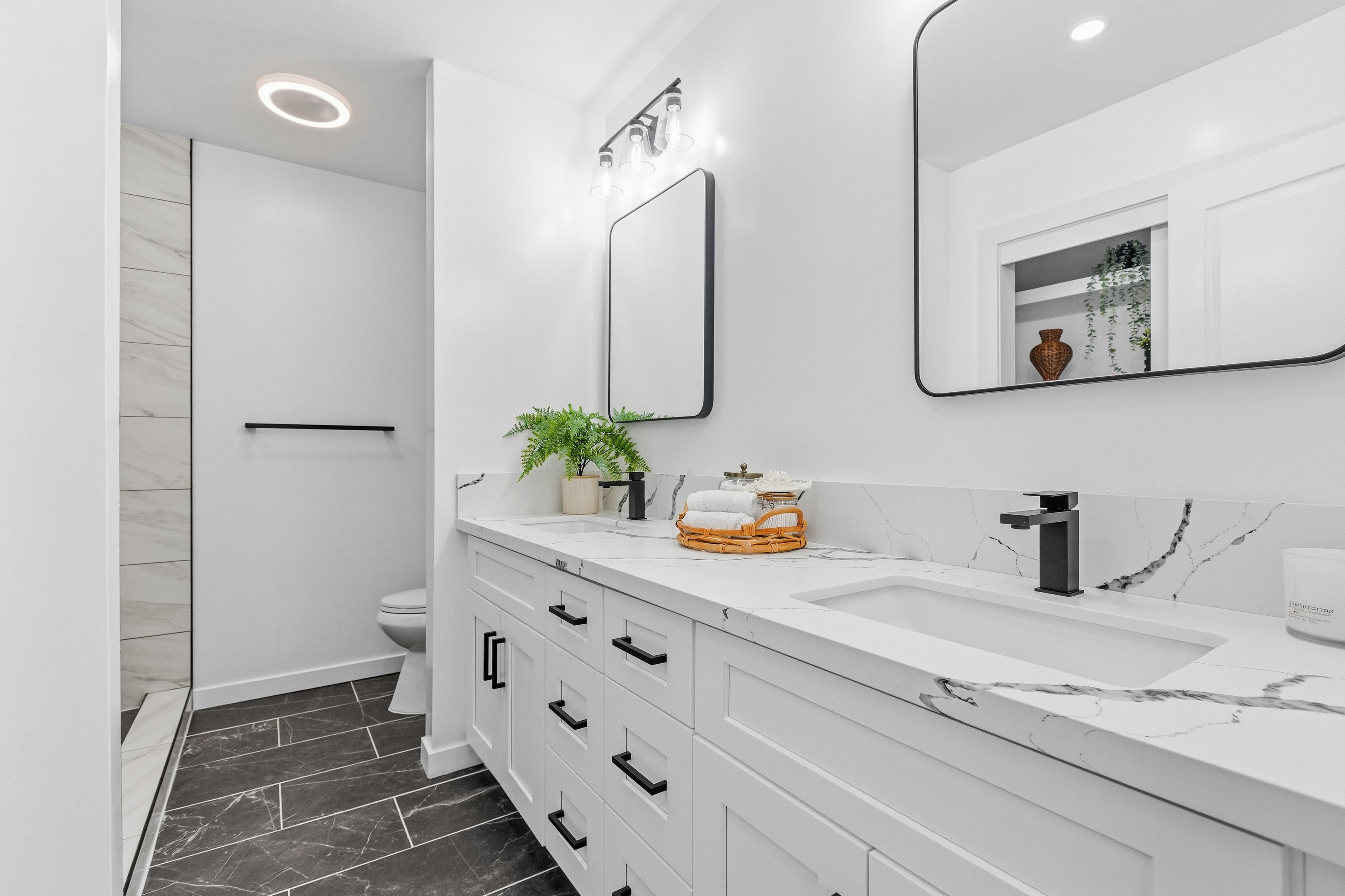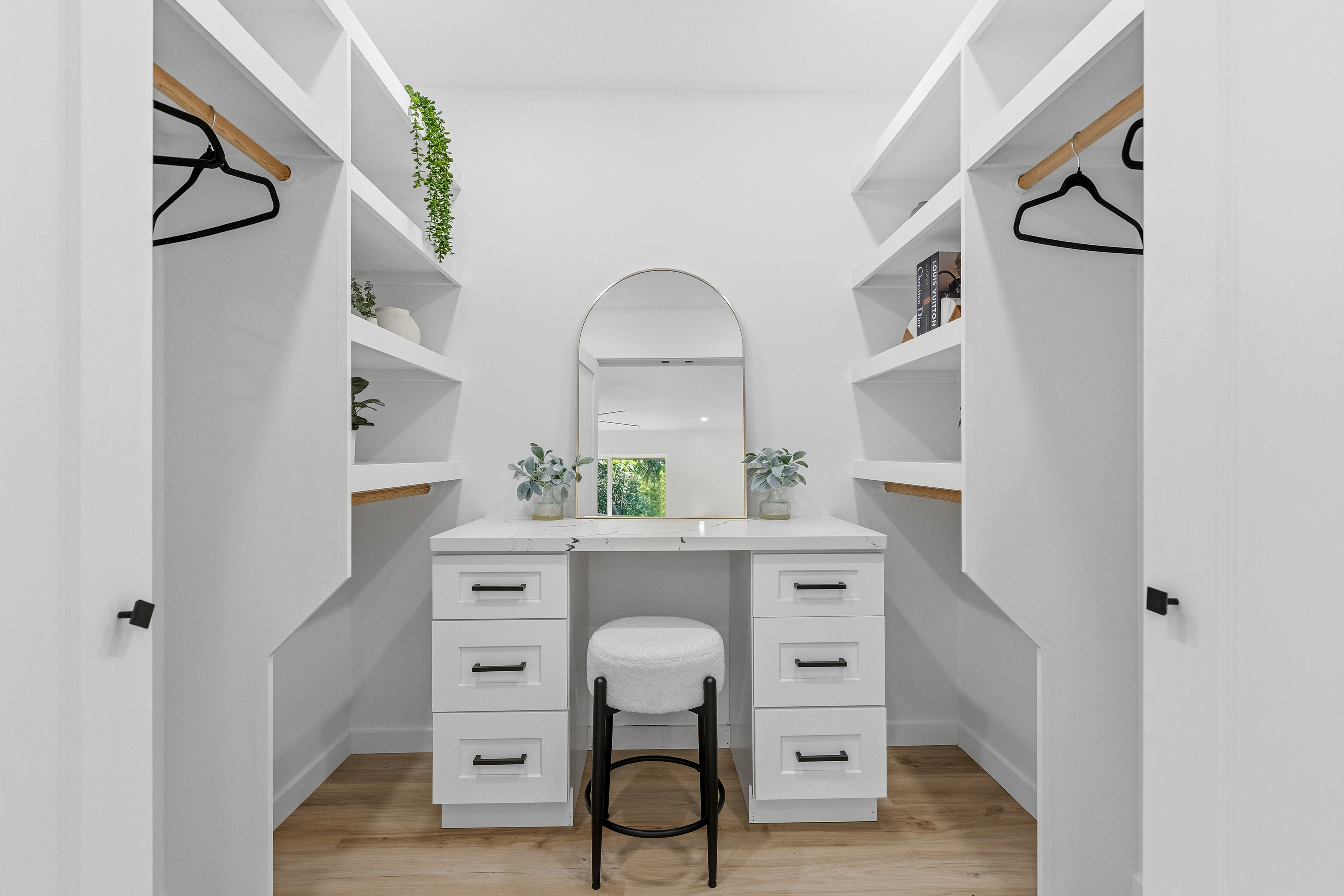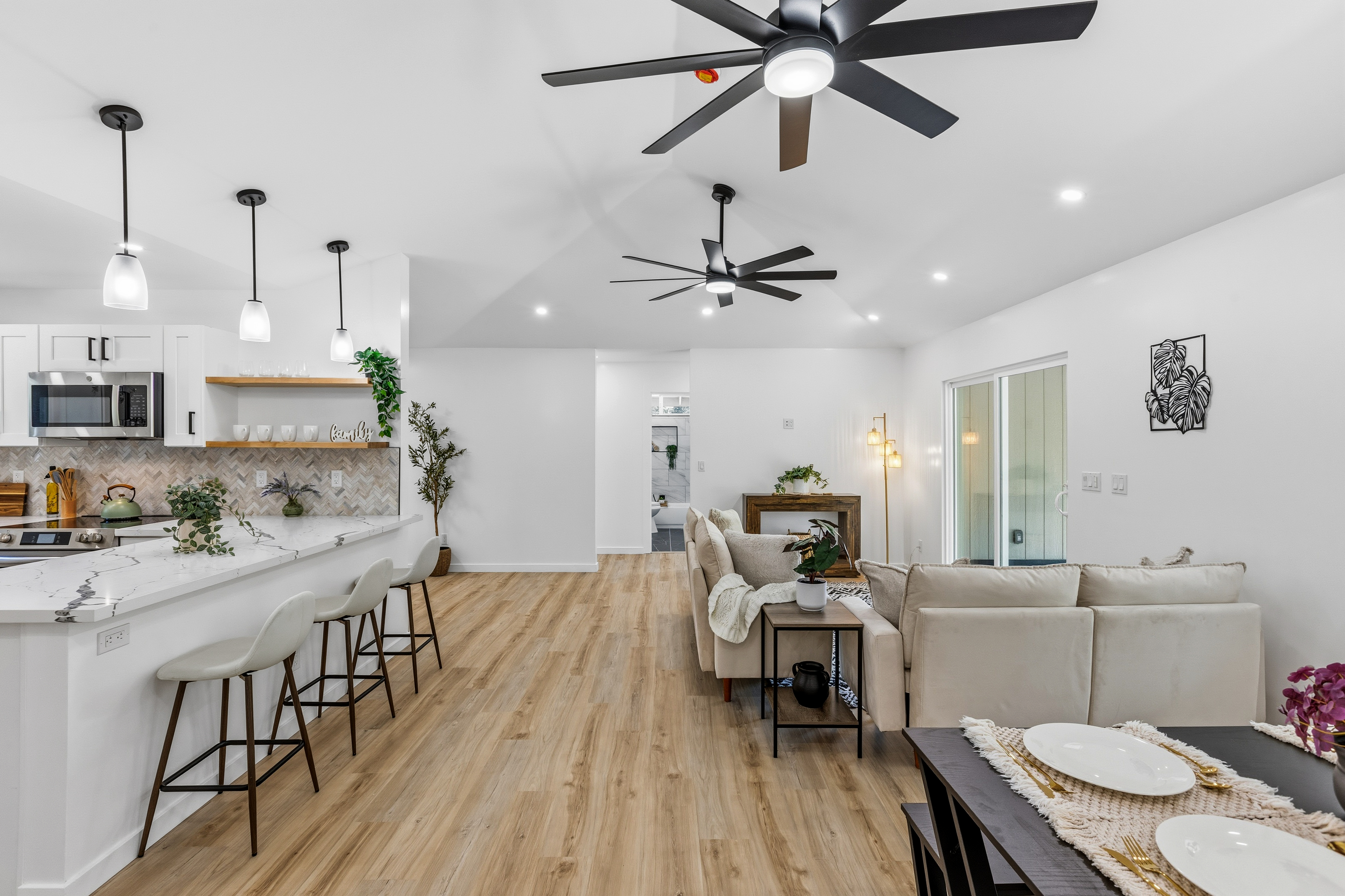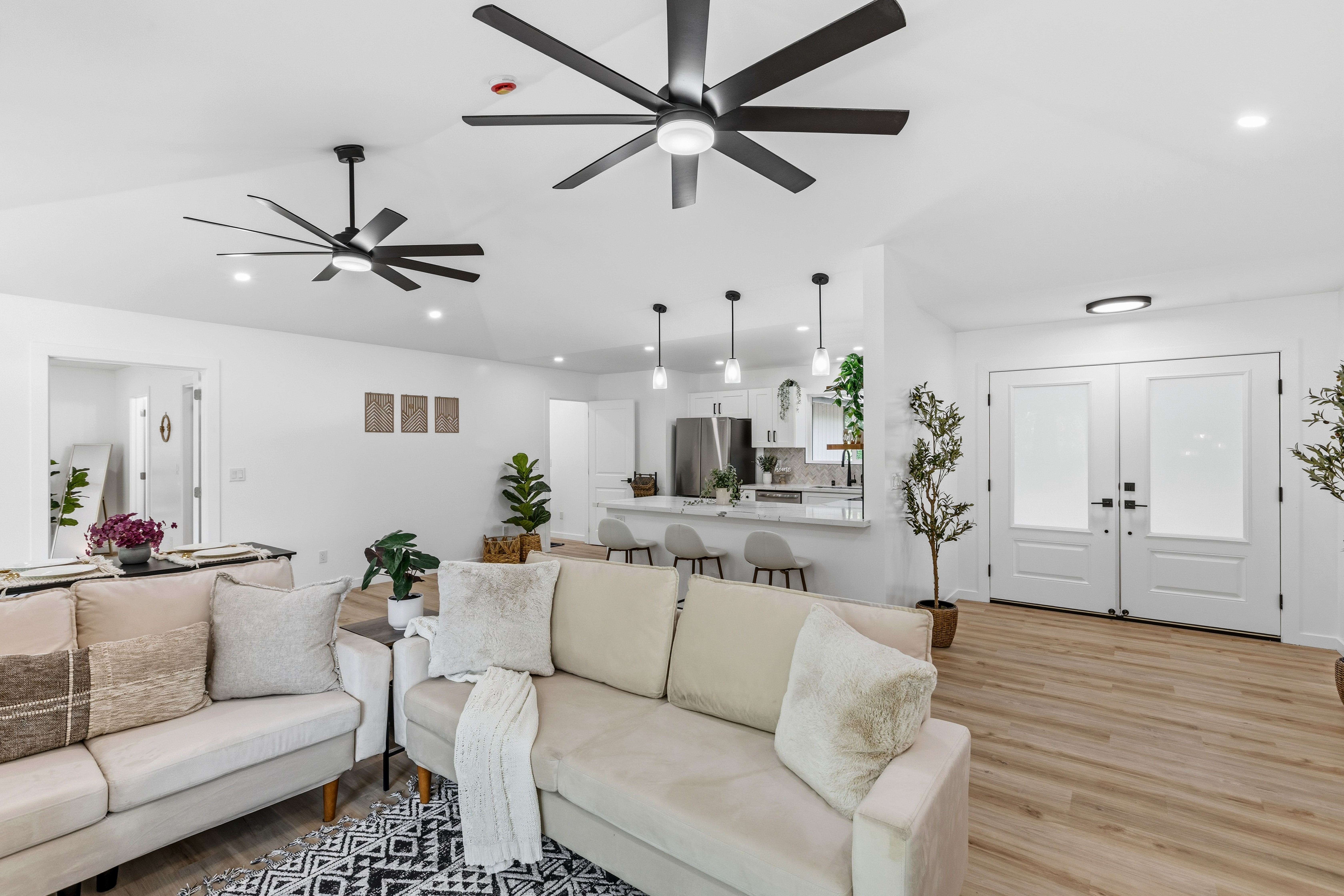 Welcome to this beautifully built 2025 home located in the highly sought-after Hawaiian Paradise Park subdivision. Situated on a half-cleared, 1-acre corner lot, this 3-bedroom, 2-bath property is priced to sell. As you arrive, you’ll appreciate the paved driveway leading to a fully fenced yard, offering both security and peace of mind. The landscaping is thoughtfully designed with young podocarpus trees lining the roadside for future privacy. Inside, you’ll find a desirable split floor plan, providing excellent separation between the primary suite and guest bedrooms. The primary suite is a true retreat, featuring a spacious walk-in closet with a built-in makeup vanity area, as well as a beautifully appointed ensuite bathroom with double-vanity sinks and modern finishes. This newer home offers the space, style, and location you’ve been searching for.