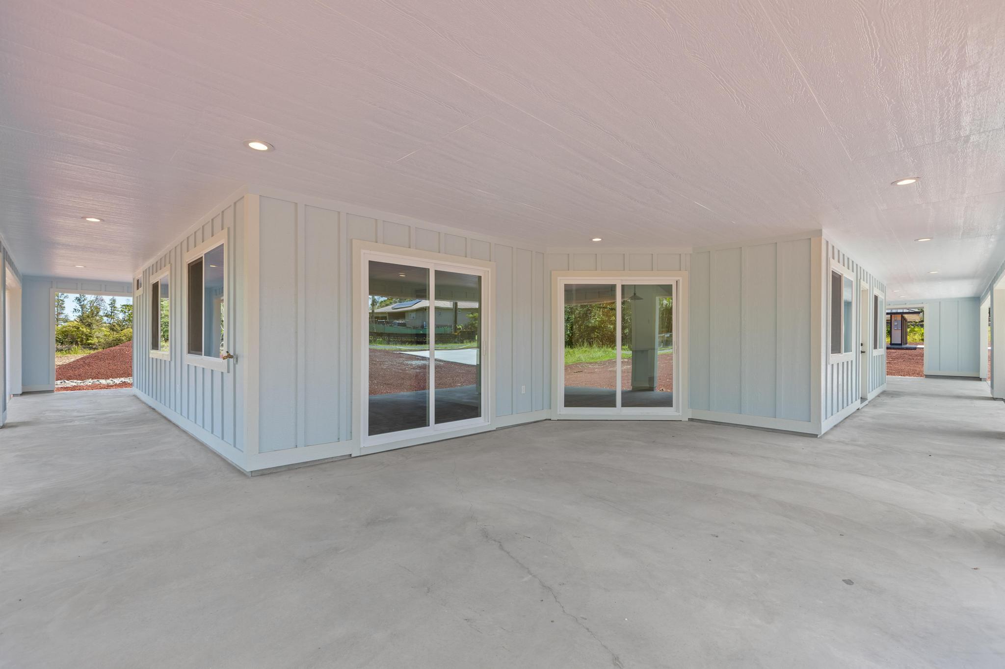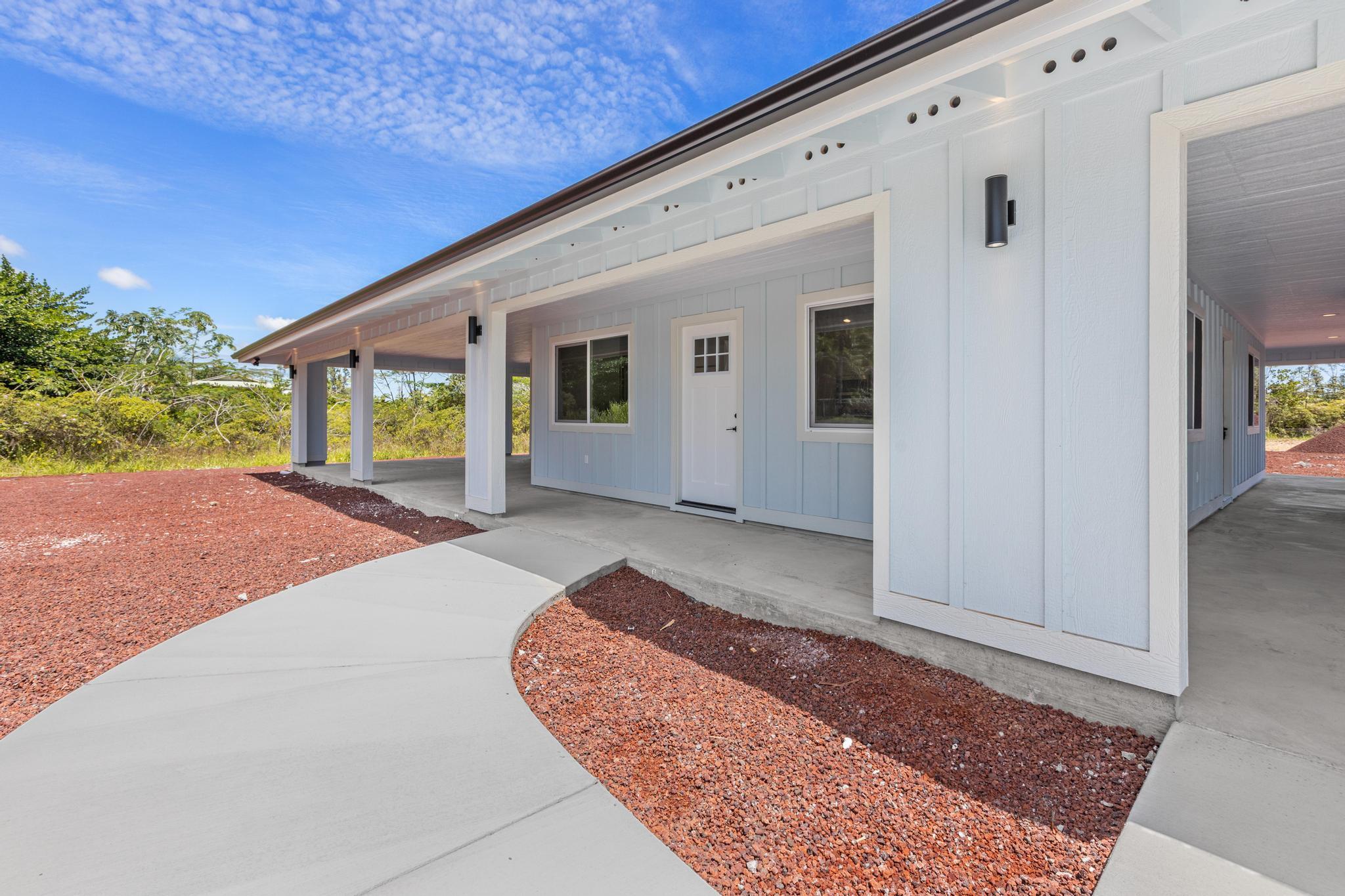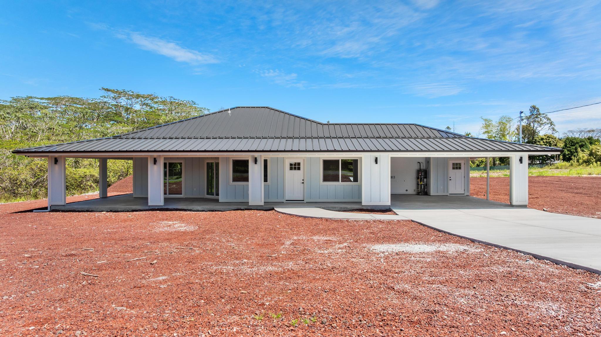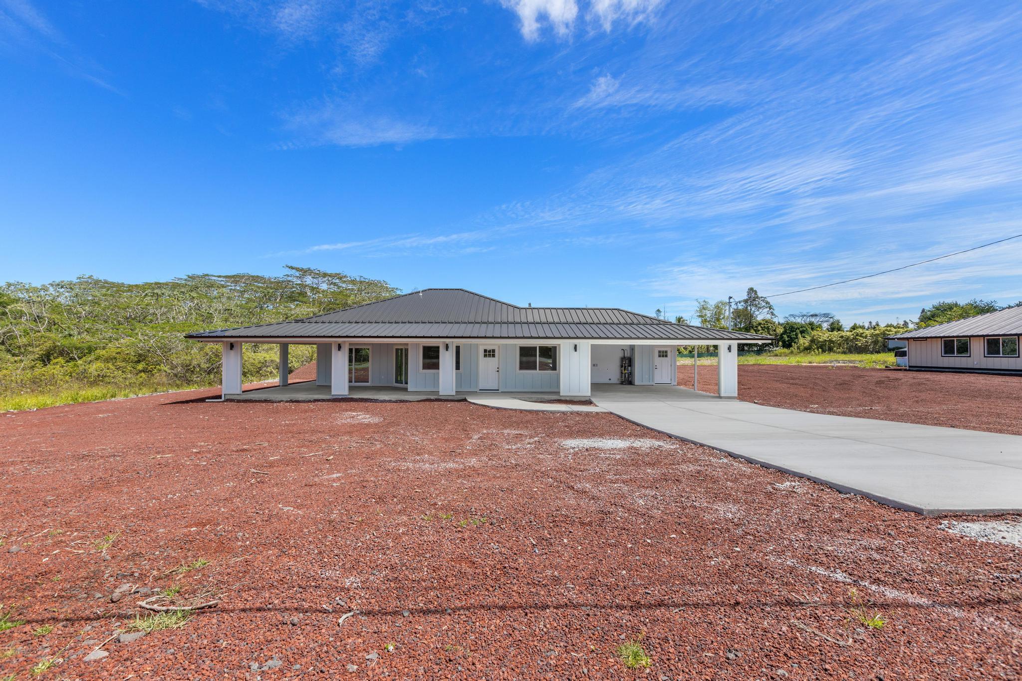 Your One Acre Canvas for Outdoor Living in Hawaiian Paradise Park. This property begins with a clear one acre lot, a true blank canvas for whatever outdoor lifestyle you envision. A brand new concrete driveway welcomes you, leading to a wide walkway and into a thoughtful design that prioritizes open air living. Instead of an enclosed garage, the builder created an open carport and wrapped the home with a continuous, covered concrete walkway. This design invites flow, functionality, and connection to the outdoors. The primary suite extends this vision with sliding doors that open onto a spacious, covered lanai. The perfect spot to relax, gather, or entertain. More concrete means less maintenance and more time to enjoy your outdoor experience. Toward the back of the acre, the land has already been mulched, setting you up for future possibilities. Whether it’s sustainable farming, creating a home garden, or simply enjoying the rich soil potential, the groundwork has been started for you. Altogether, the exterior living space spans an impressive 1,600 sq. ft. Inside, the home is the cherry on top. This 1334 sq. ft. split floor plan centers around the kitchen, offering balance between shared moments and privacy. Oversized bedrooms provide flexibility for a growing household or guests. The primary bedroom is especially generous, complete with a beautifully finished bathroom featuring custom tile work and a sleek glass shower door. Finally, location makes this home even more attractive. Situated in the upper section of Hawaiian Paradise Park, you’re just three streets from the main highway, a perfect blend of space, accessibility, and convenience. This home offers so many extras, but at its heart, it’s designed for the lifestyle that makes Hawaii living special: connection to the land, comfort indoors, and endless possibilities outside.