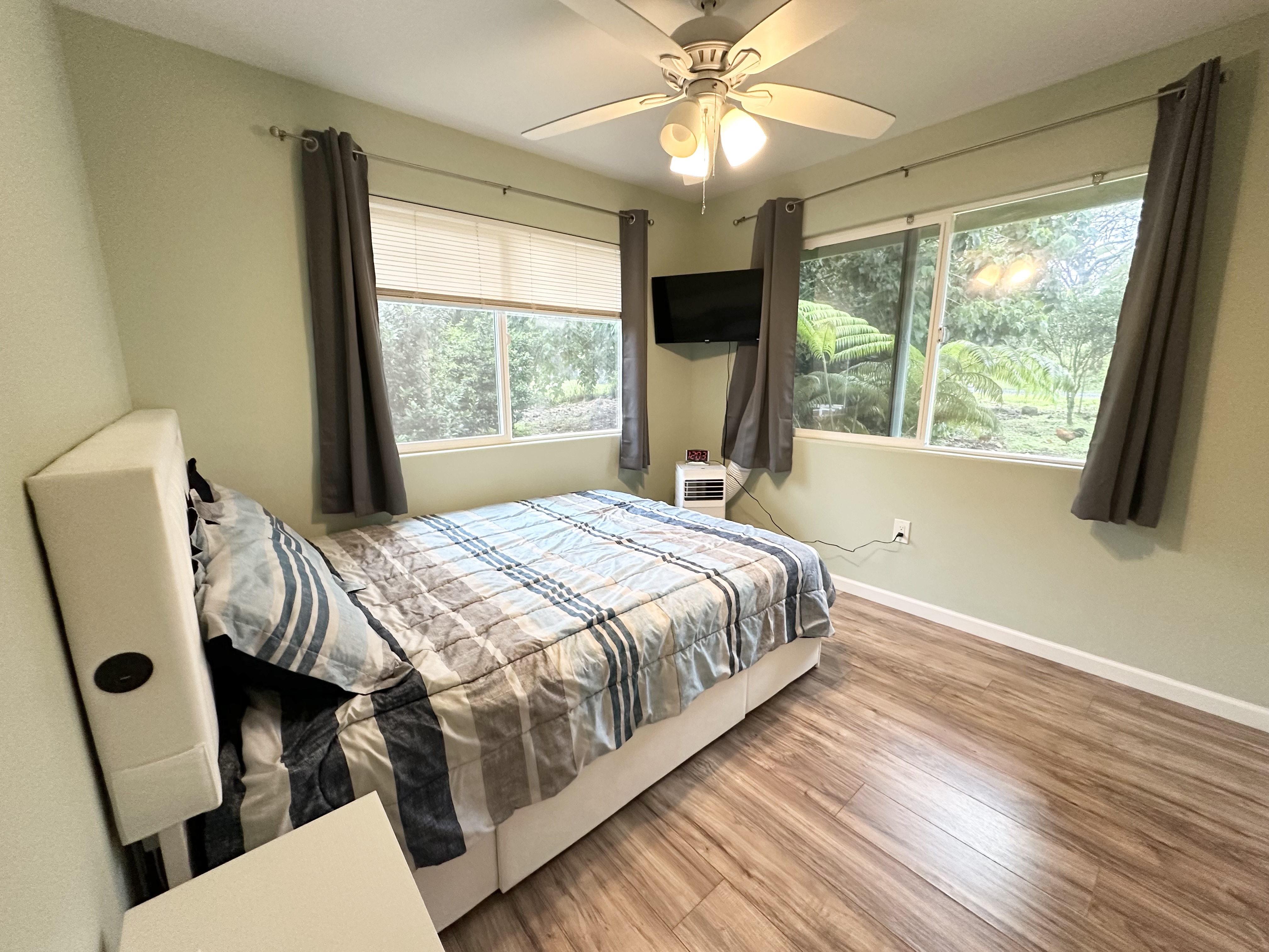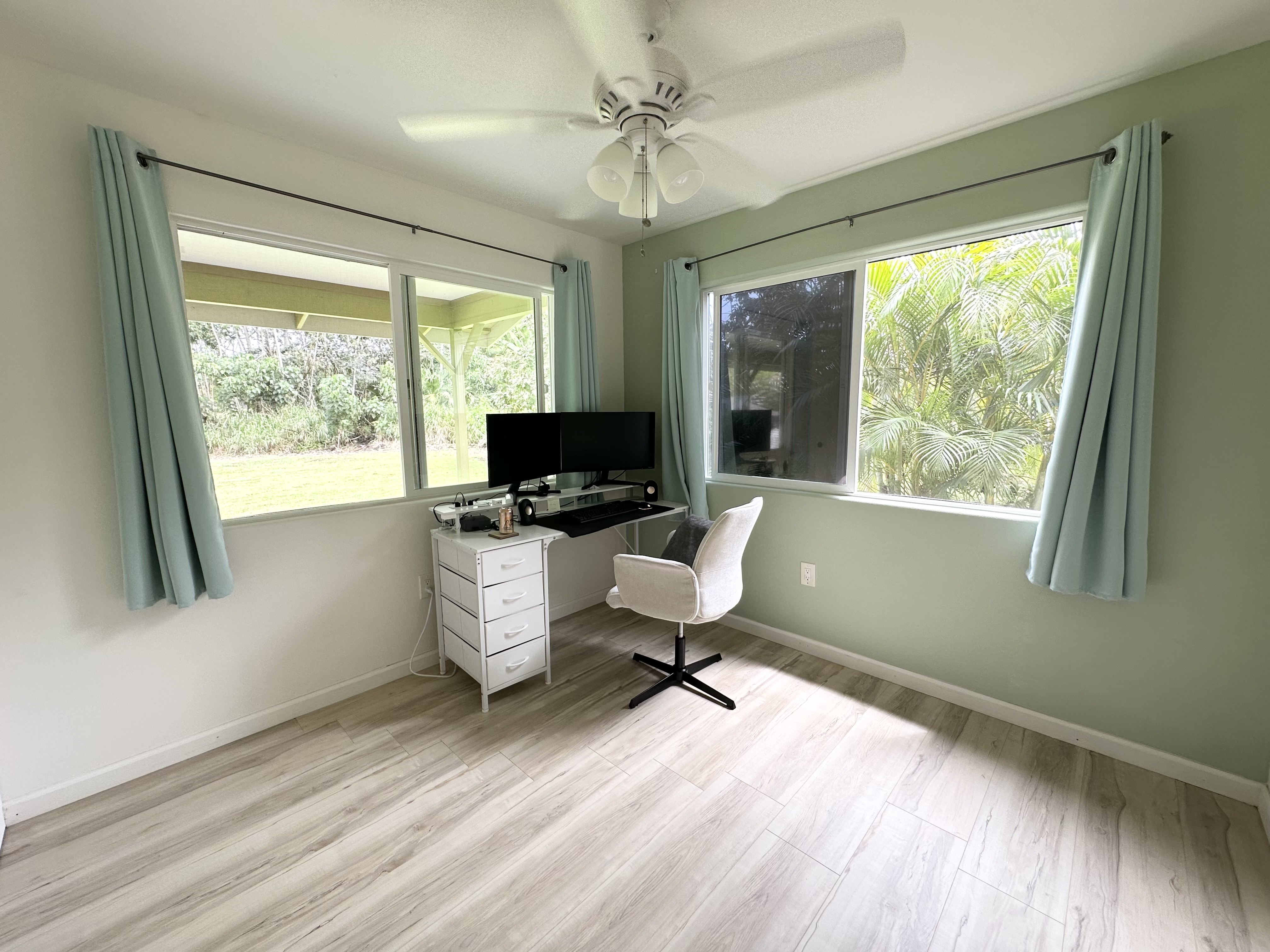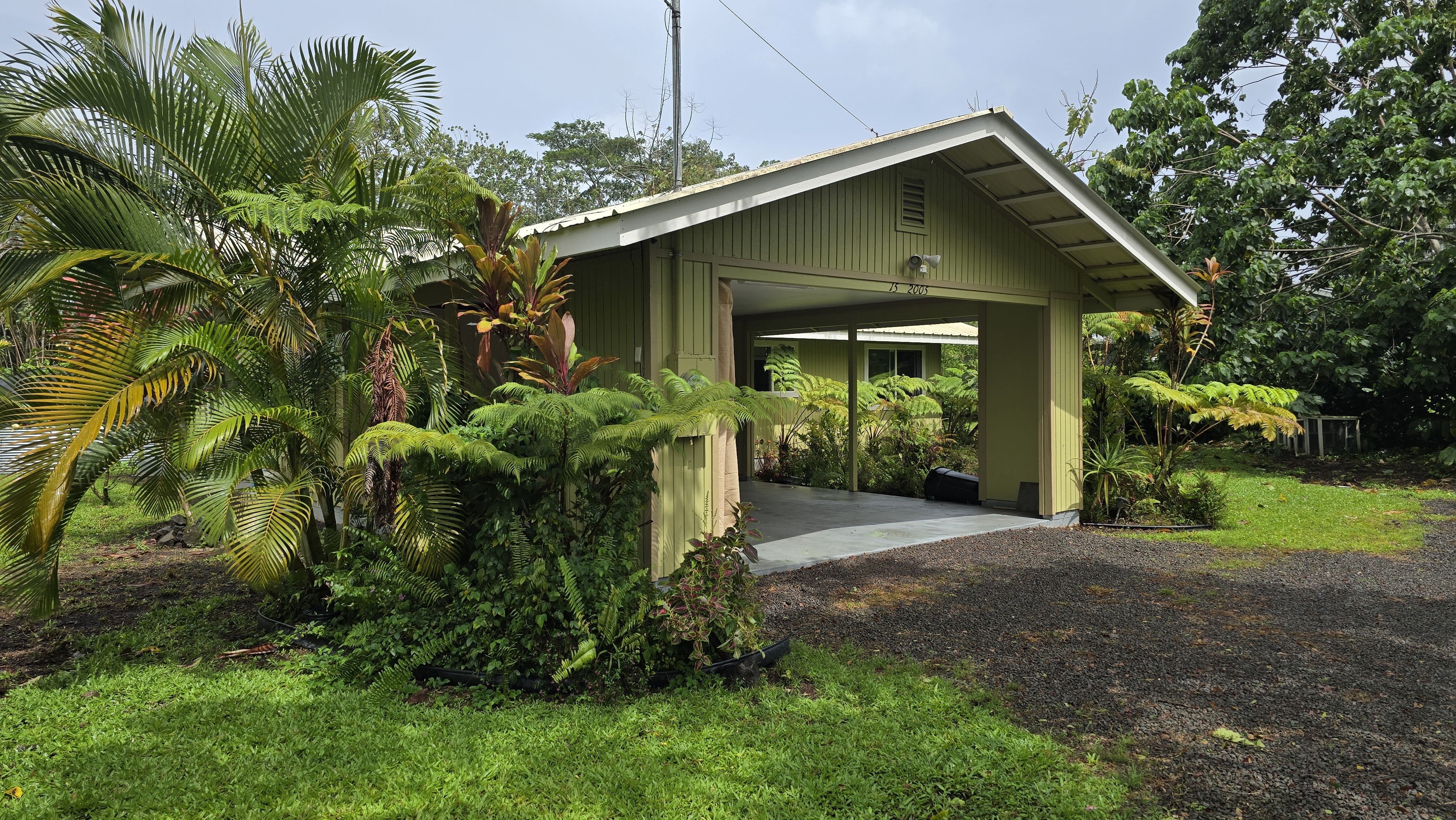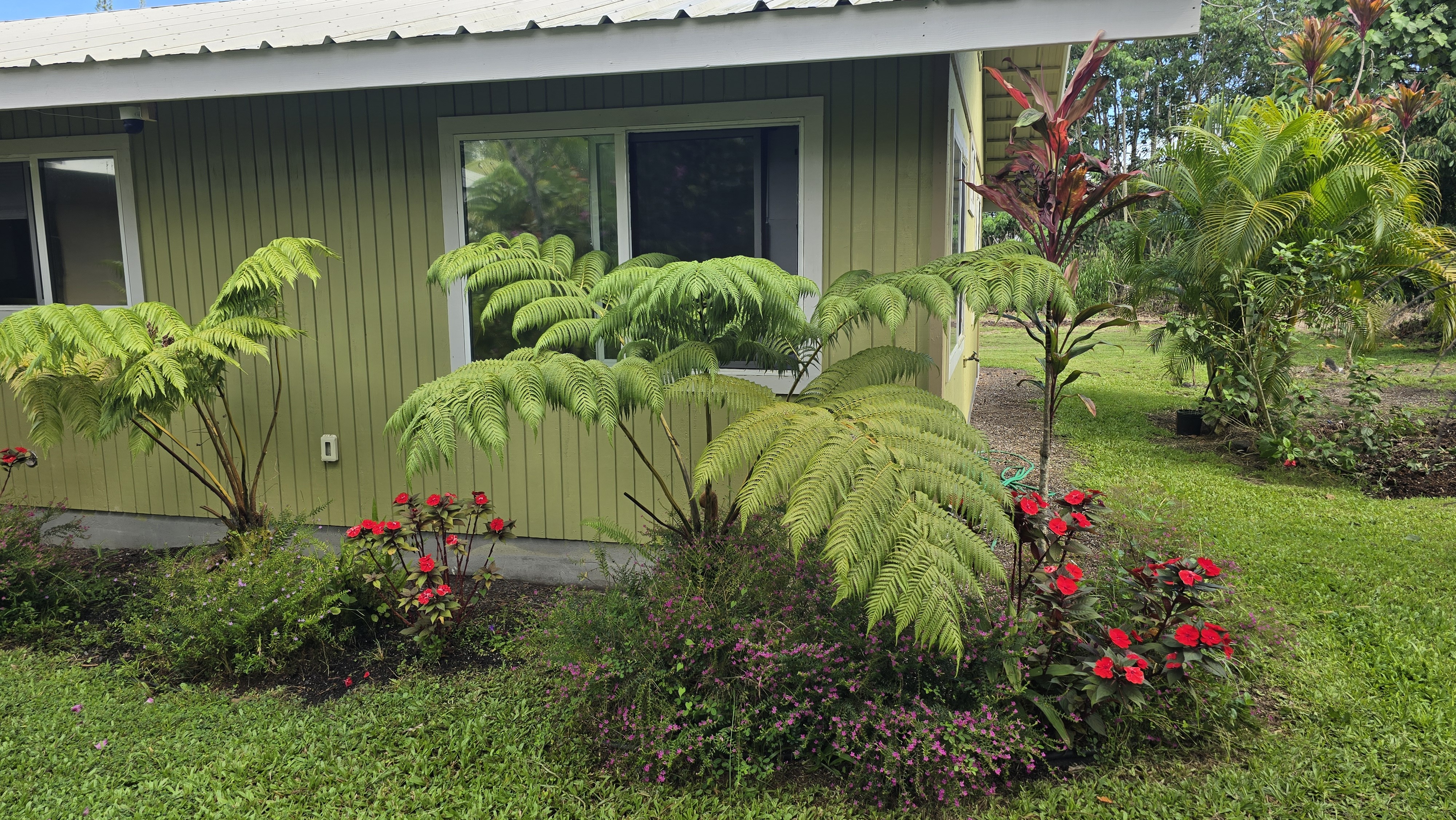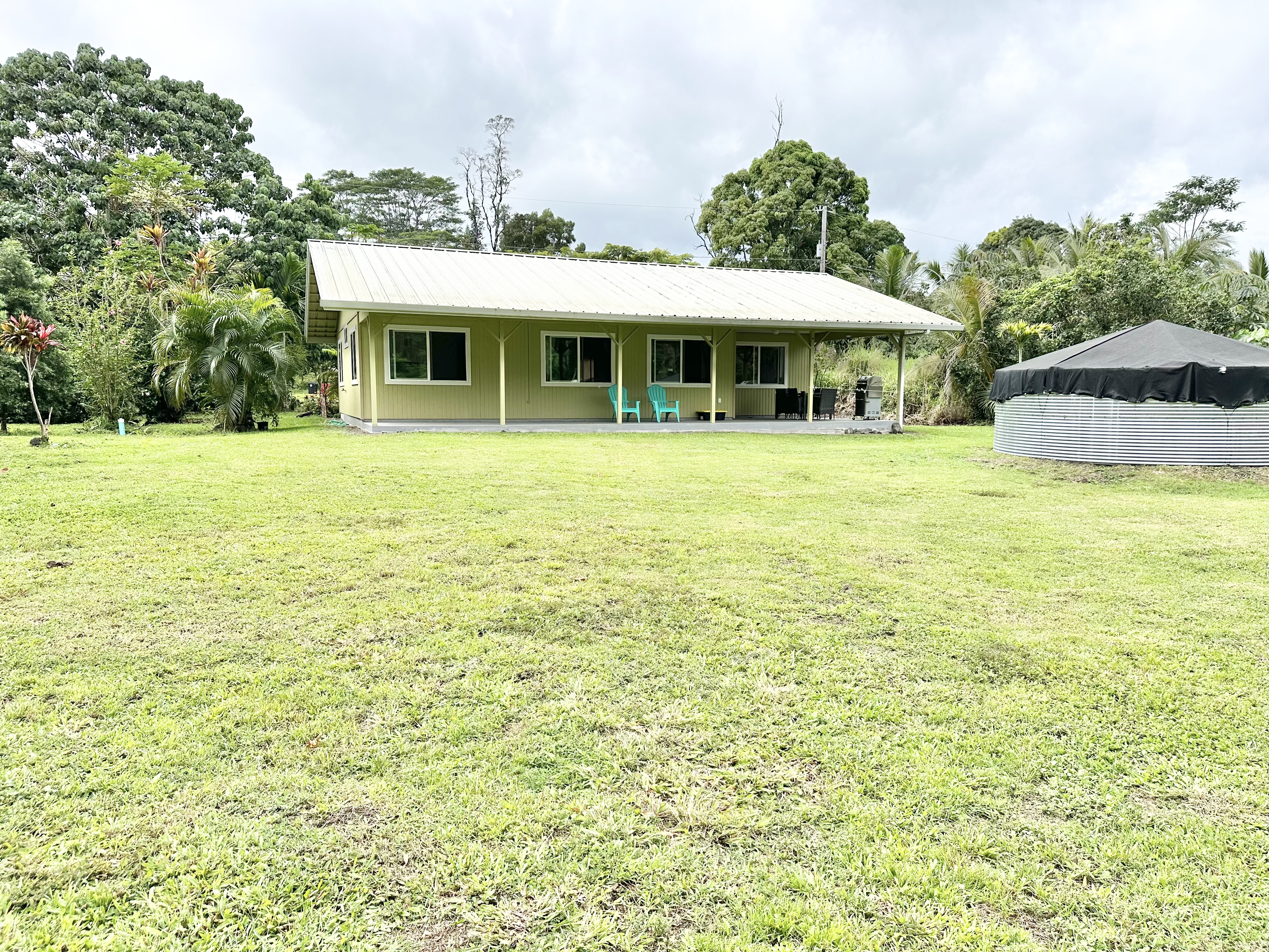 Enjoy comfortable island living in this well-maintained 3 bedroom, 2 bath home on a full 1-acre lot in Hawaiian Paradise Park. Built in 2019, the home offers a desirable split floor plan with the primary suite on one side and two additional bedrooms on the other, connected by an open-concept kitchen and living area. Located on a quiet dead-end street in a convenient part of the subdivision, just a short distance to the community association. Highlights: - 1,072 sq ft of living space - 424 sq ft covered lanai — perfect for relaxing or entertaining - 480 sq ft carport - New flooring - Hardwood cabinets and quartz countertops - New gas stove - New washer and dryer - New UV water filtration system - Septic system installed - Partially fenced yard - Variety of fruit trees - Peaceful location on a dead-end street . Fruit trees, Limes, Lemons, Tangerines, Avocado, Oranges and a Lilikoi vine. . 11,000 gallon water tank A great opportunity to own a newer home with space, privacy, and tropical surroundings in Hawaiian Paradise Park. Furnishings in the home are negotiable. Being sold AS IS, please include an as is addendum