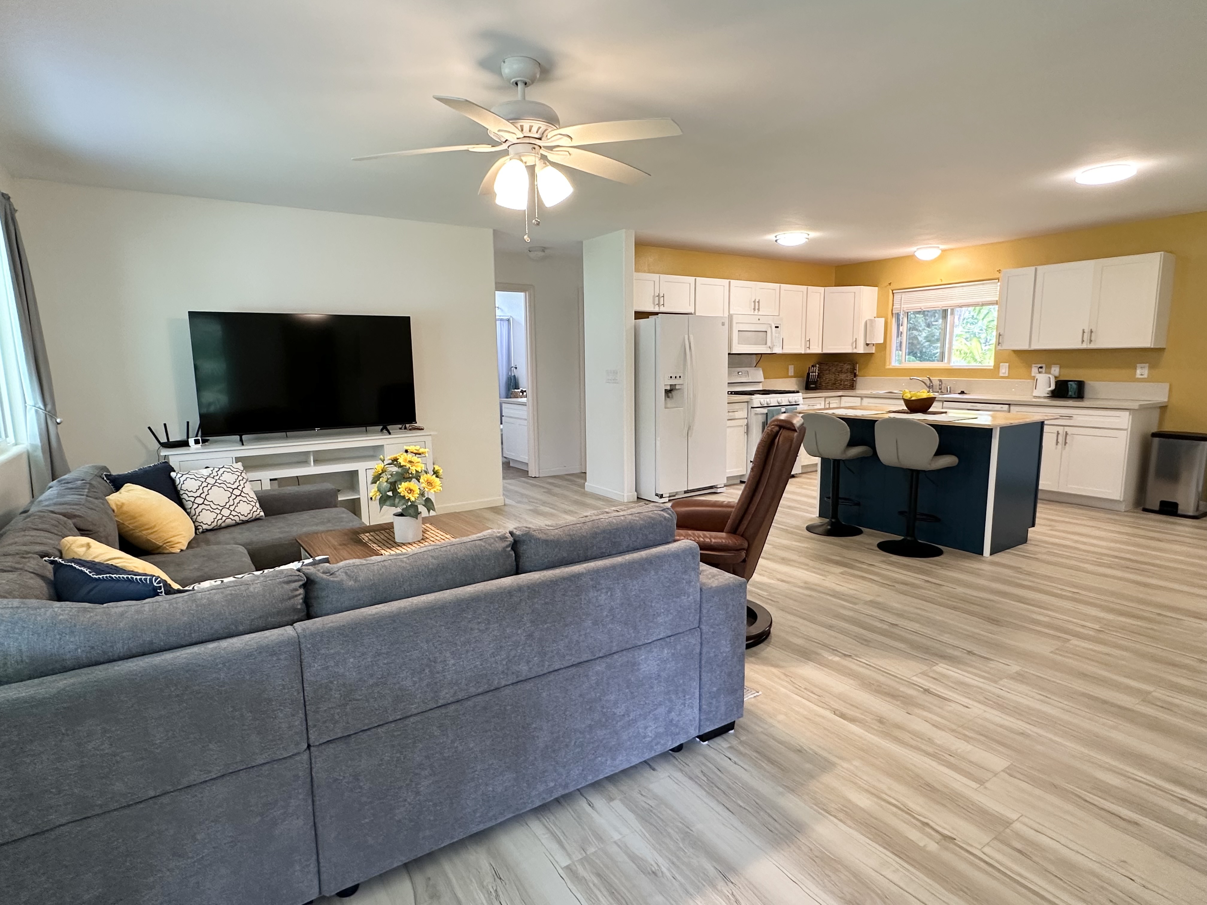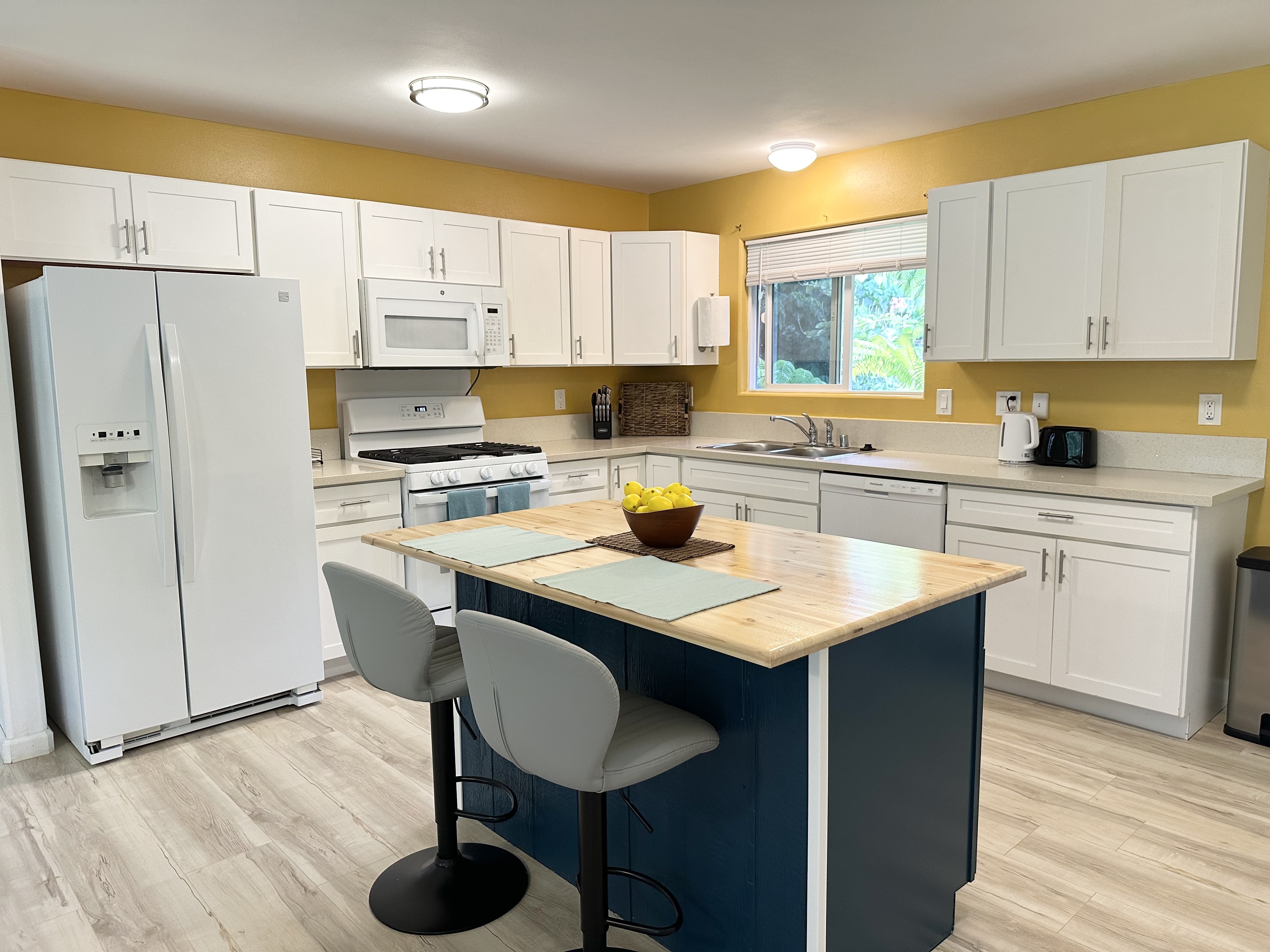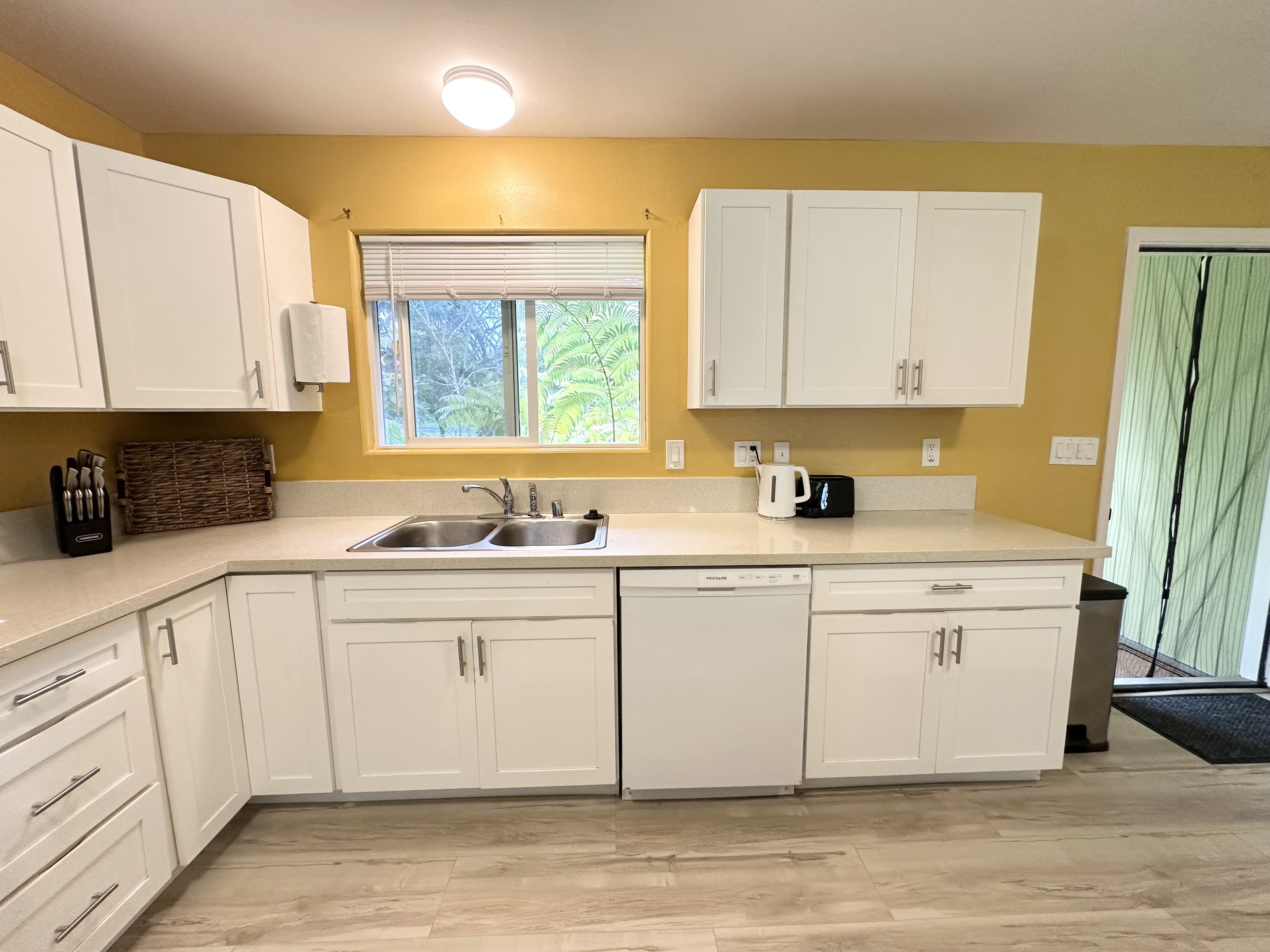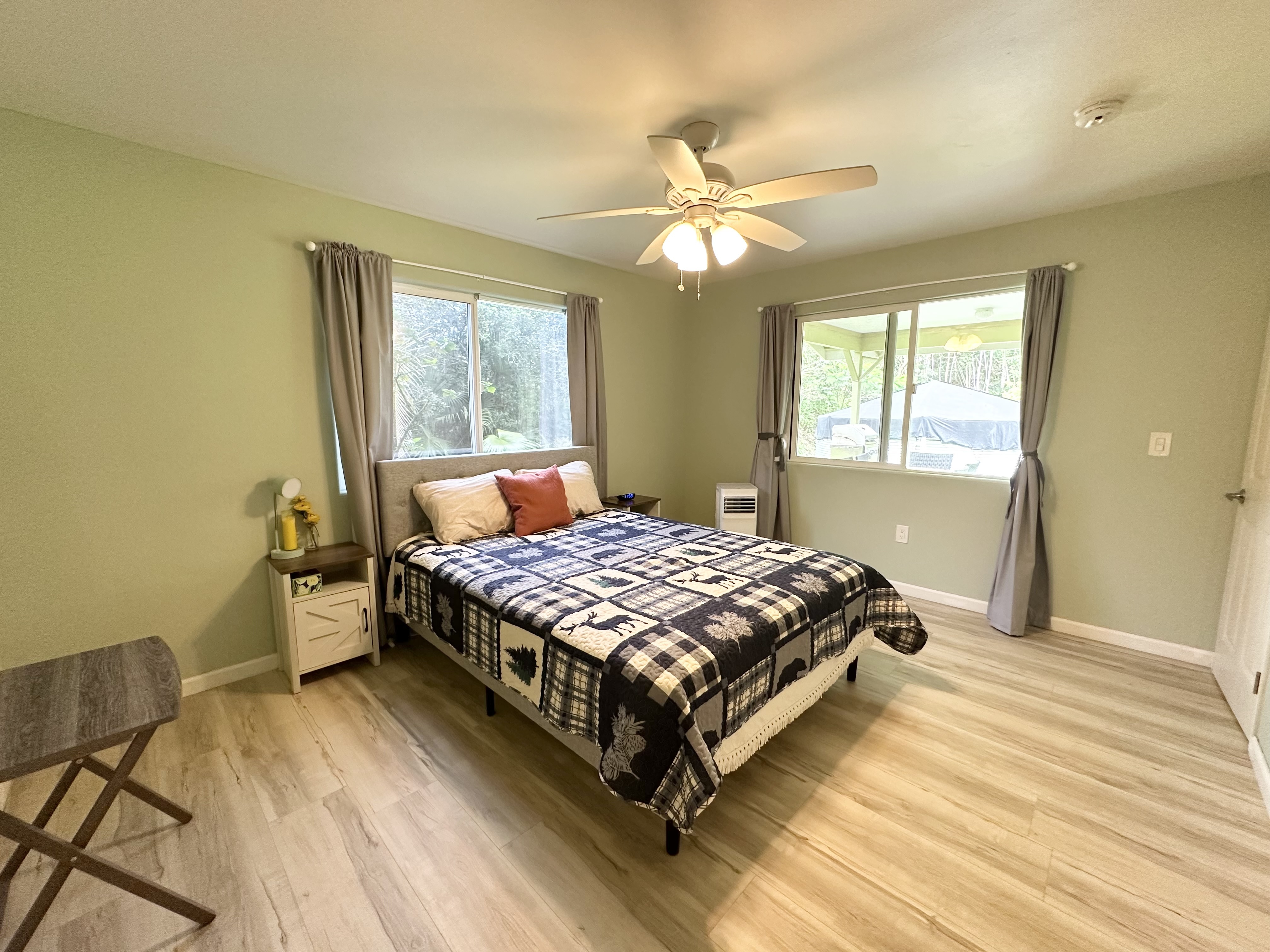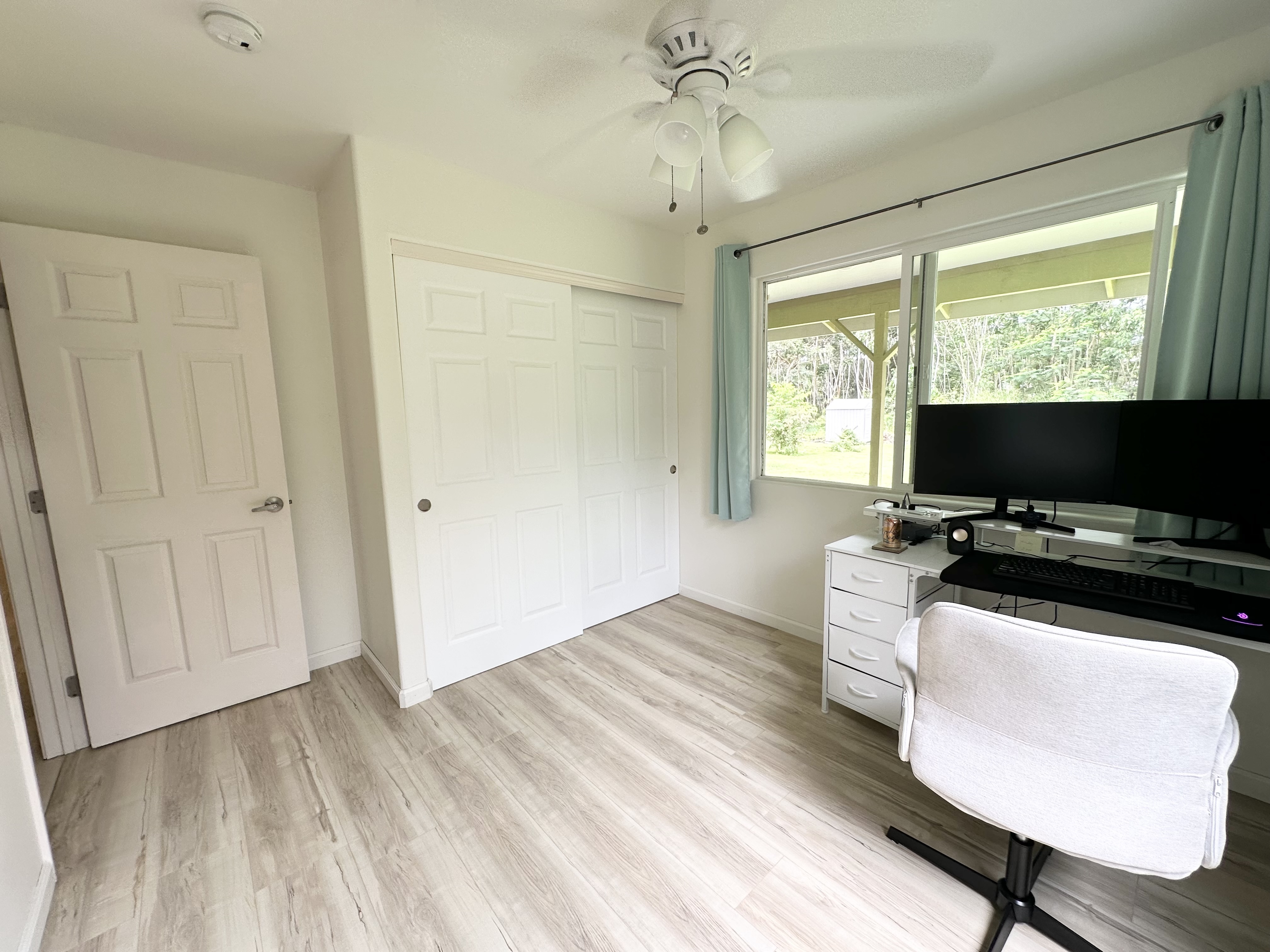 Enjoy comfortable island living in this well-maintained 3 bedroom, 2 bath home on a full 1-acre lot in Hawaiian Paradise Park. Built in 2019, the home offers a desirable split floor plan with the primary suite on one side and two additional bedrooms on the other, connected by an open-concept kitchen and living area. Located on a quiet dead-end street in a convenient part of the subdivision, just a short distance to the community association. Highlights: - 1,072 sq ft of living space - 424 sq ft covered lanai — perfect for relaxing or entertaining - 480 sq ft carport - New flooring - Hardwood cabinets and quartz countertops - New gas stove - New washer and dryer - New UV water filtration system - Septic system installed - Partially fenced yard - Variety of fruit trees - Peaceful location on a dead-end street . Fruit trees, Limes, Lemons, Tangerines, Avocado, Oranges and a Lilikoi vine. . 11,000 gallon water tank A great opportunity to own a newer home with space, privacy, and tropical surroundings in Hawaiian Paradise Park. Furnishings in the home are negotiable. Being sold AS IS, please include an as is addendum