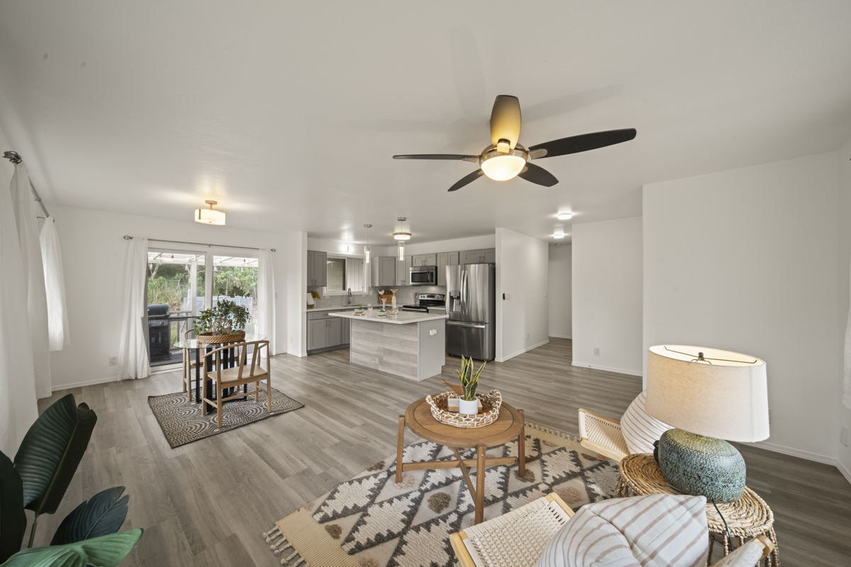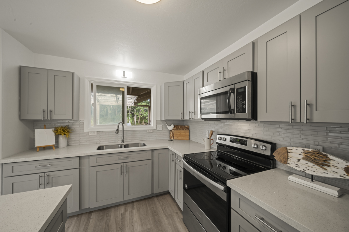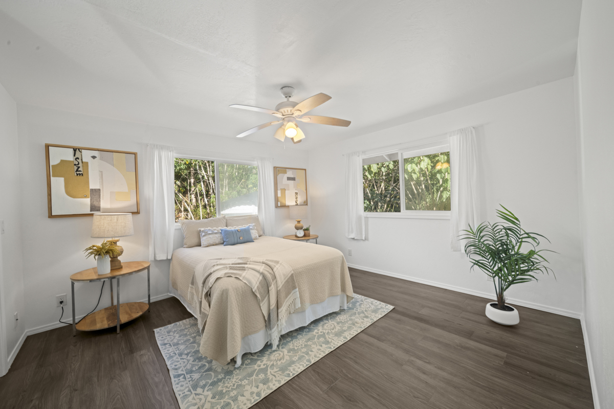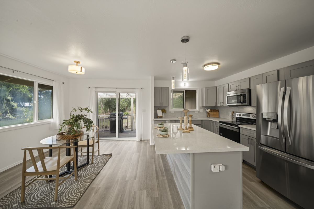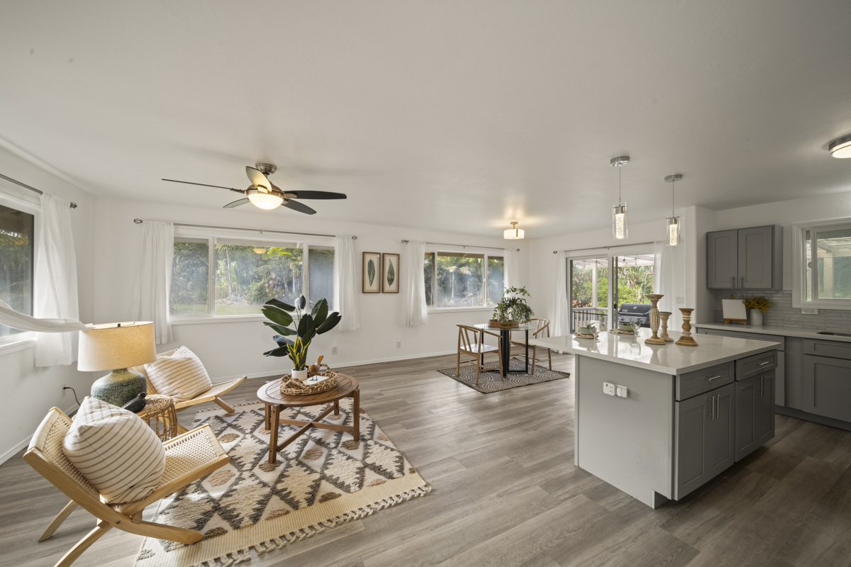 Charming 3 bed / 1.75 bath home in Hawaiian Paradise Park, priced for quick sale! This move-in ready property was thoughtfully upgraded in 2018/2019 with luxury vinyl plank flooring in most of the home, a remodeled kitchen with new cabinets and counters, and all new fixtures. Fresh interior paint in 2025 gives it a crisp, clean feel. Appliances are in excellent condition with a brand-new refrigerator (2024), washer/dryer set (2020), and water heater (2020).