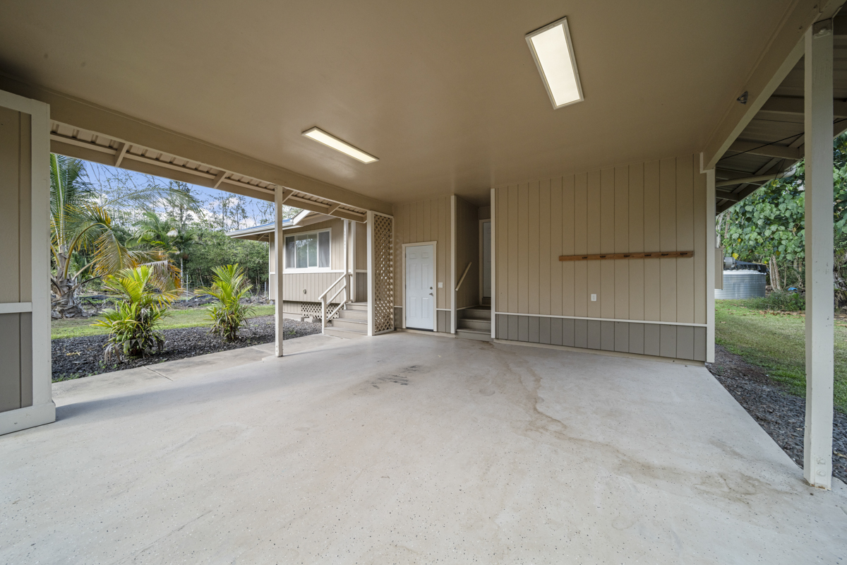 Set on a lush 1-acre lot, the grounds feature huge lemon and lime trees overflowing with fruit, mature coconut palms, and a chicken coop already in place. Enjoy a small back lanai for relaxing evenings, plus a big carport that provides covered parking and extra space for storage or workshop use. The entire roof was recently pressure washed and painted.